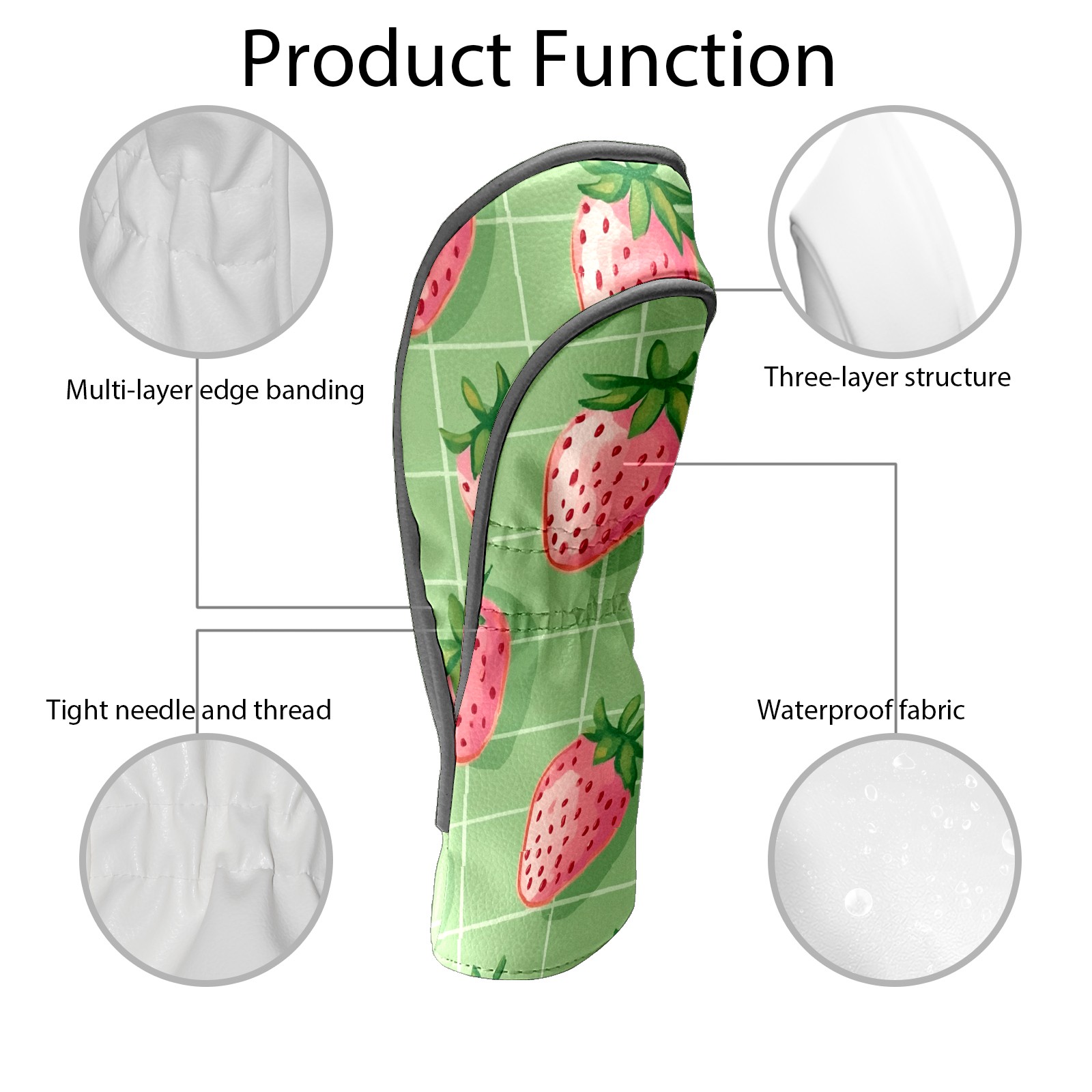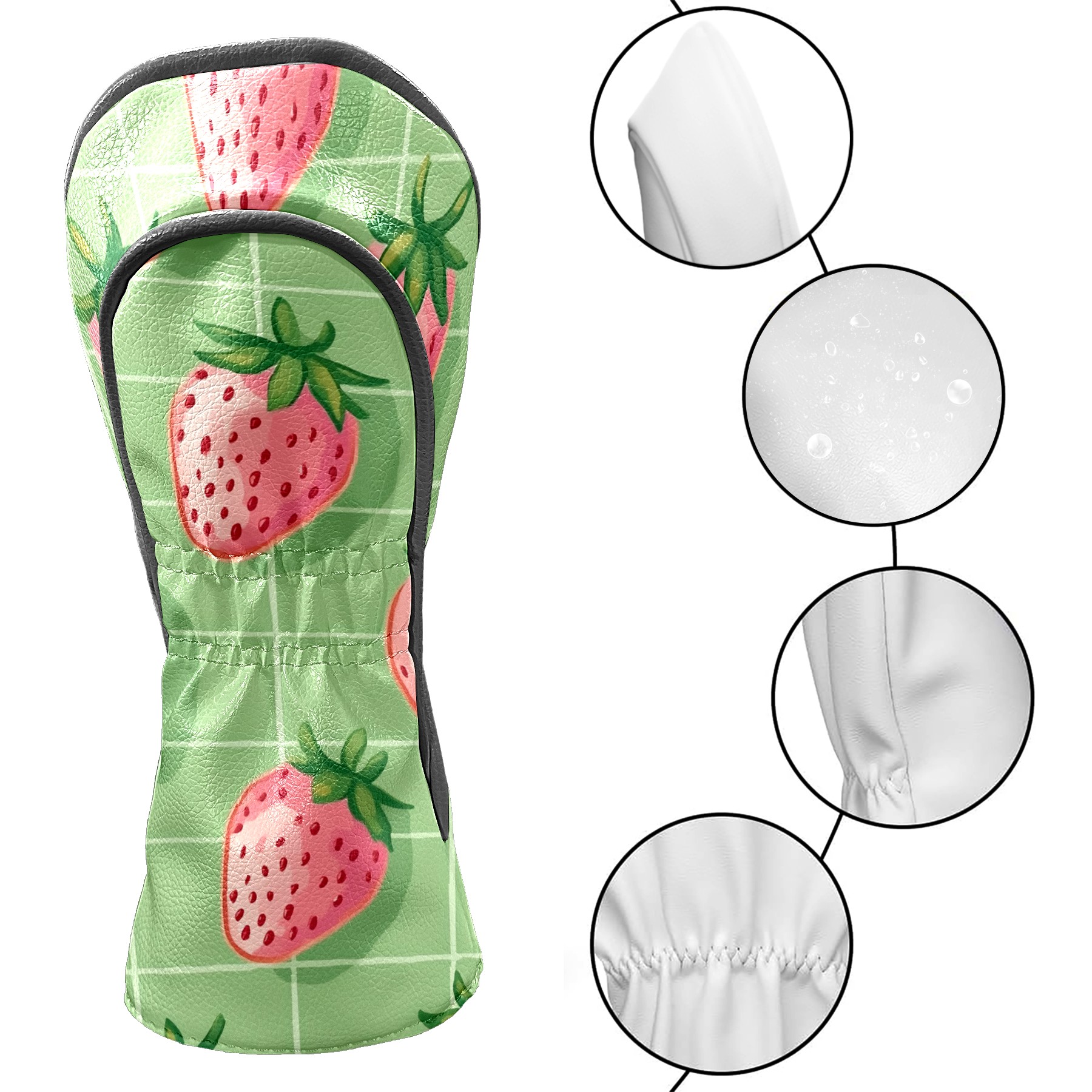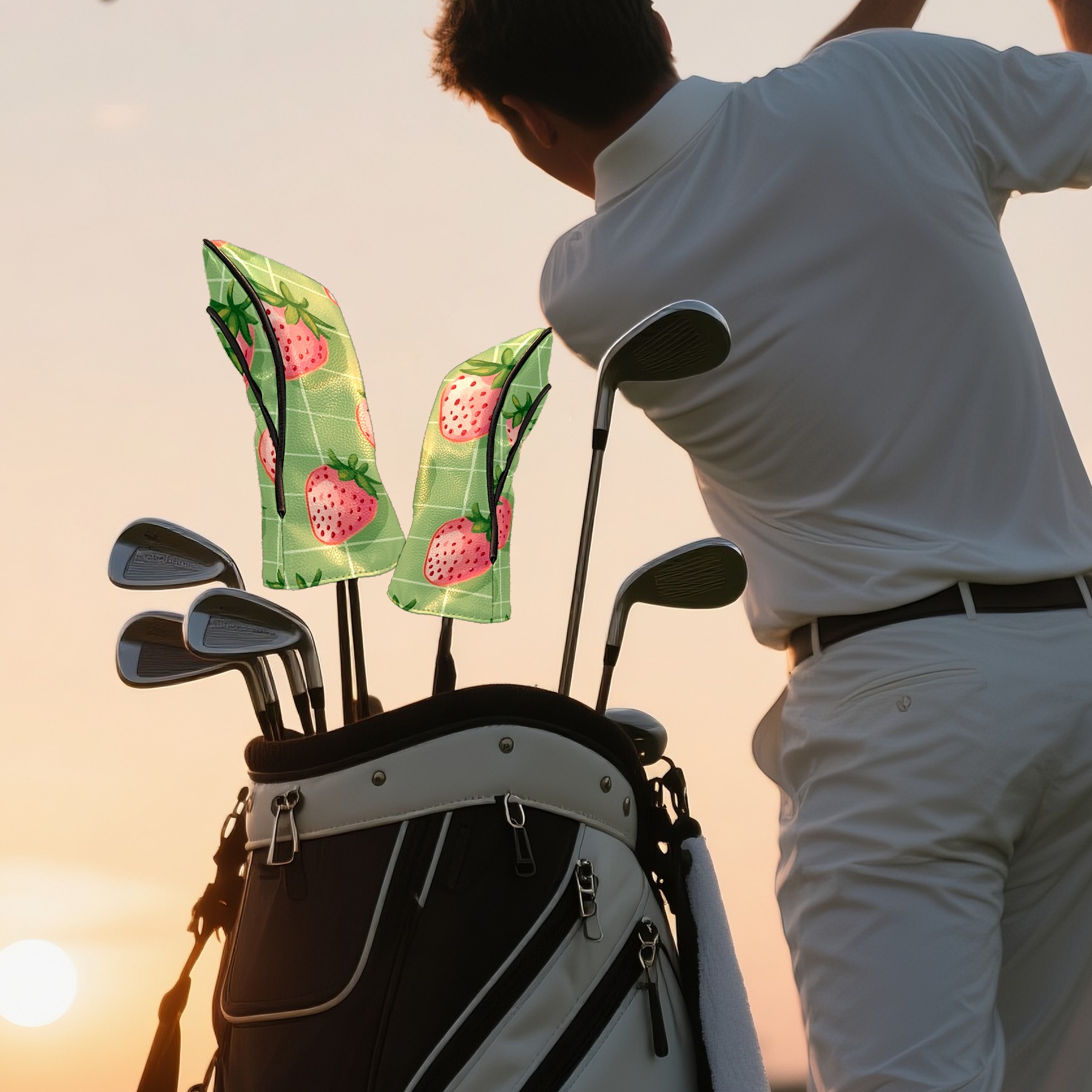 Black Golf Club Head Cover Golf Accessories Head Covers Set For Driver & Fairway Woods Pink Strawberries