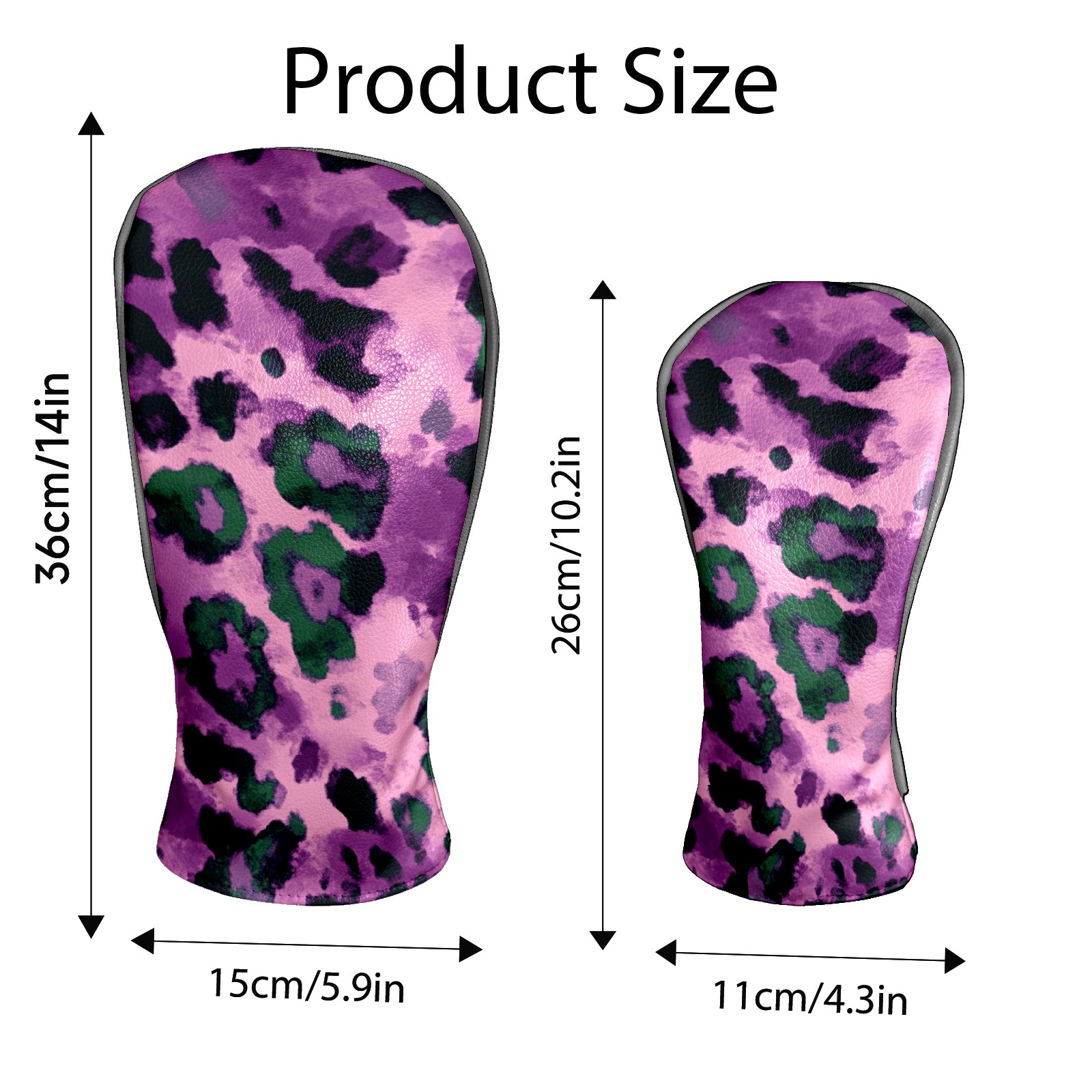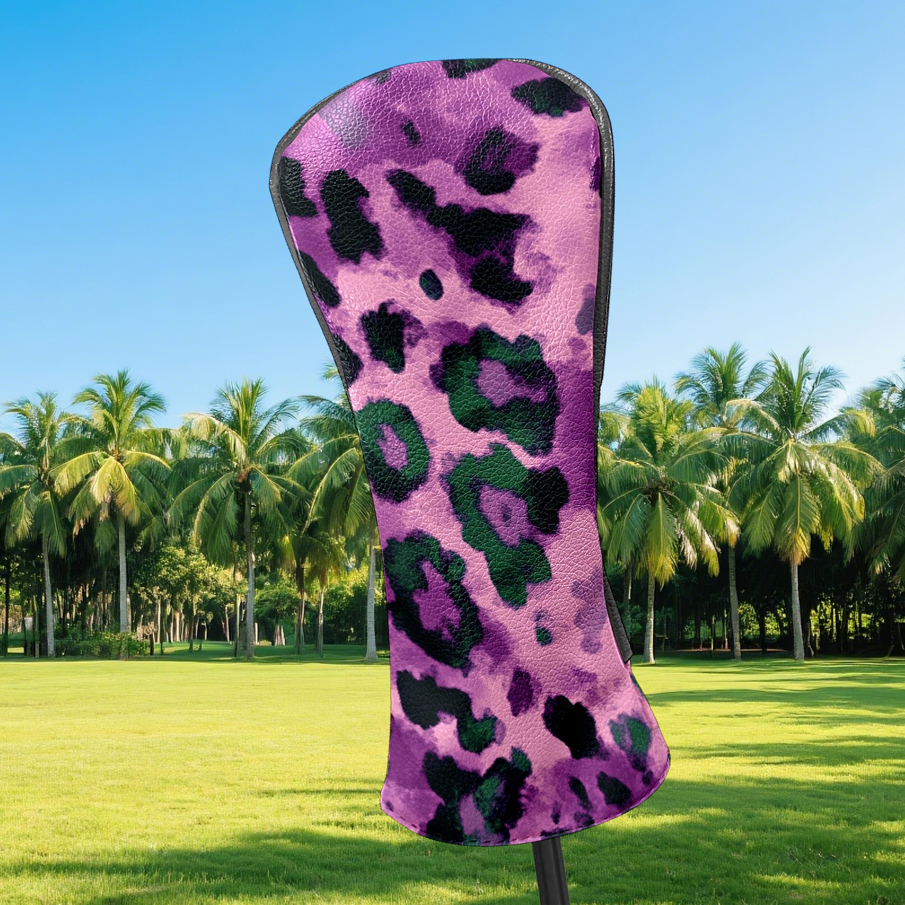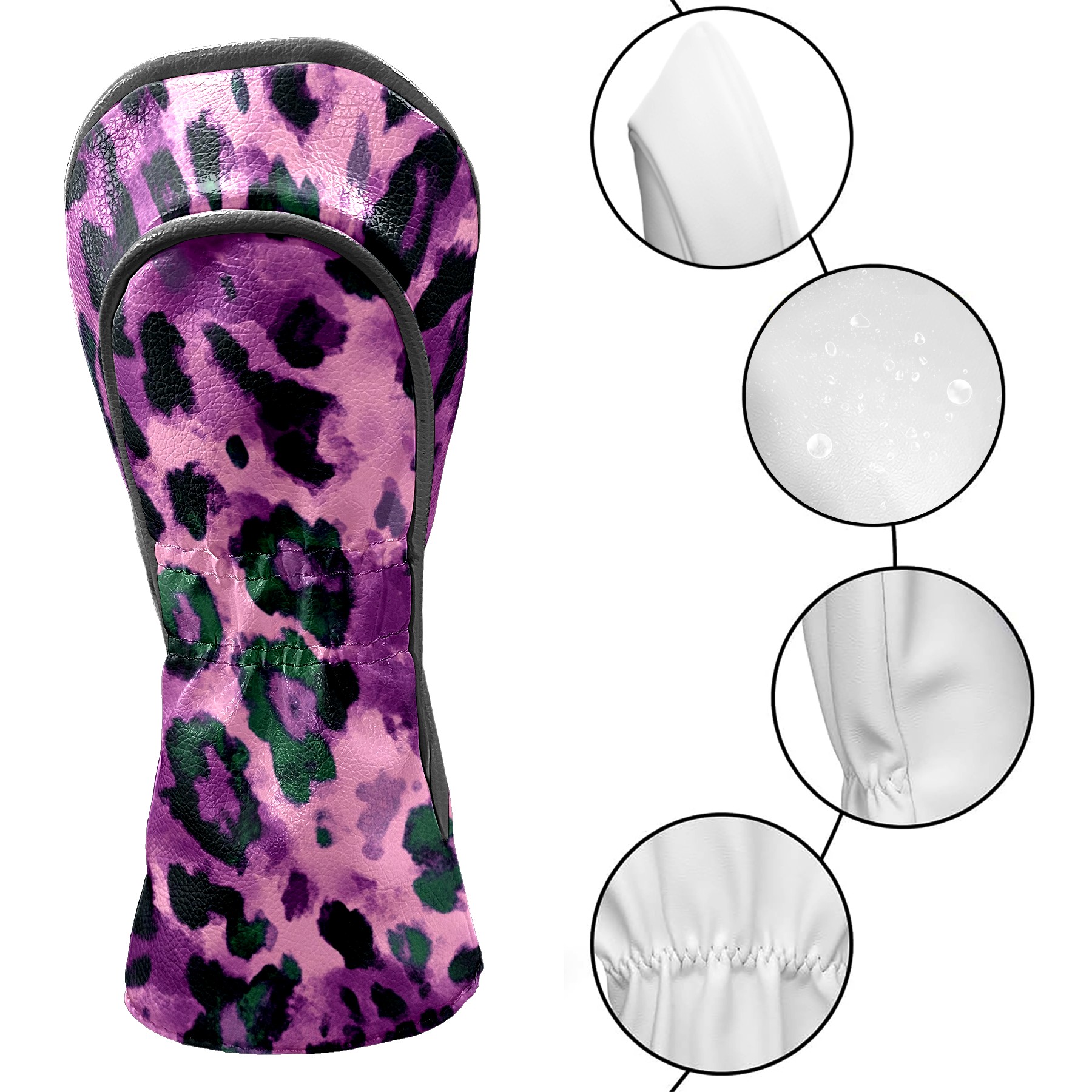 Black Golf Club Head Cover Golf Accessories Head Covers Set For Driver & Fairway Woods Purple And Green Leopard Print