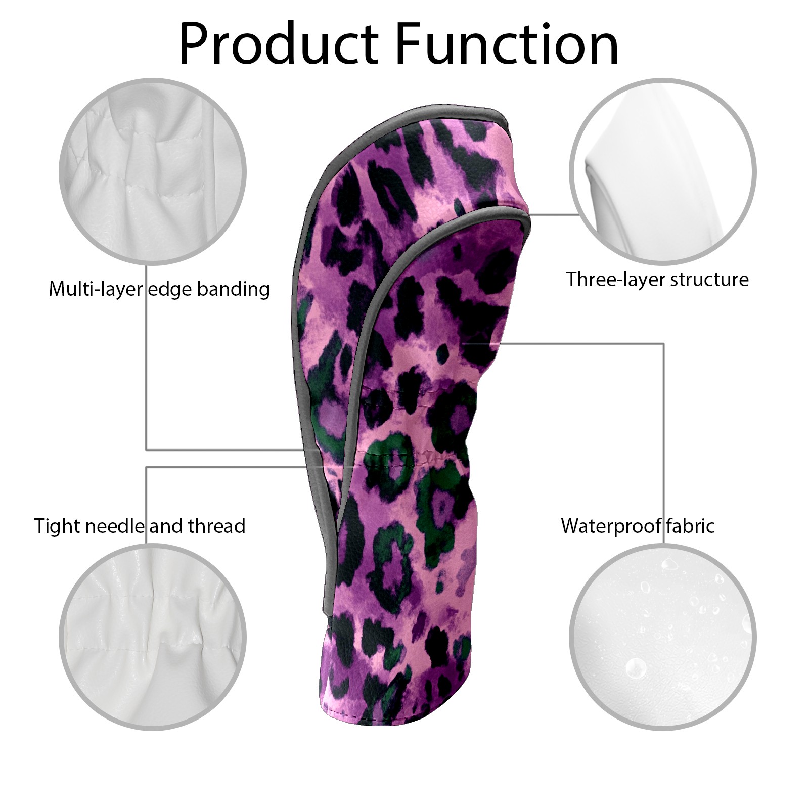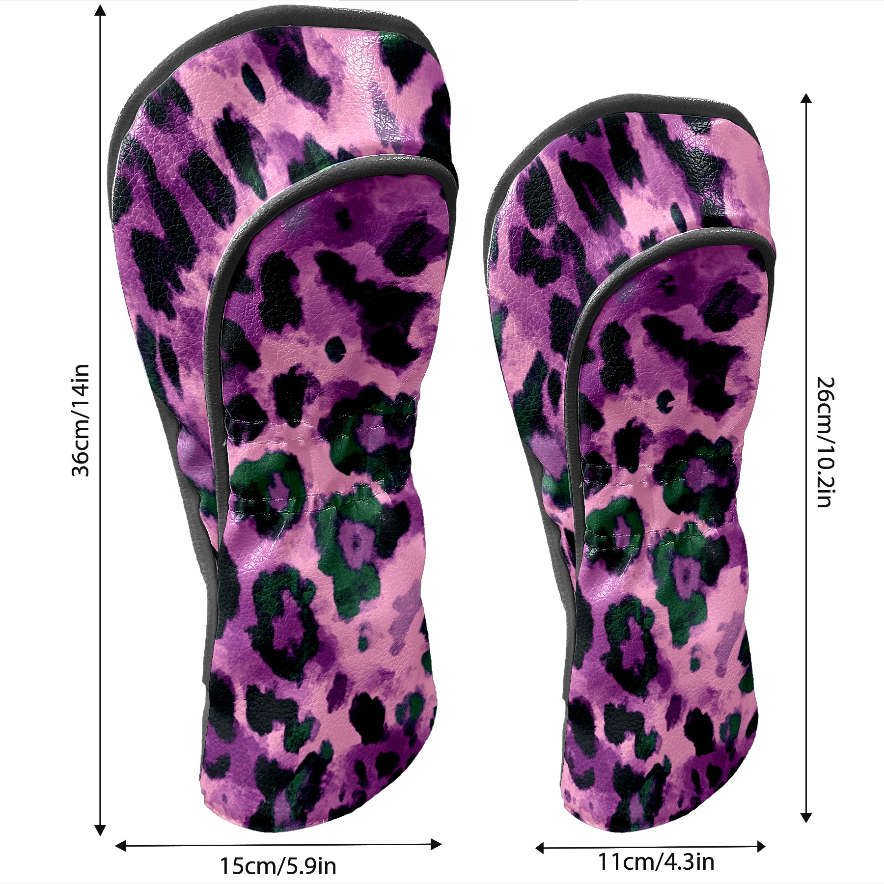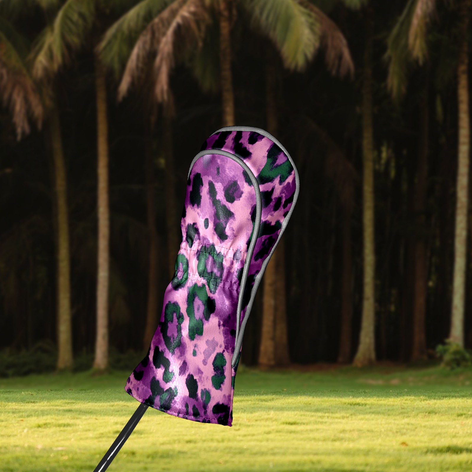 Black Golf Club Head Cover Golf Accessories Head Covers Set For Driver & Fairway Woods Purple And Green Leopard Print
