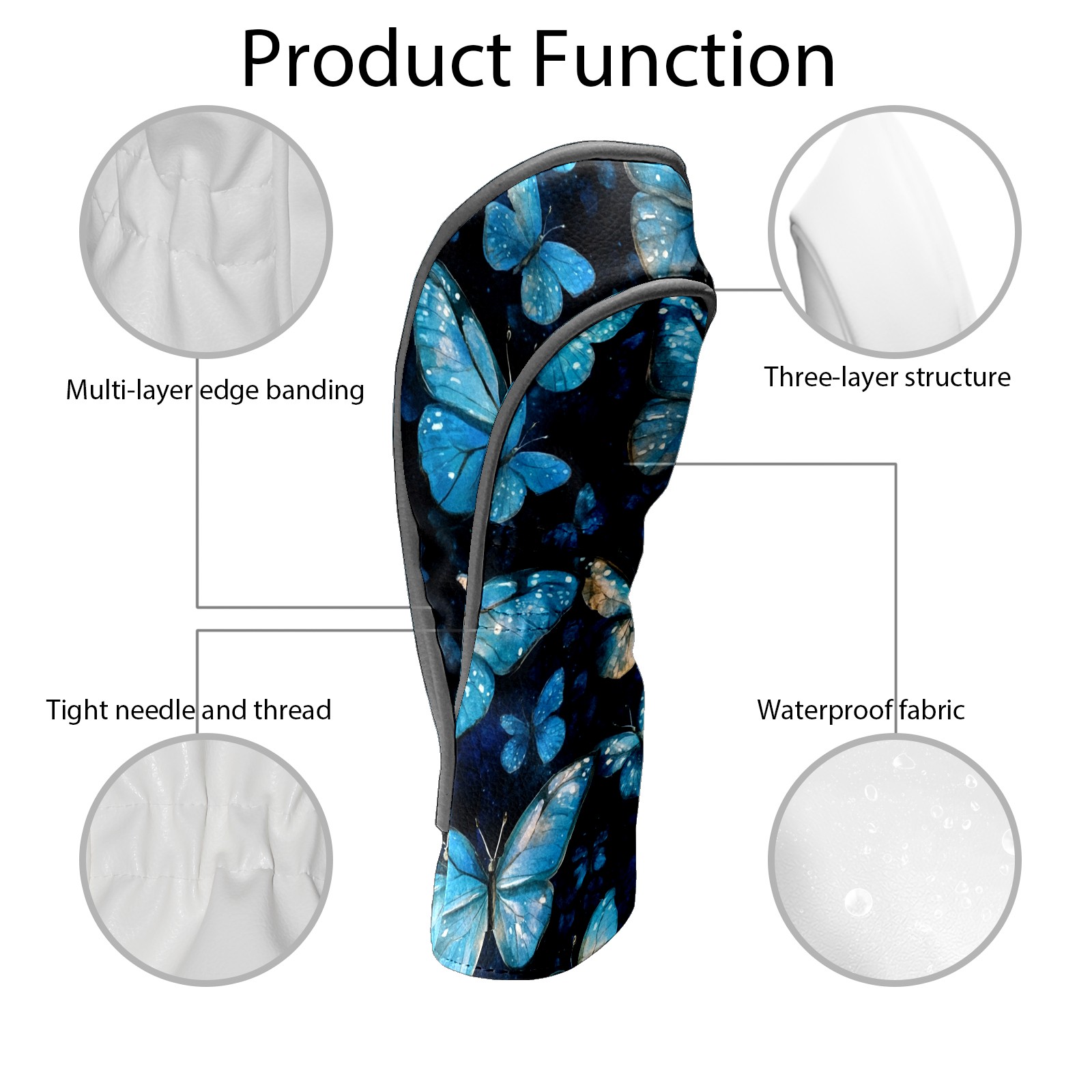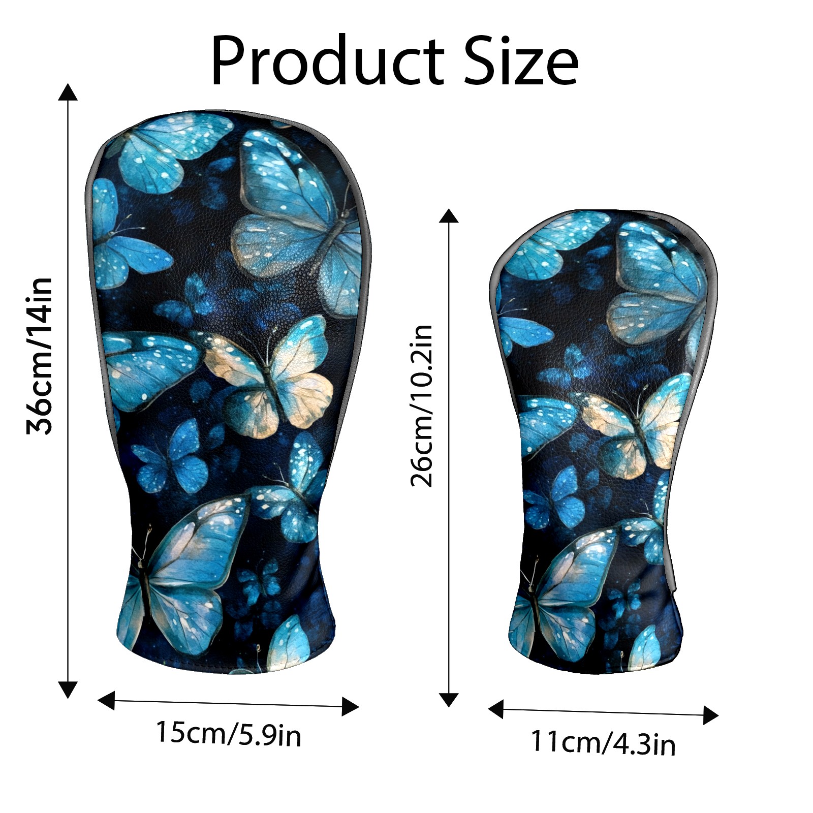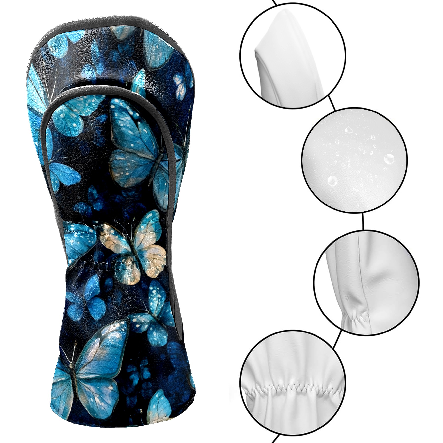 Black Golf Club Head Cover Golf Accessories Head Covers Set For Driver & Fairway Woods Turquoise And Blue Butterflies