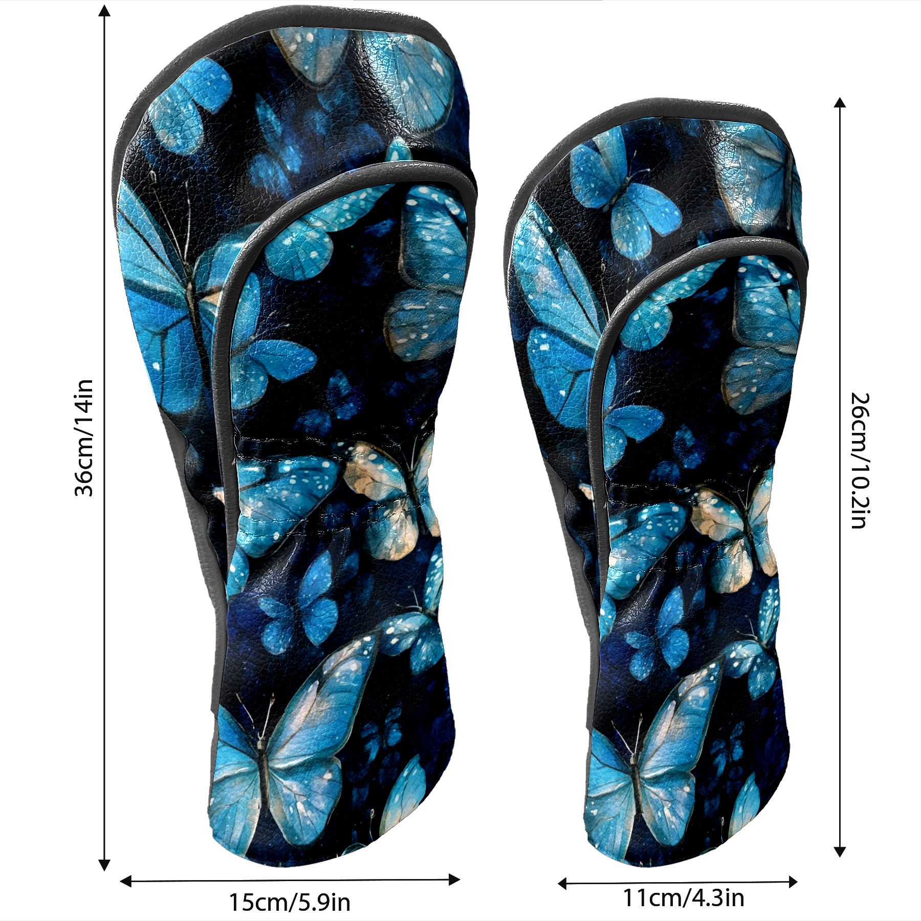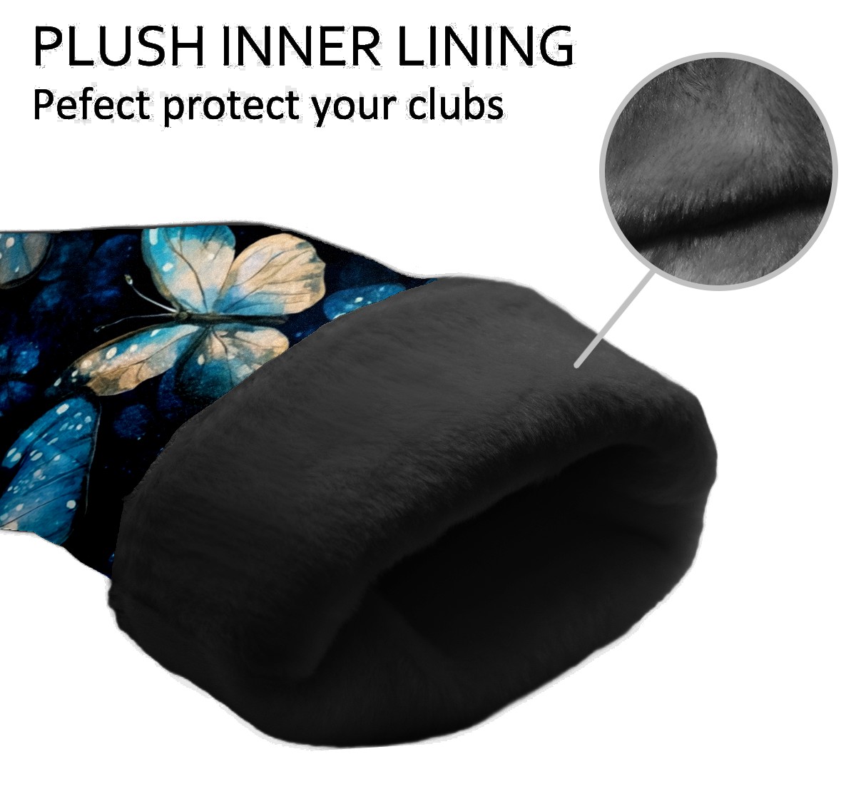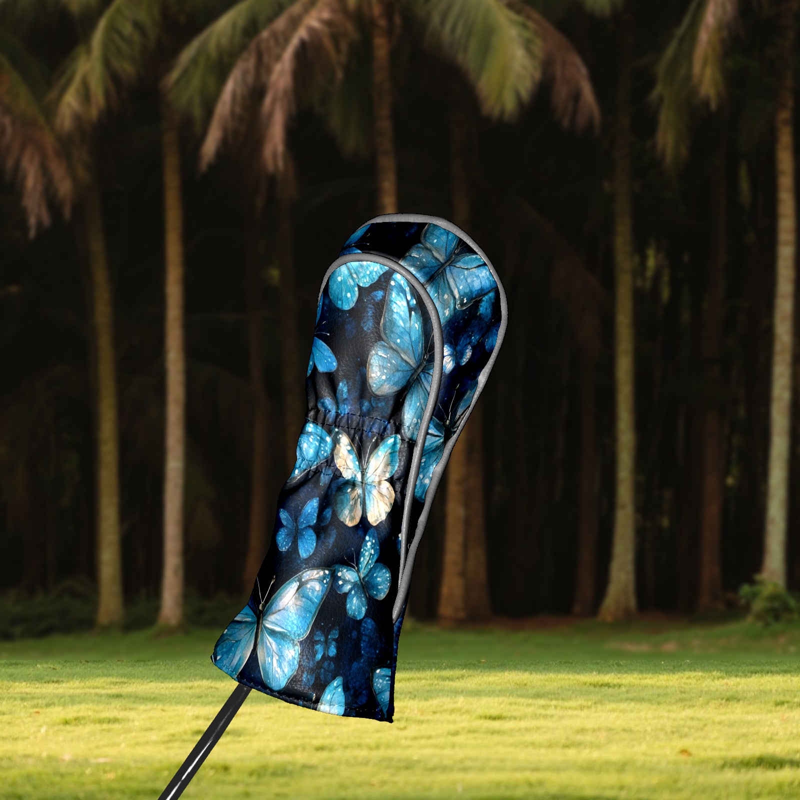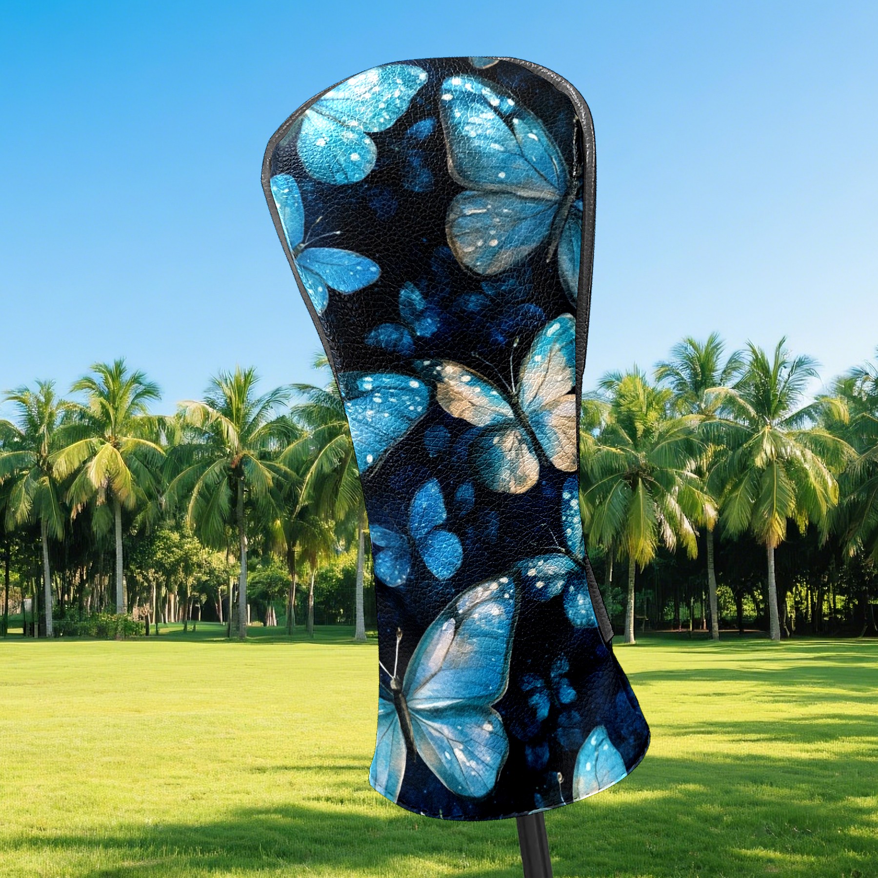 Black Golf Club Head Cover Golf Accessories Head Covers Set For Driver & Fairway Woods Turquoise And Blue Butterflies