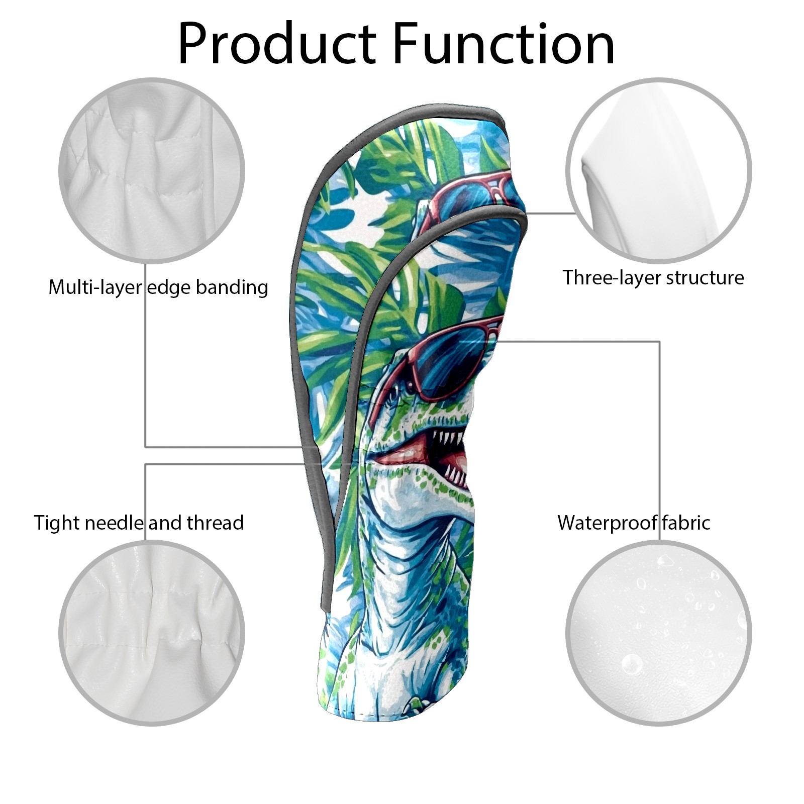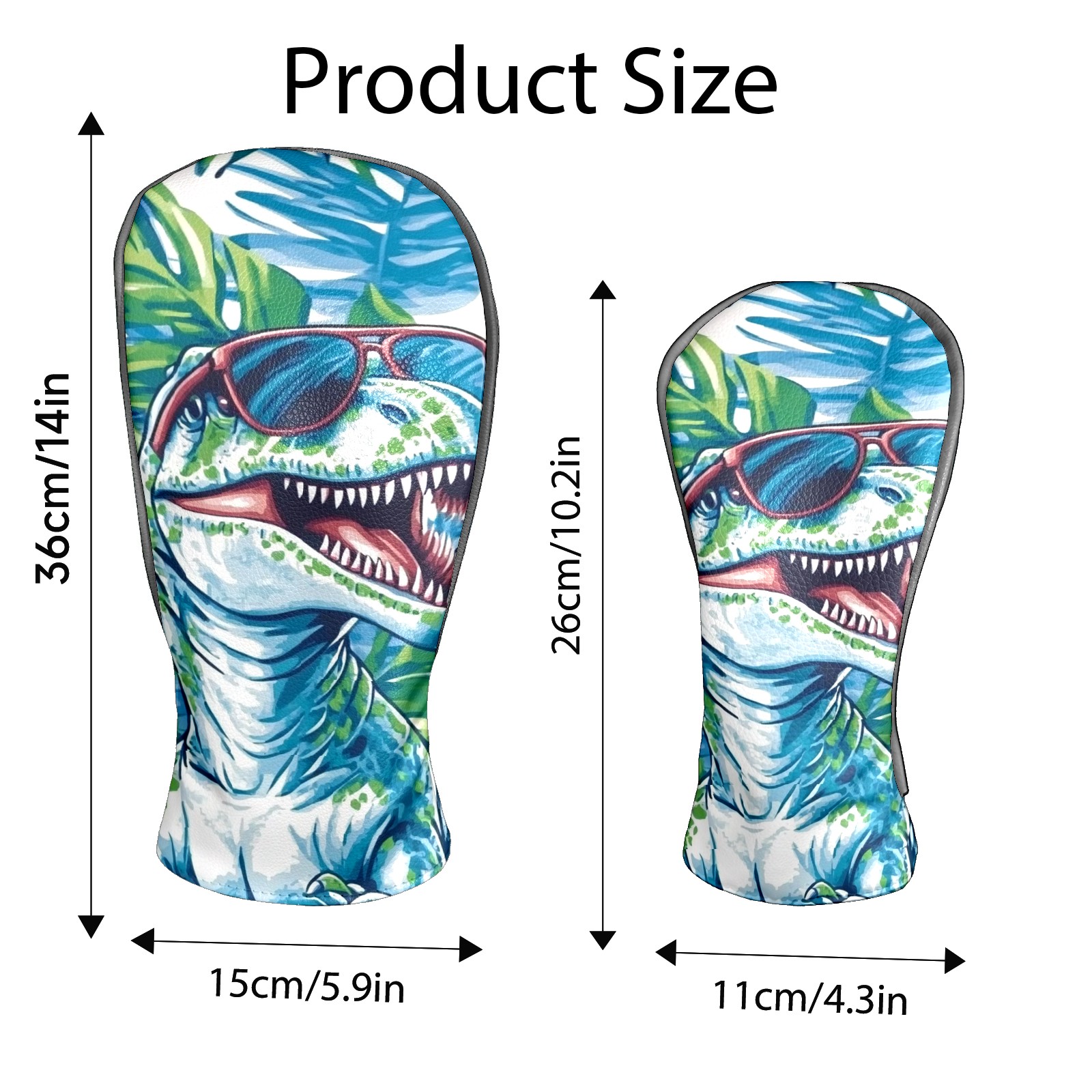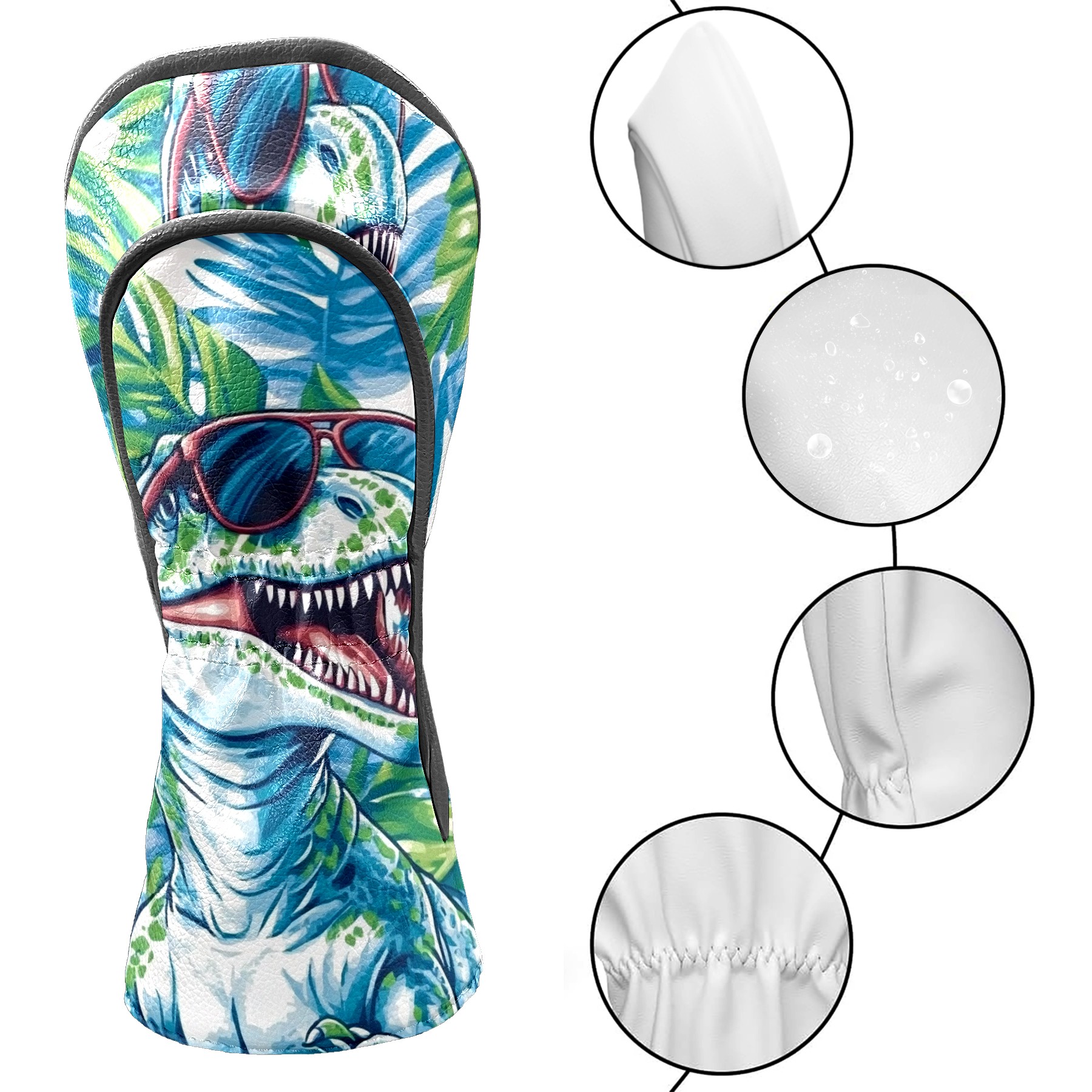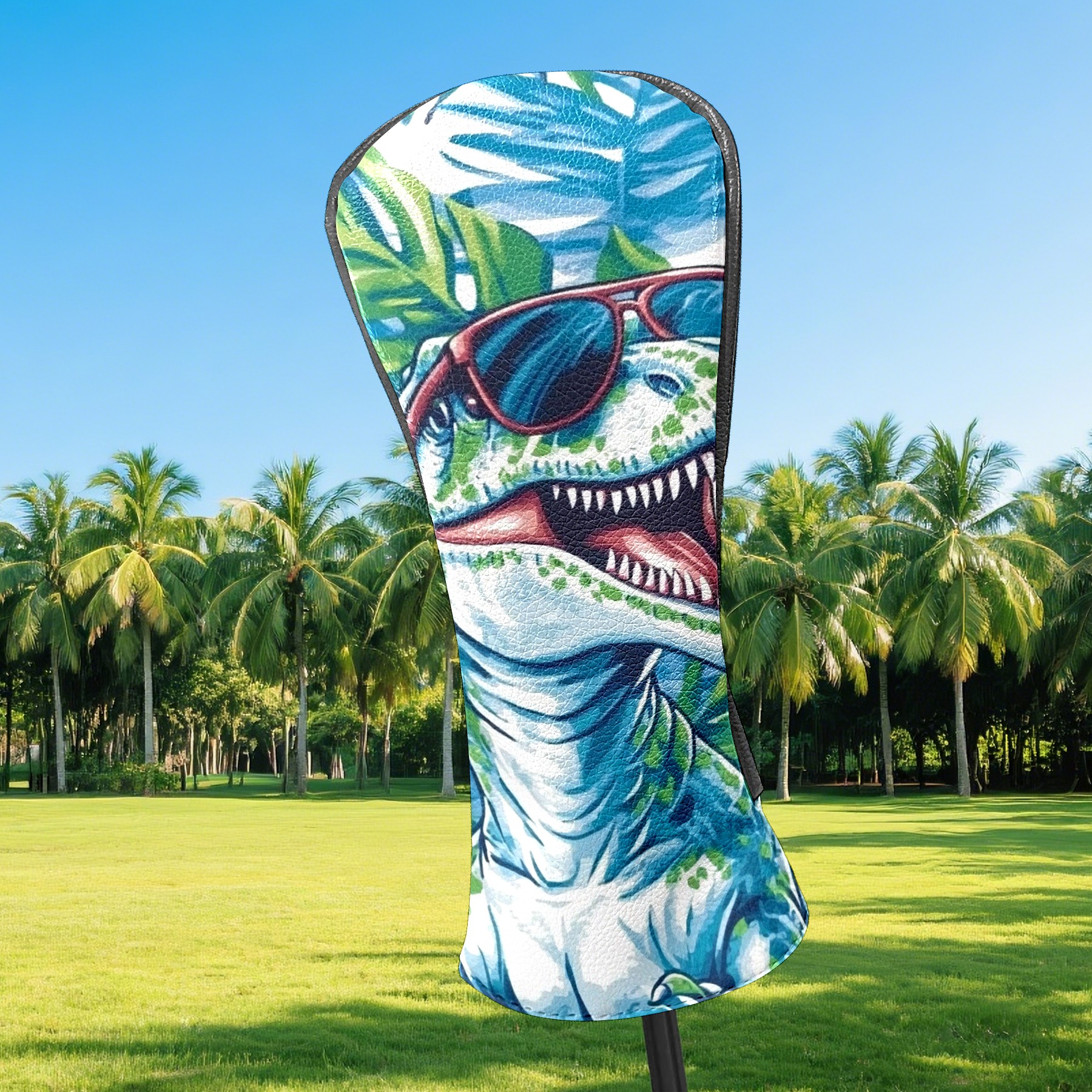 Black Golf Club Head Cover Golf Accessories Head Covers Set For Driver & Fairway Woods T-rex Wearing Sunglasses