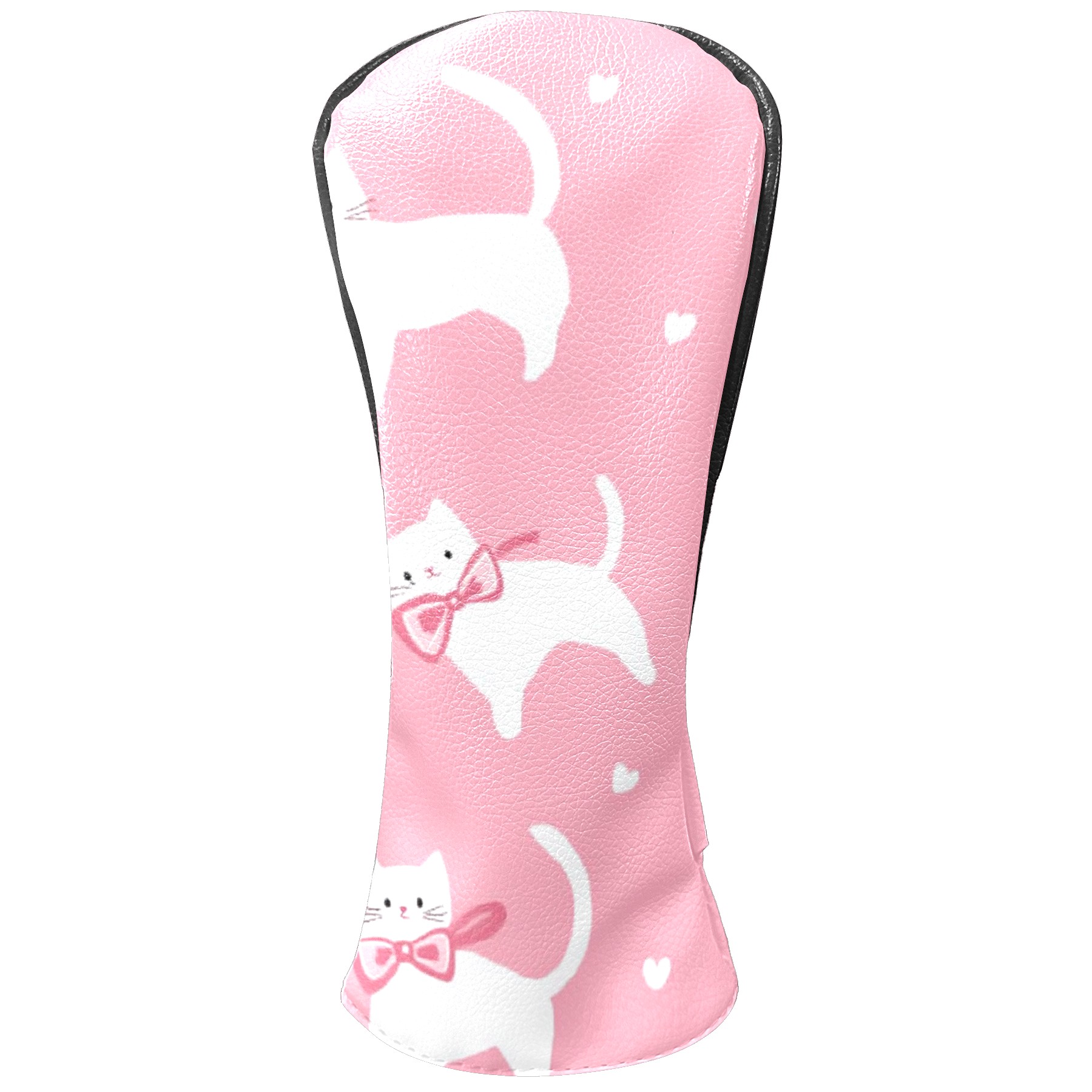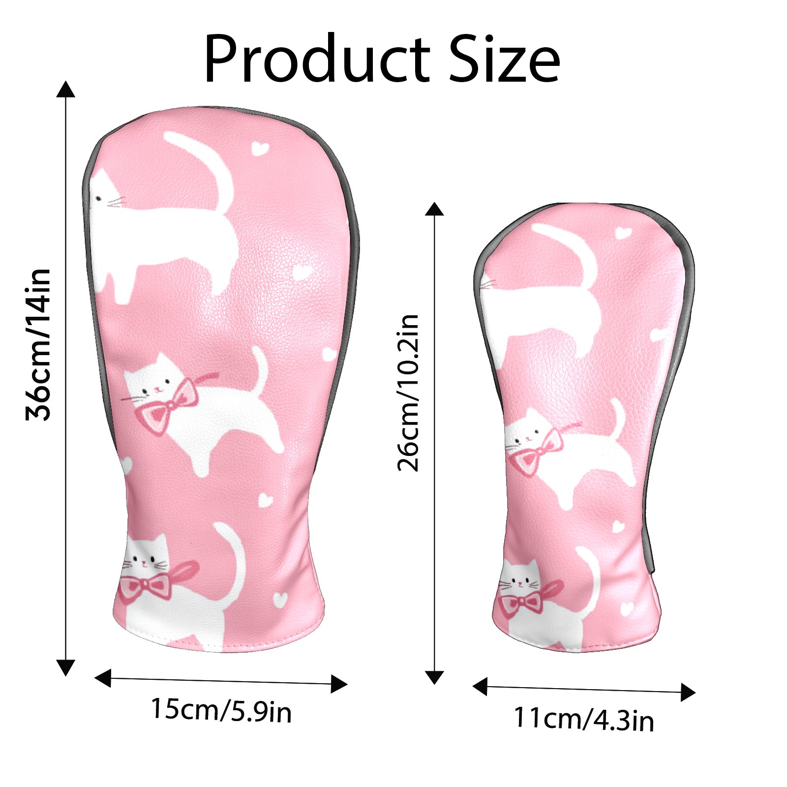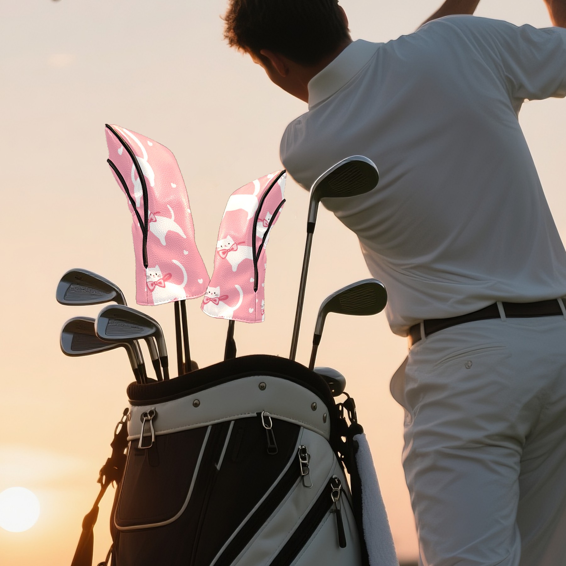 Black Golf Club Head Cover Golf Accessories Head Covers Set For Driver & Fairway Woods White Cats And Bows