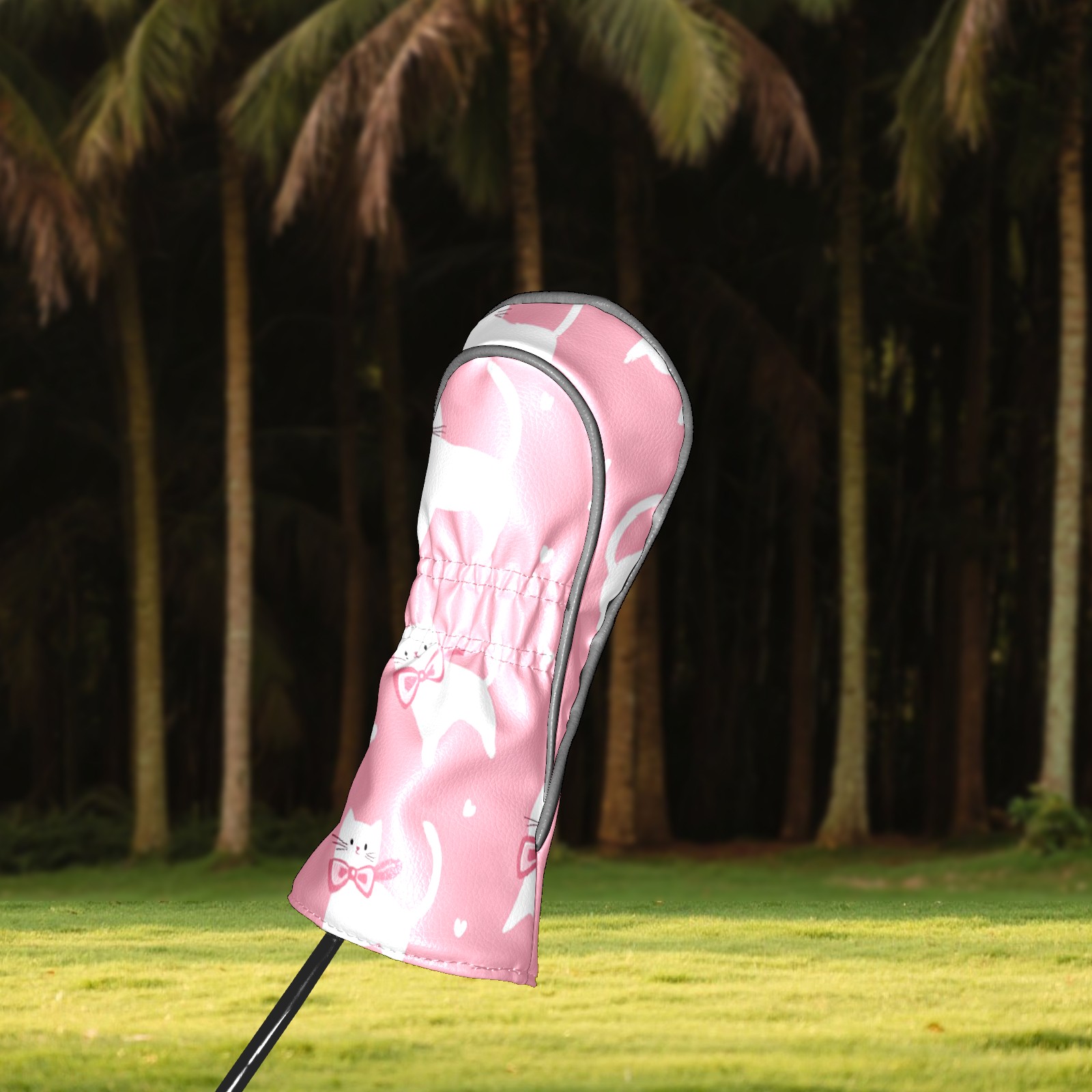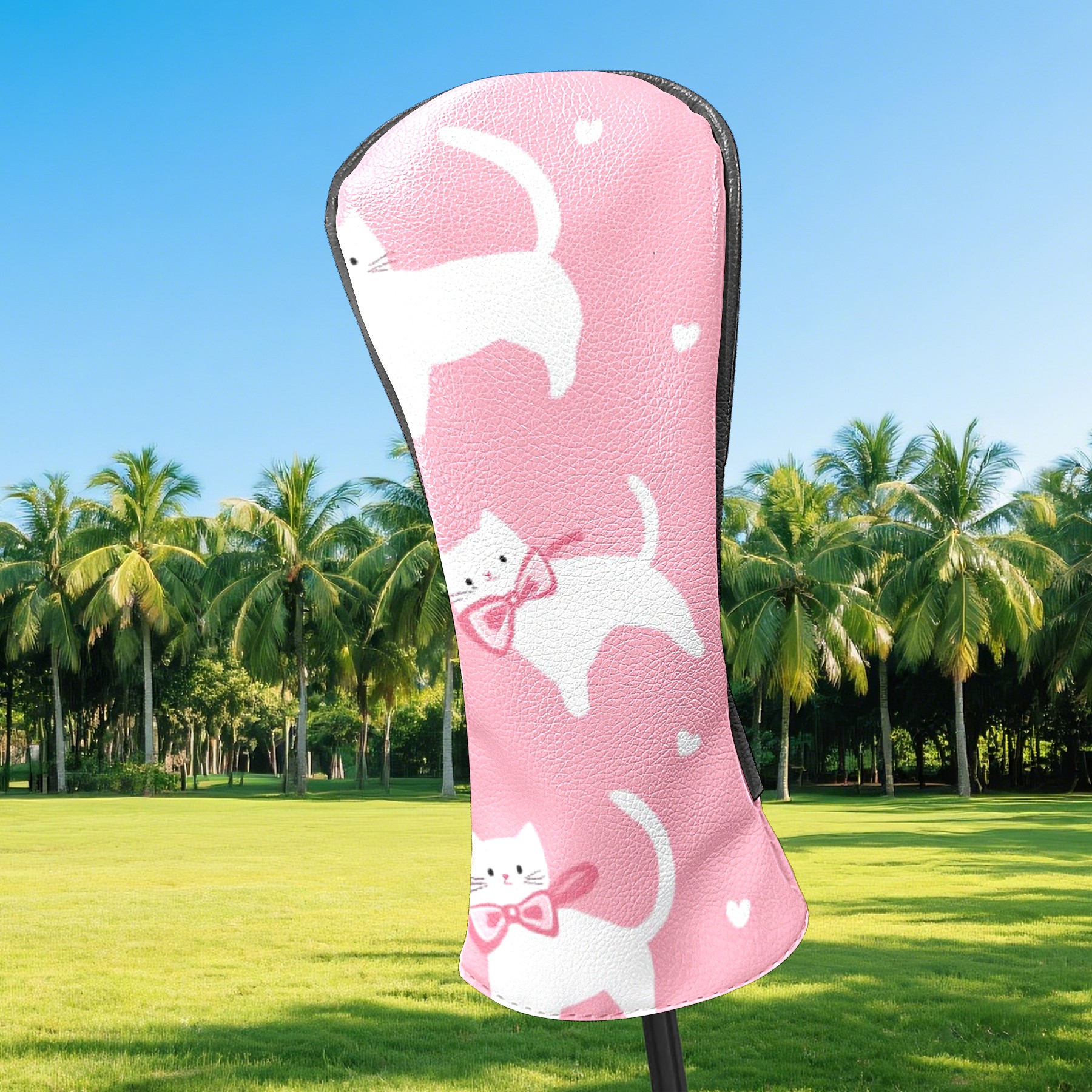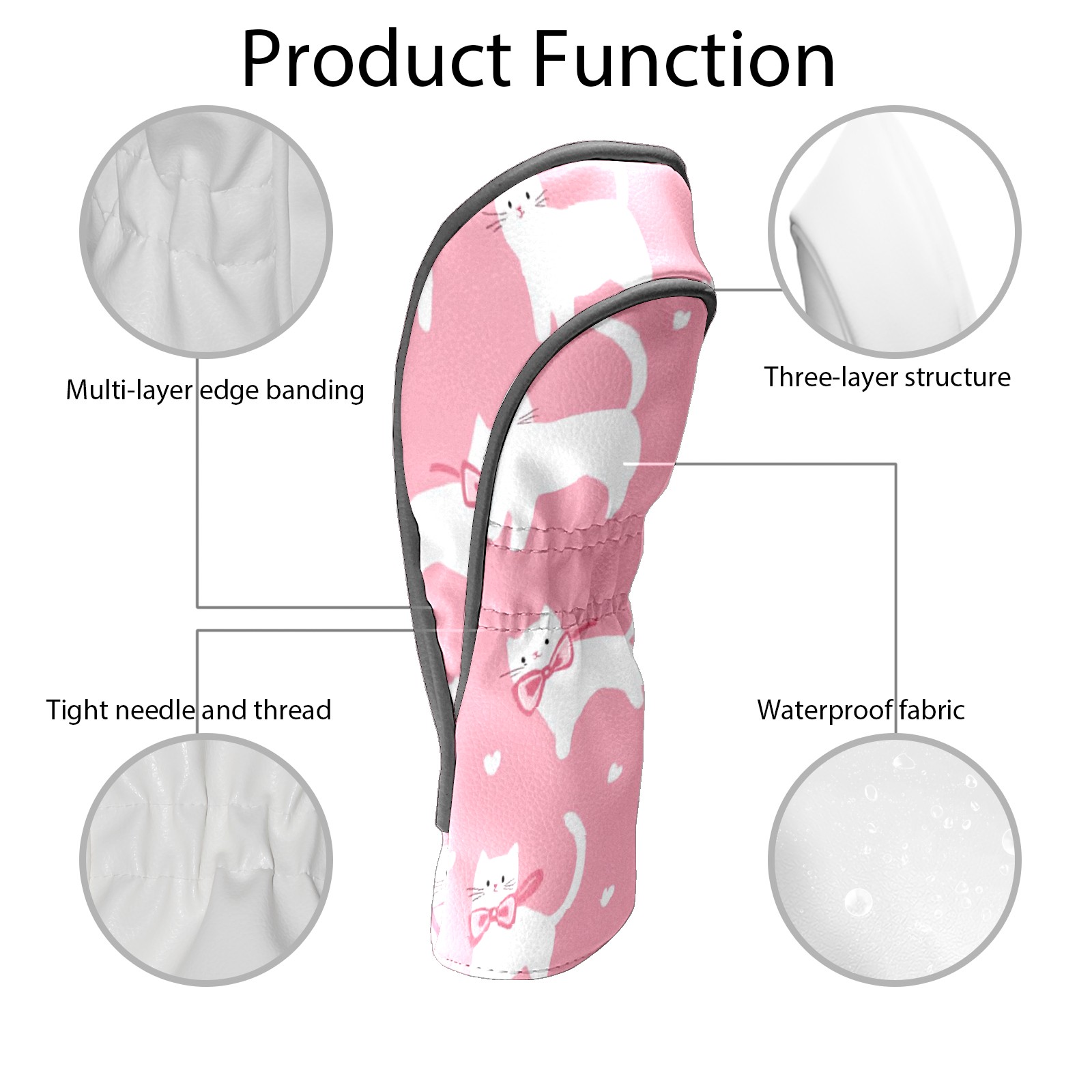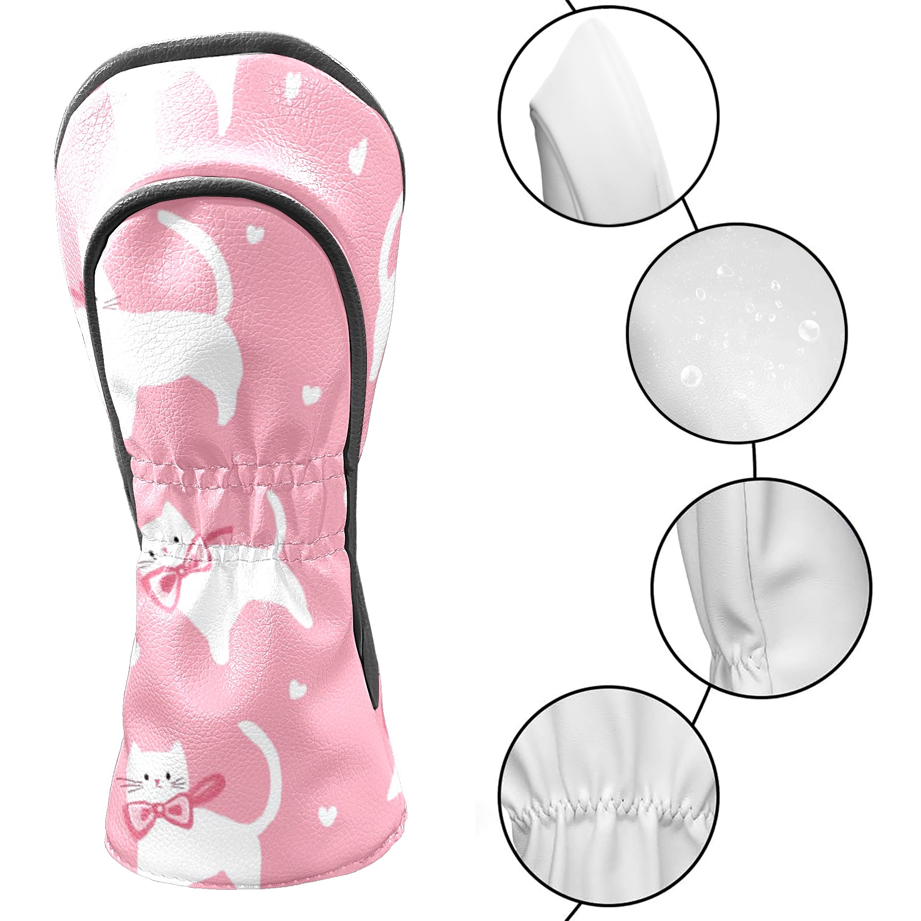 Black Golf Club Head Cover Golf Accessories Head Covers Set For Driver & Fairway Woods White Cats And Bows