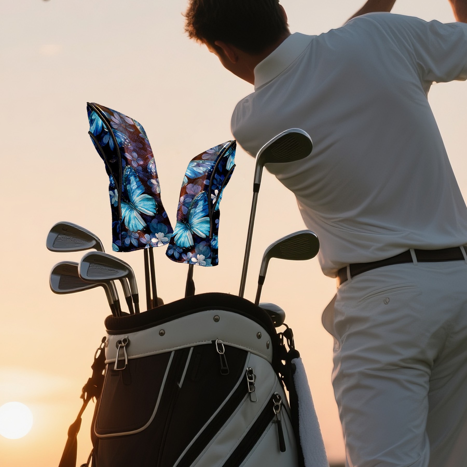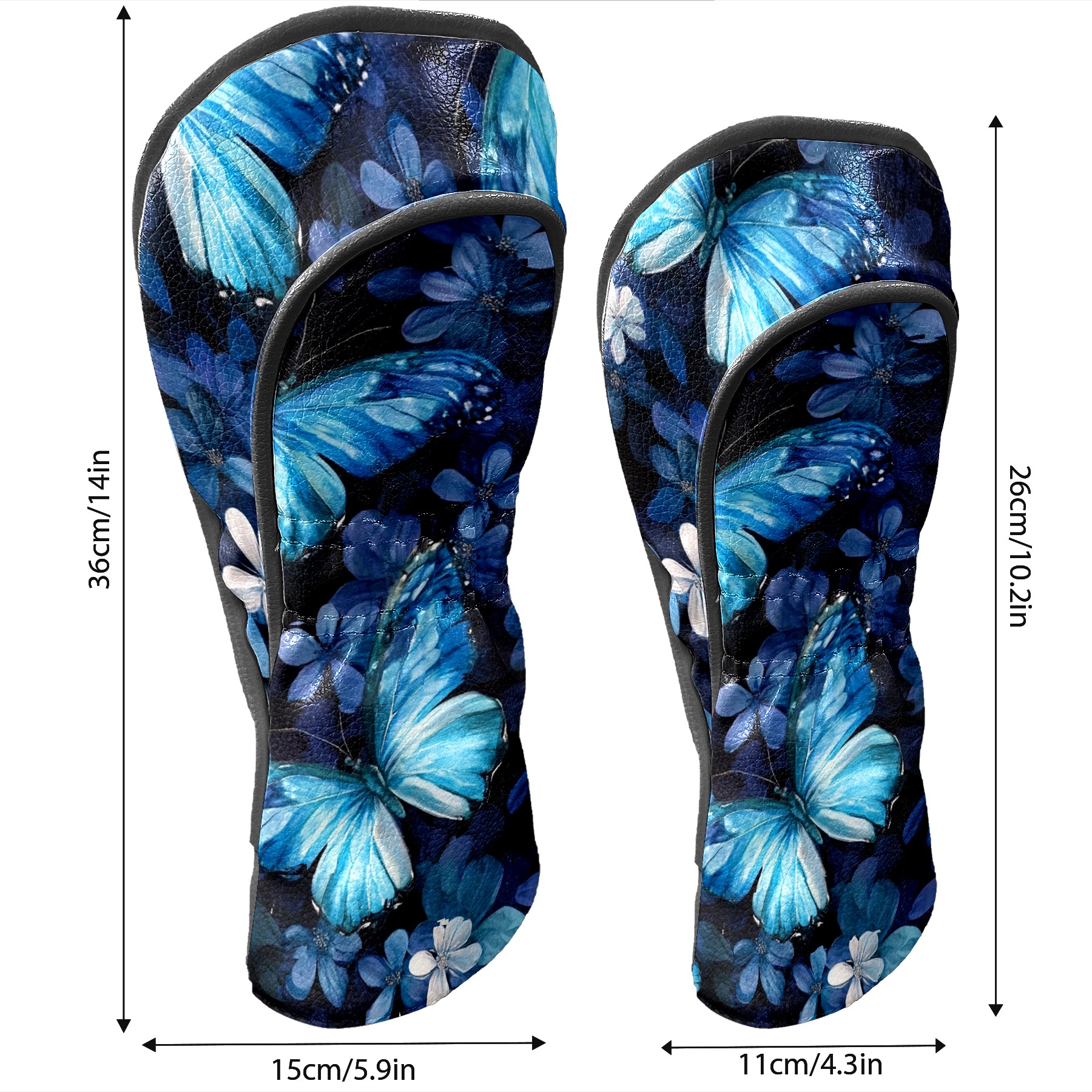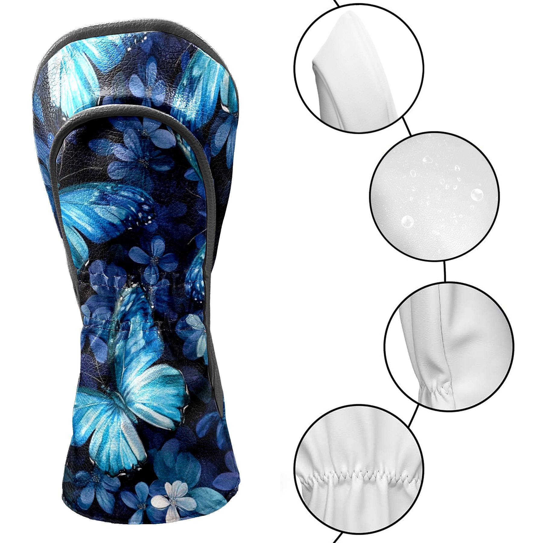 Black Golf Club Head Cover Golf Accessories Head Covers Set For Driver & Fairway Woods Turquoise Butterflies