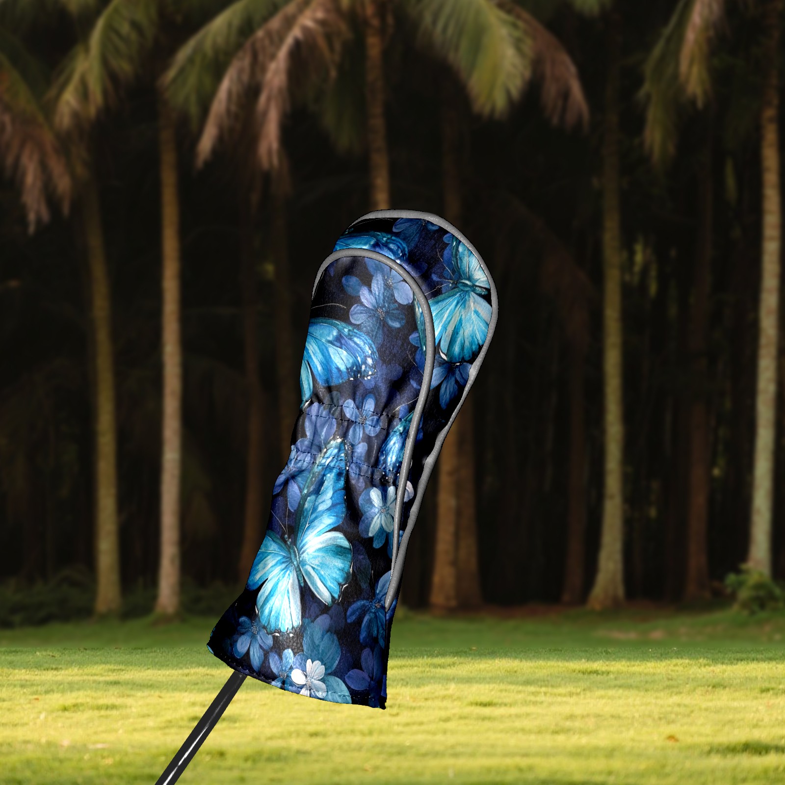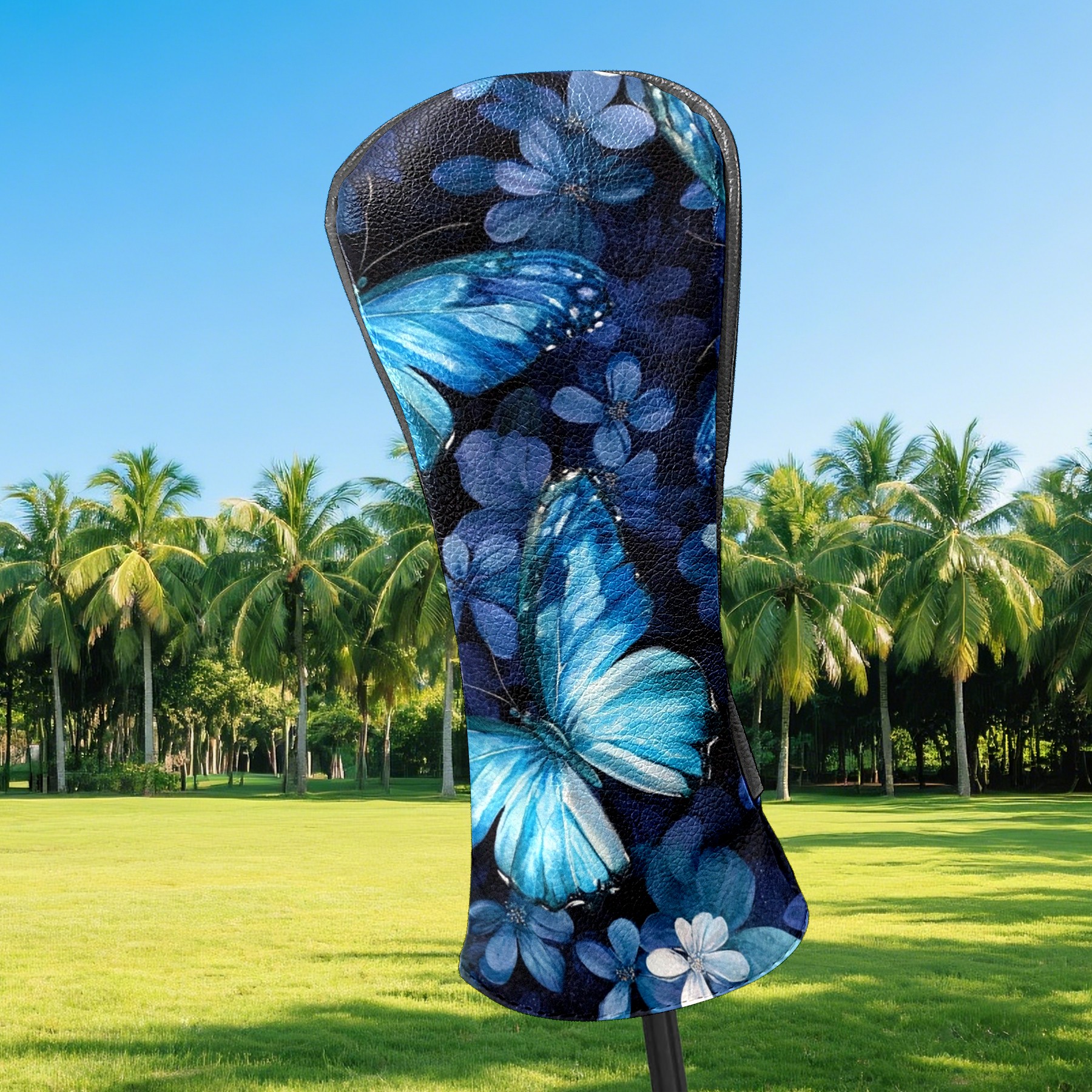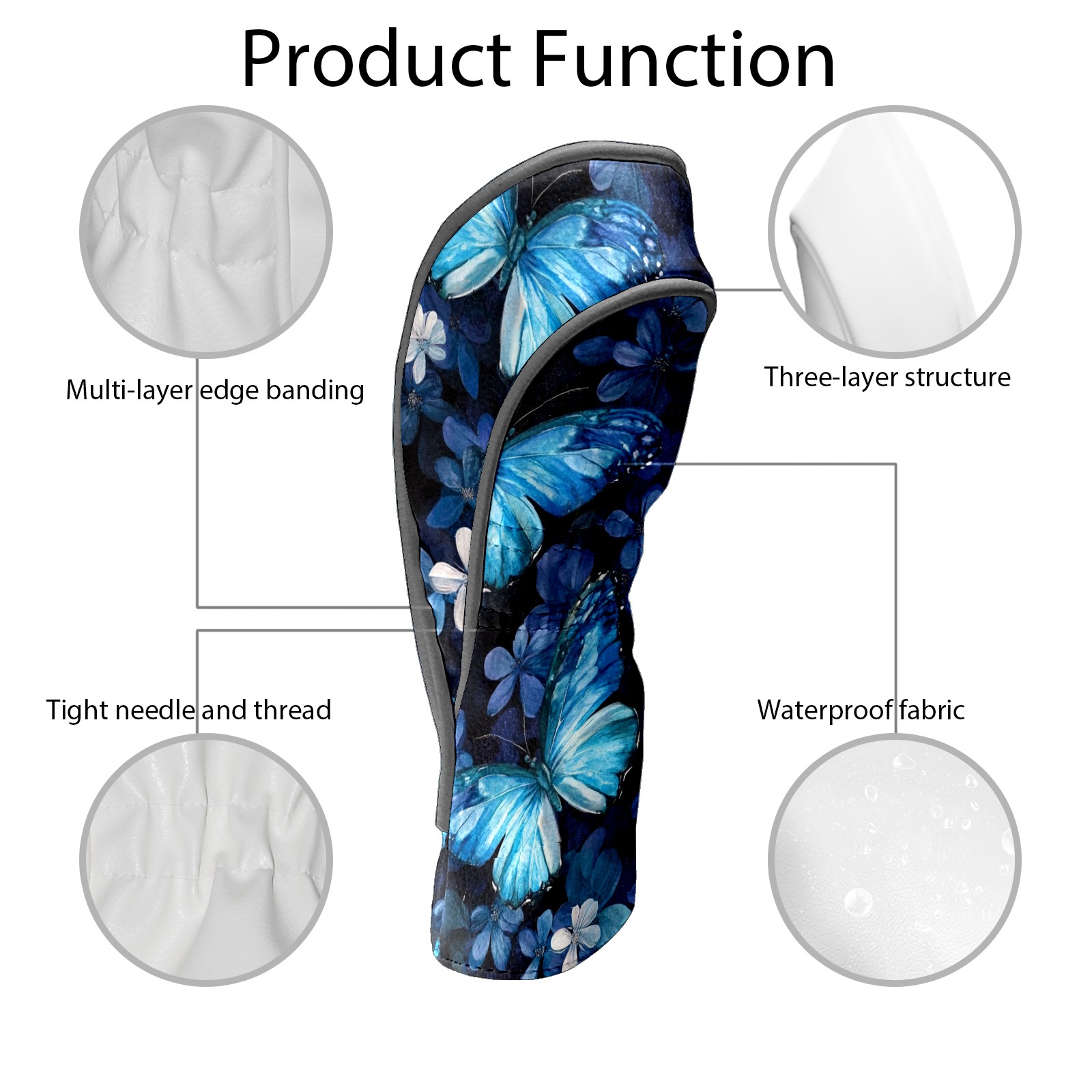 Black Golf Club Head Cover Golf Accessories Head Covers Set For Driver & Fairway Woods Turquoise Butterflies