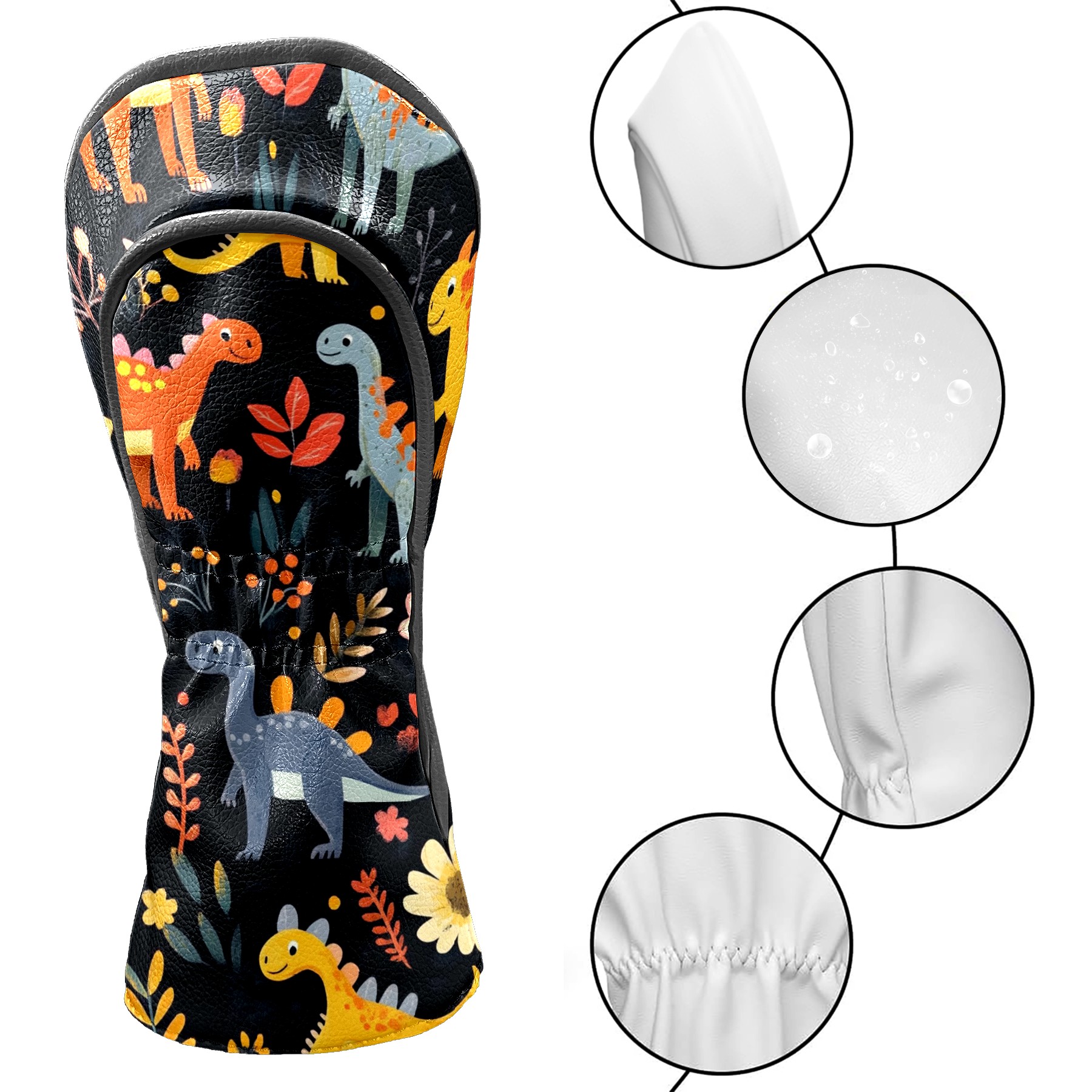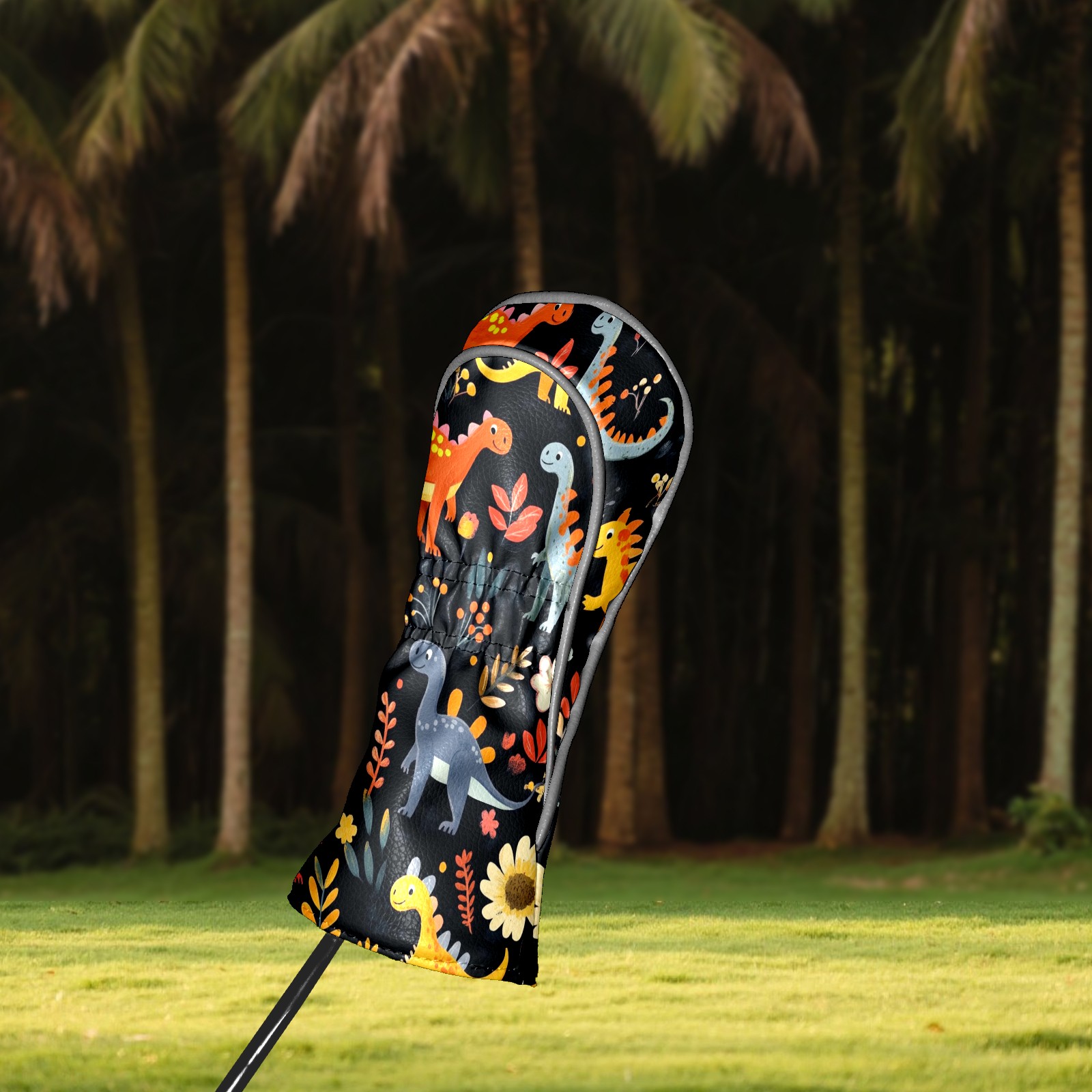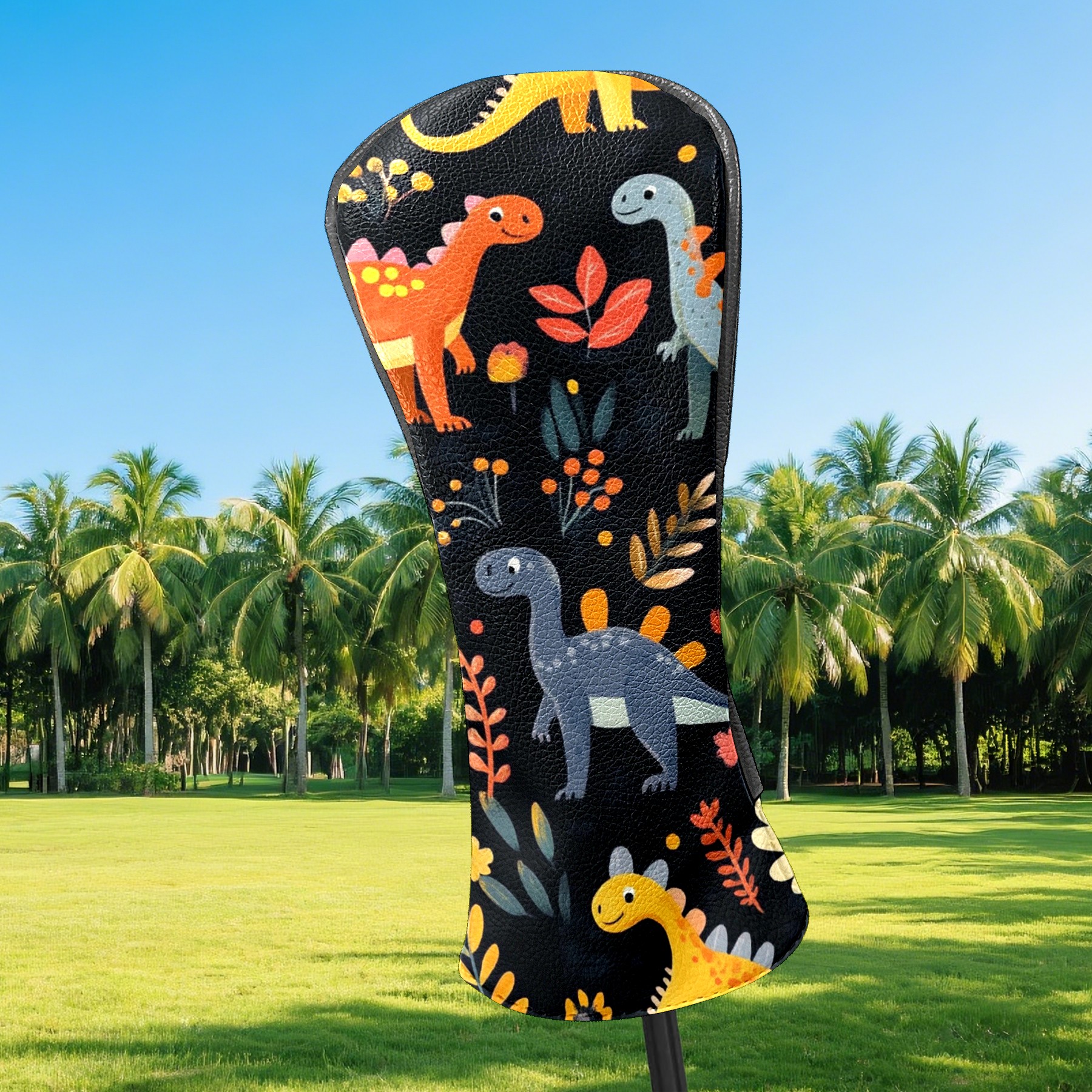 Black Golf Club Head Cover Golf Accessories Head Covers Set For Driver & Fairway Woods Playful Dinosaurs Pattern