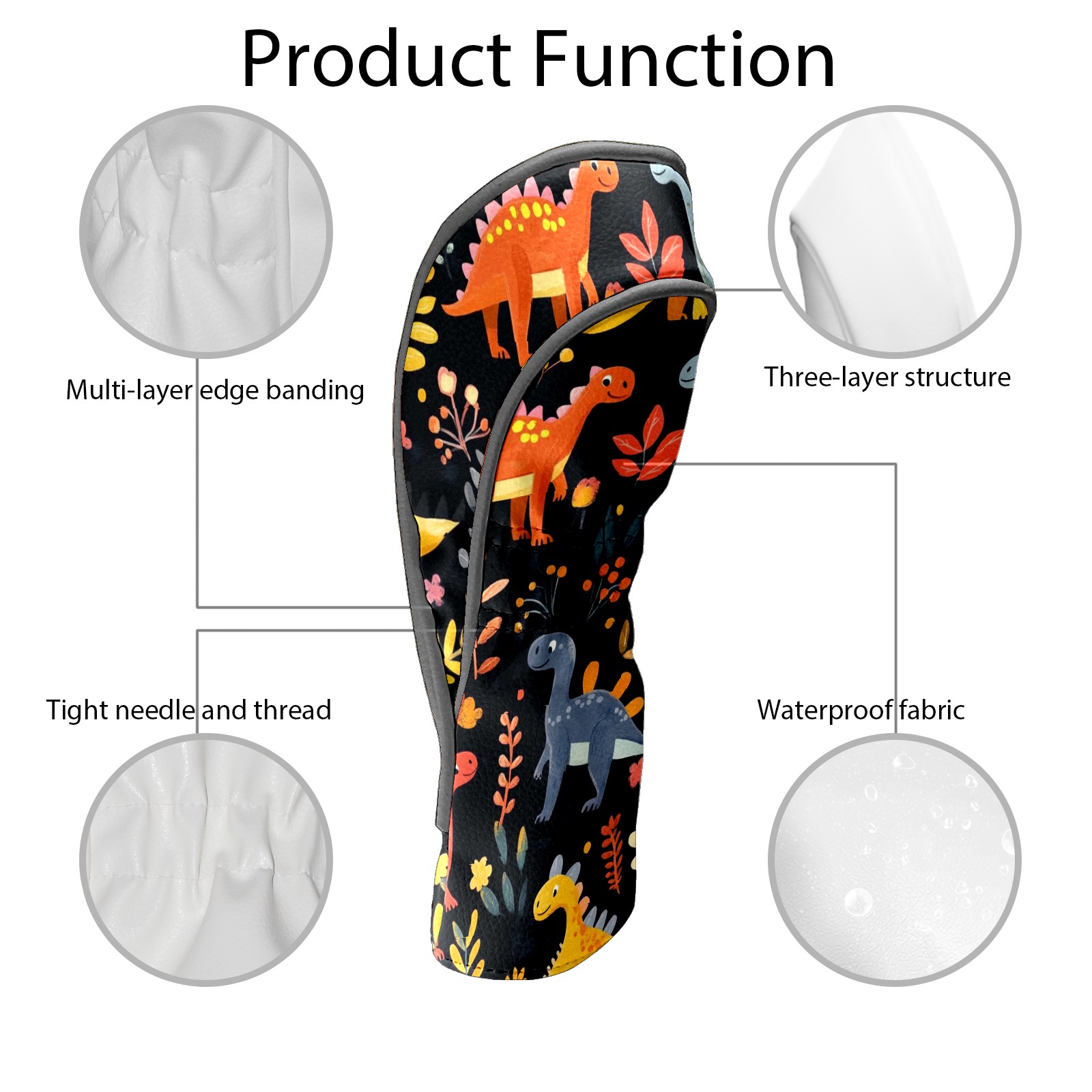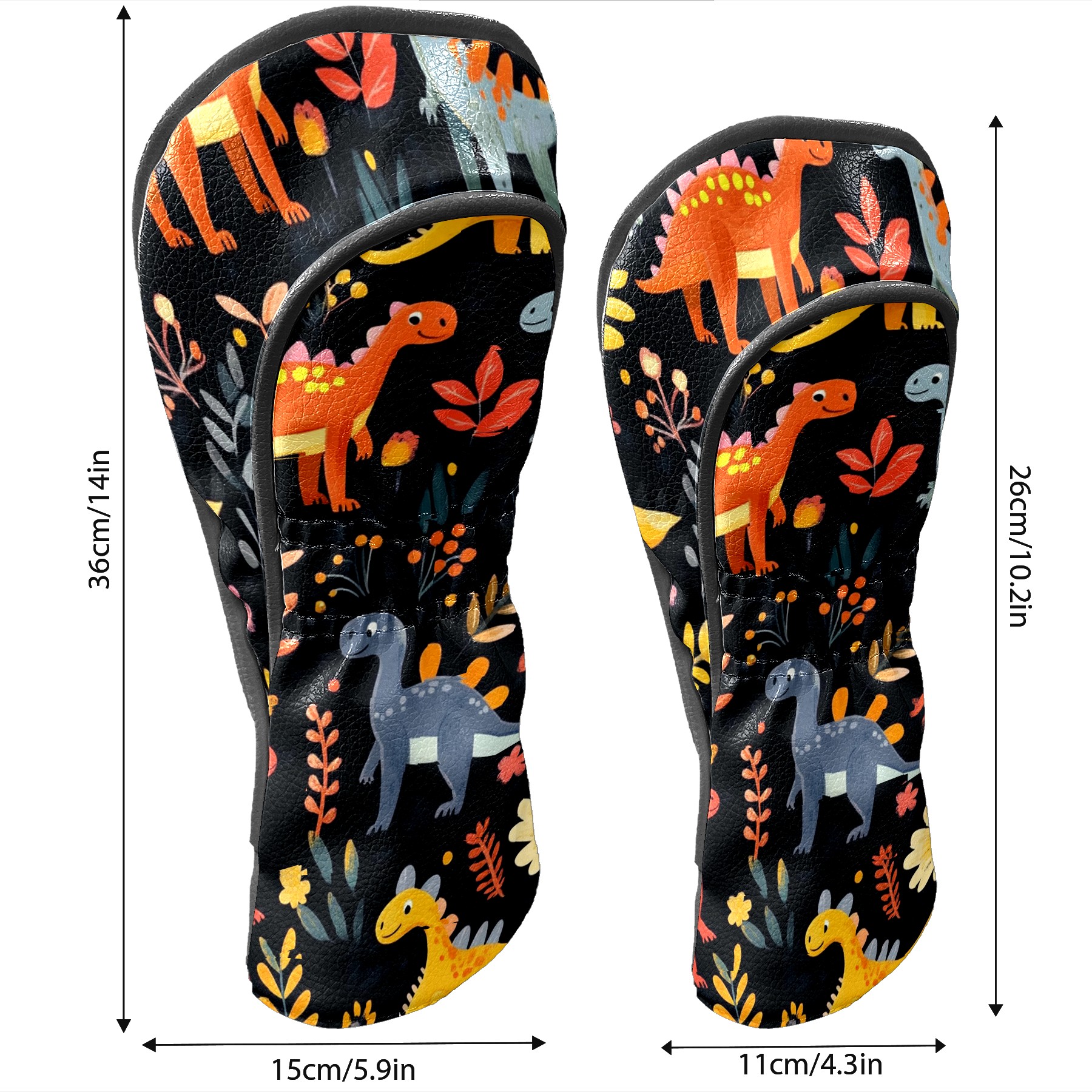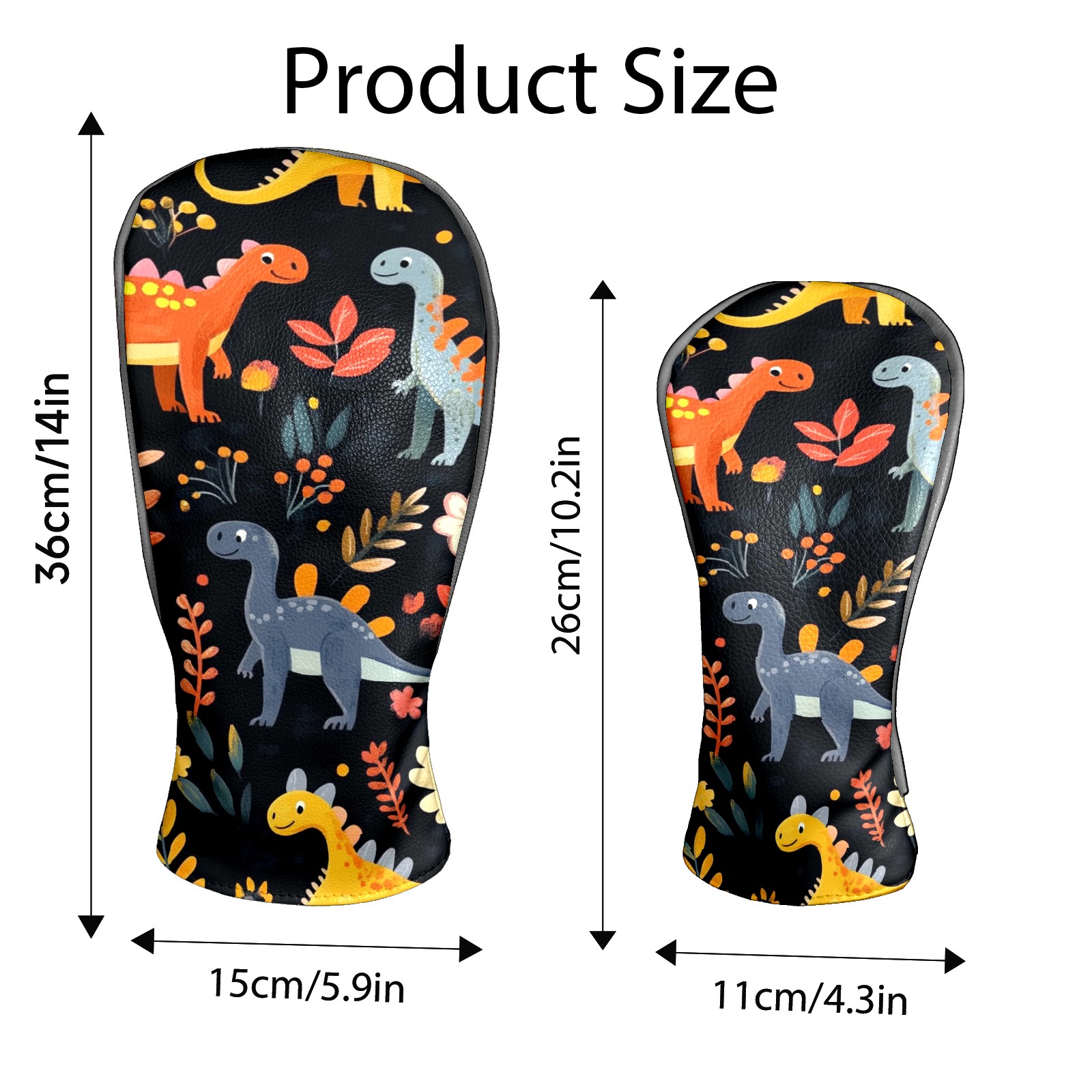Black Golf Club Head Cover Golf Accessories Head Covers Set For Driver & Fairway Woods Playful Dinosaurs Pattern