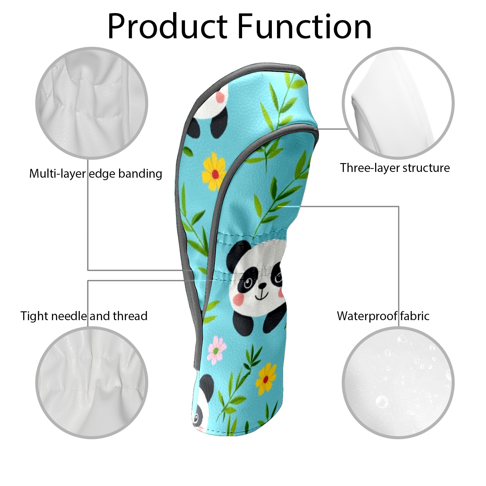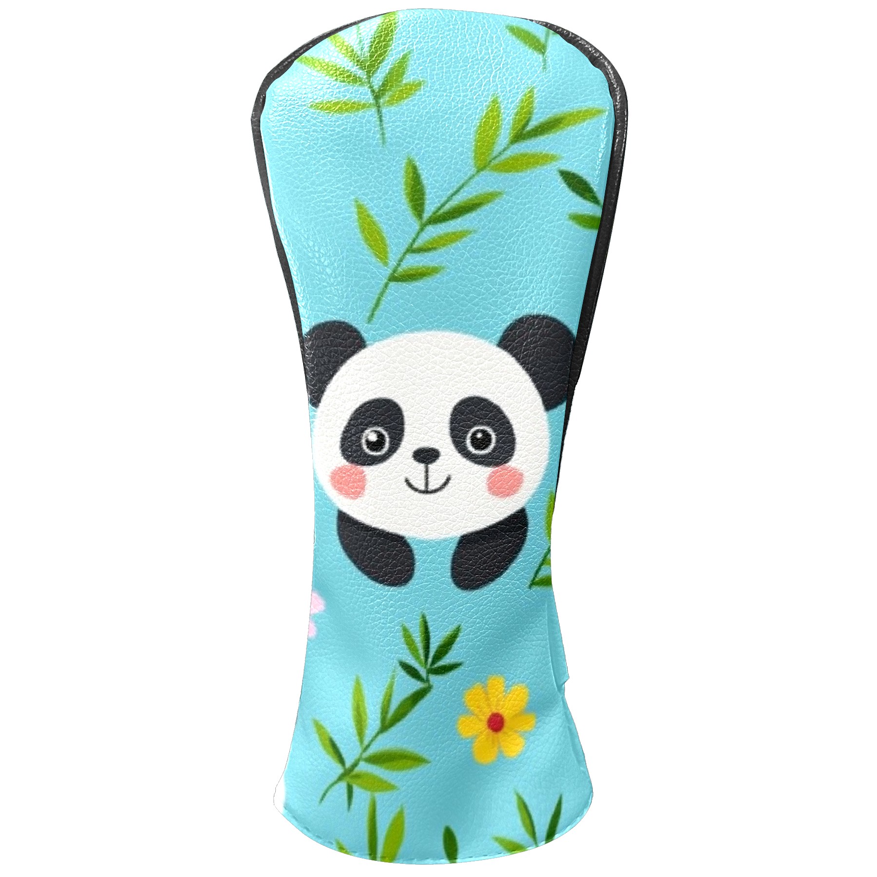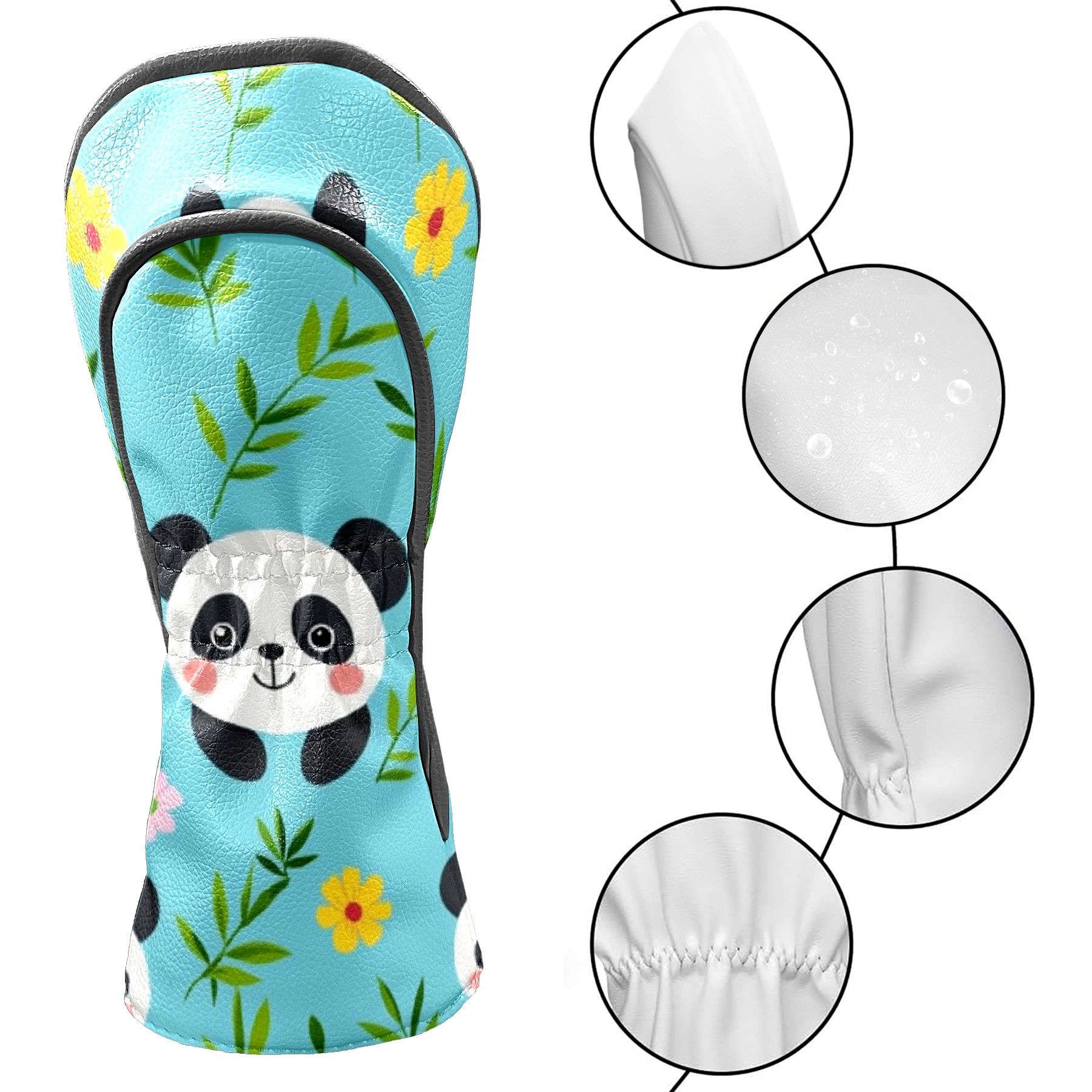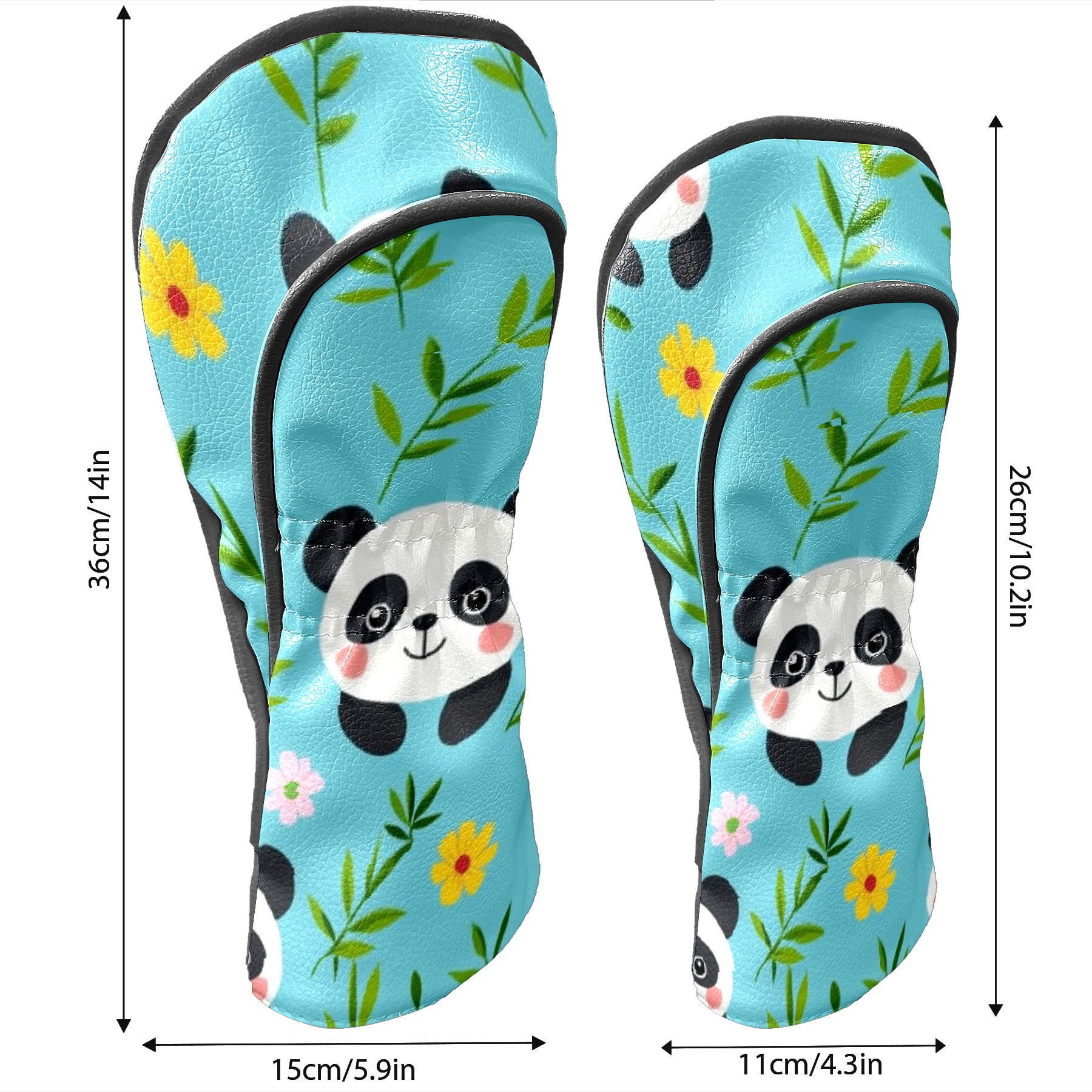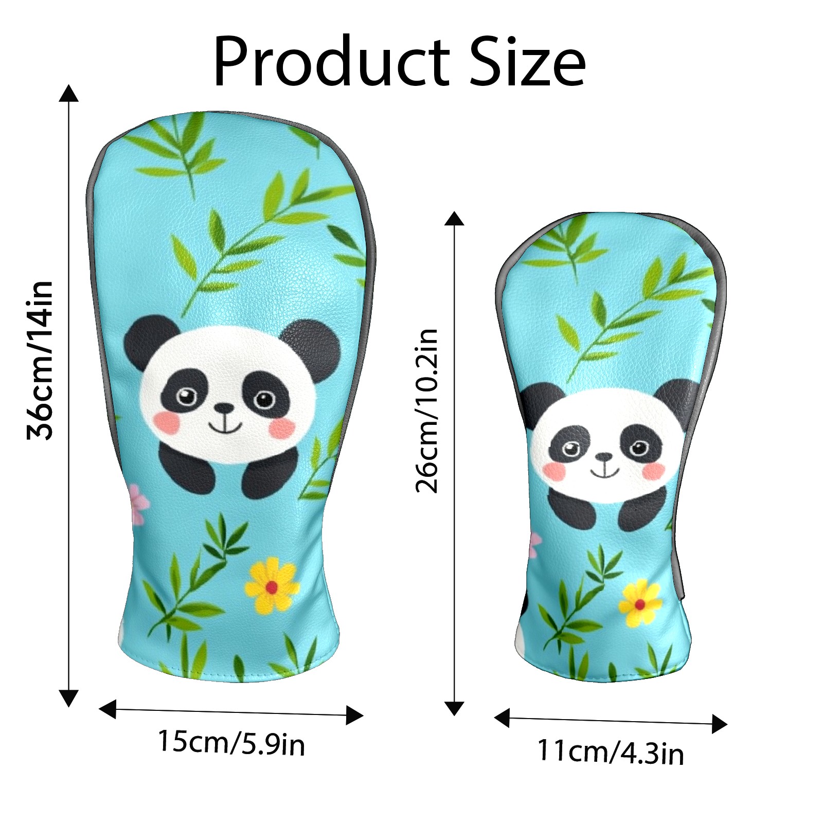Black Golf Club Head Cover Golf Accessories Head Covers Set For Driver & Fairway Woods Panda And Bamboo Leaves