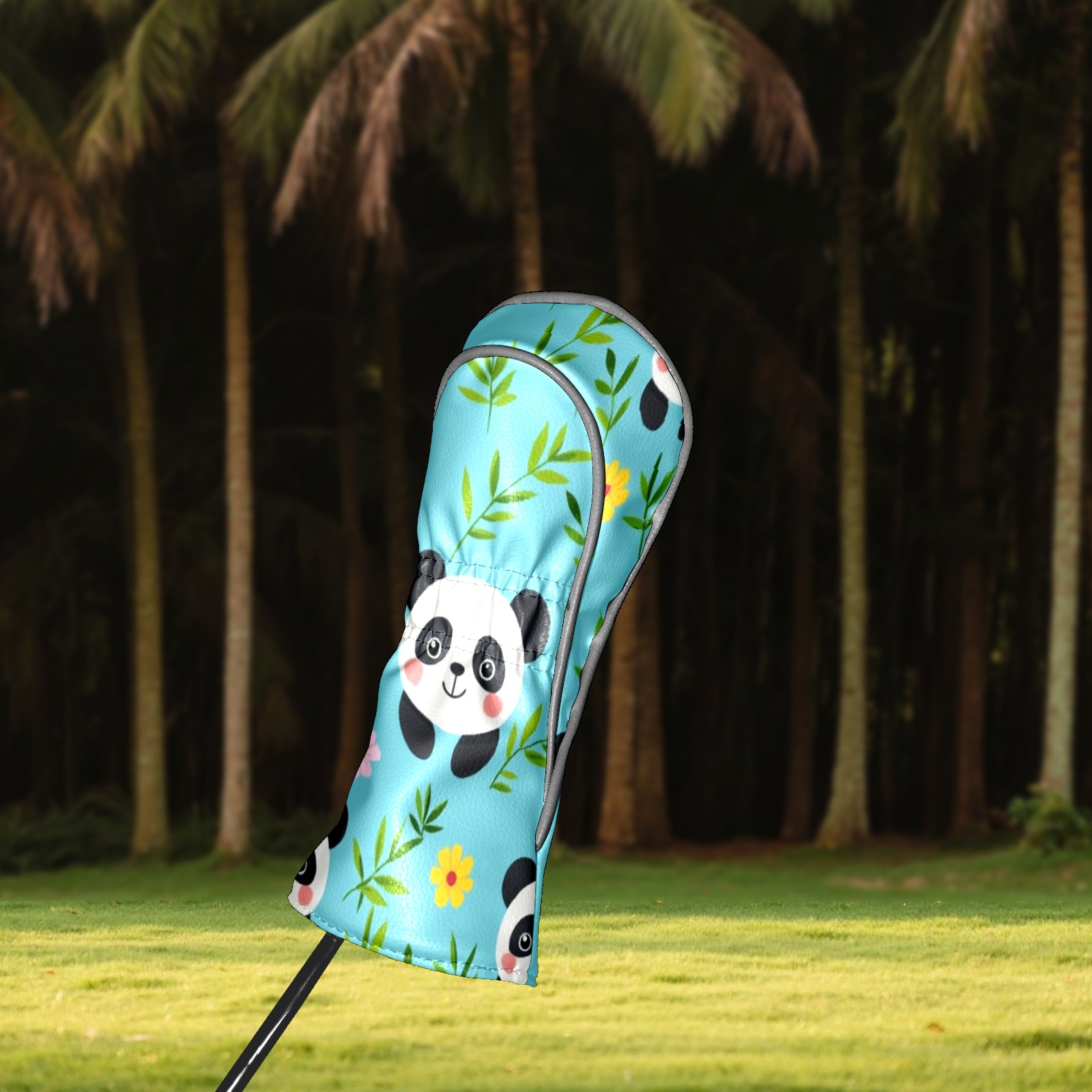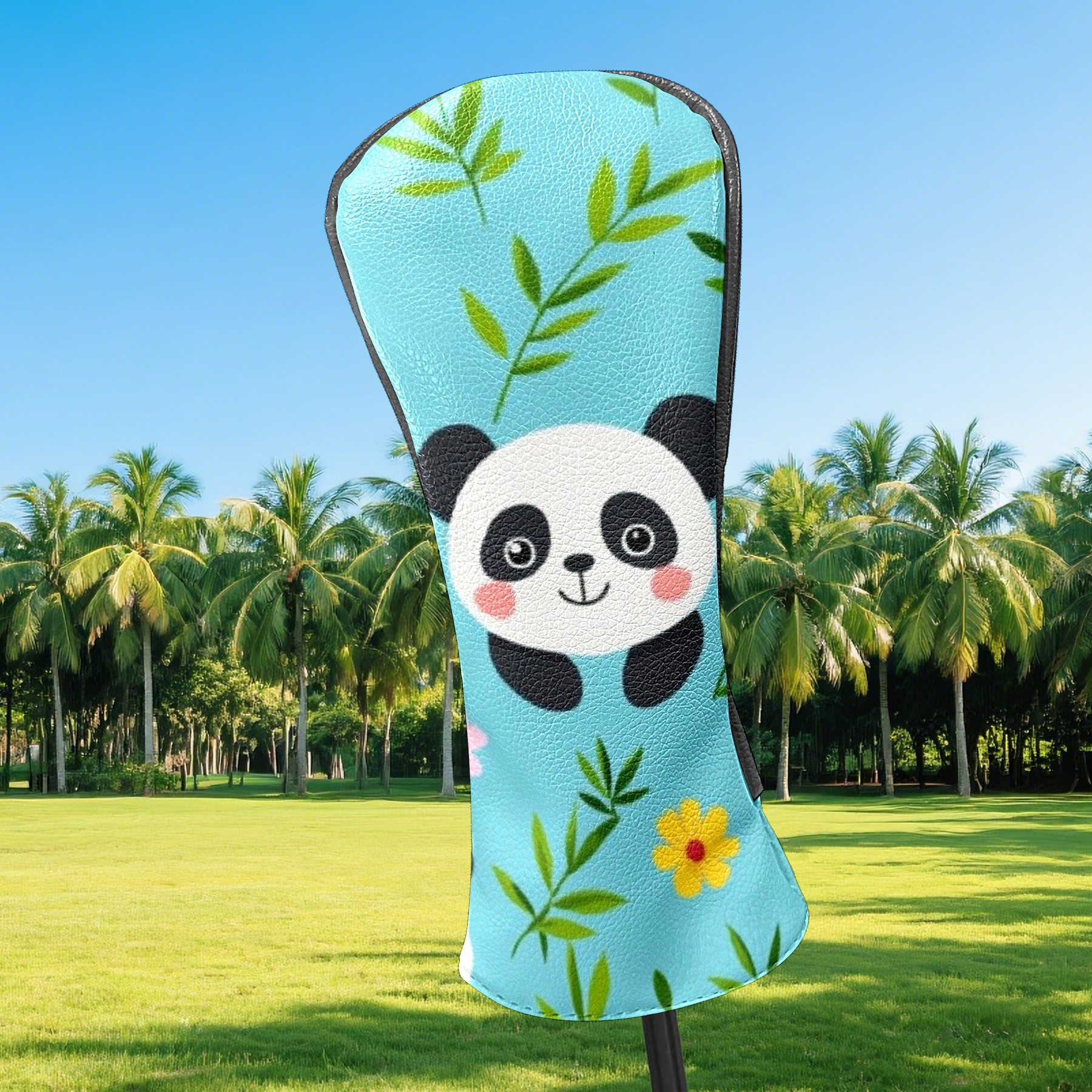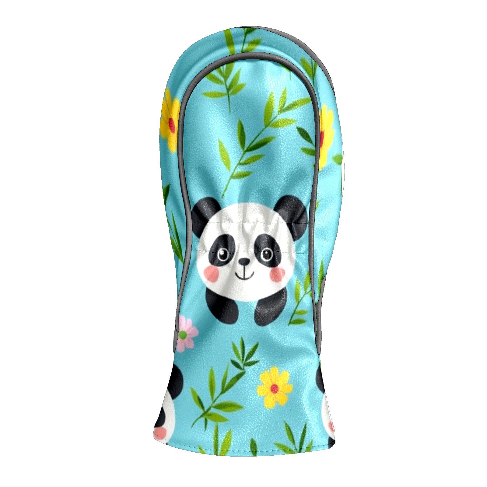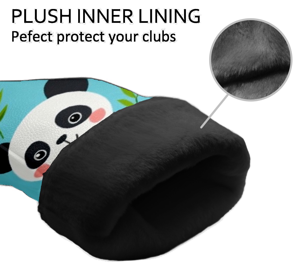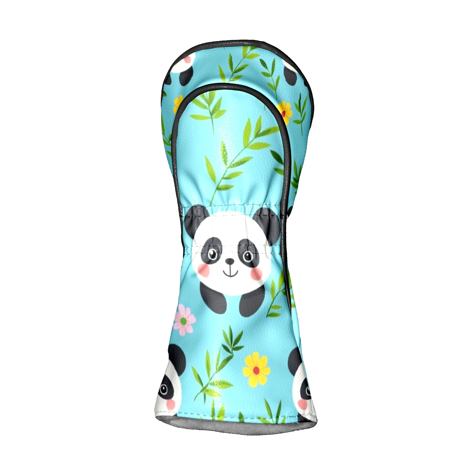 Black Golf Club Head Cover Golf Accessories Head Covers Set For Driver & Fairway Woods Panda And Bamboo Leaves