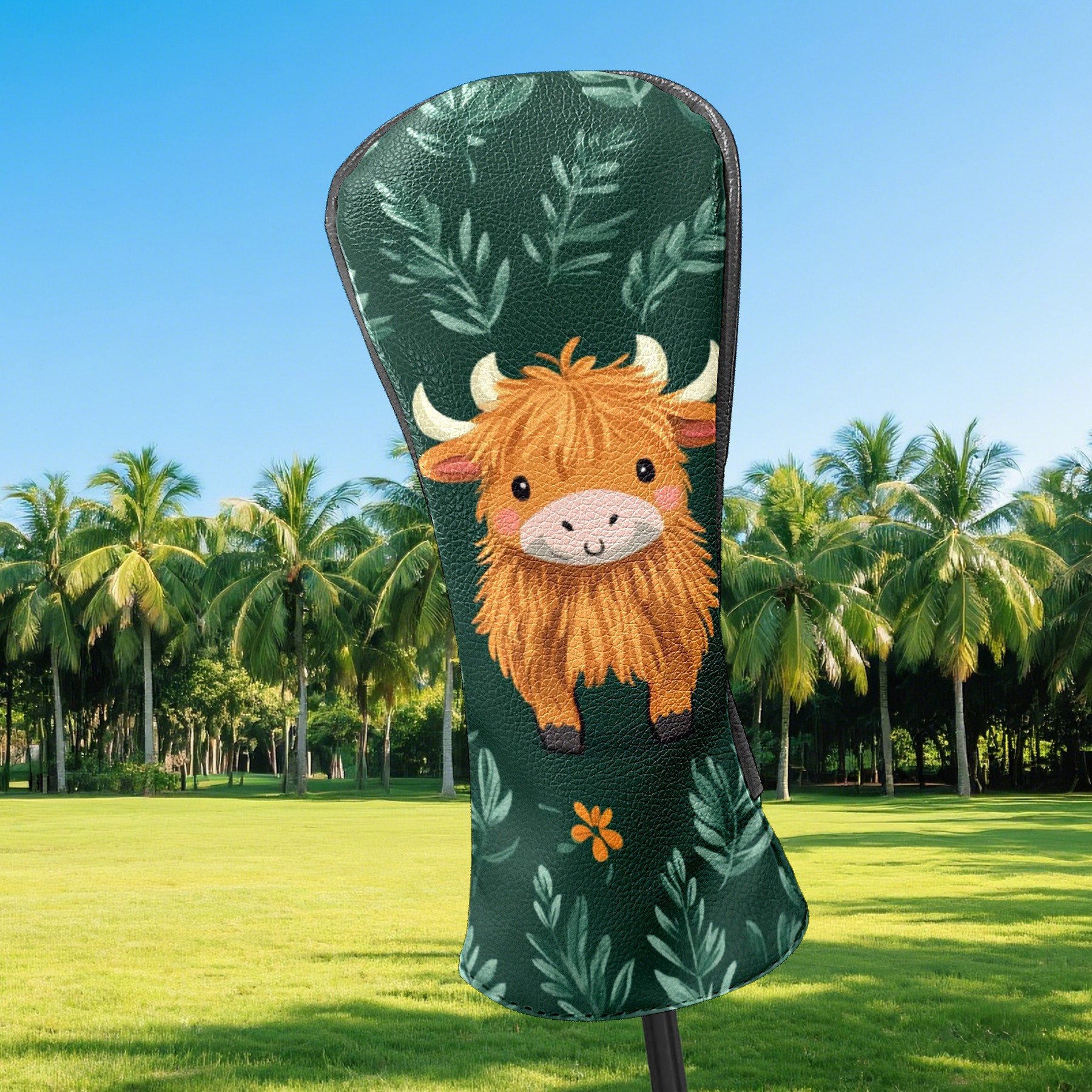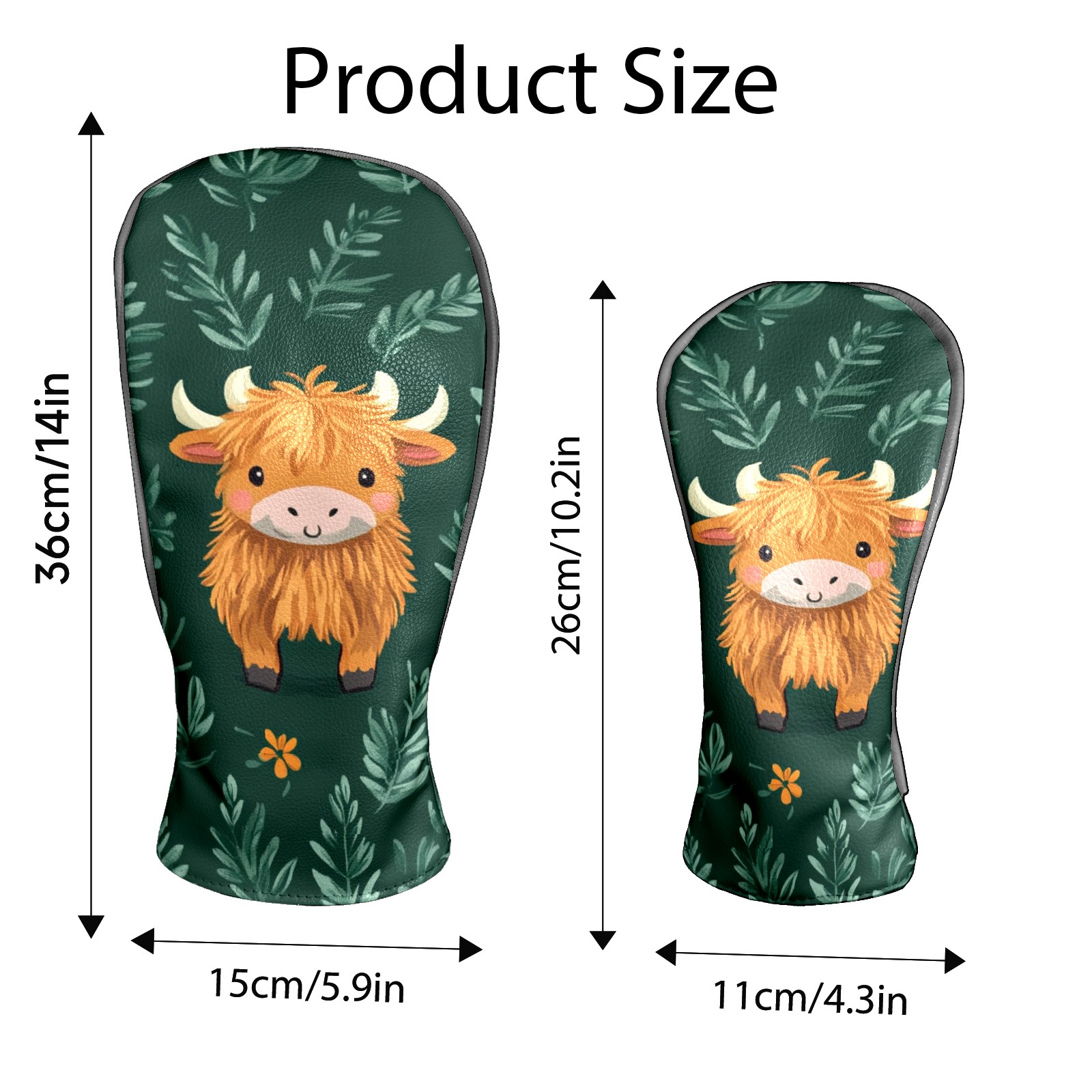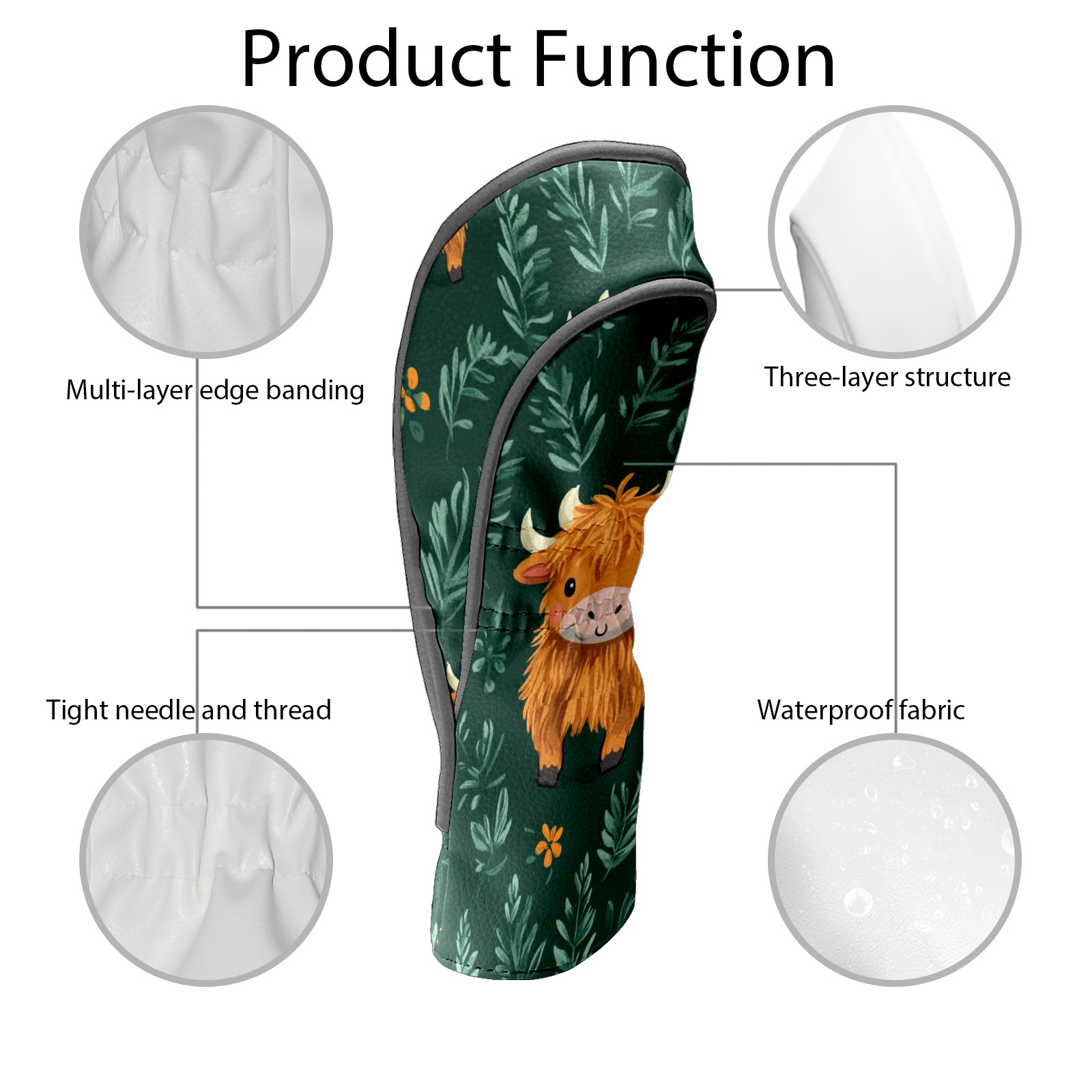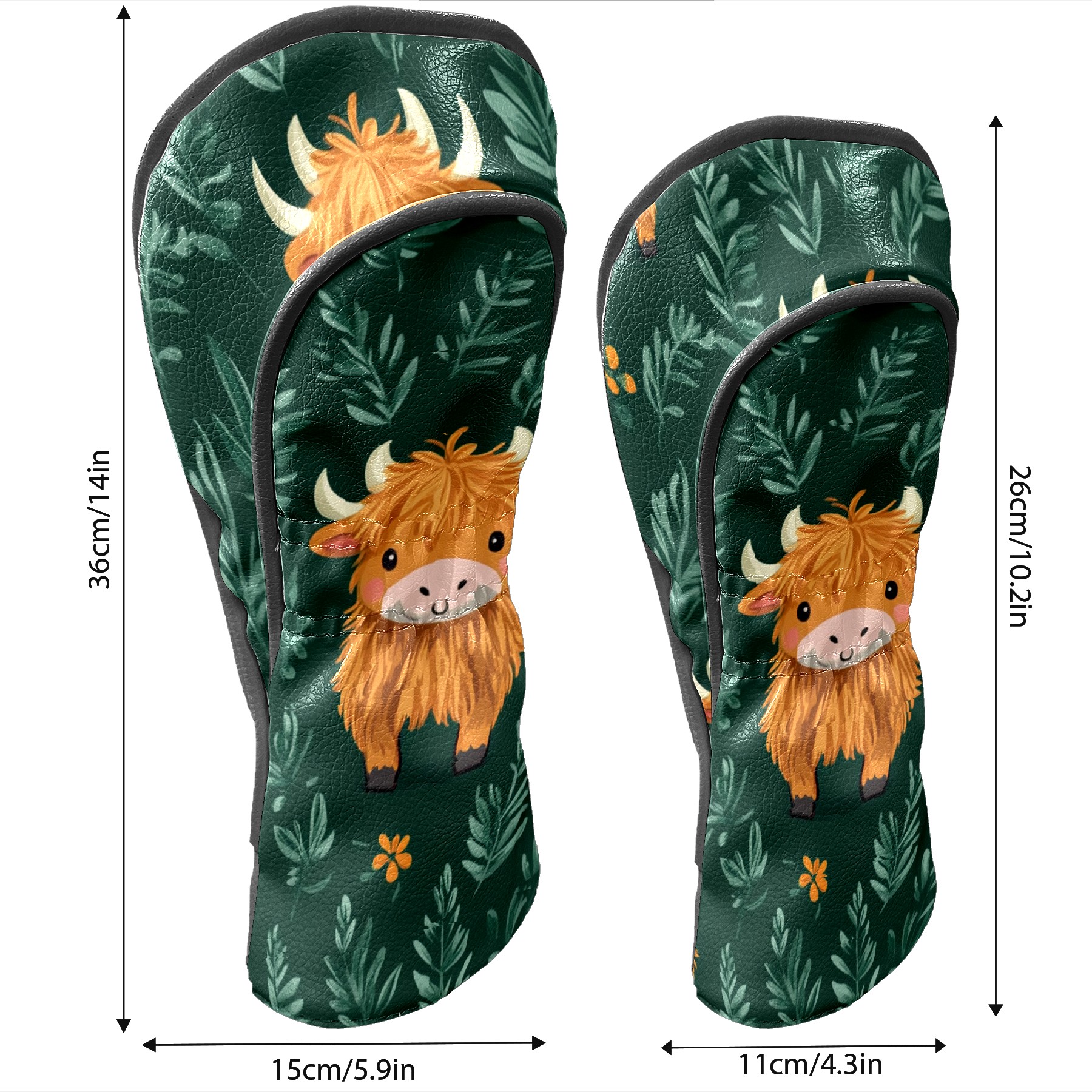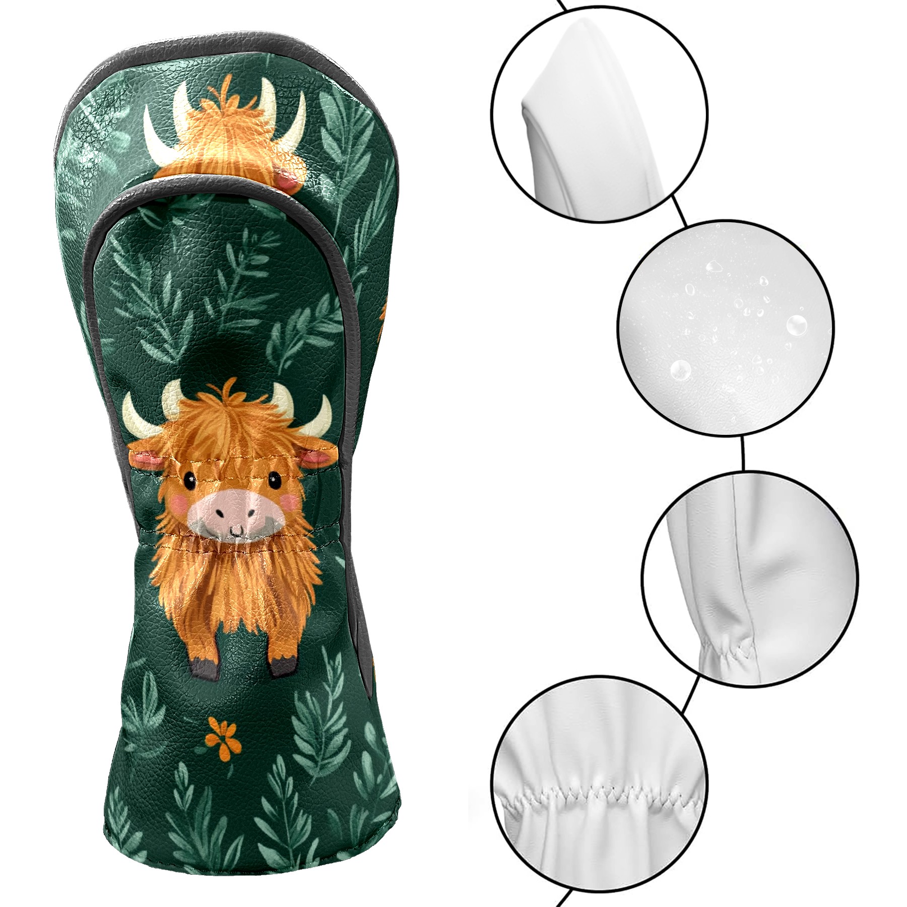 Black Golf Club Head Cover Golf Accessories Head Covers Set For Driver & Fairway Woods Highland Cow