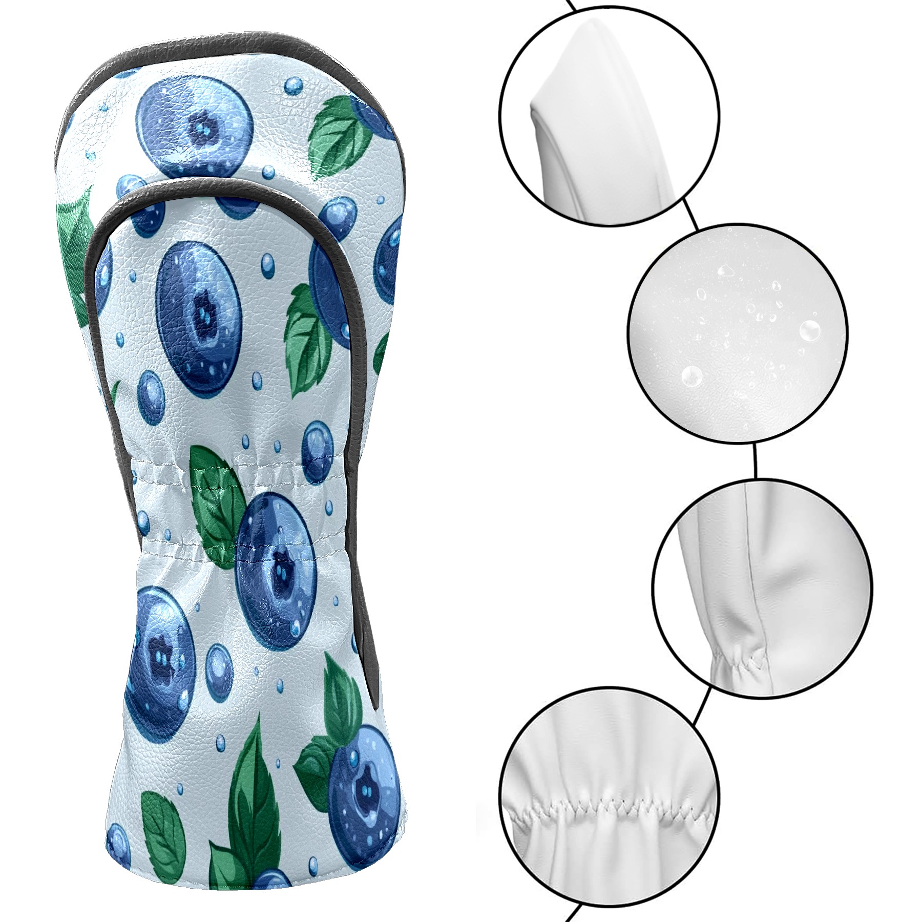 Golf Club Head Covers for Driver and Fairway Woods, Waterproof Leather Headcovers for Golf Clubs, Ideal Golf Accessories Gift for Men Women (Blueberry)