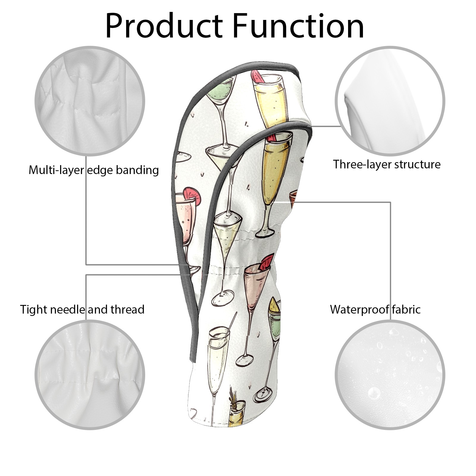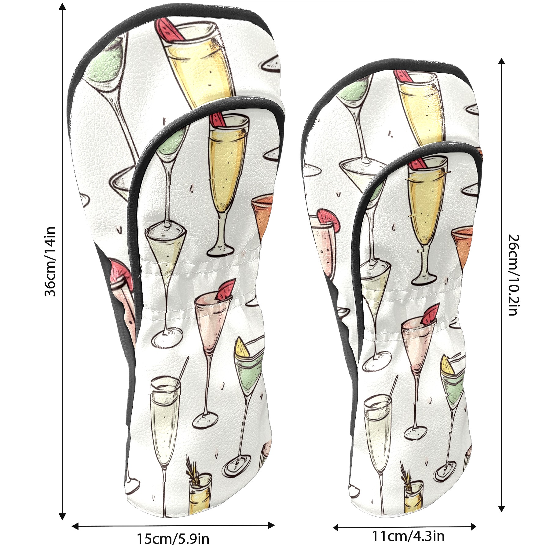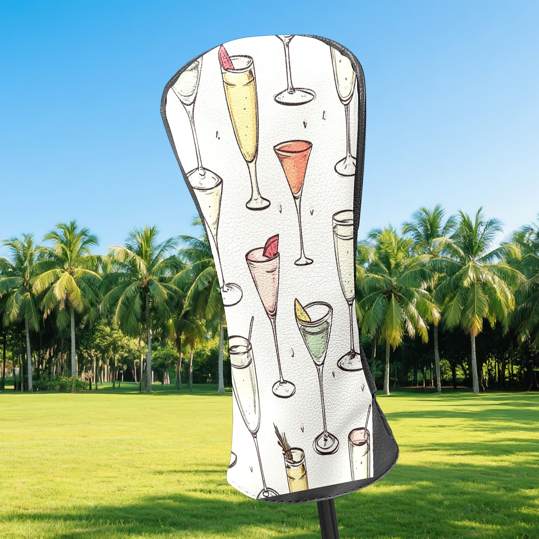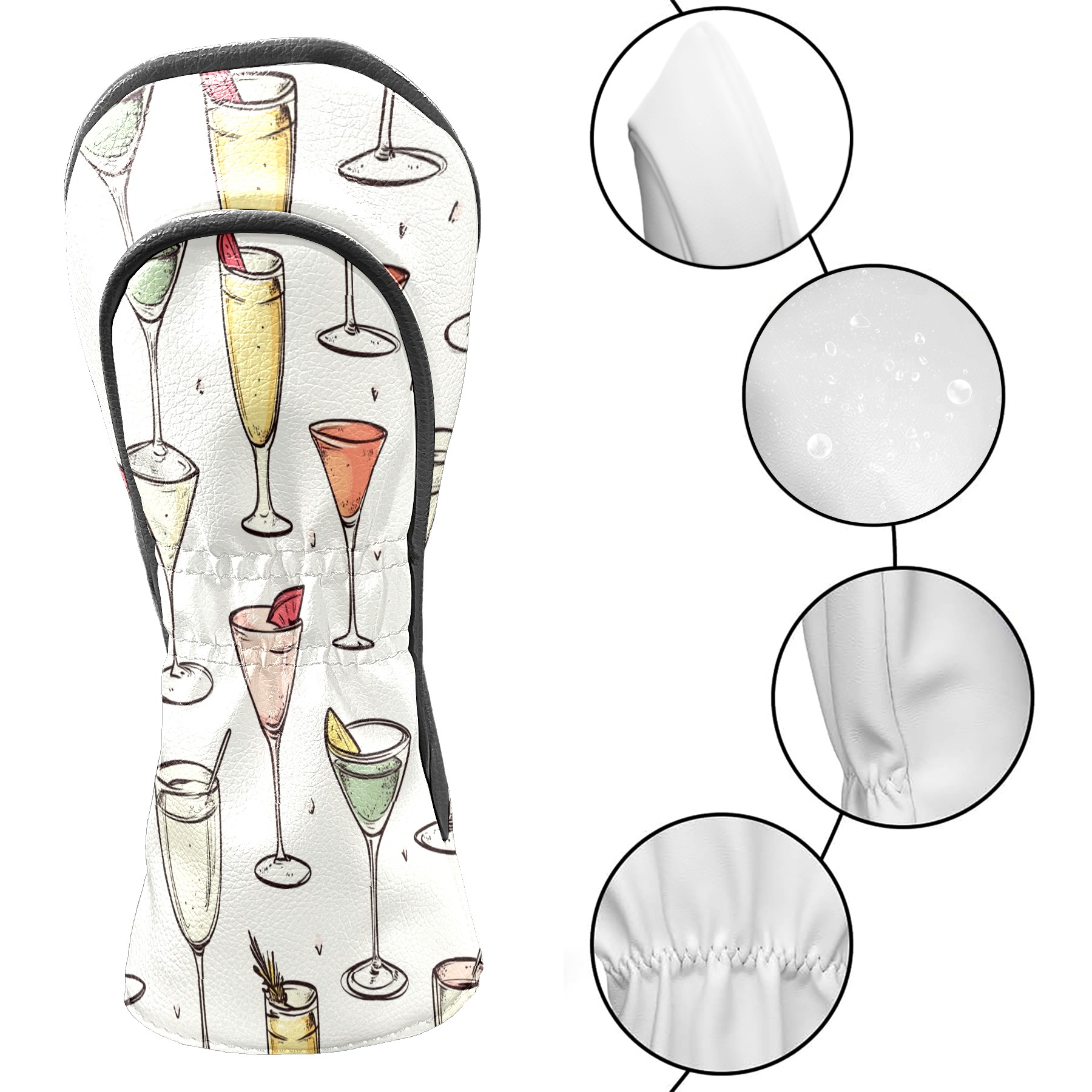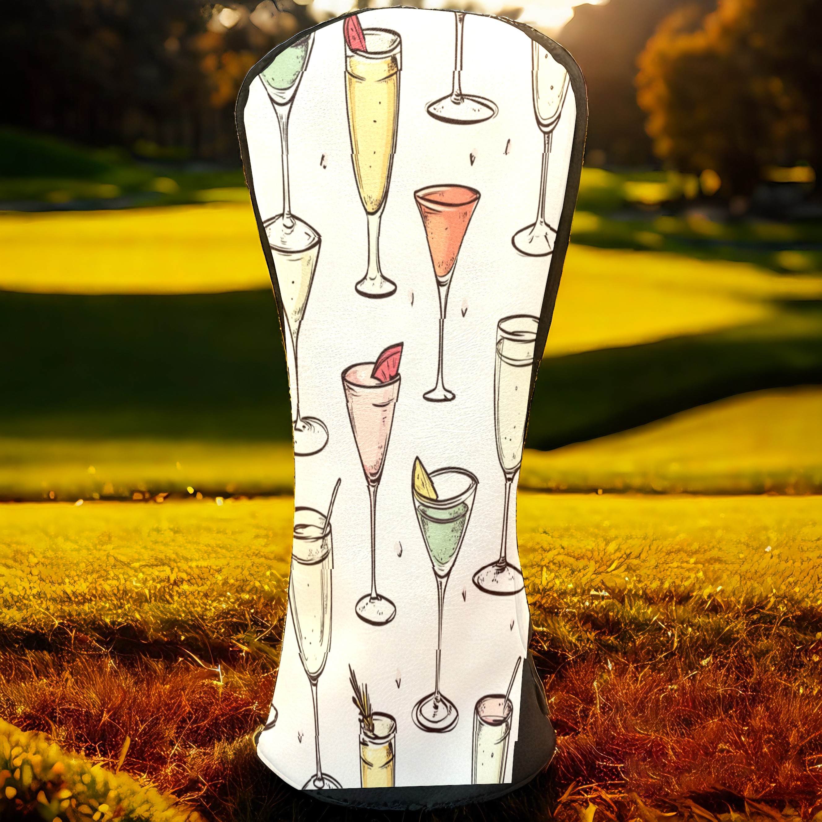 Golf Club Head Covers for Driver and Fairway Woods, Waterproof Leather Headcovers for Golf Clubs, Ideal Golf Accessories Gift for Men Women (Champagne Glasses)