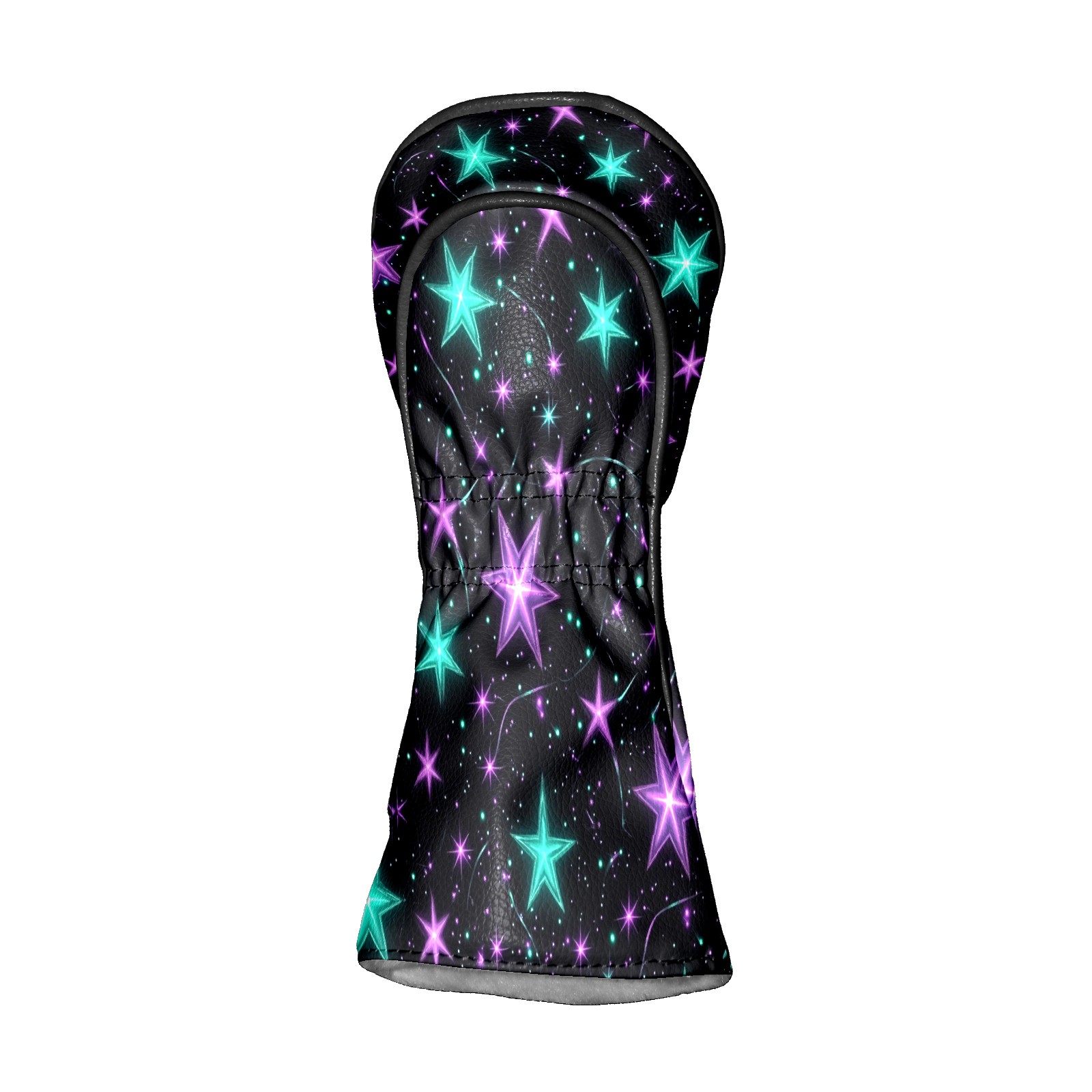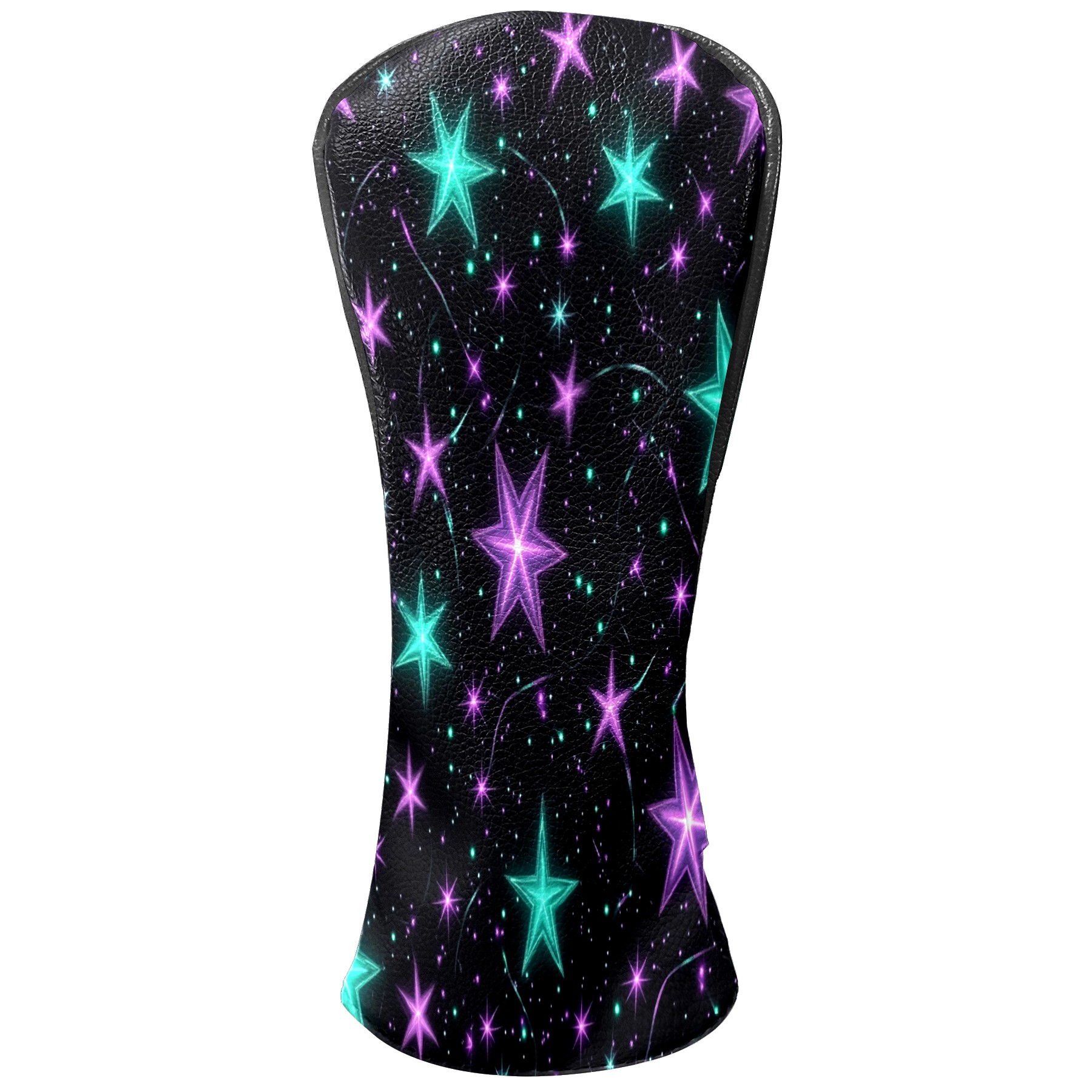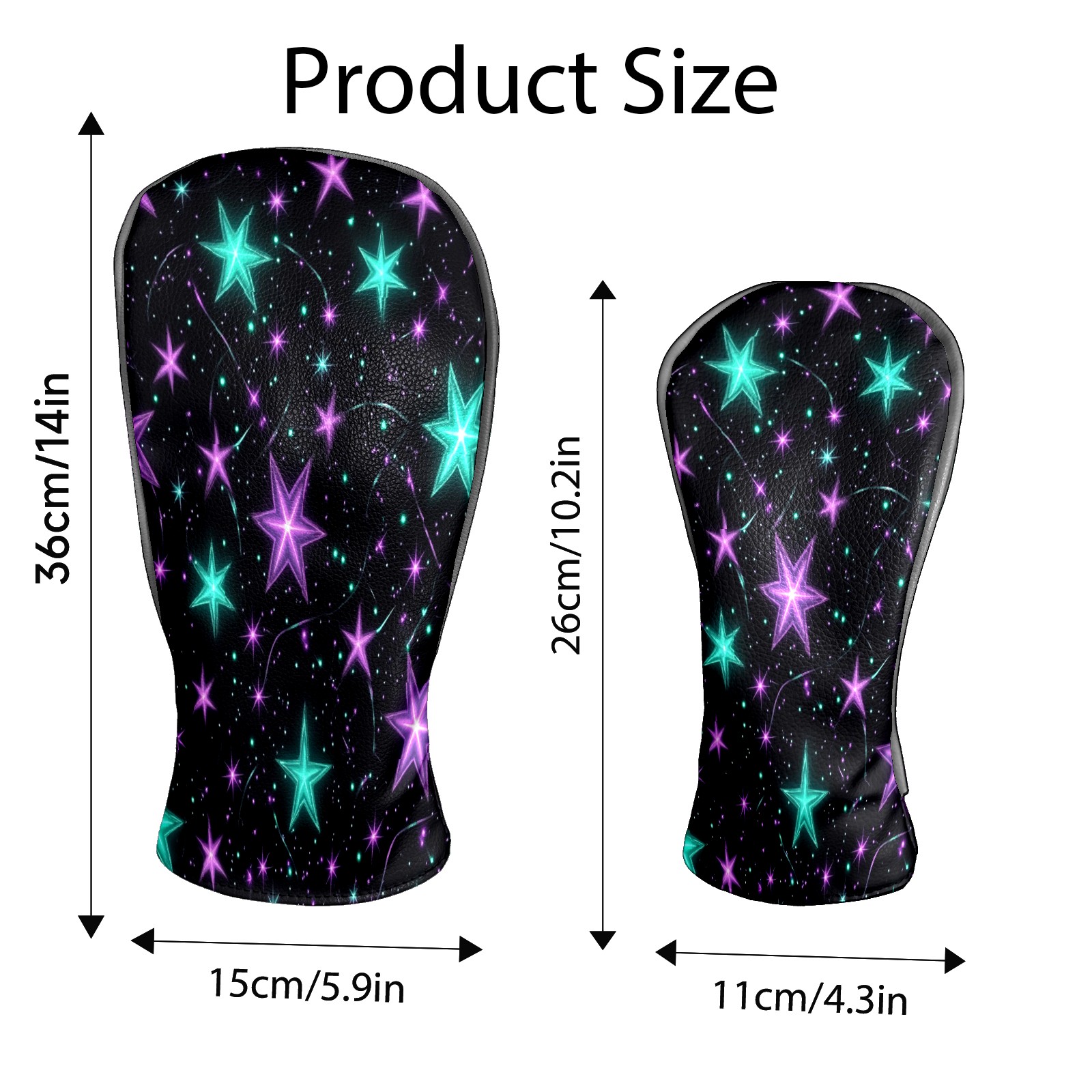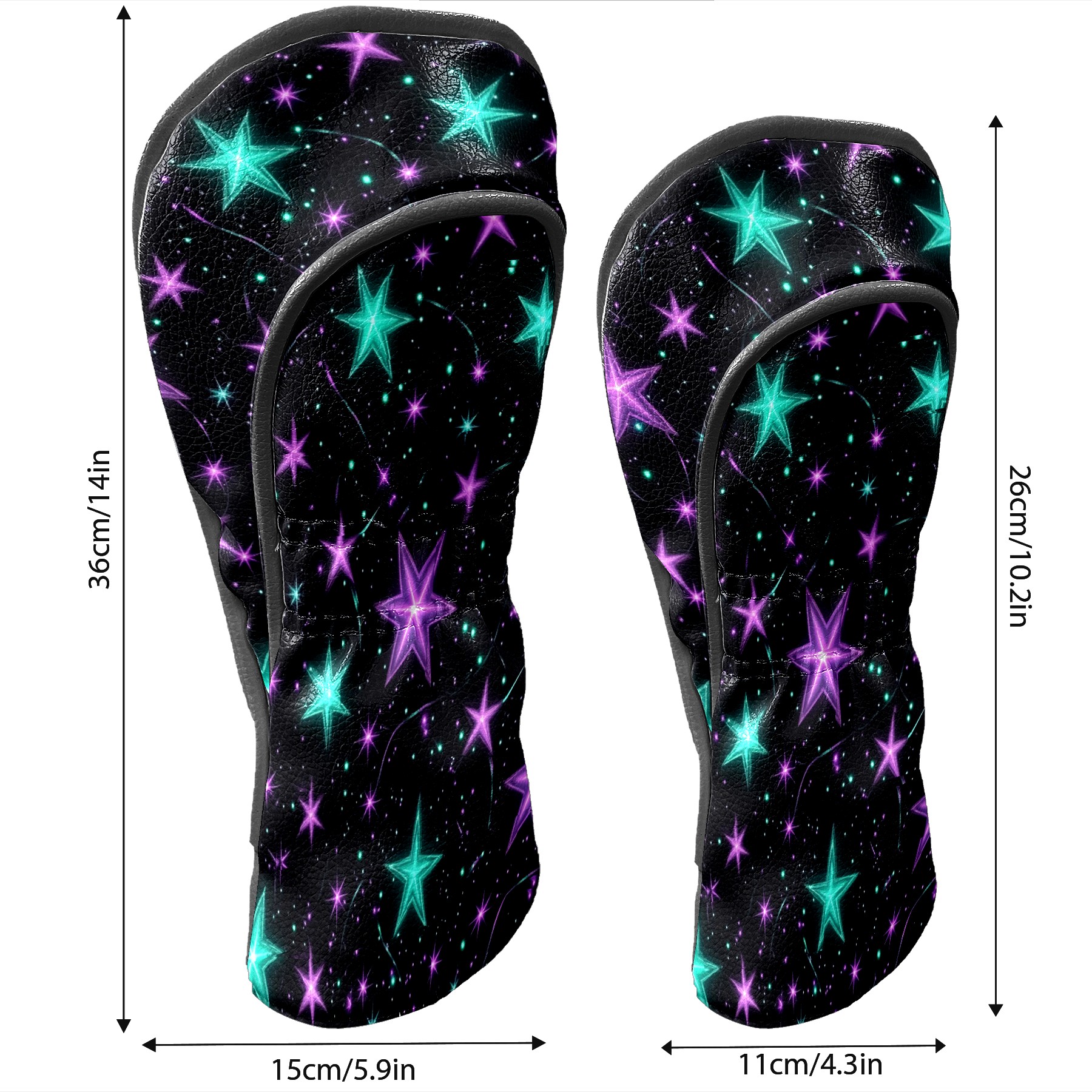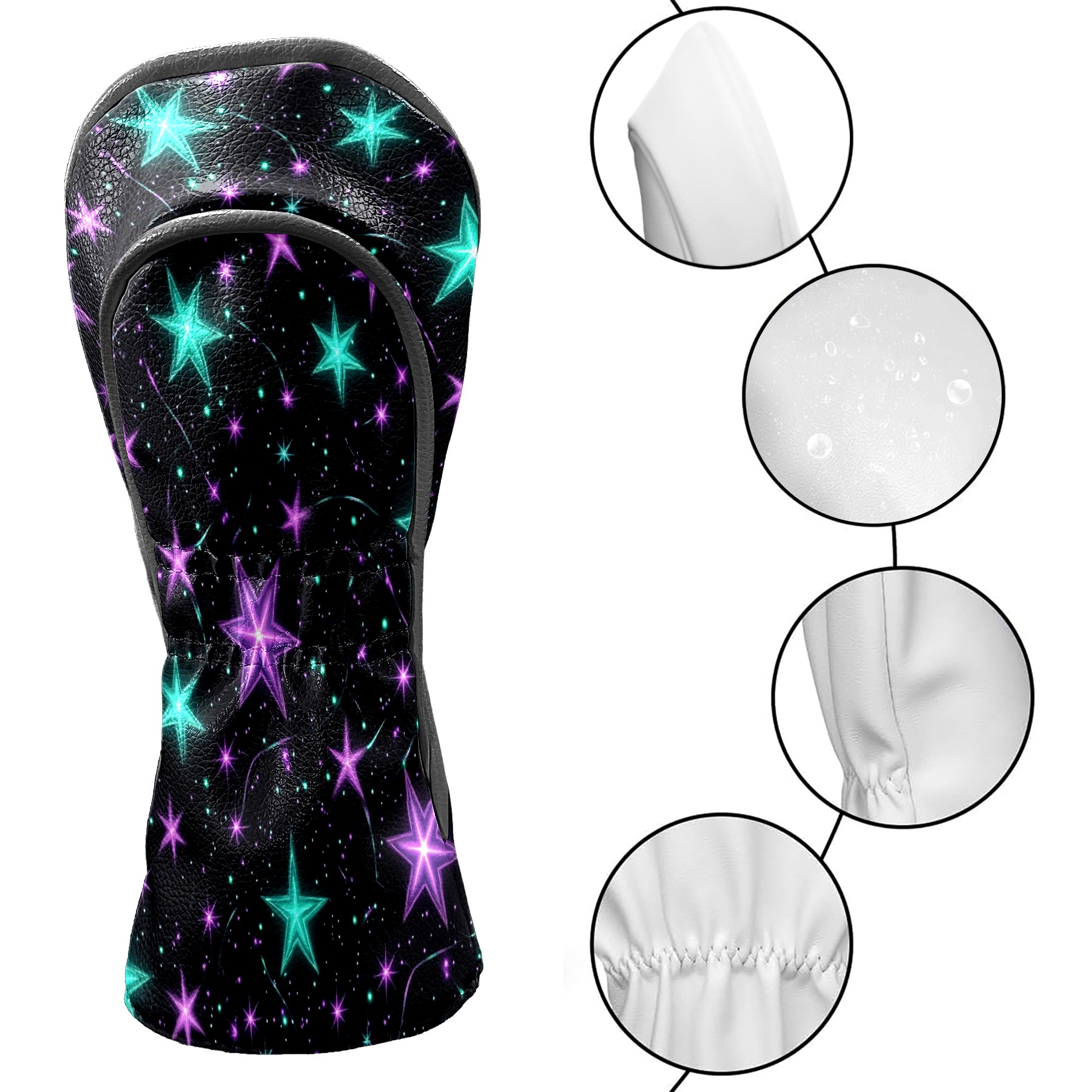 Golf Club Head Covers for Driver and Fairway Woods, Waterproof Leather Headcovers for Golf Clubs, Ideal Golf Accessories Gift for Men Women (Glowing Purple And Teal Stars)