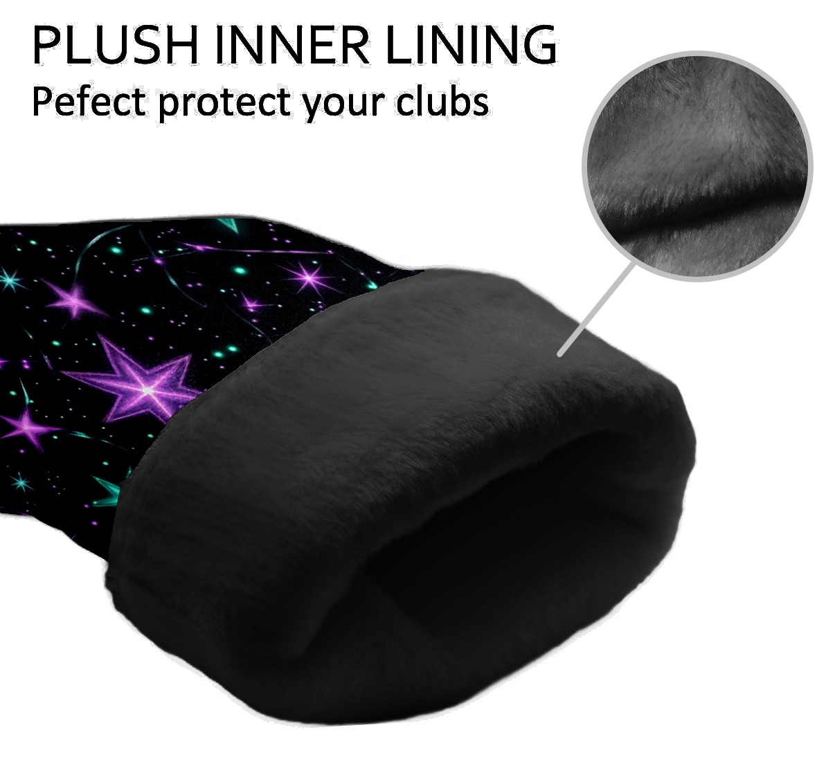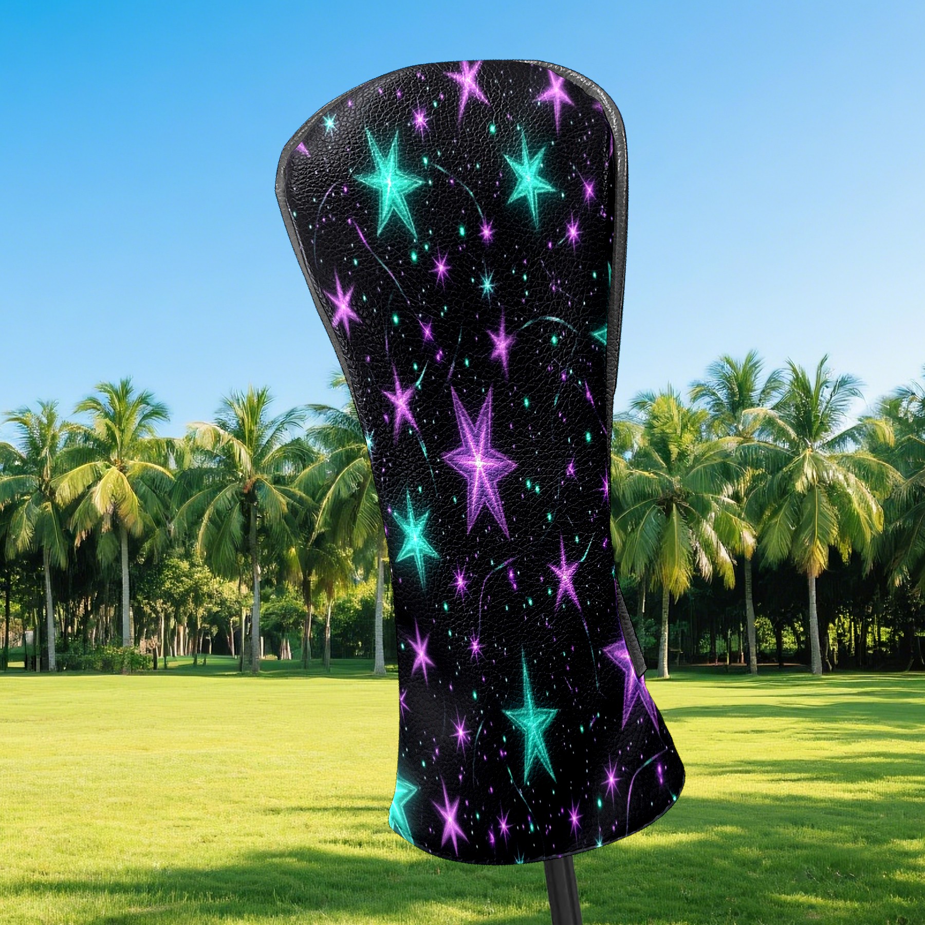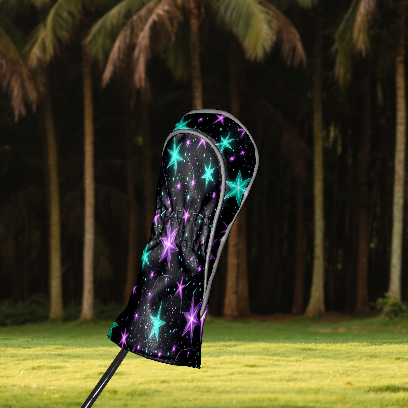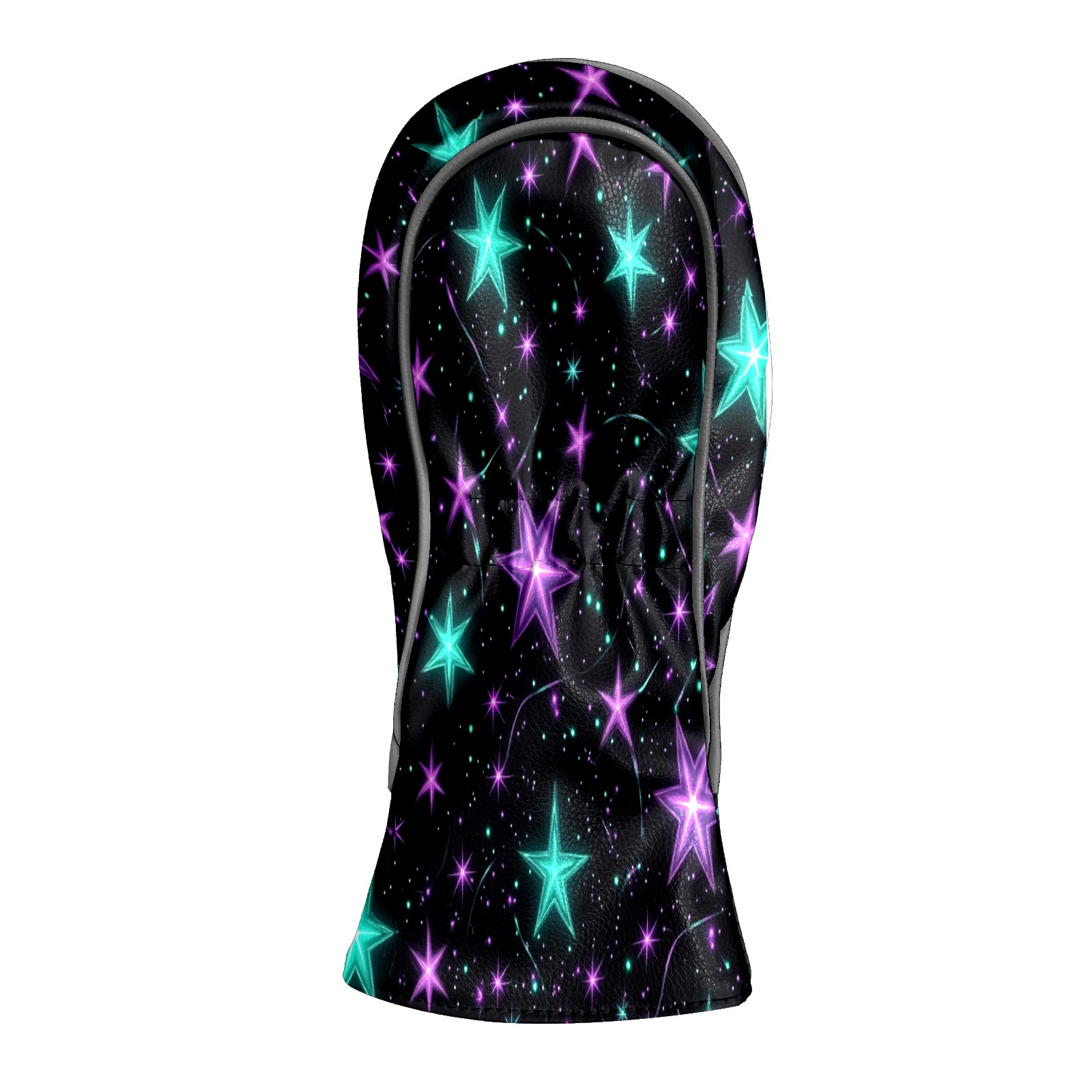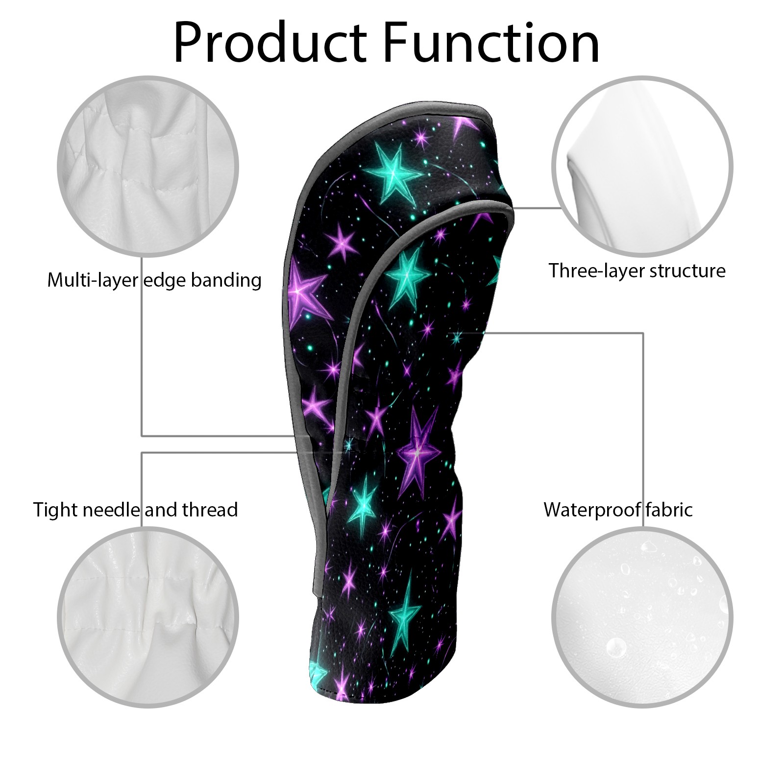 Golf Club Head Covers for Driver and Fairway Woods, Waterproof Leather Headcovers for Golf Clubs, Ideal Golf Accessories Gift for Men Women (Glowing Purple And Teal Stars)