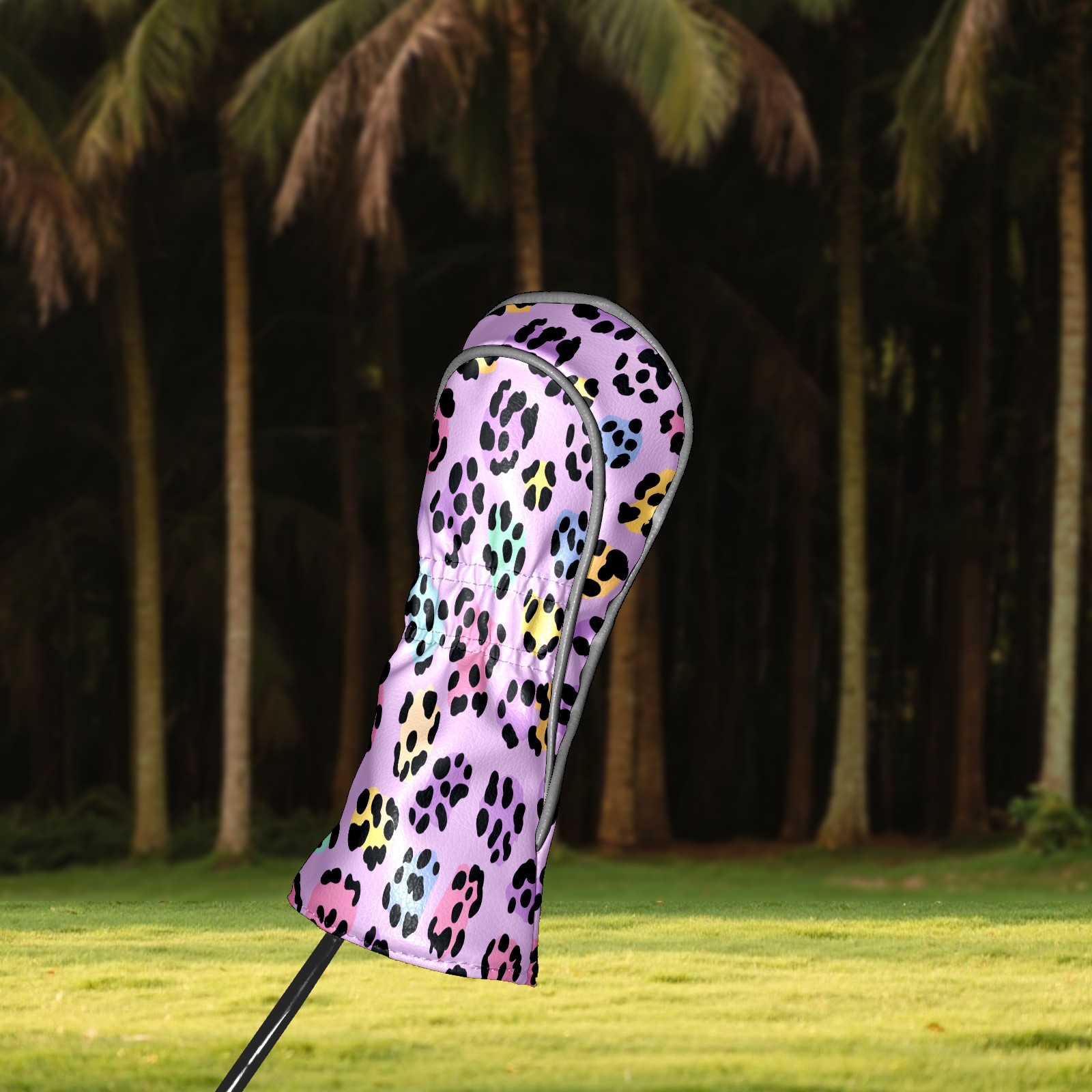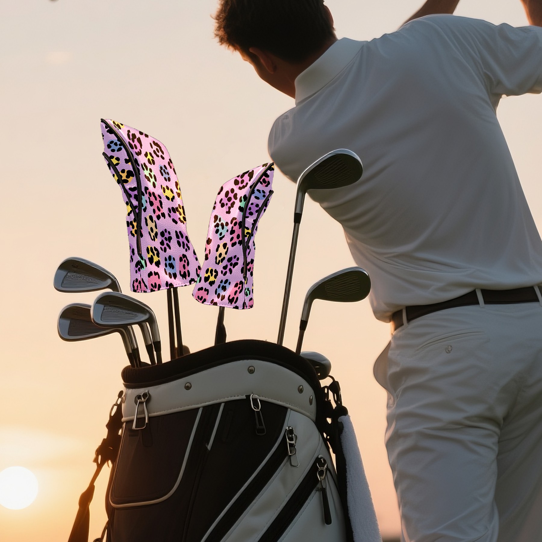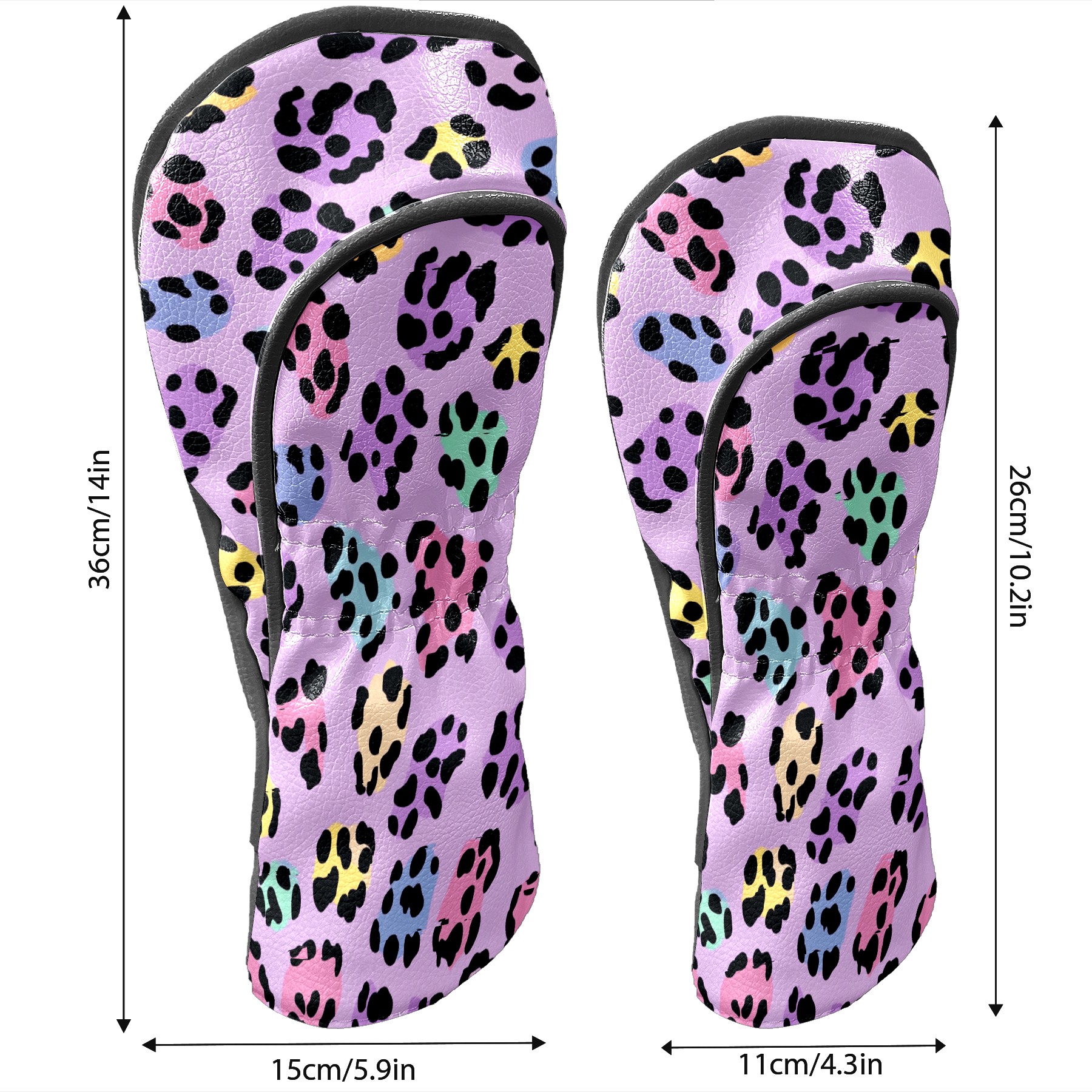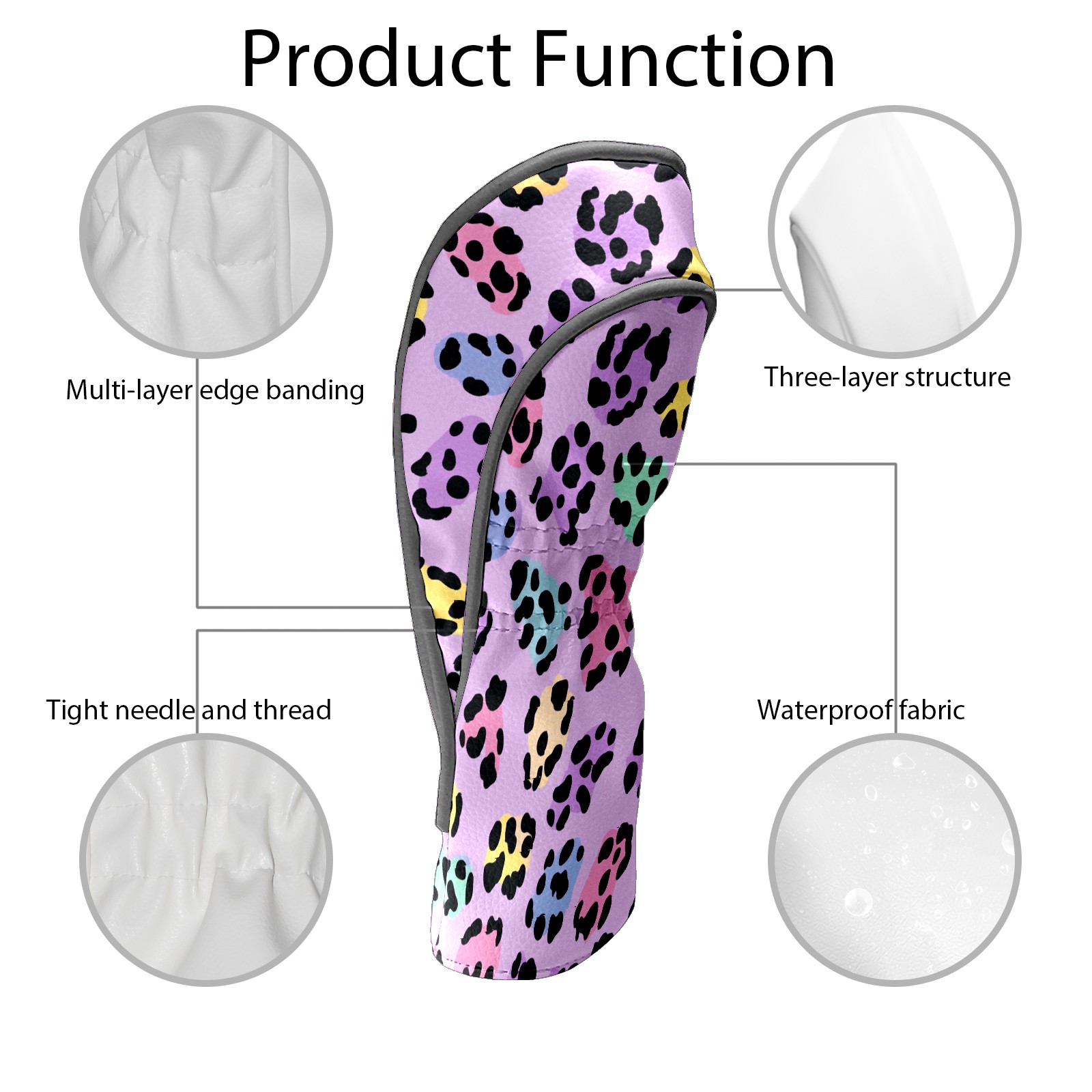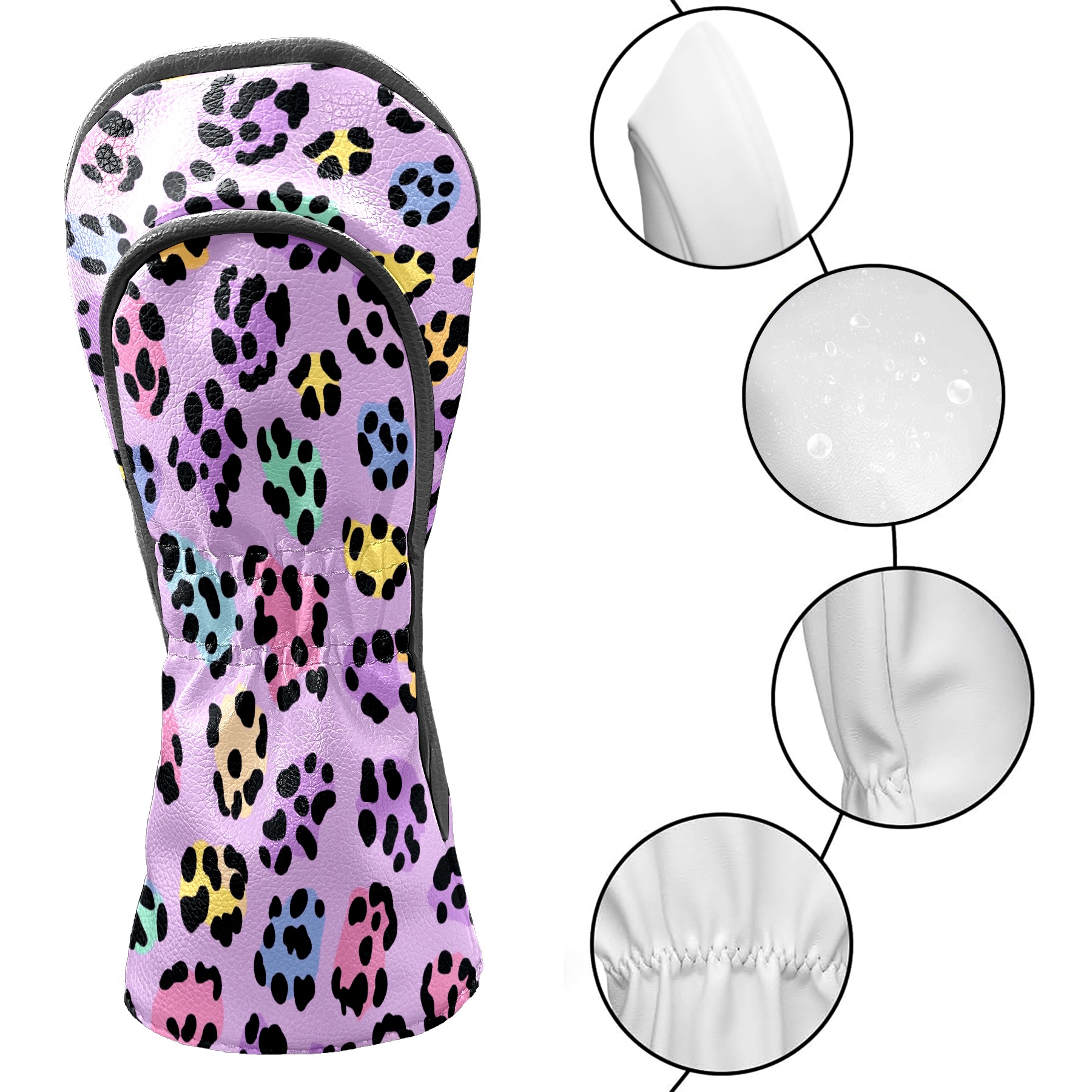 Golf Club Head Covers for Driver and Fairway Woods, Waterproof Leather Headcovers for Golf Clubs, Ideal Golf Accessories Gift for Men Women (Holographic Leopard Print)