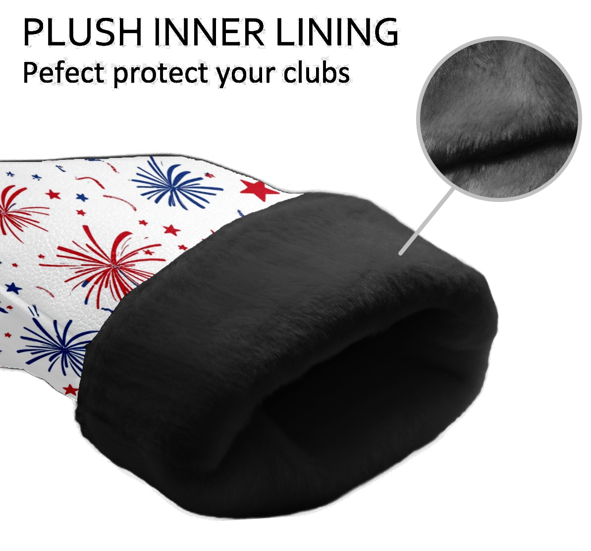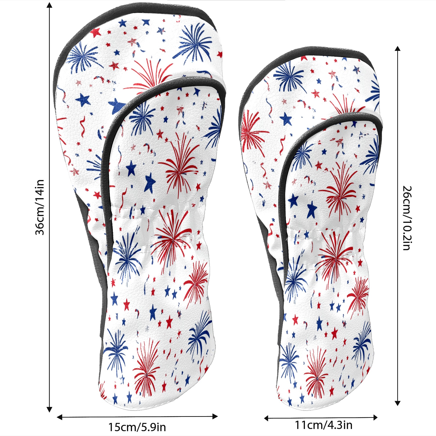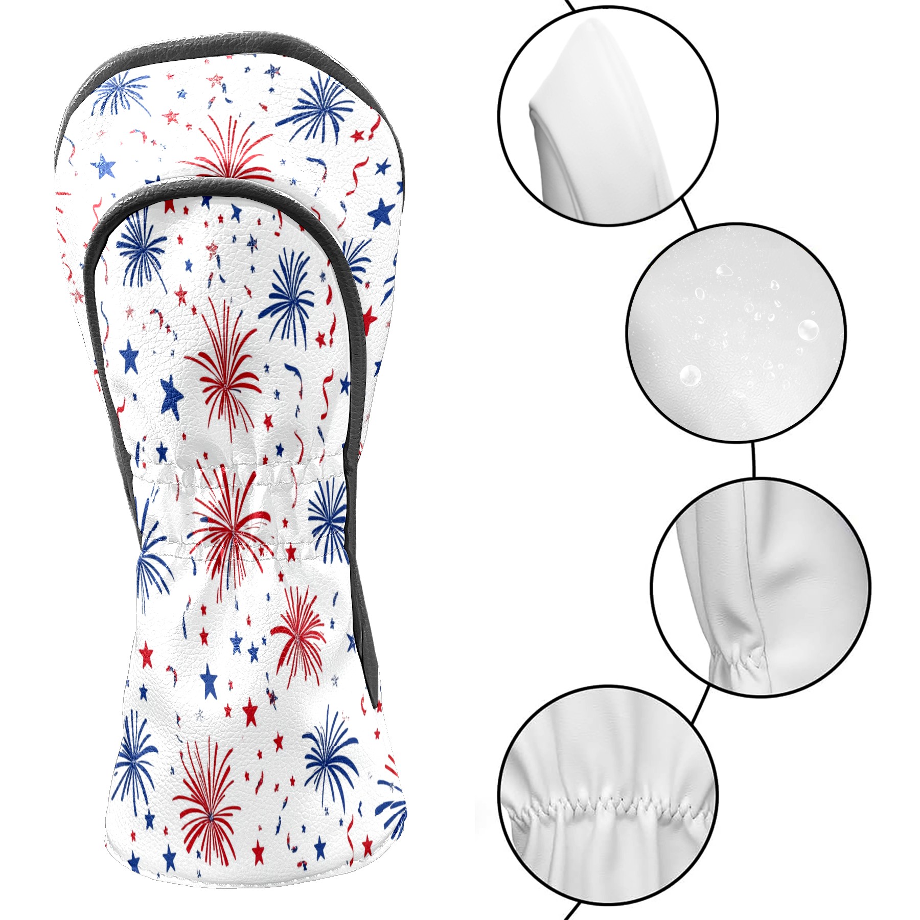 Golf Club Head Covers for Driver and Fairway Woods, Waterproof Leather Headcovers for Golf Clubs, Ideal Golf Accessories Gift for Men Women (Red And Blue Firework)