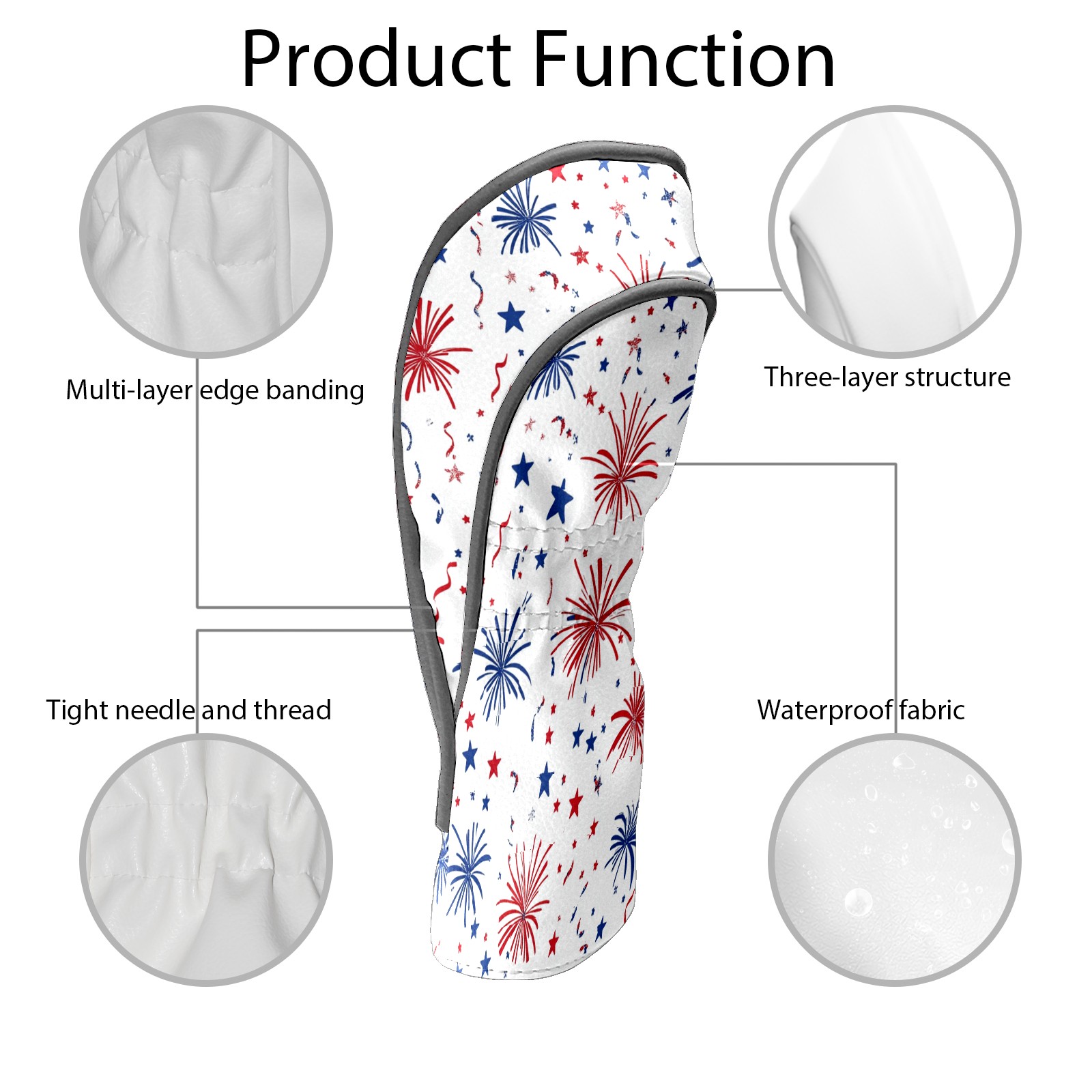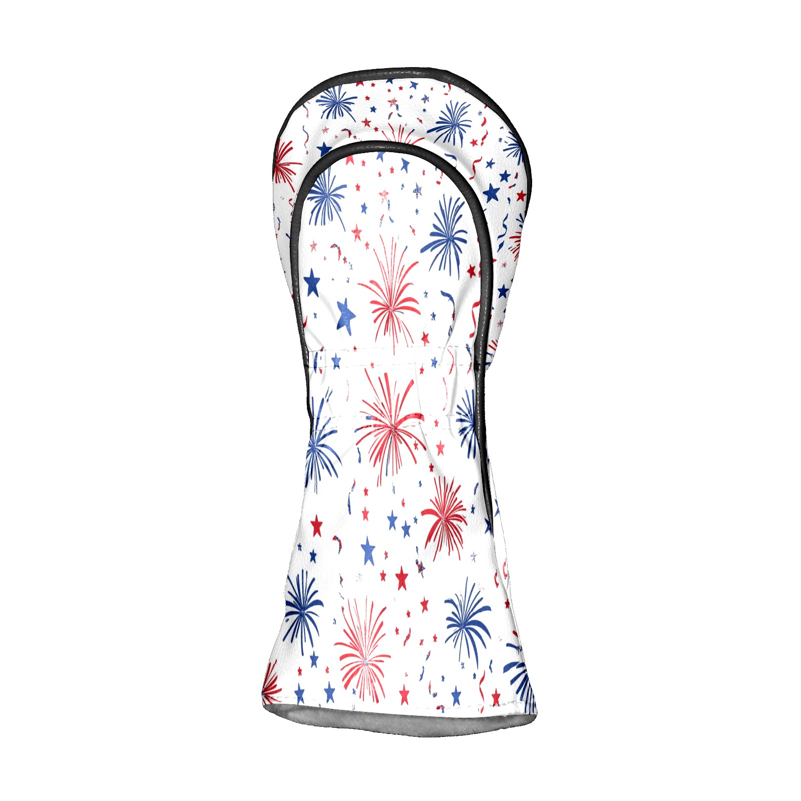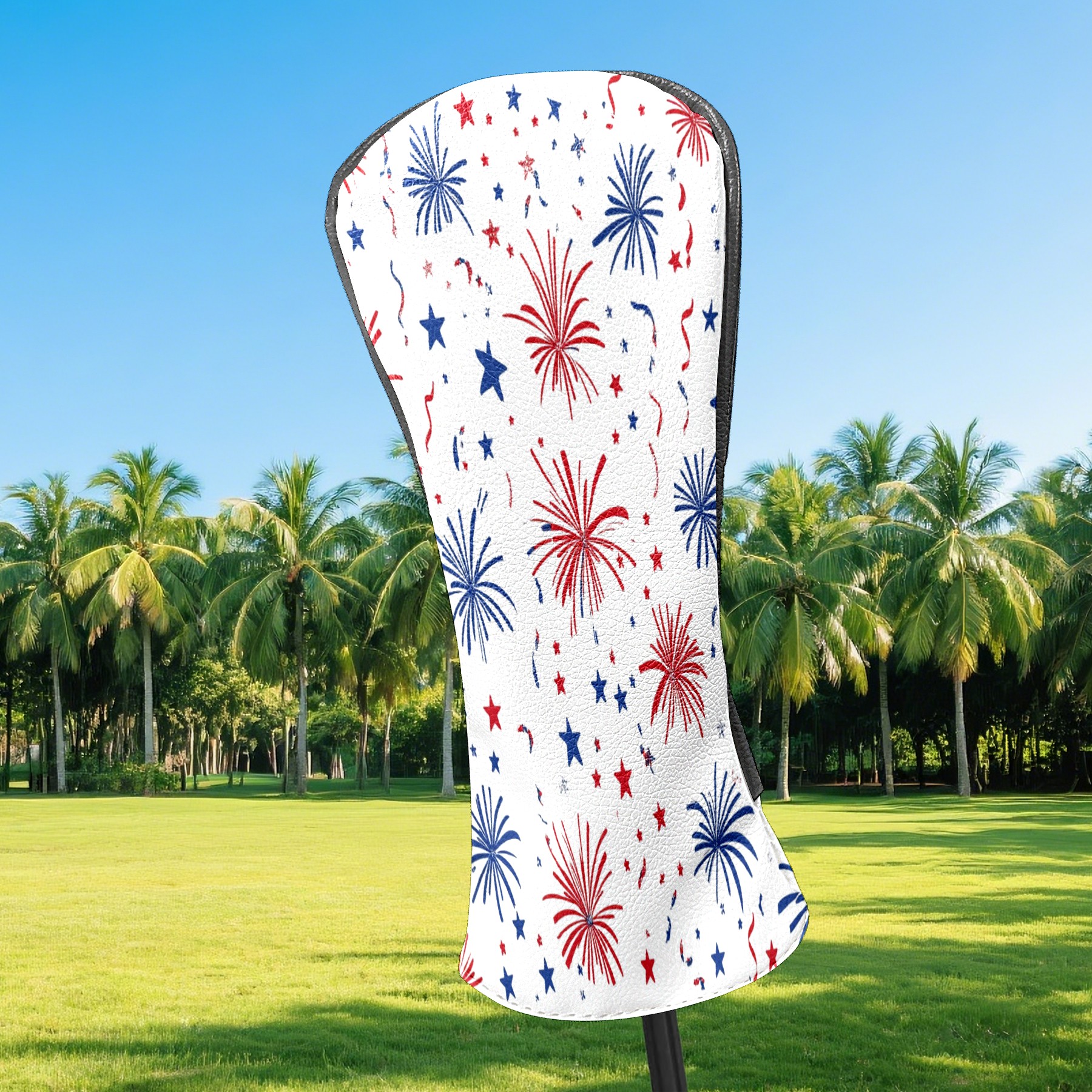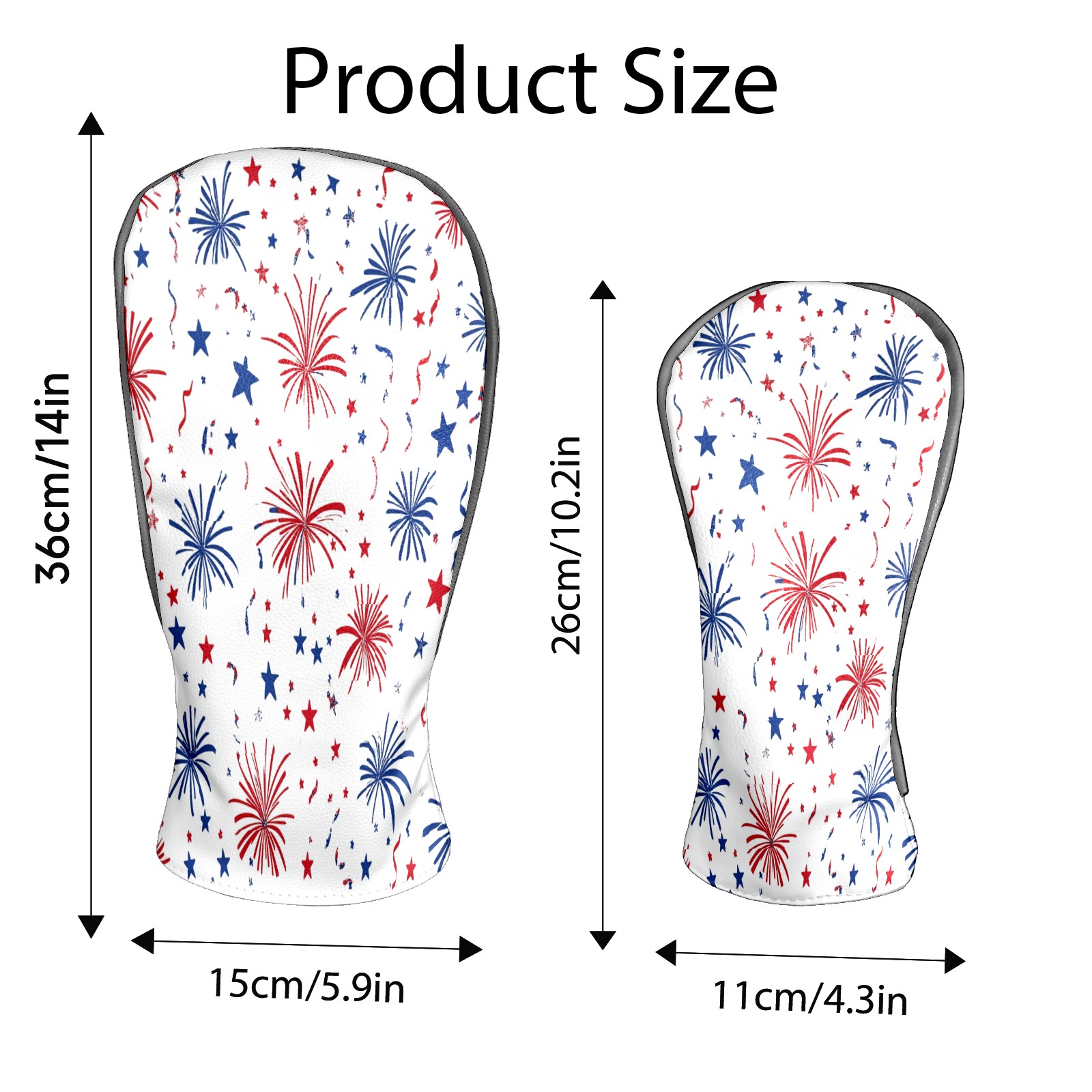 Golf Club Head Covers for Driver and Fairway Woods, Waterproof Leather Headcovers for Golf Clubs, Ideal Golf Accessories Gift for Men Women (Red And Blue Firework)