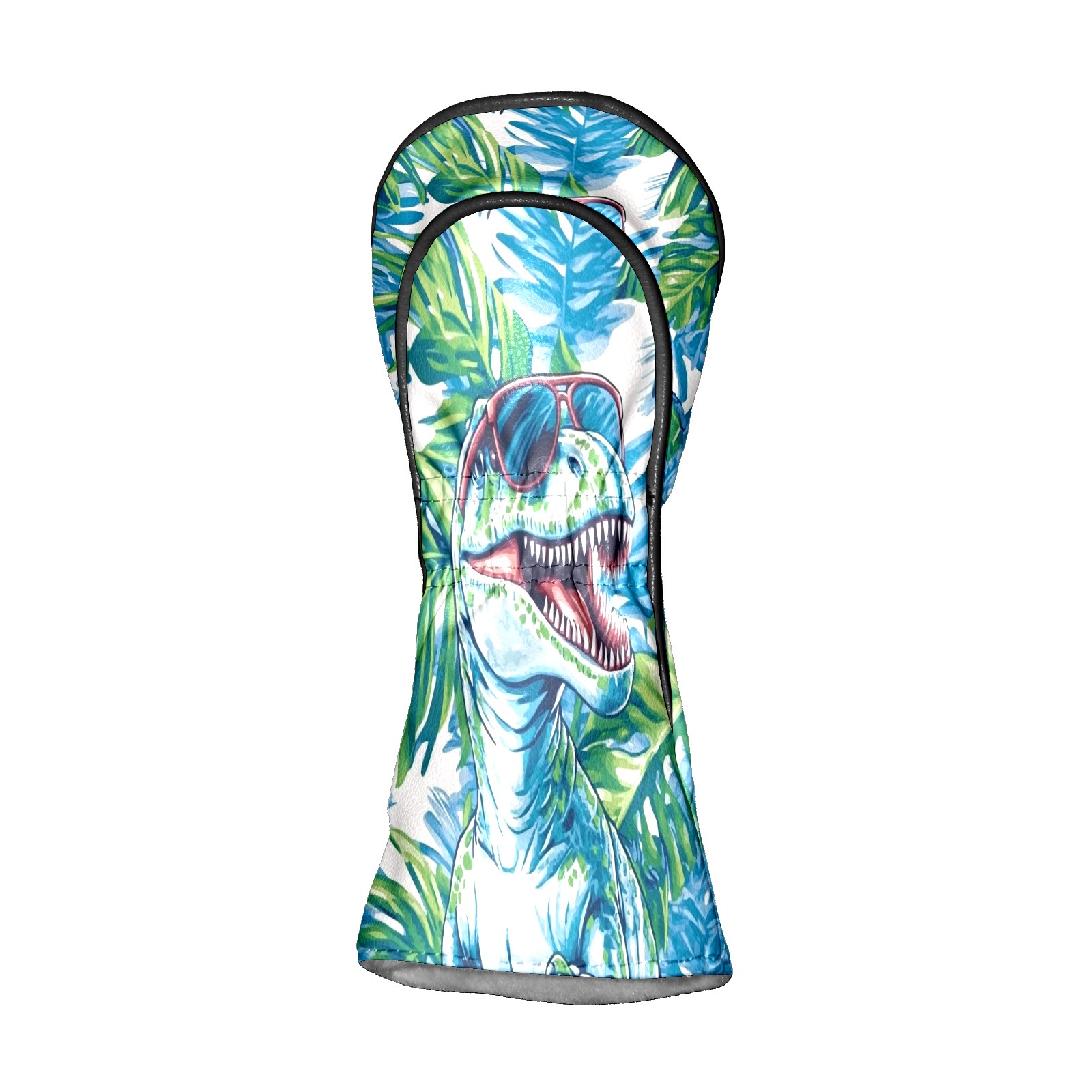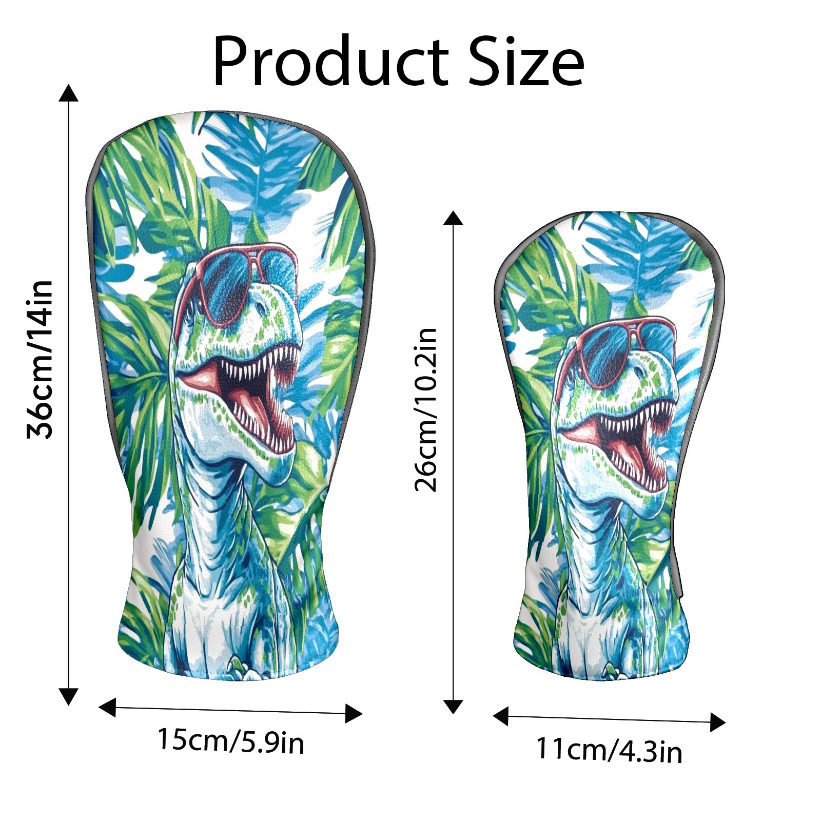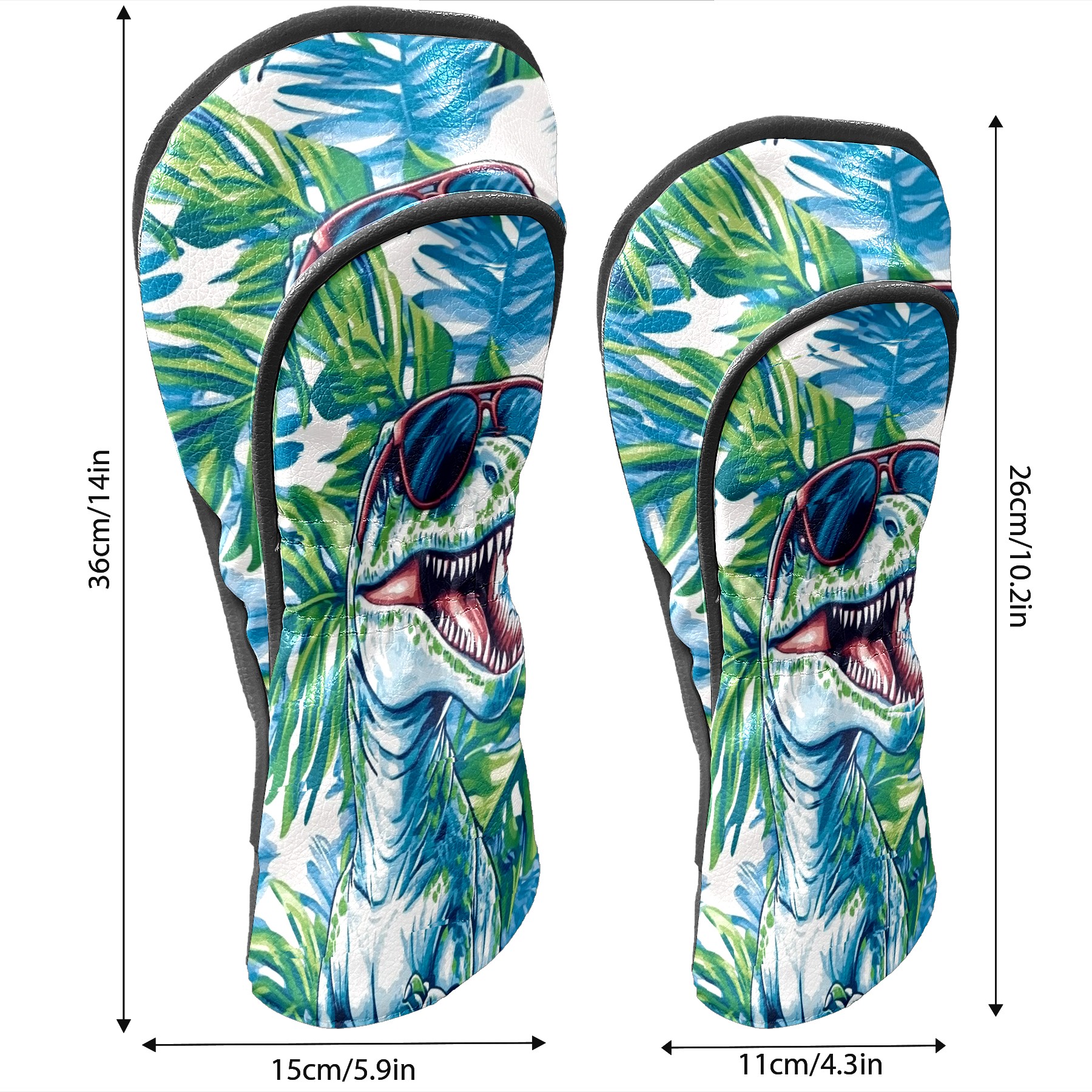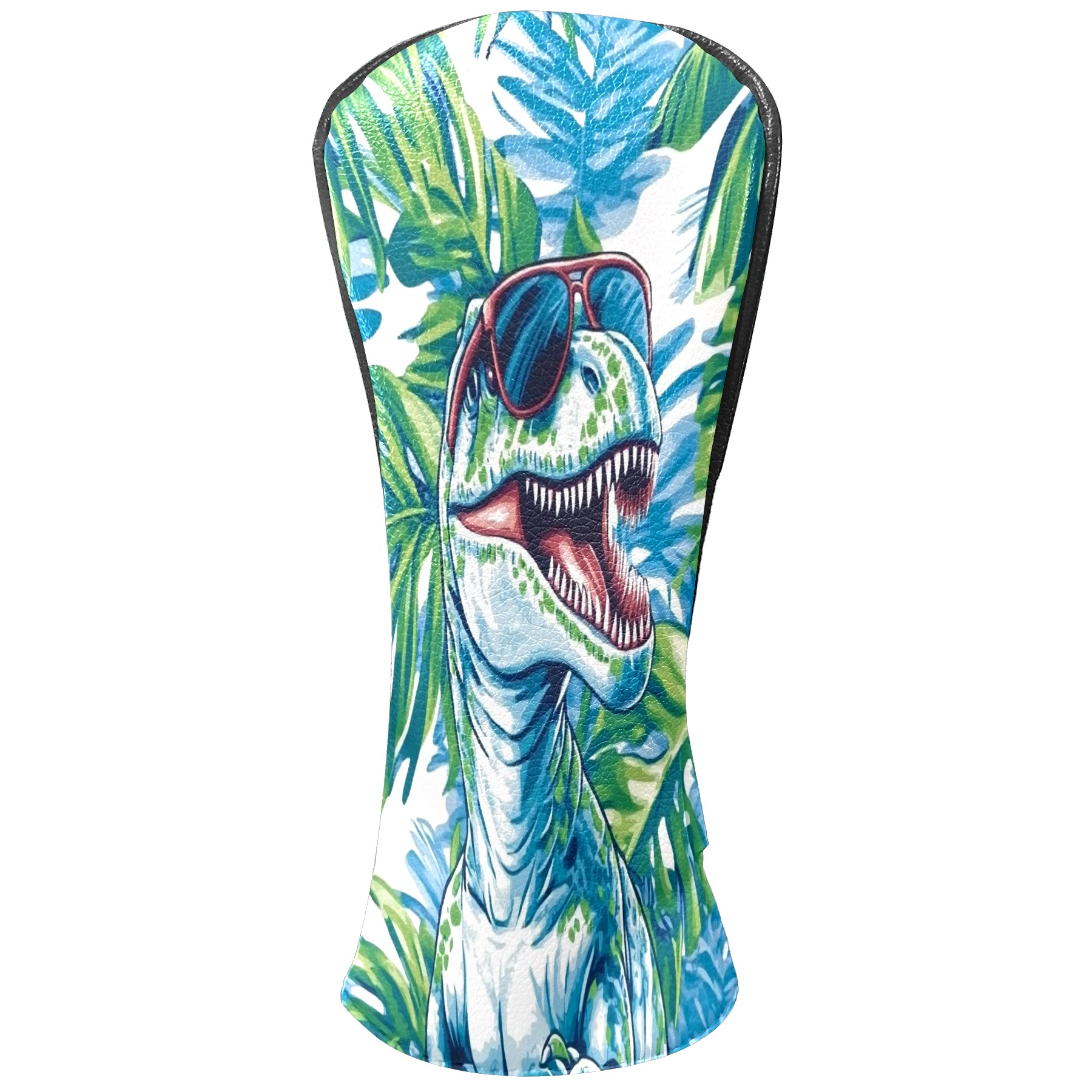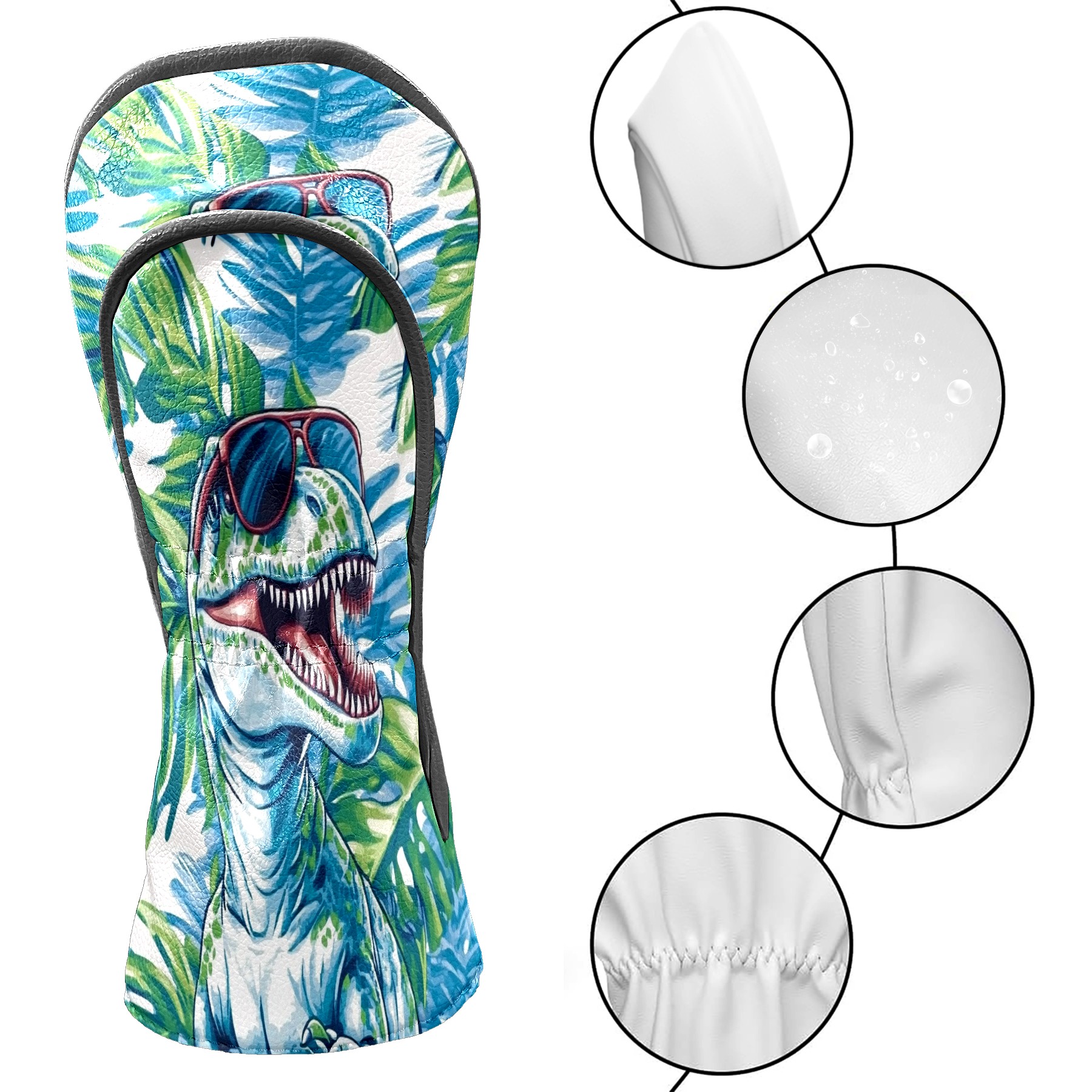 Golf Club Head Covers for Driver and Fairway Woods, Waterproof Leather Headcovers for Golf Clubs, Ideal Golf Accessories Gift for Men Women (T-rex Wearing Sunglasses)