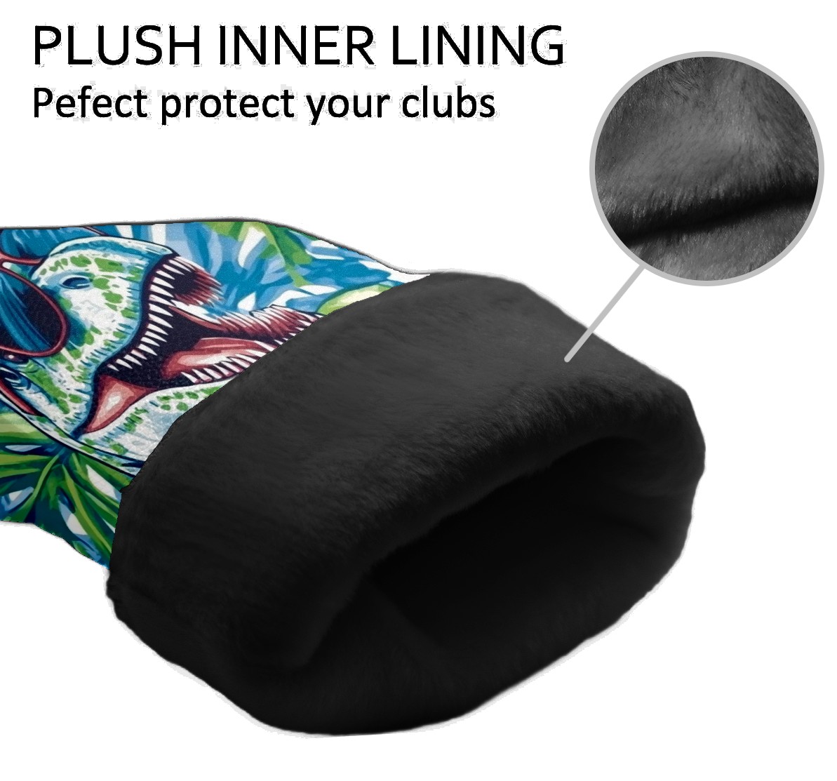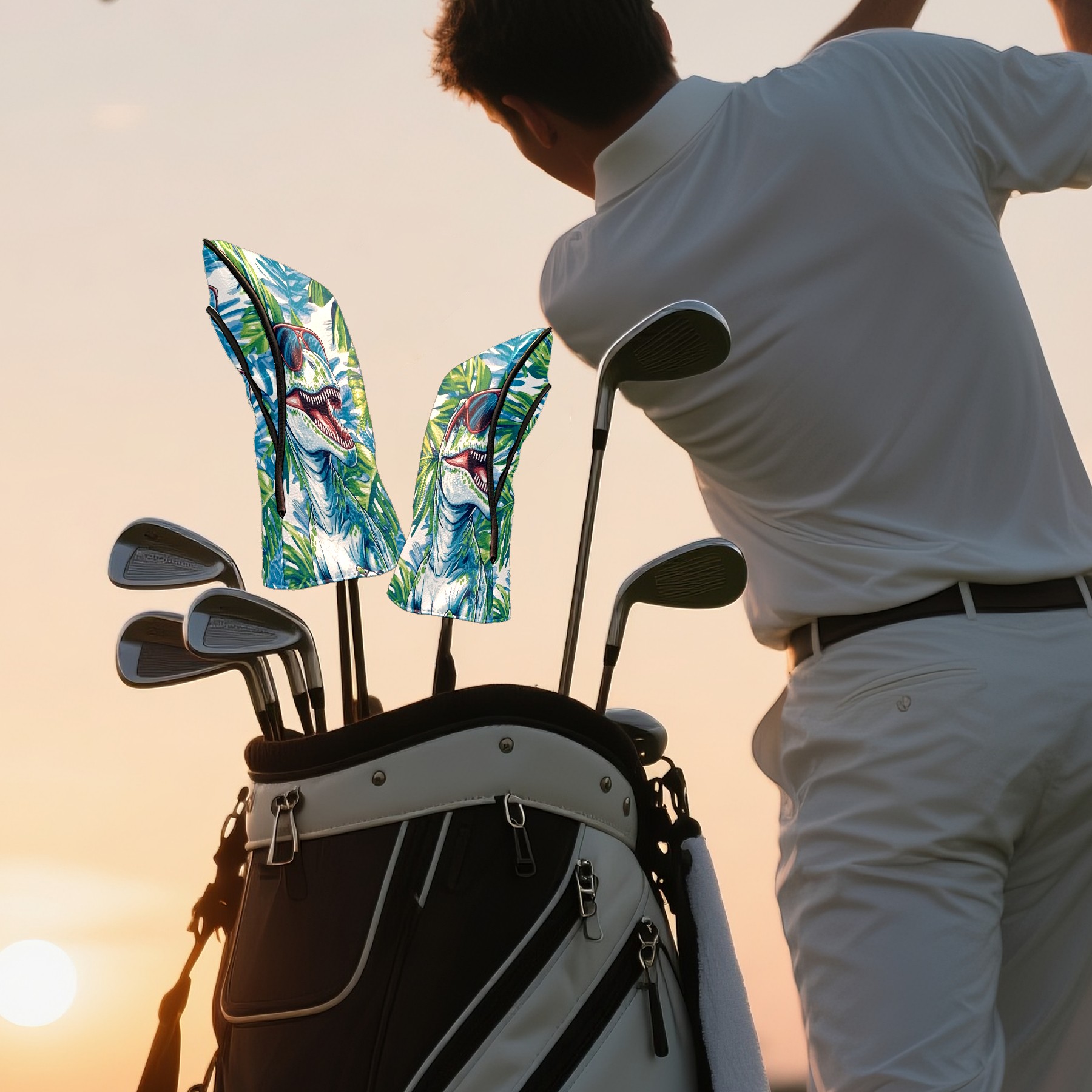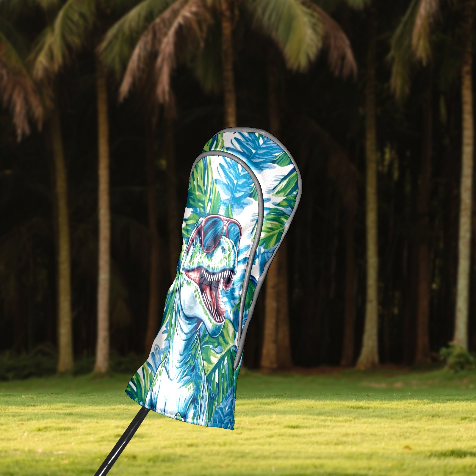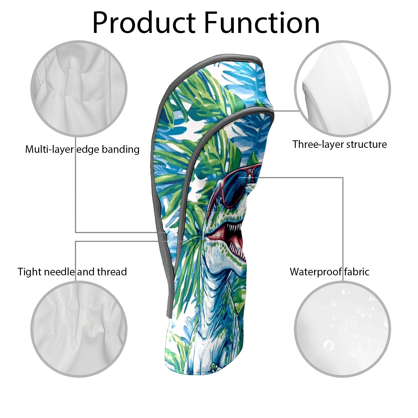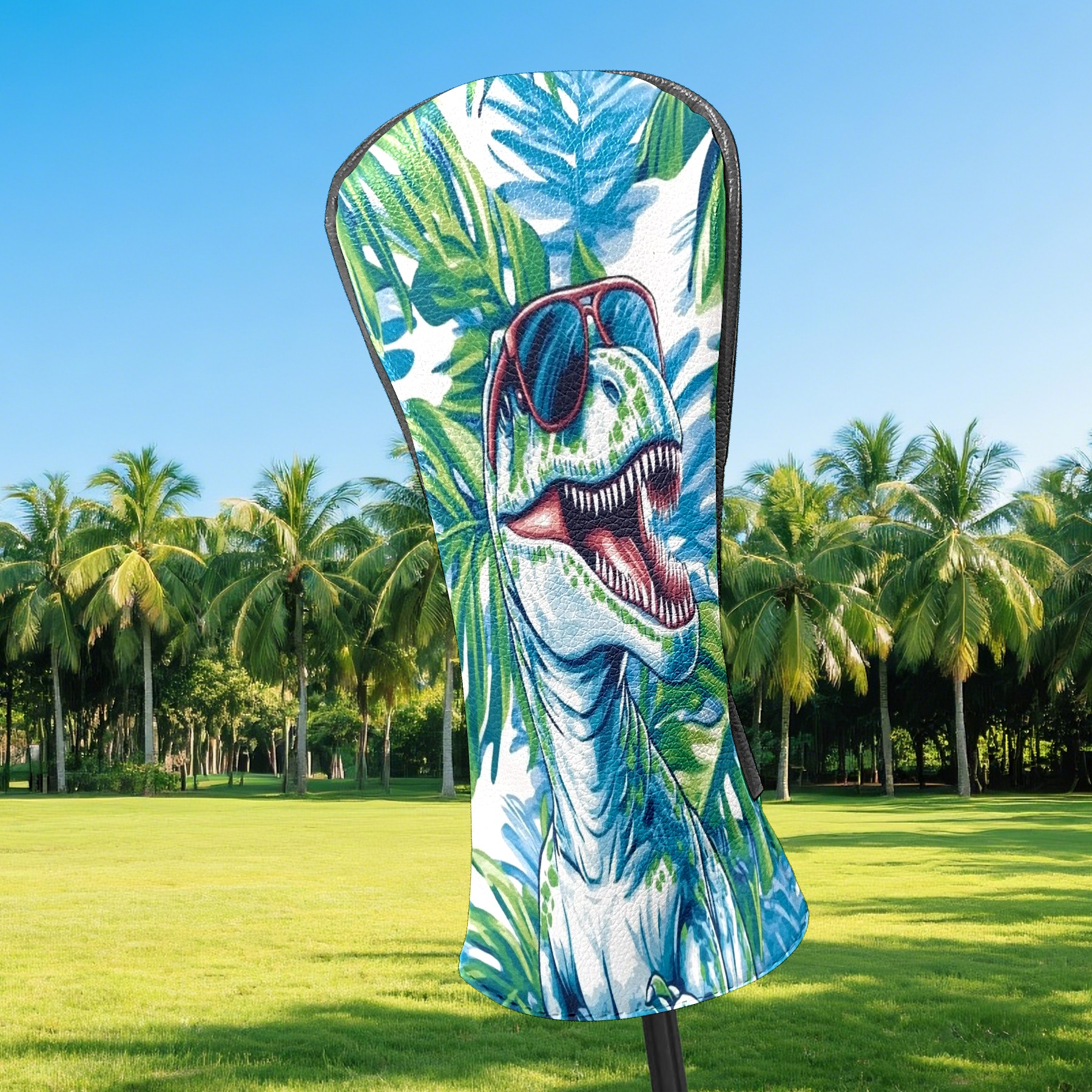 Golf Club Head Covers for Driver and Fairway Woods, Waterproof Leather Headcovers for Golf Clubs, Ideal Golf Accessories Gift for Men Women (T-rex Wearing Sunglasses)