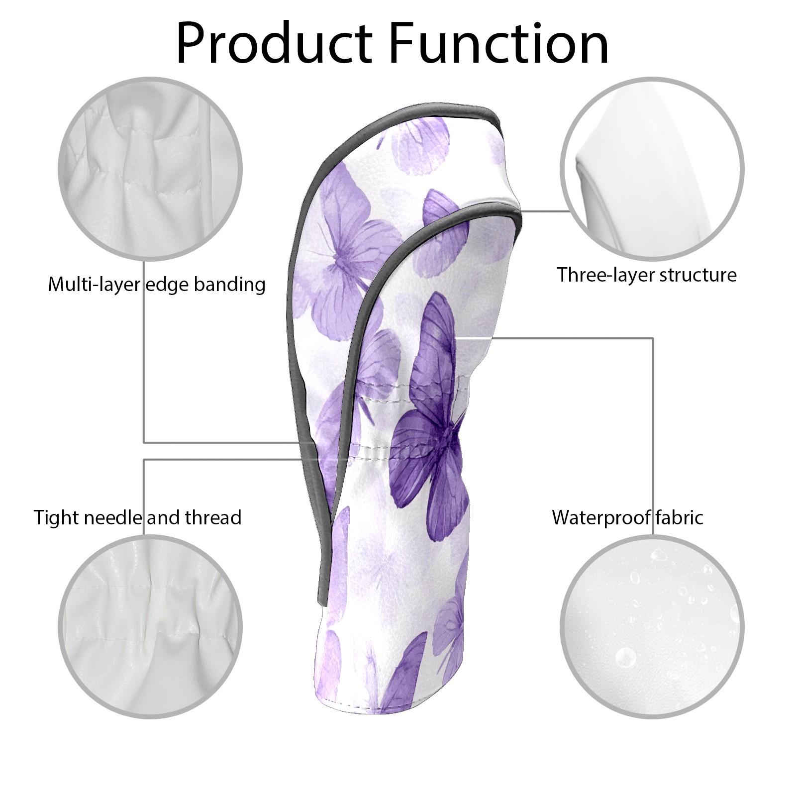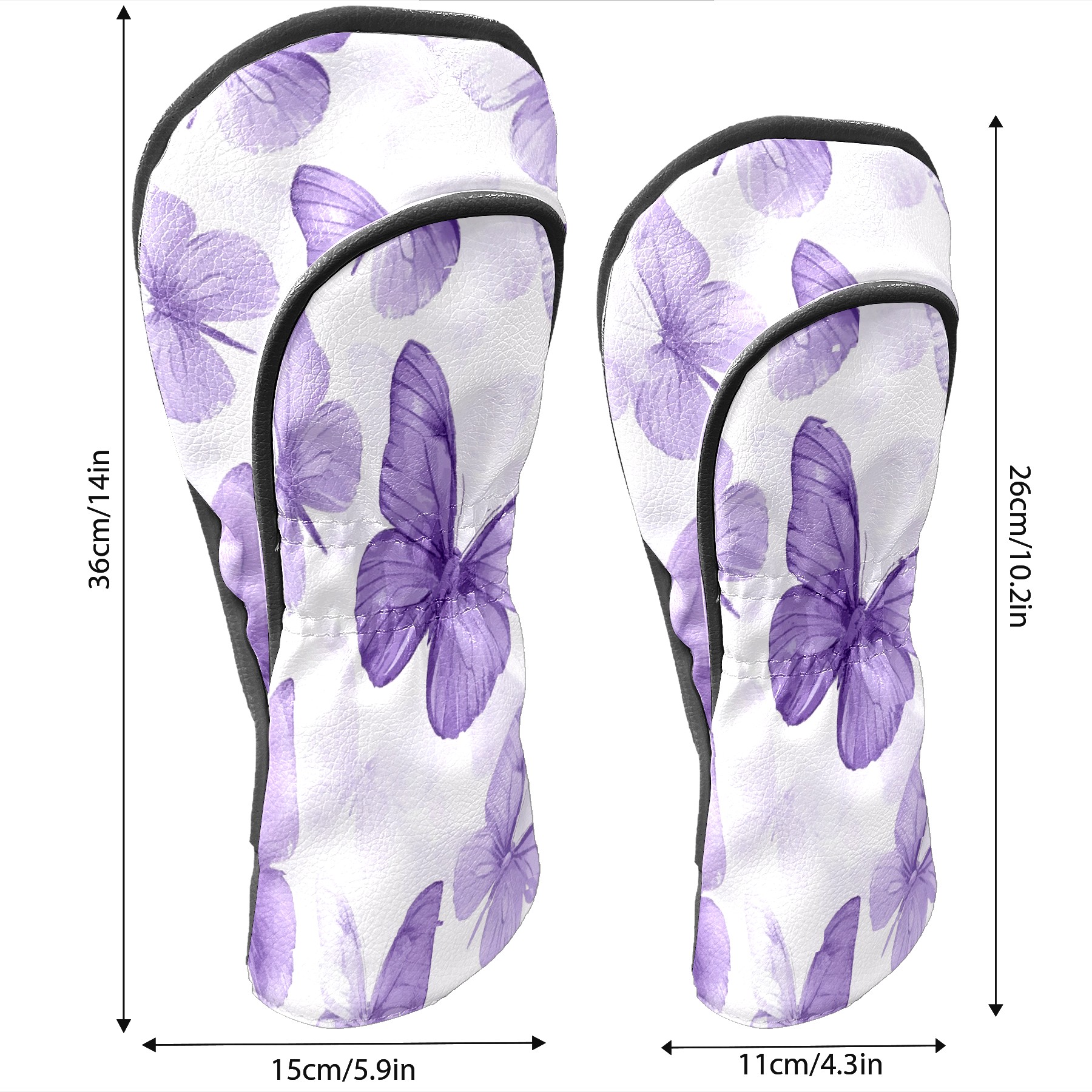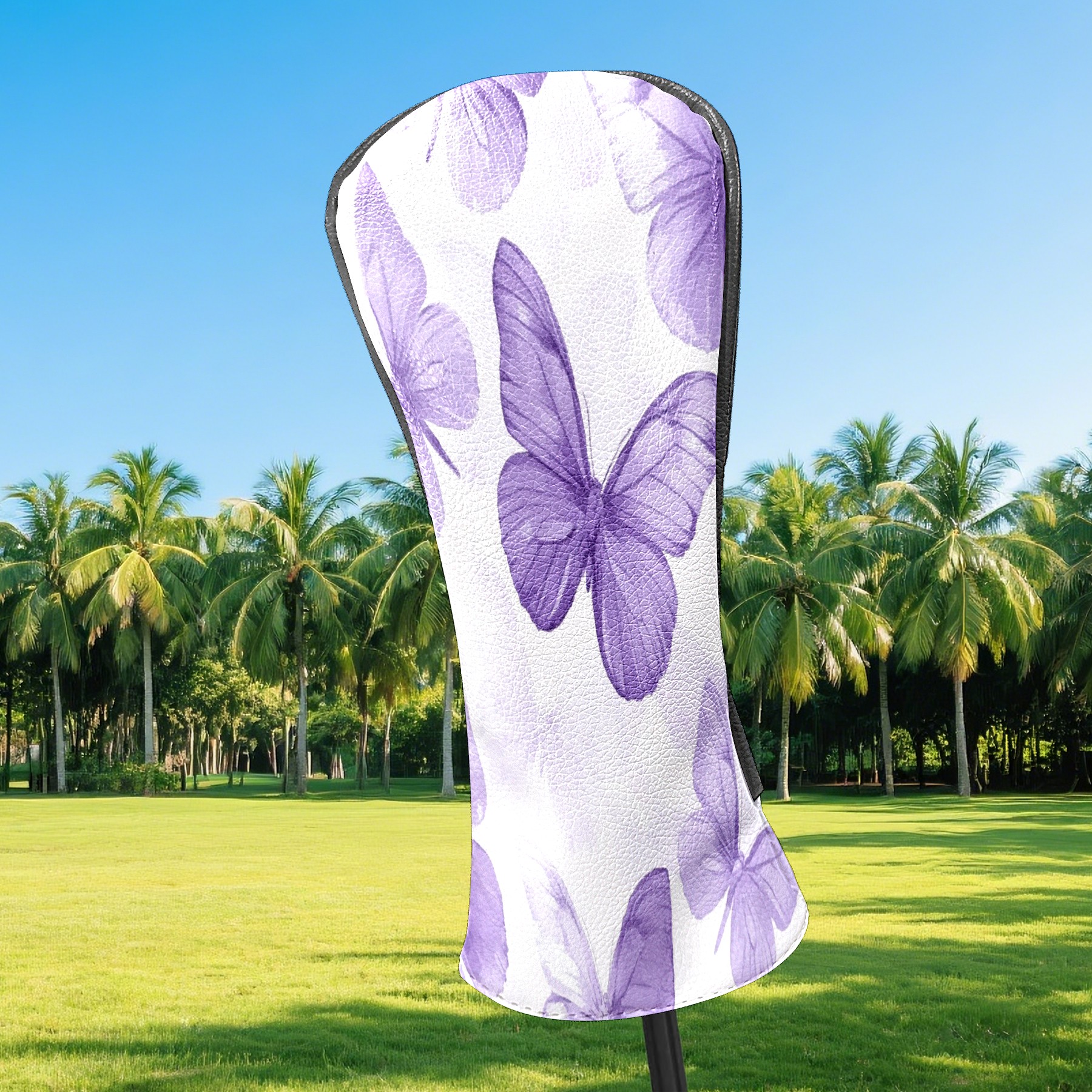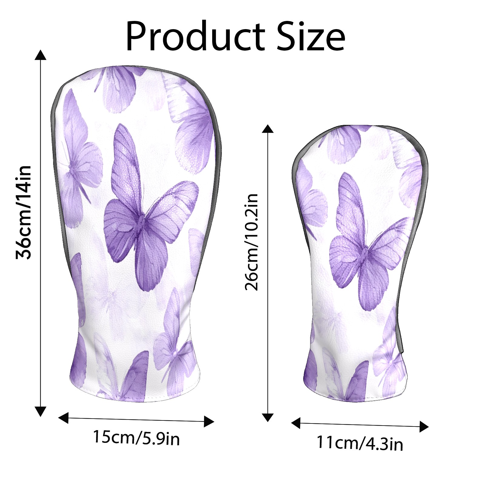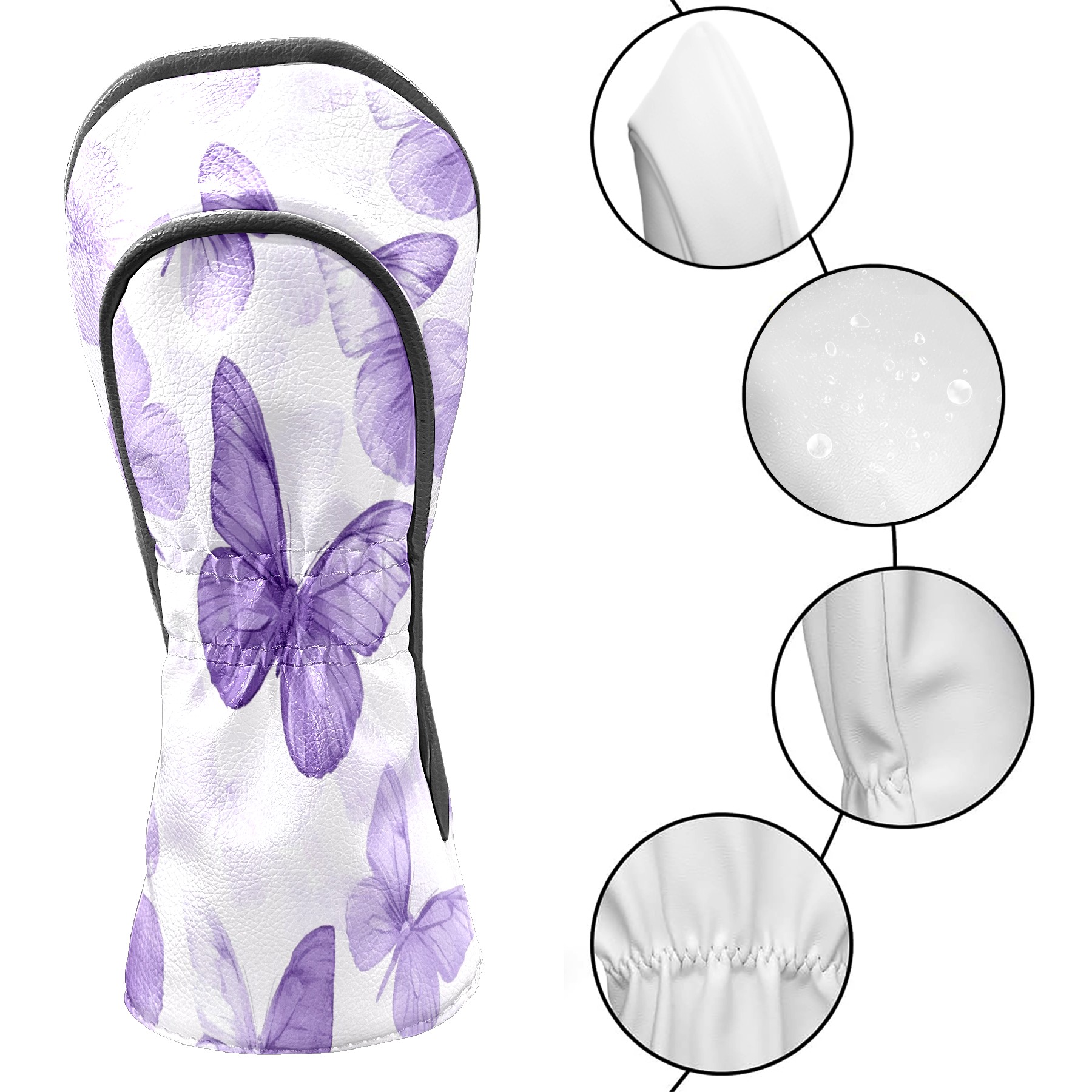 Golf Club Head Covers for Driver and Fairway Woods, Waterproof Leather Headcovers for Golf Clubs, Ideal Golf Accessories Gift for Men Women (Purple Butterflies)