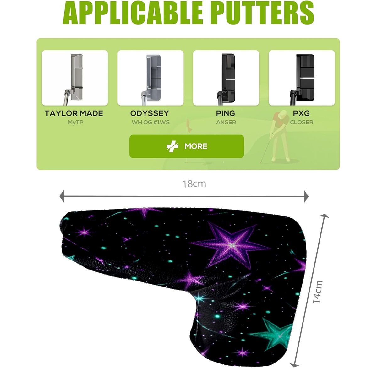 Golf Club Head Cover 2 Pack Golf Club Headcovers for Driver & Fairway Woods Accessories for Men Women Glowing Purple And Teal Stars