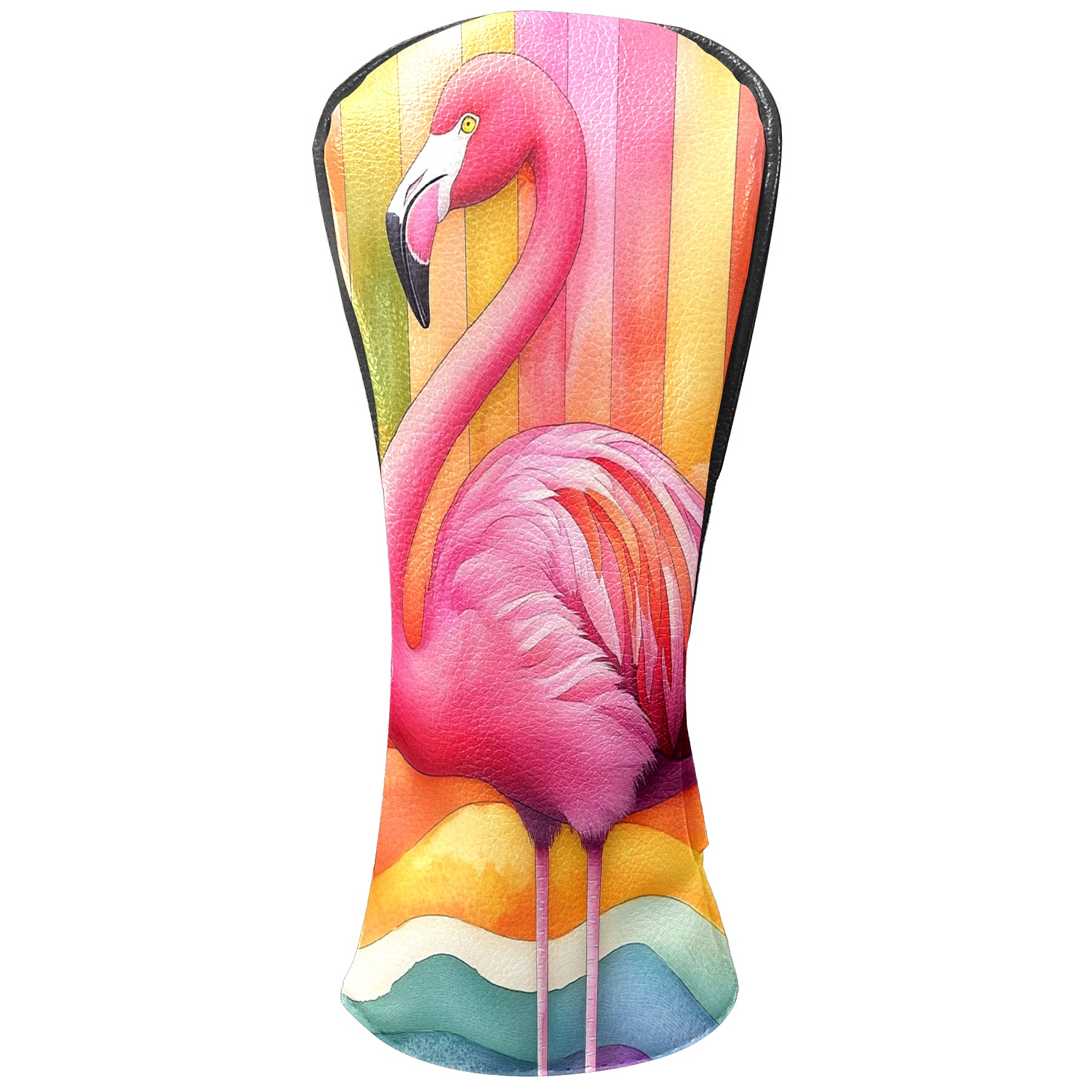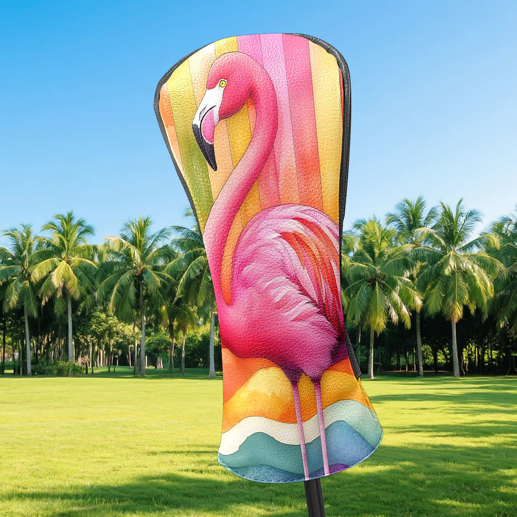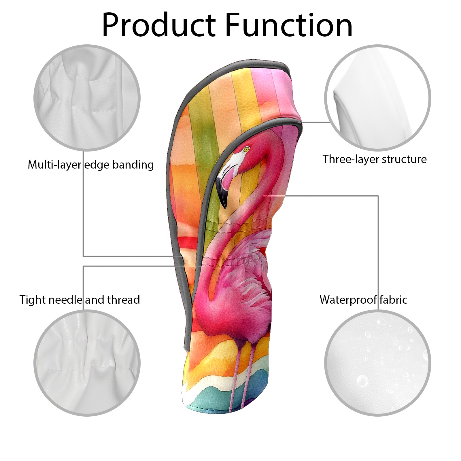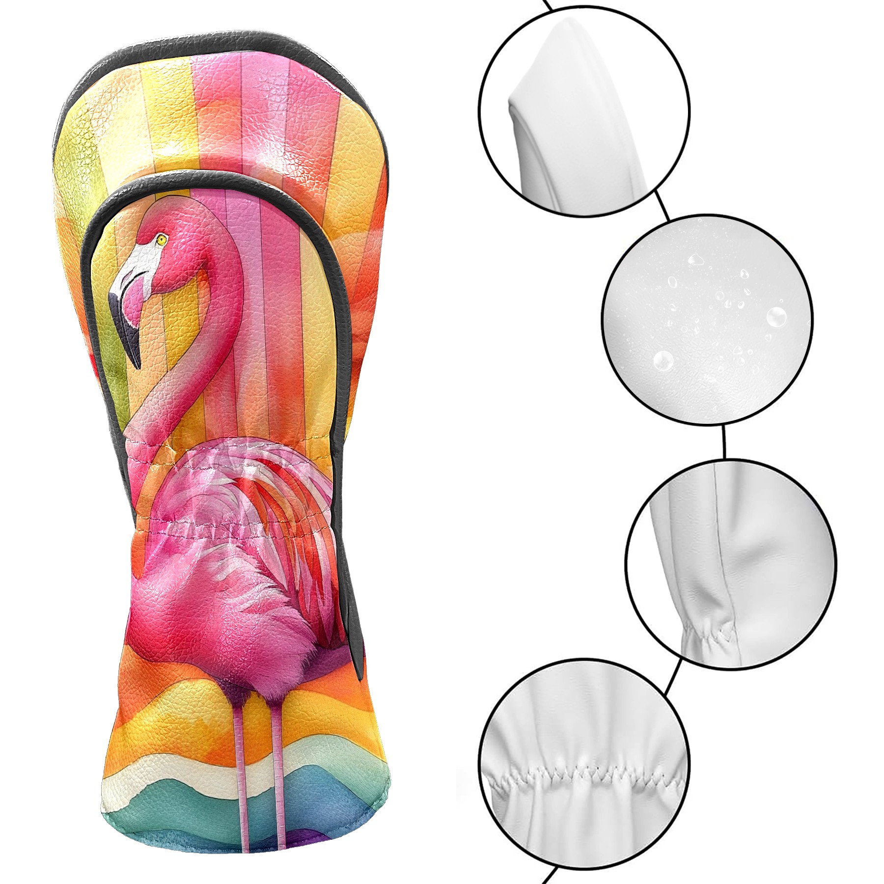 Golf Club Head Cover Premium Leather Driver Headcover, Golf Head Covers for Woods and Driver Waterproof Golf Headcovers with Anti-Scratch Lining for Men Women (Pink Flamingo)
