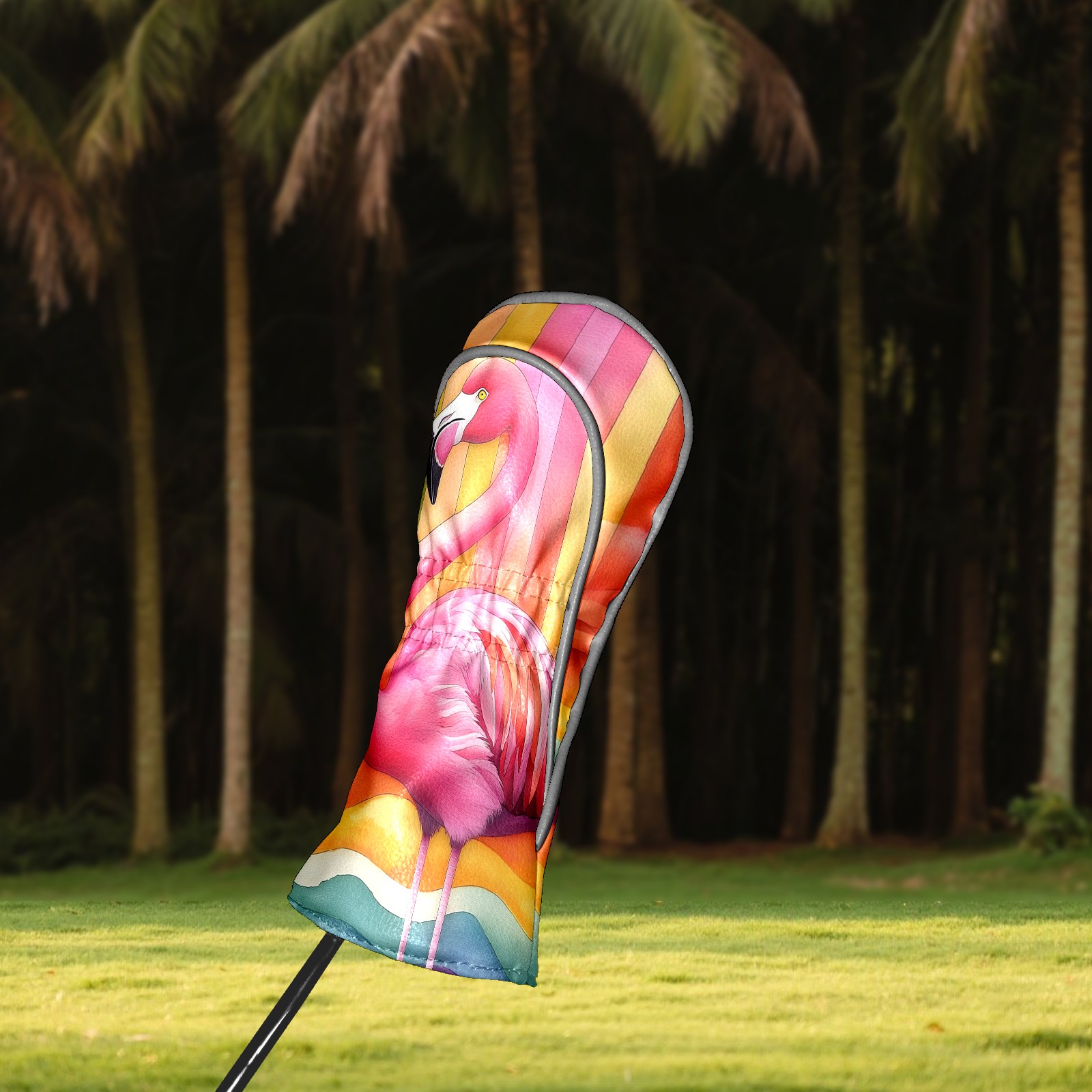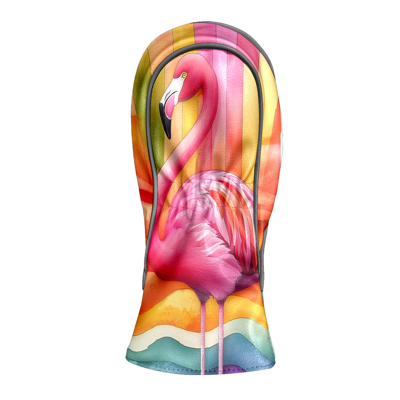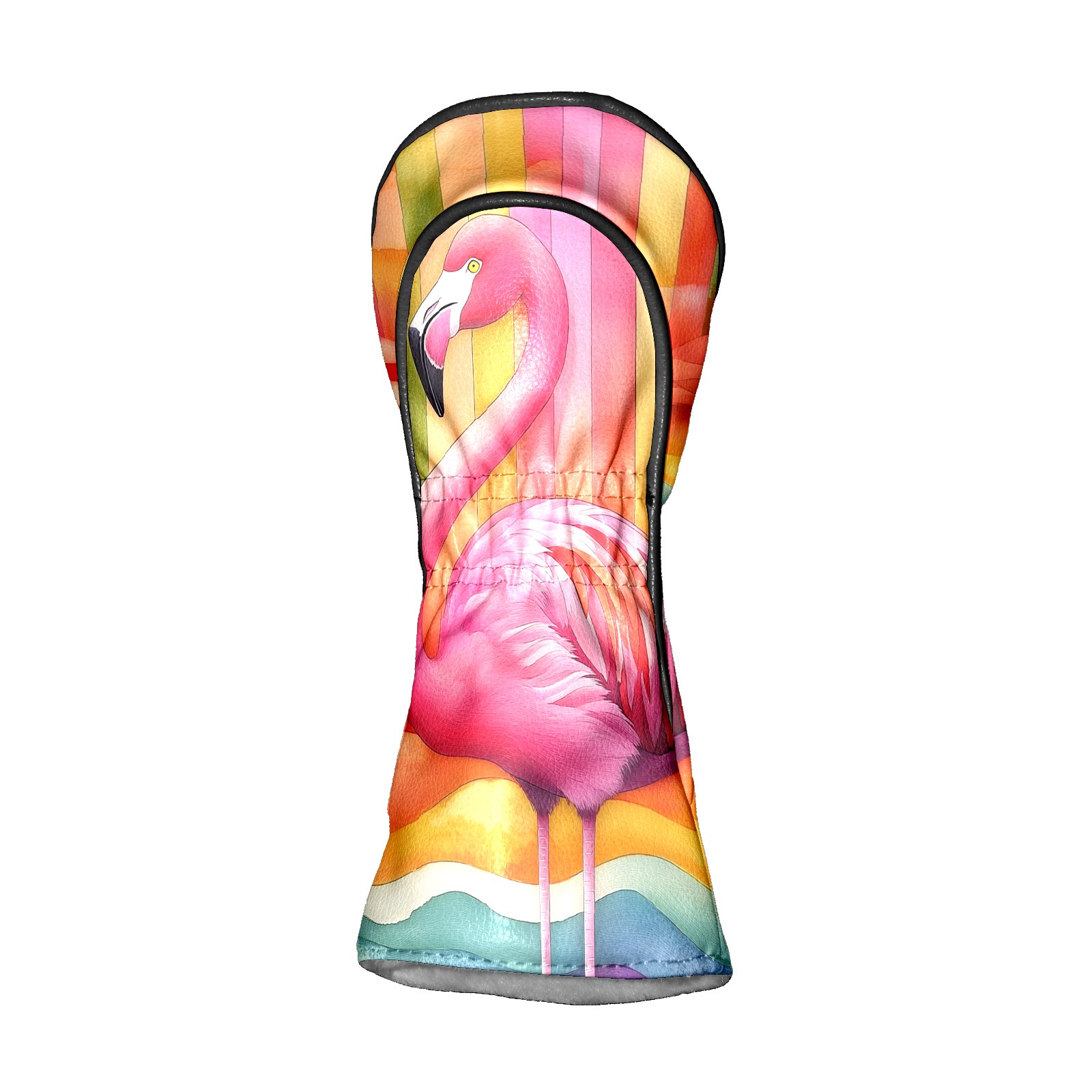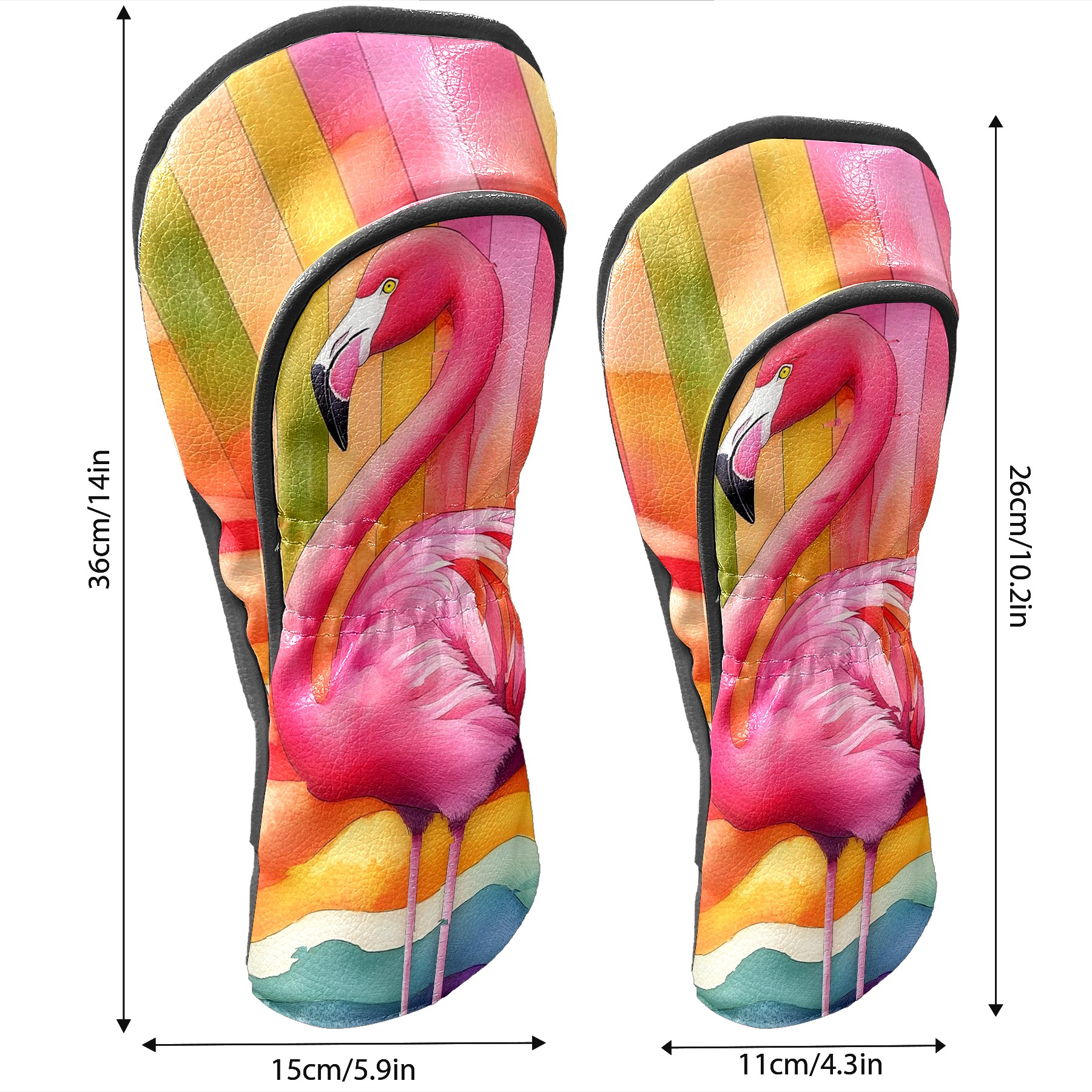 Golf Club Head Cover Premium Leather Driver Headcover, Golf Head Covers for Woods and Driver Waterproof Golf Headcovers with Anti-Scratch Lining for Men Women (Pink Flamingo)