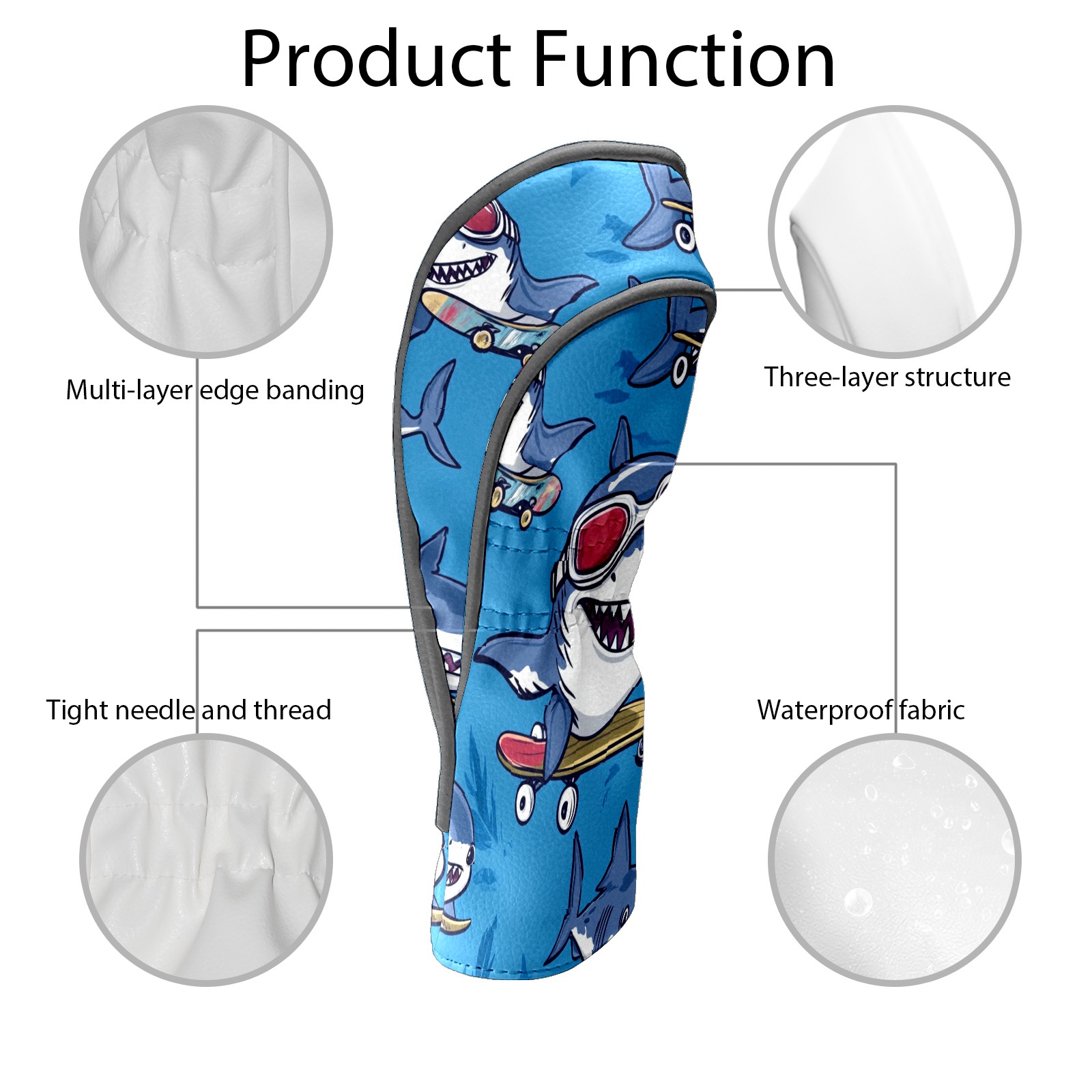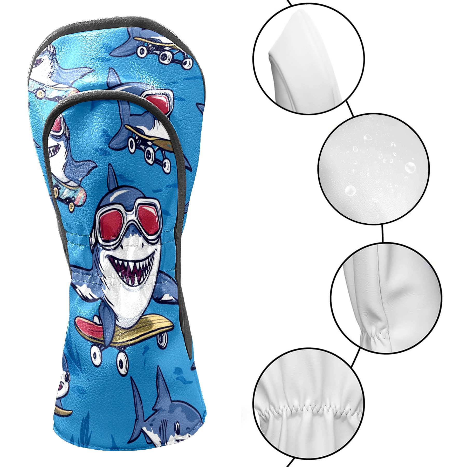 Golf Club Head Covers for Driver and Fairway Woods, Waterproof Leather Headcovers for Golf Clubs, Ideal Golf Accessories Gift for Men Women (Shark)