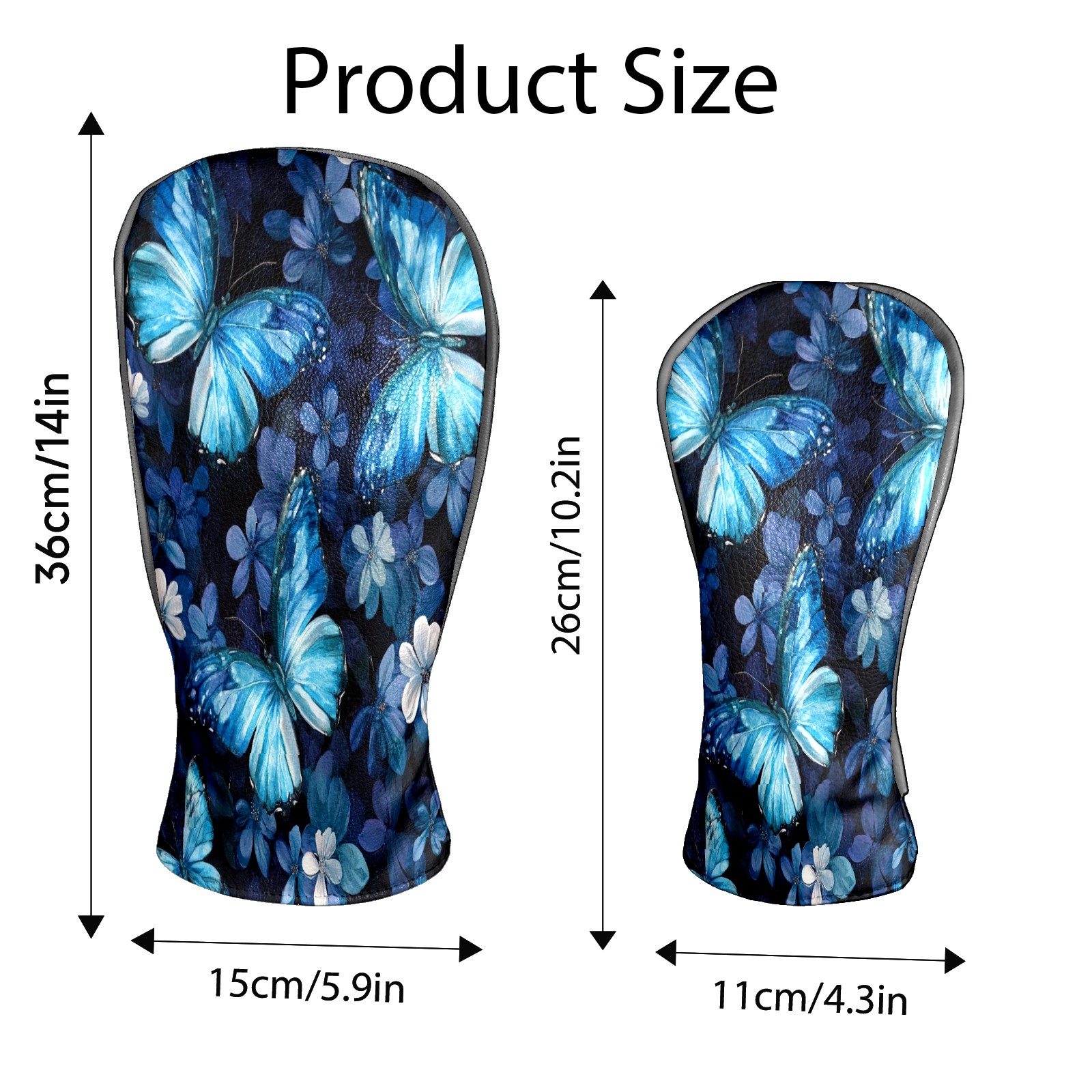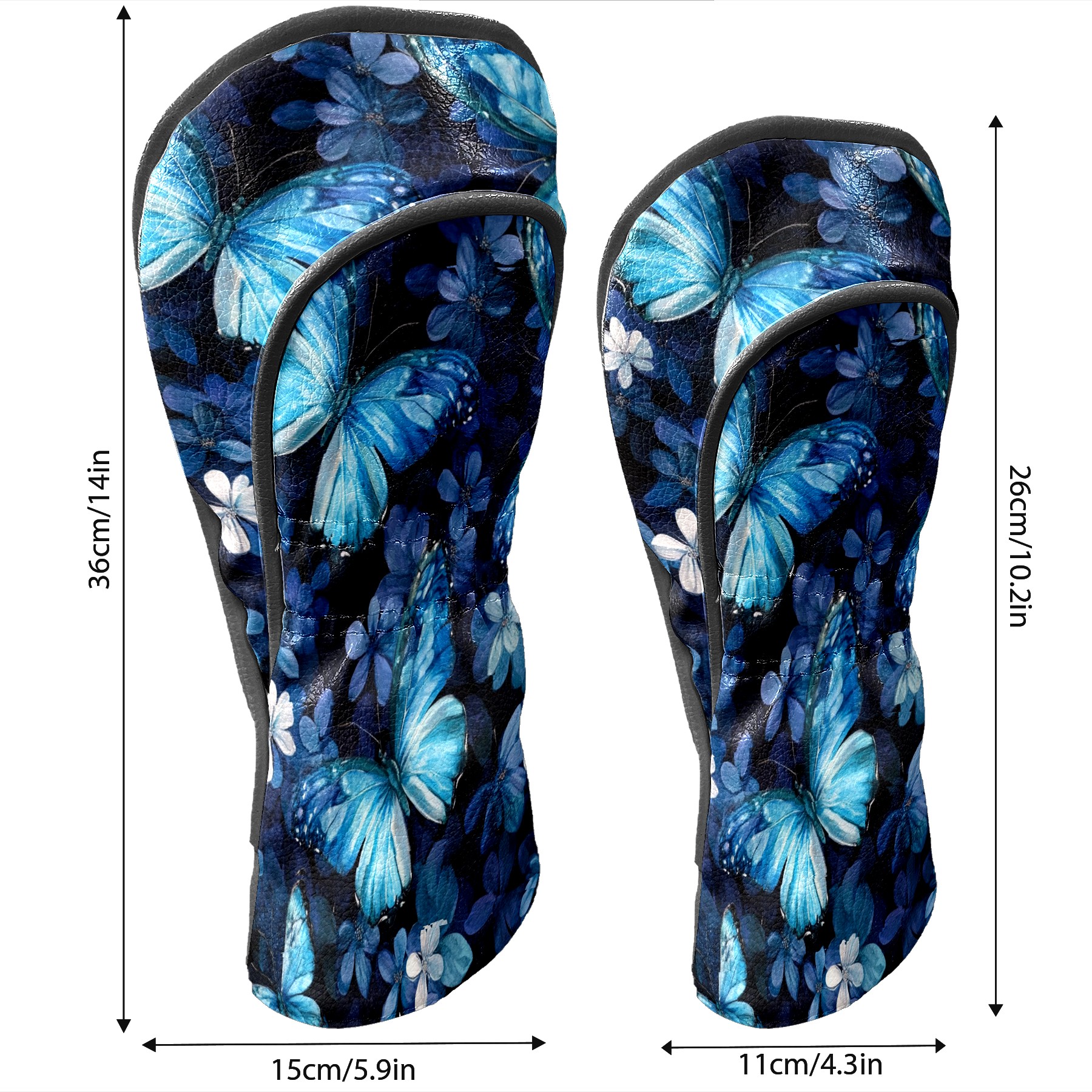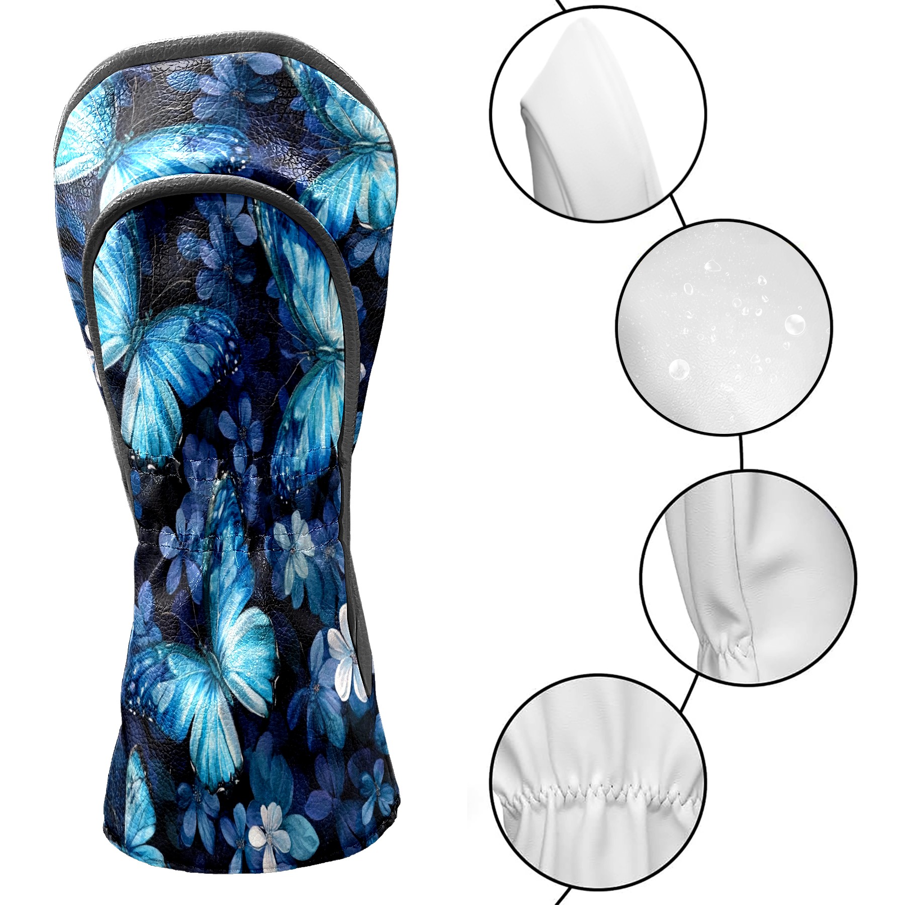 Golf Club Head Covers for Driver and Fairway Woods, Waterproof Leather Headcovers for Golf Clubs, Ideal Golf Accessories Gift for Men Women (Turquoise Butterflies)