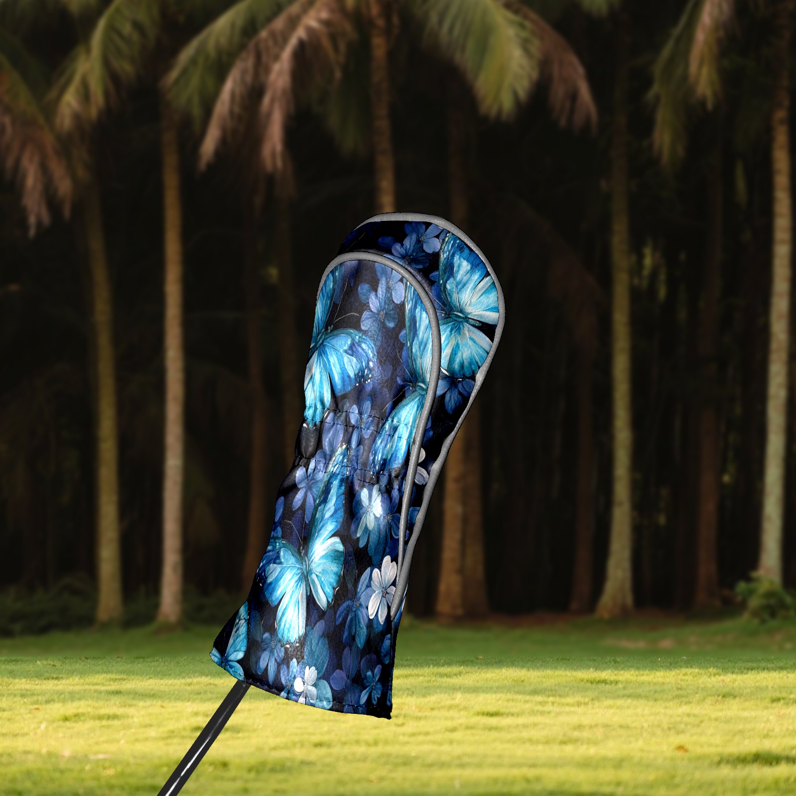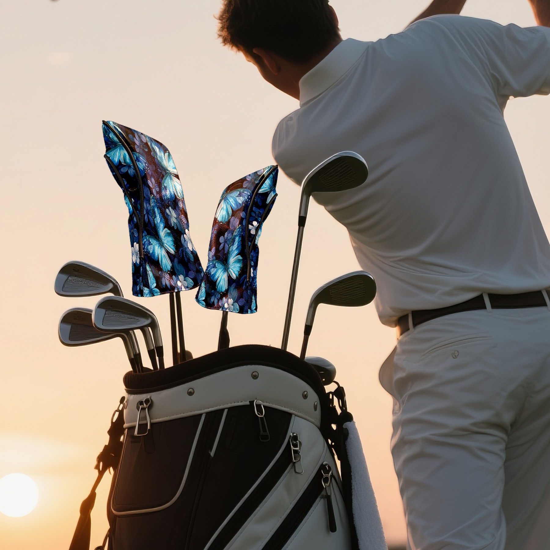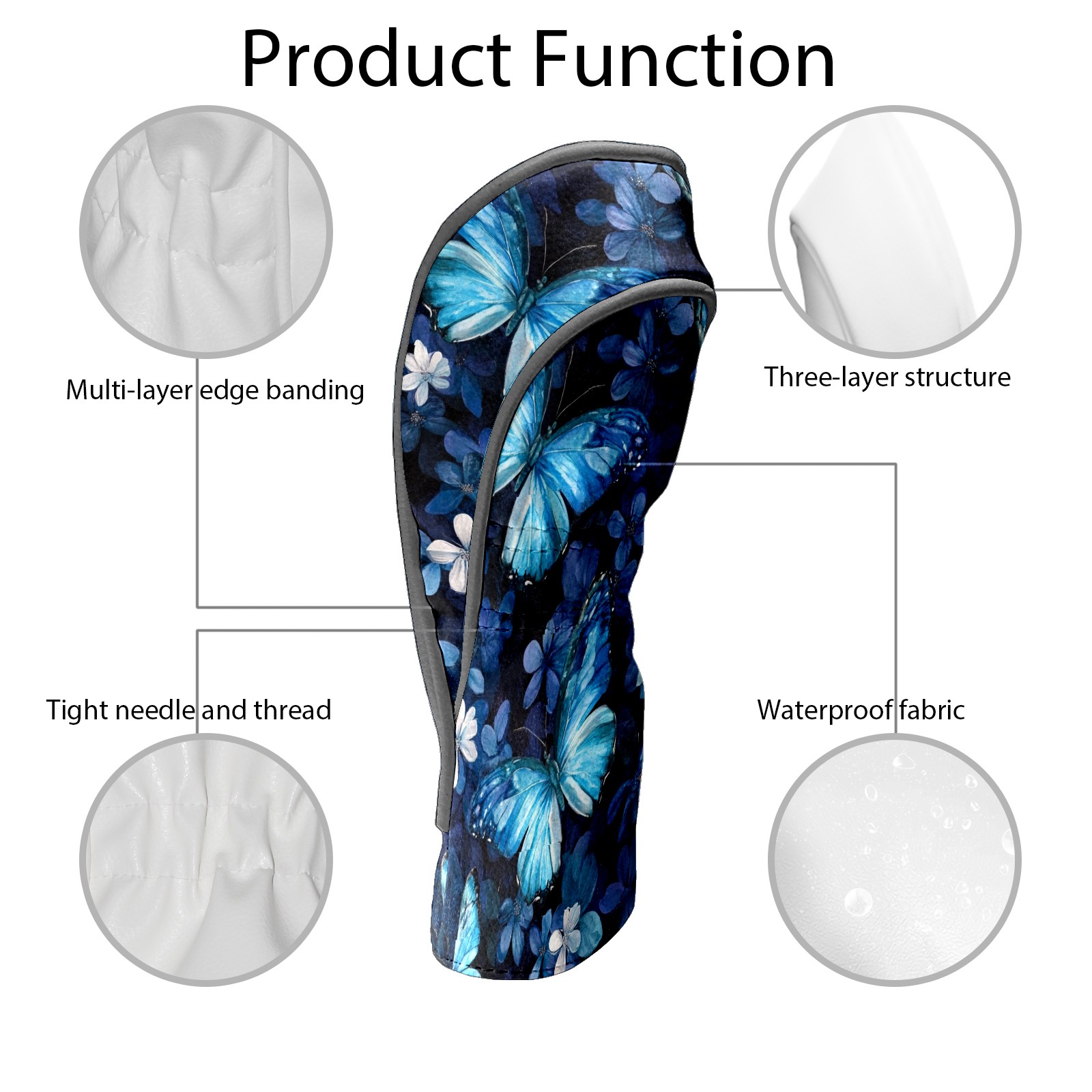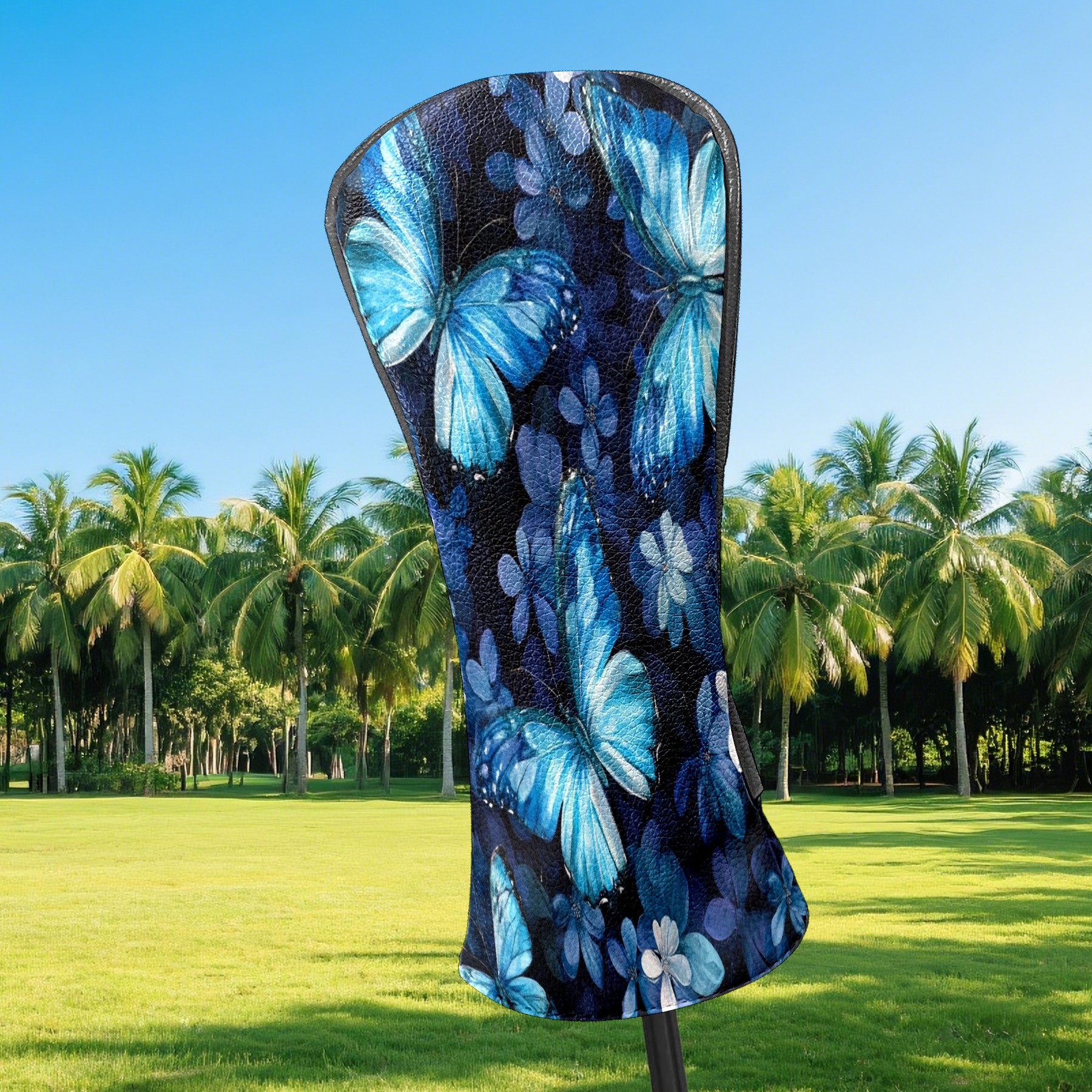 Golf Club Head Covers for Driver and Fairway Woods, Waterproof Leather Headcovers for Golf Clubs, Ideal Golf Accessories Gift for Men Women (Turquoise Butterflies)