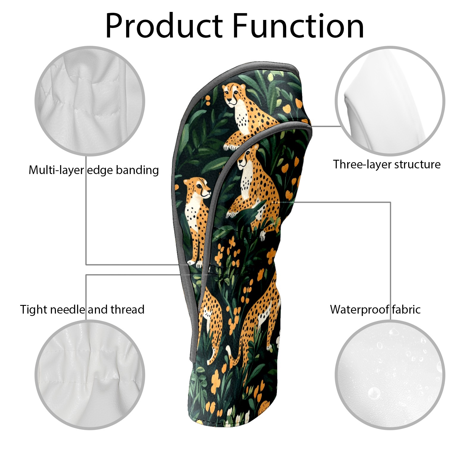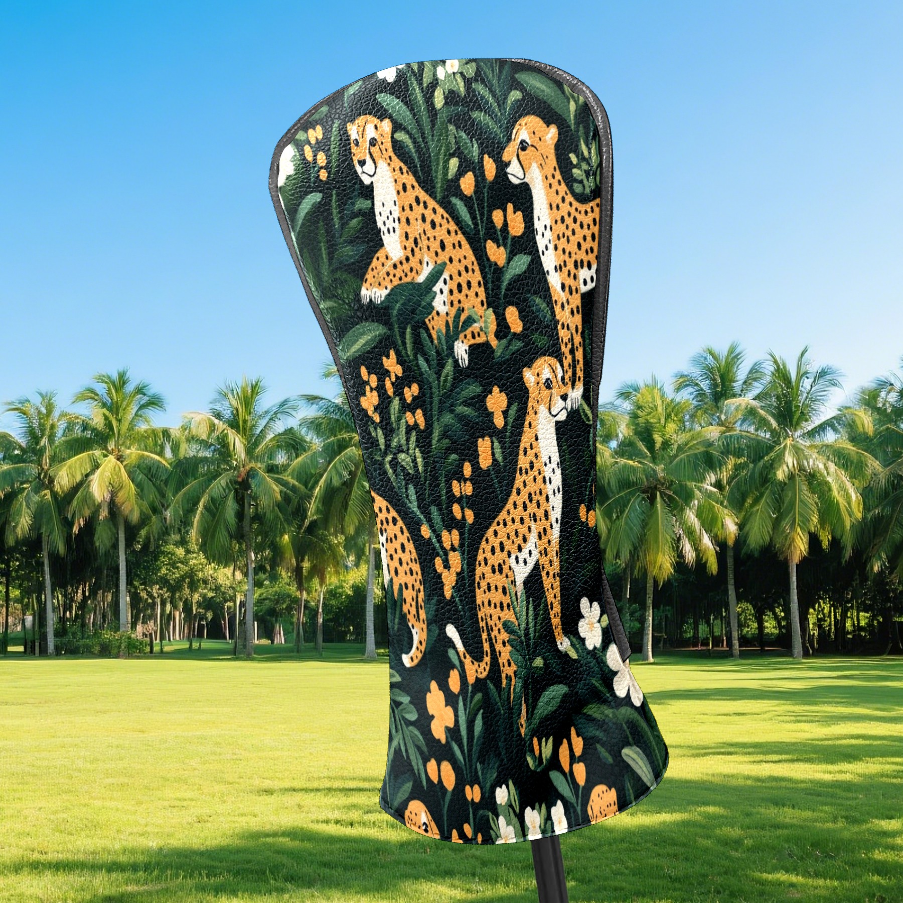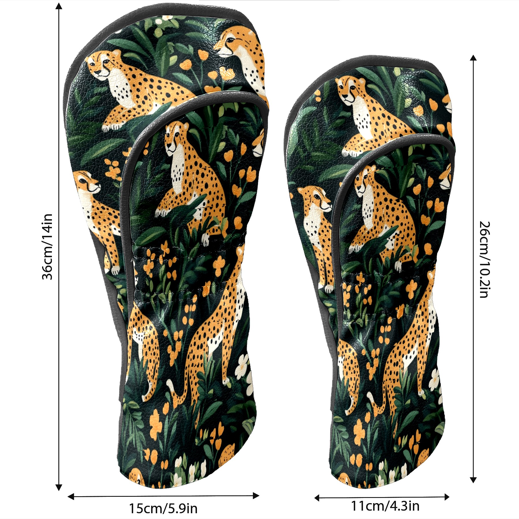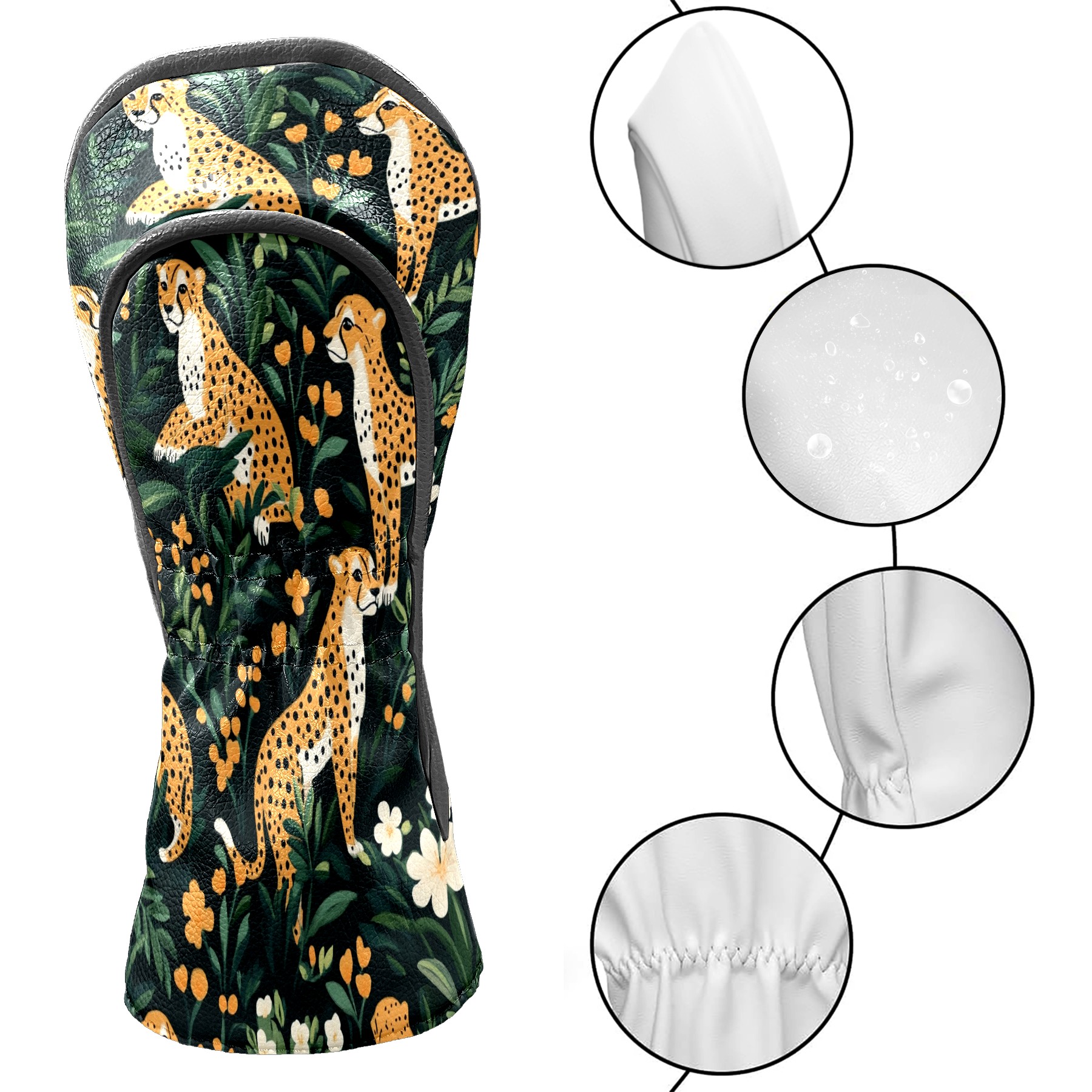 Golf Club Head Covers for Driver and Fairway Woods, Waterproof Leather Headcovers for Golf Clubs, Ideal Golf Accessories Gift for Men Women (Cheetahs)