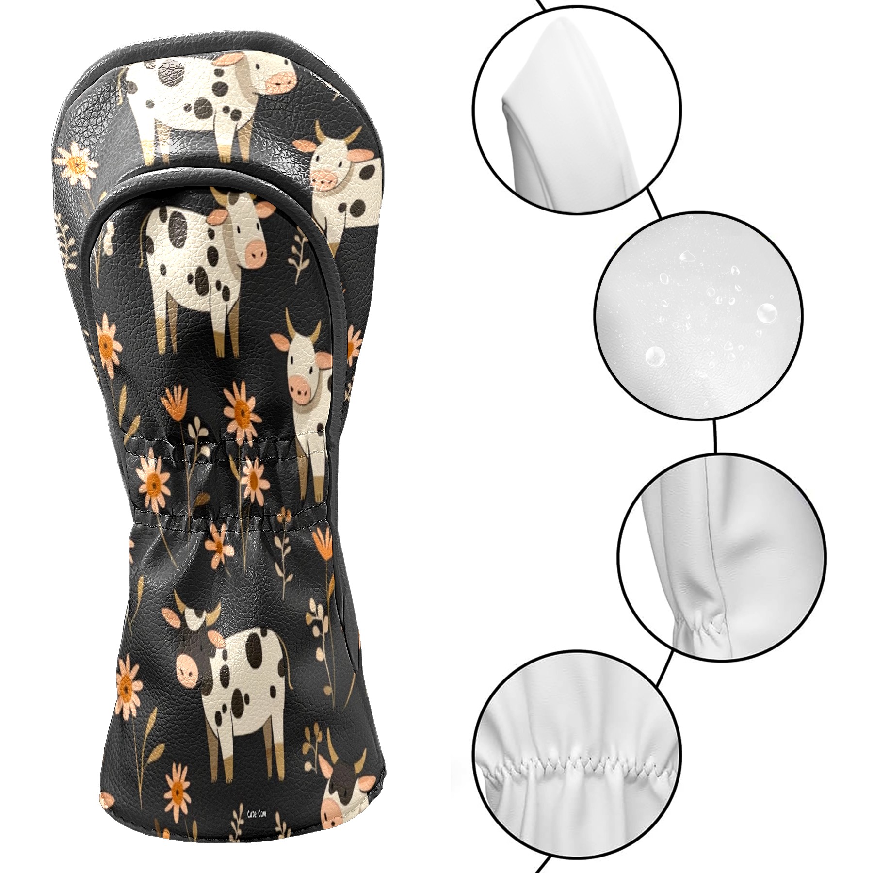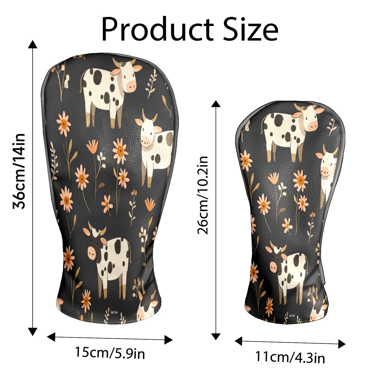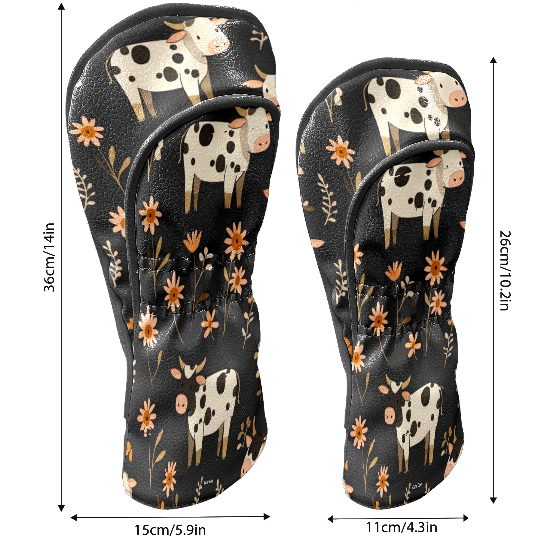 Golf Club Head Covers for Driver and Fairway Woods, Waterproof Leather Headcovers for Golf Clubs, Ideal Golf Accessories Gift for Men Women (Cows And Flowers)