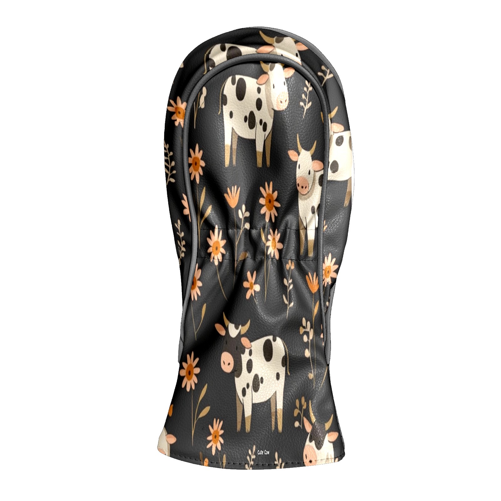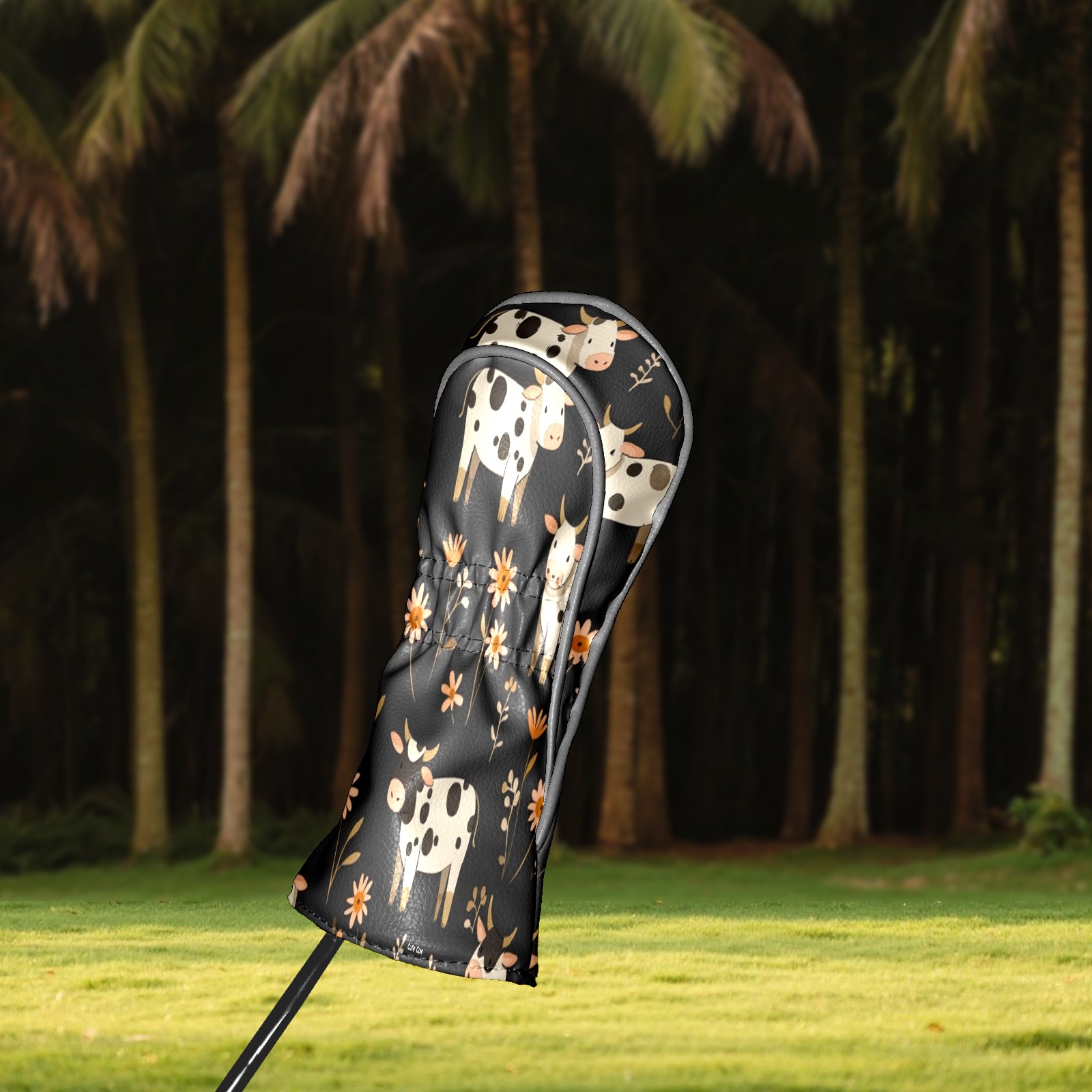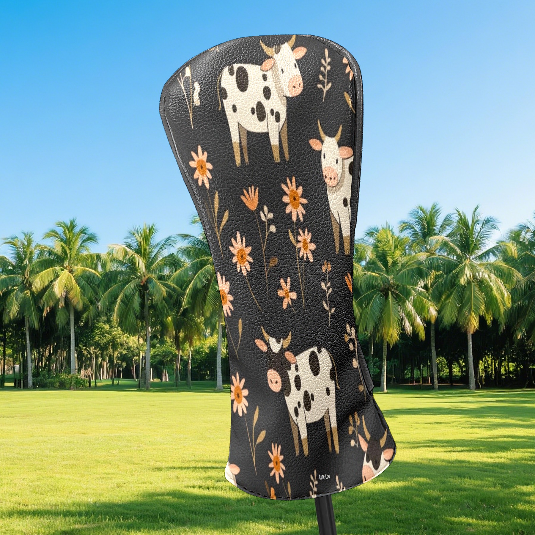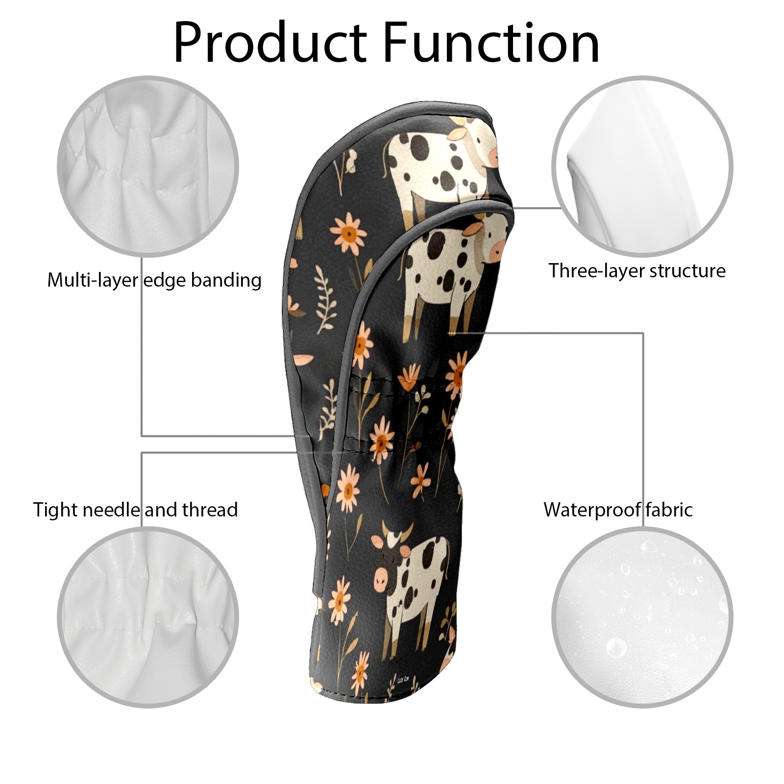 Golf Club Head Covers for Driver and Fairway Woods, Waterproof Leather Headcovers for Golf Clubs, Ideal Golf Accessories Gift for Men Women (Cows And Flowers)