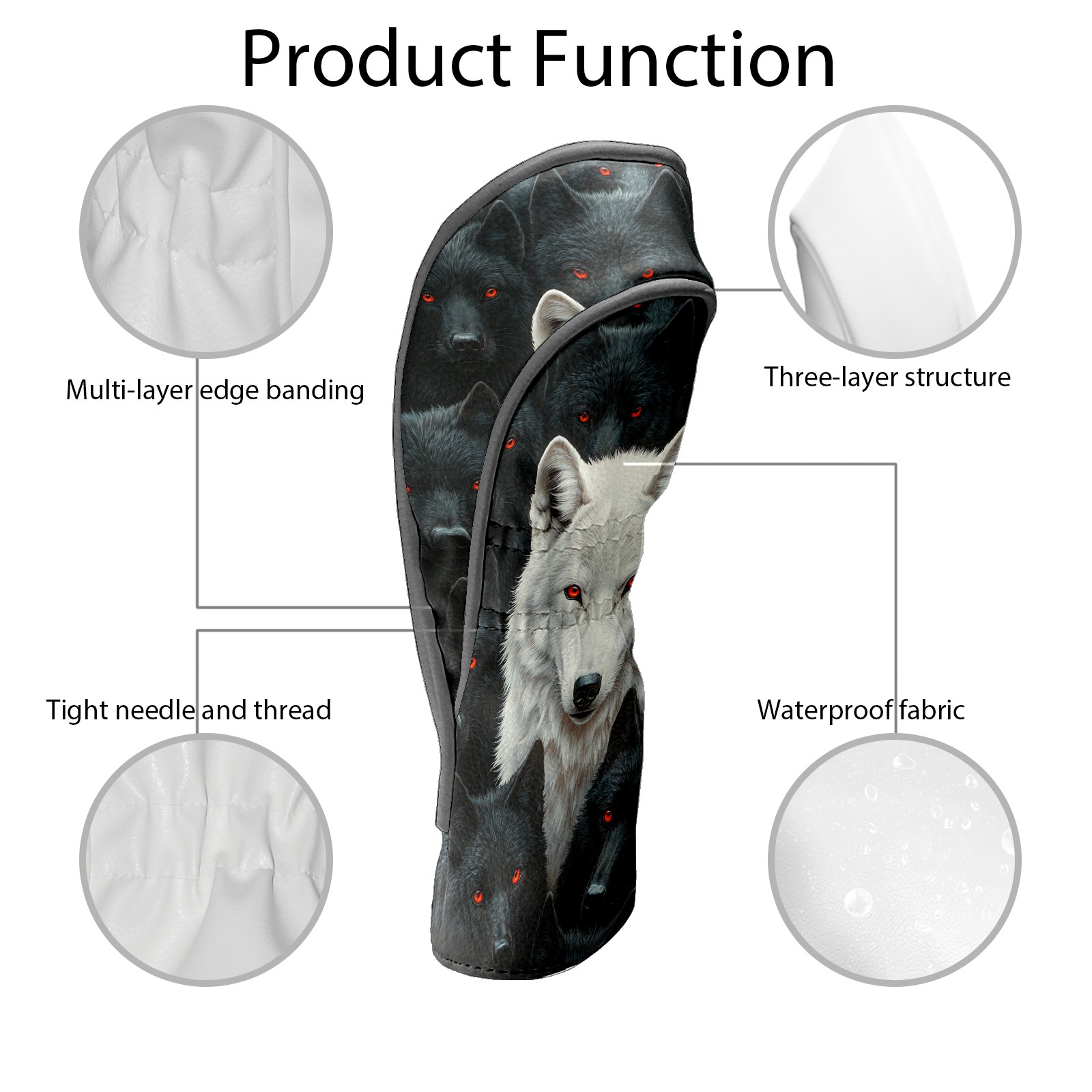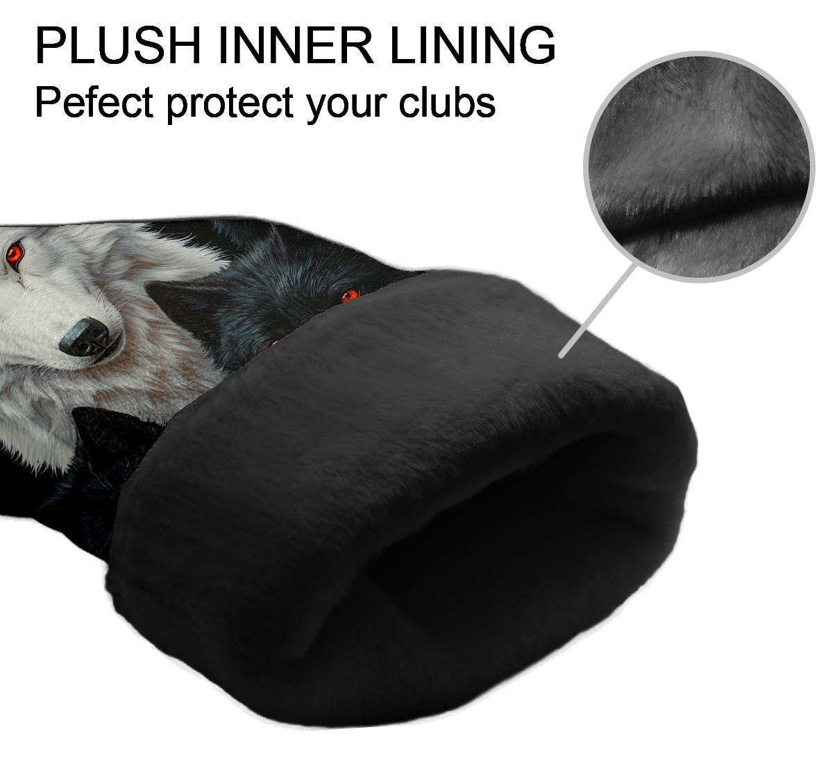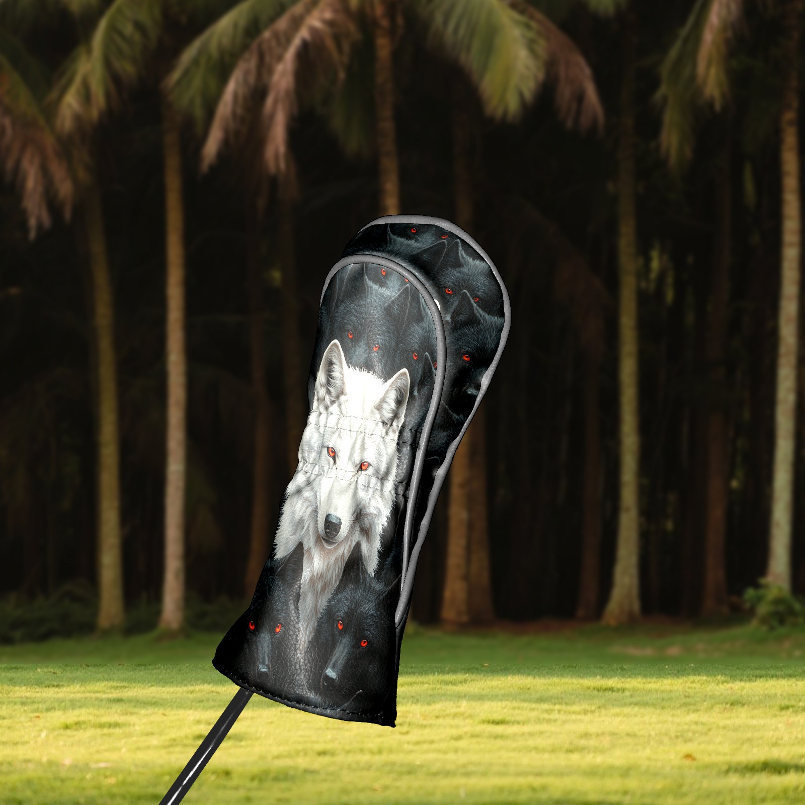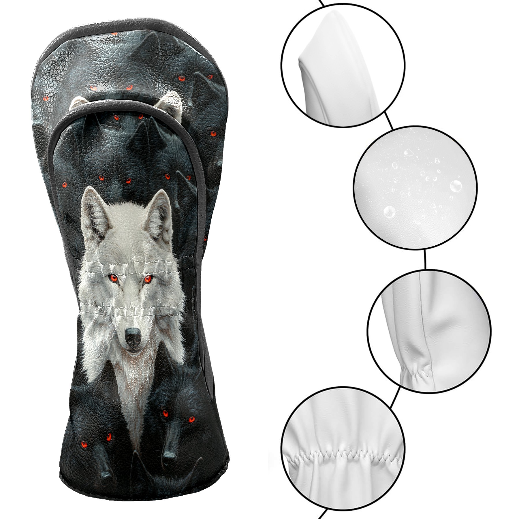 Golf Club Head Cover Premium Leather Driver Headcover, Golf Head Covers for Woods and Driver Waterproof Golf Headcovers with Anti-Scratch Lining for Men Women (Black Wolf)