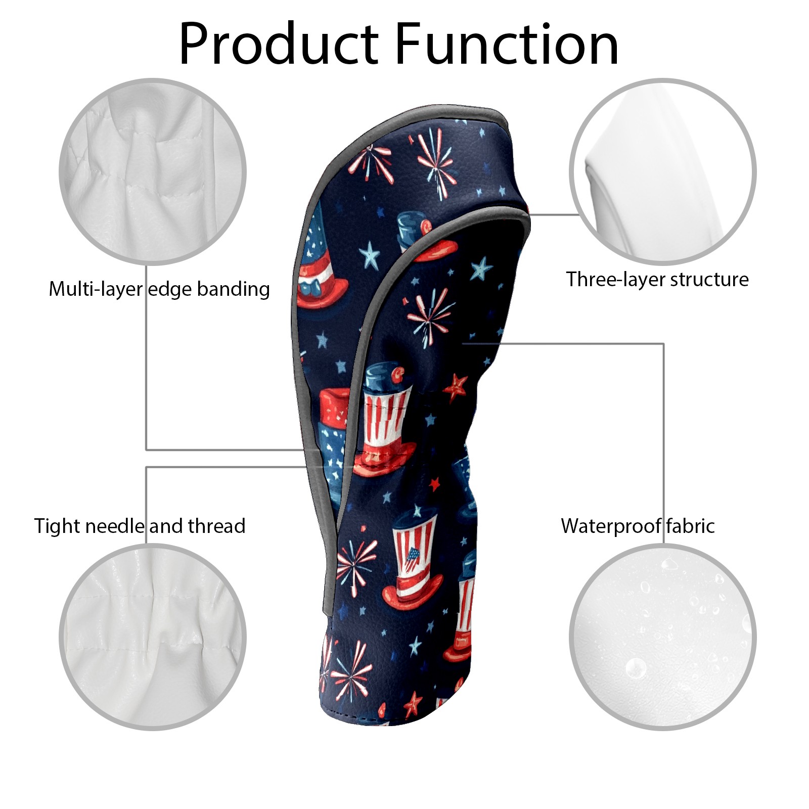 Black Golf Club Head Cover Golf Accessories Head Covers Set For Driver & Fairway Woods American Flag Top Hats