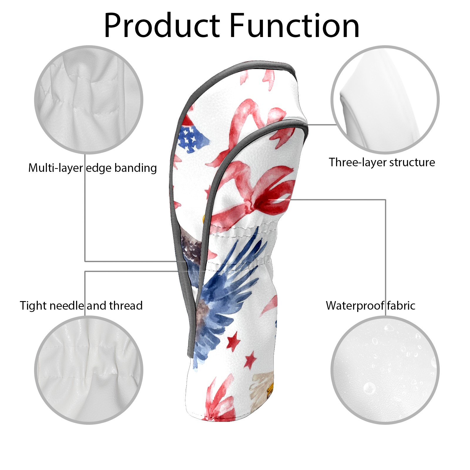 Black Golf Club Head Cover Golf Accessories Head Covers Set For Driver & Fairway Woods American Flag Bows And Eagles