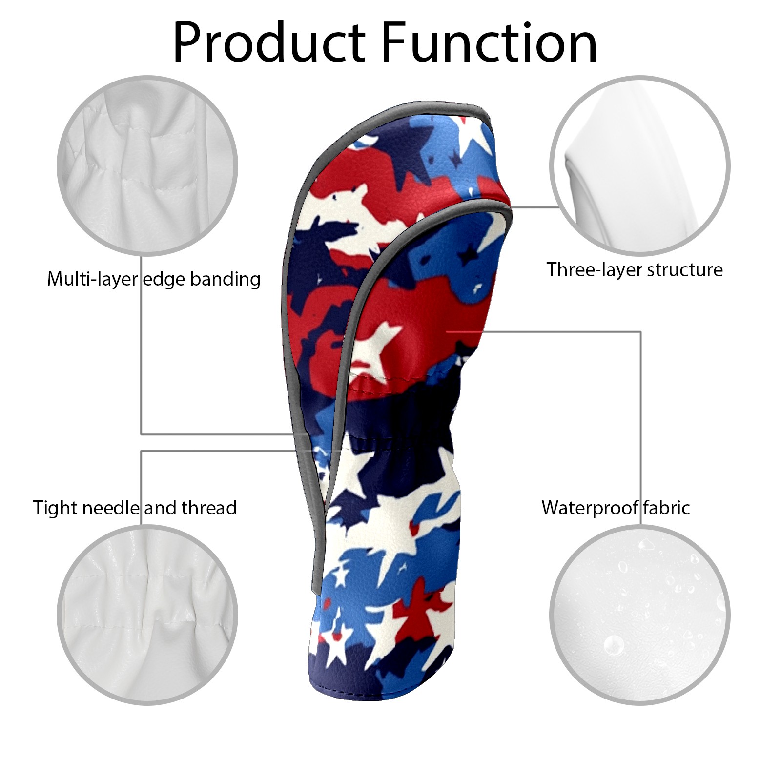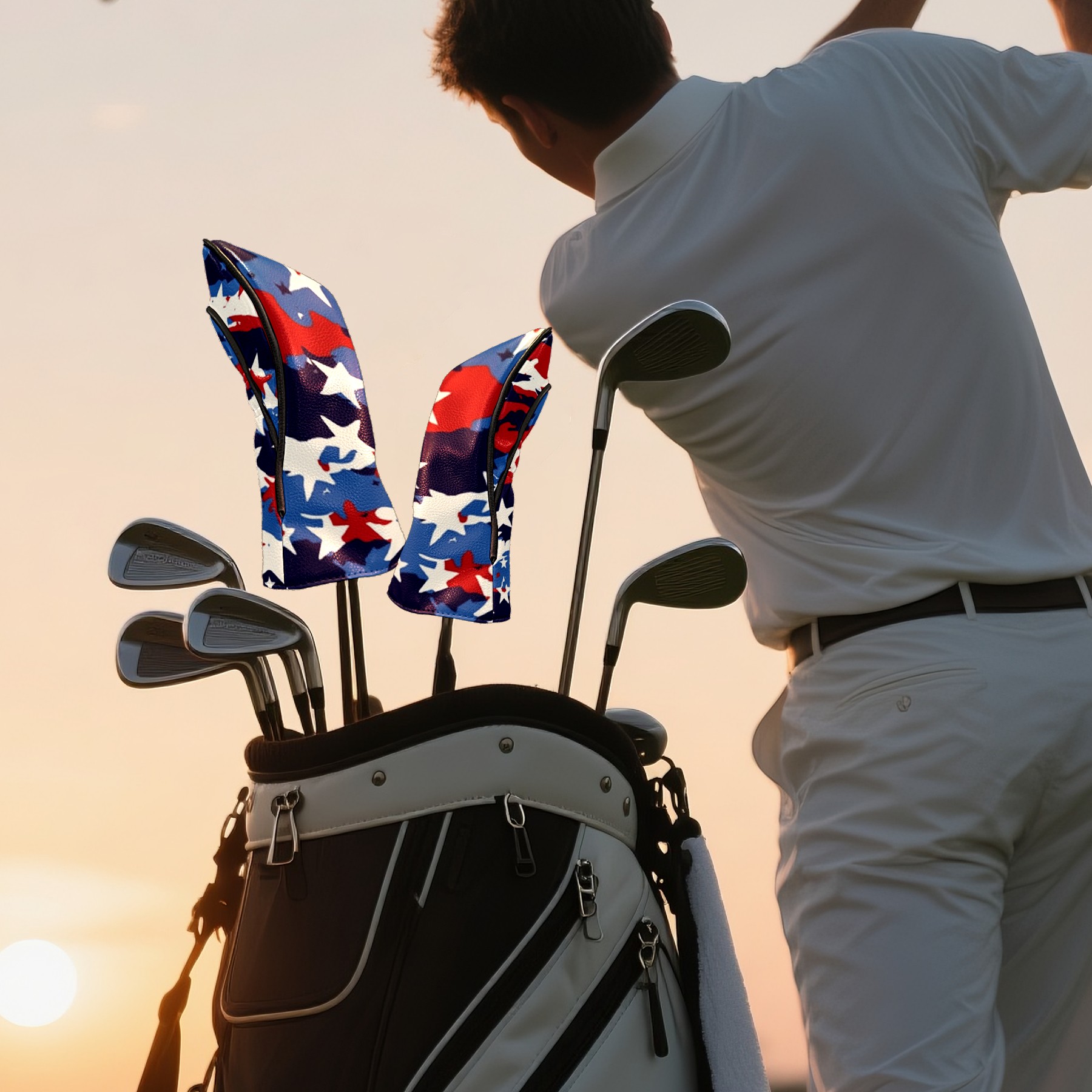 Black Golf Club Head Cover Golf Accessories Head Covers Set For Driver & Fairway Woods Red White And Blue Camouflage