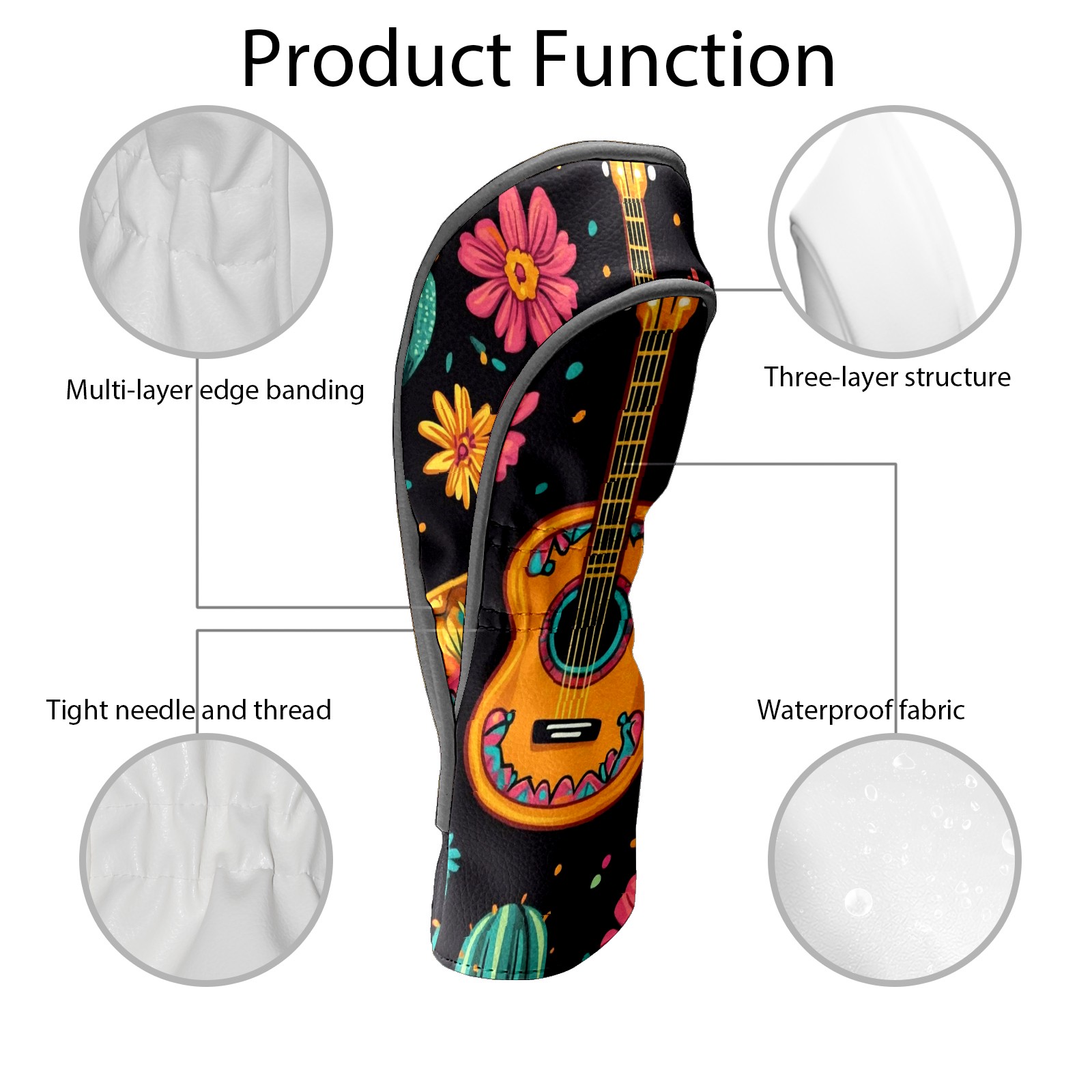 Black Golf Club Head Cover Golf Accessories Head Covers Set For Driver & Fairway Woods Mexican Seamless Pattern