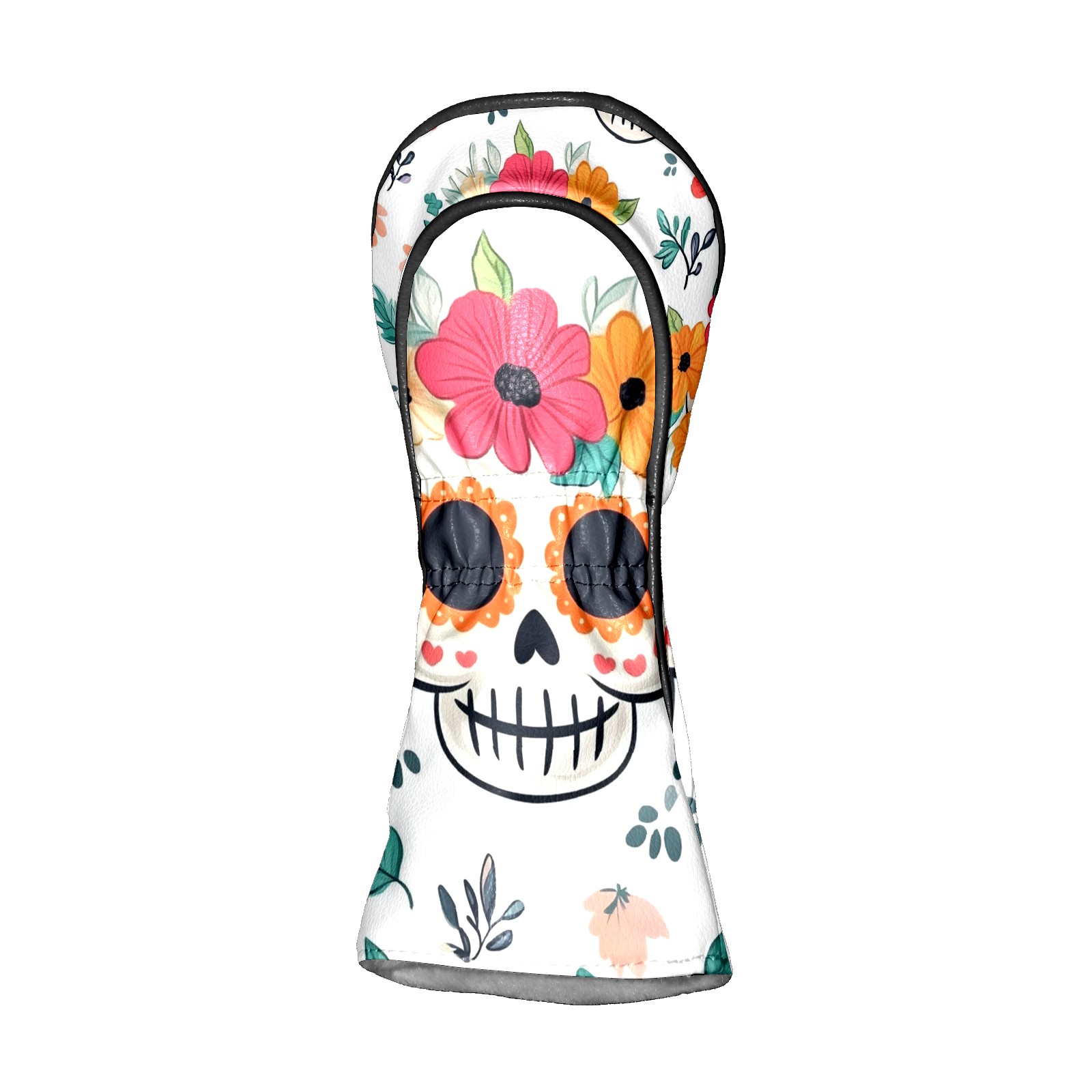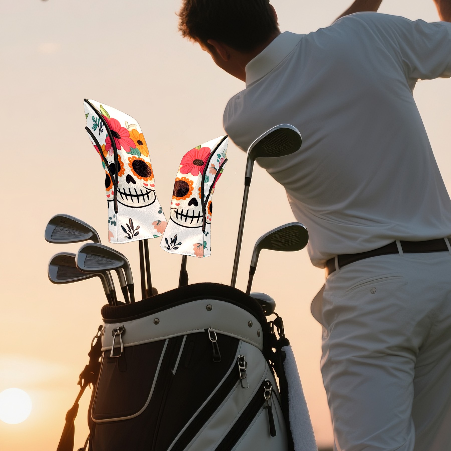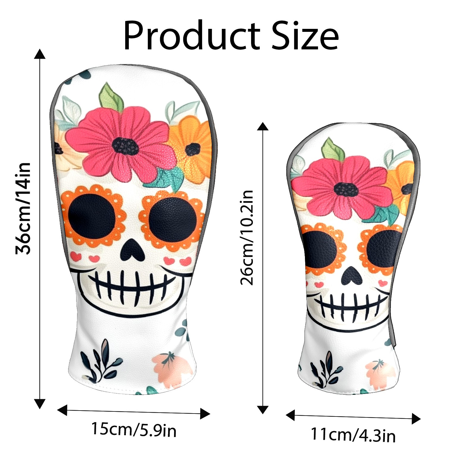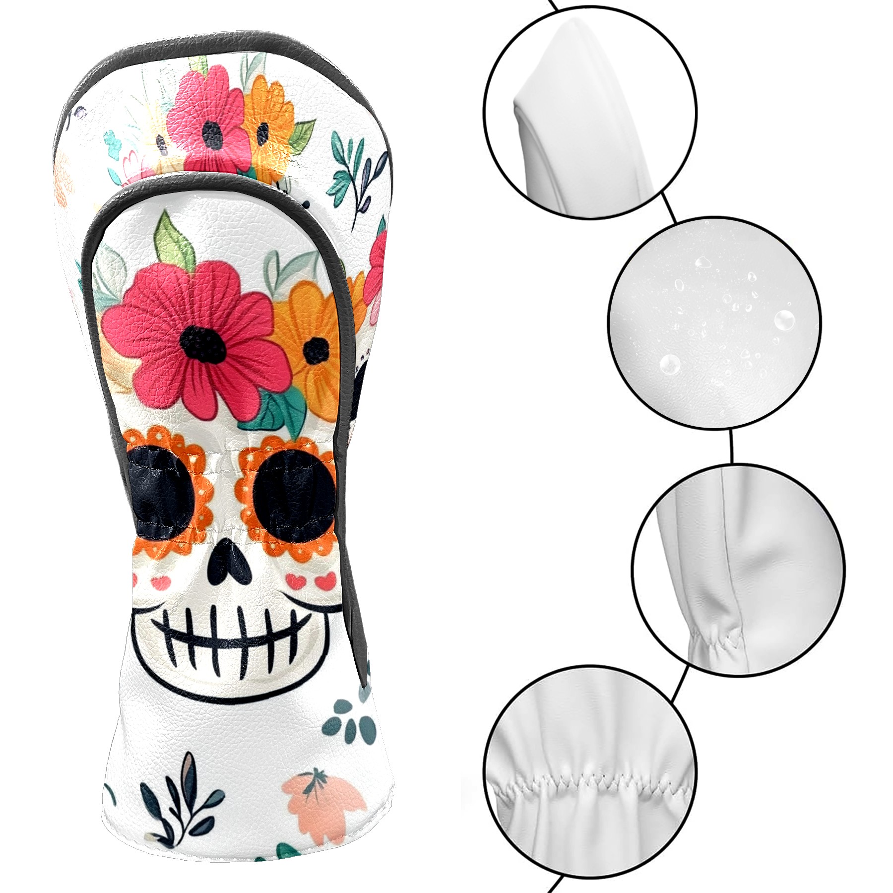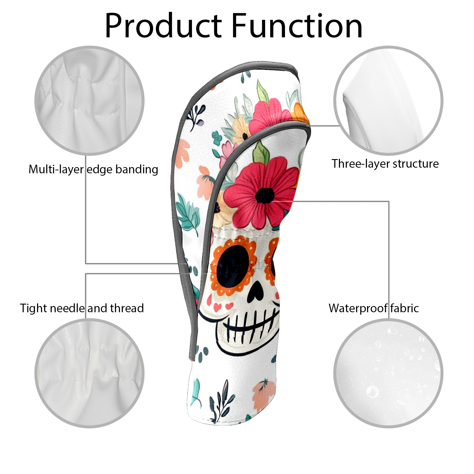 Black Golf Club Head Cover Golf Accessories Head Covers Set For Driver & Fairway Woods Cute Skull And Floral