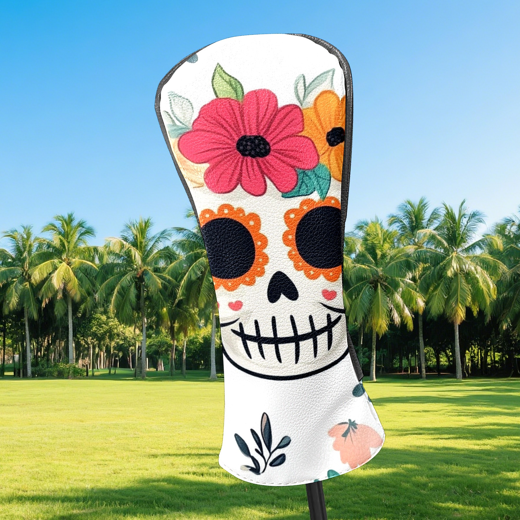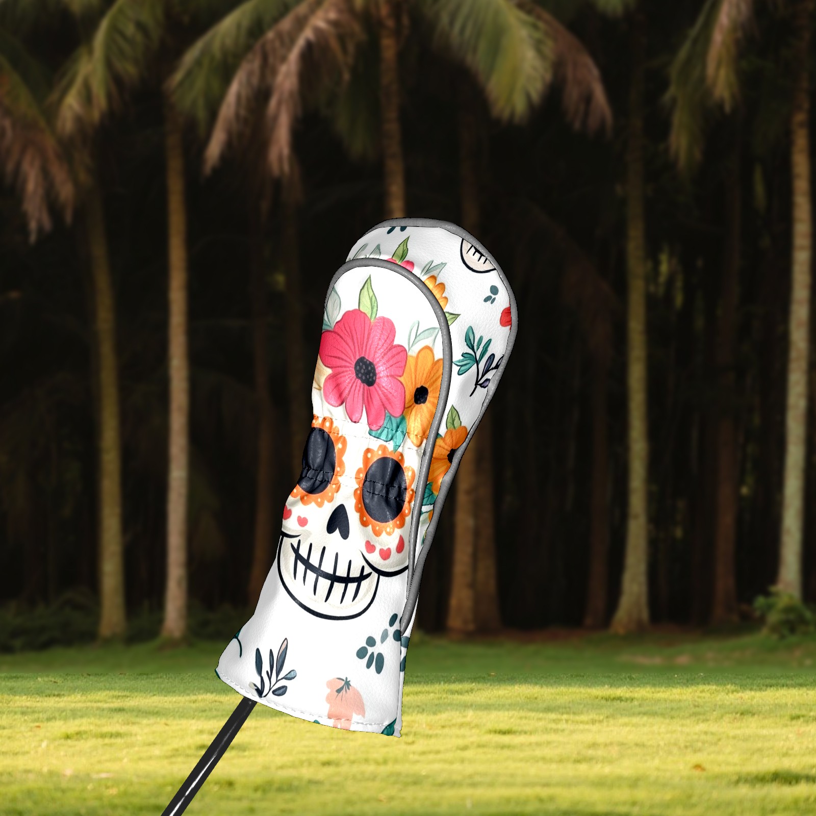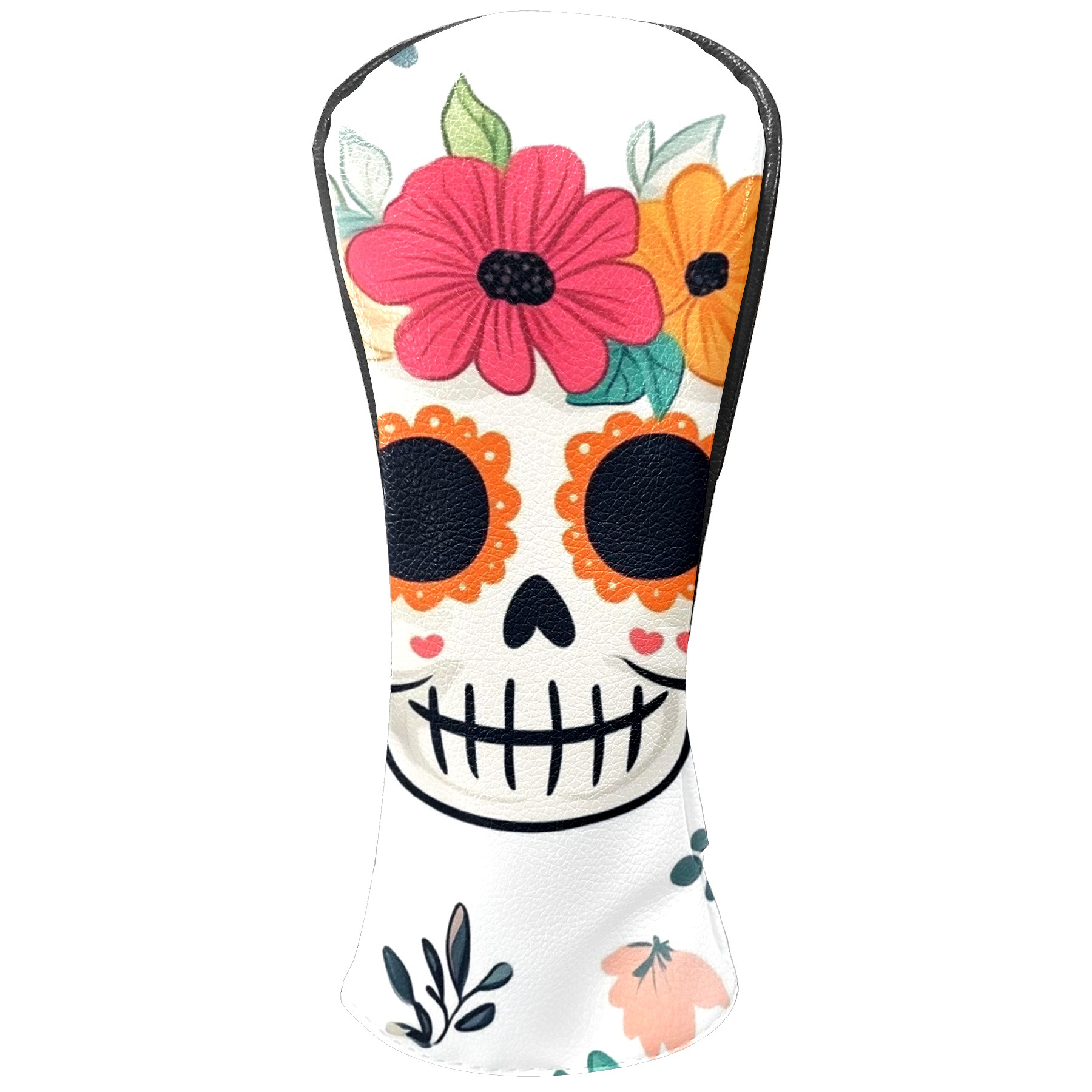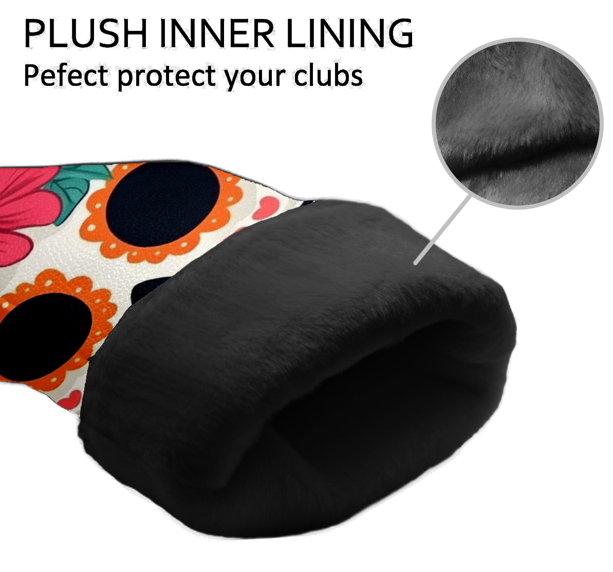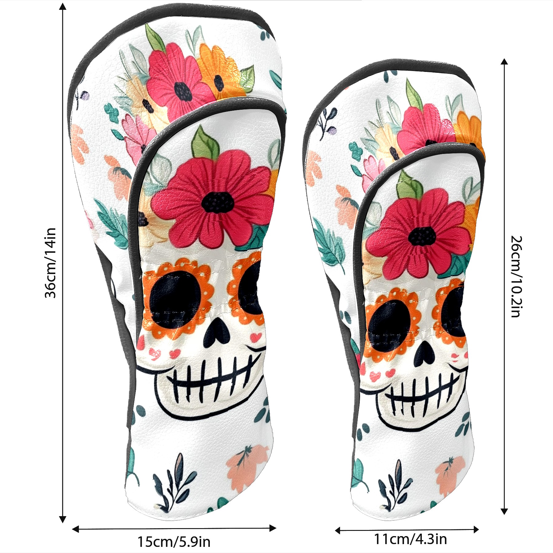Black Golf Club Head Cover Golf Accessories Head Covers Set For Driver & Fairway Woods Cute Skull And Floral