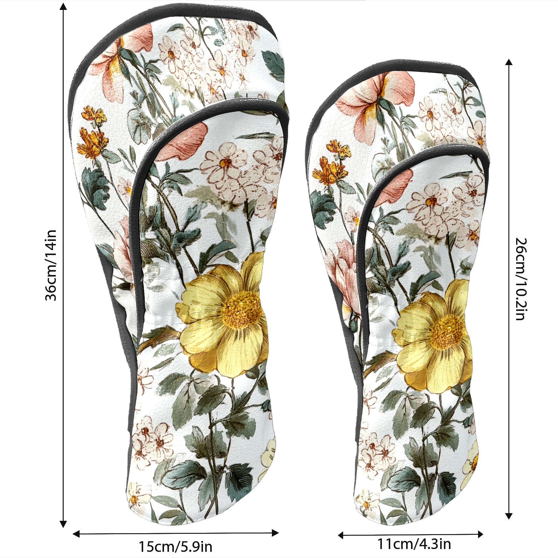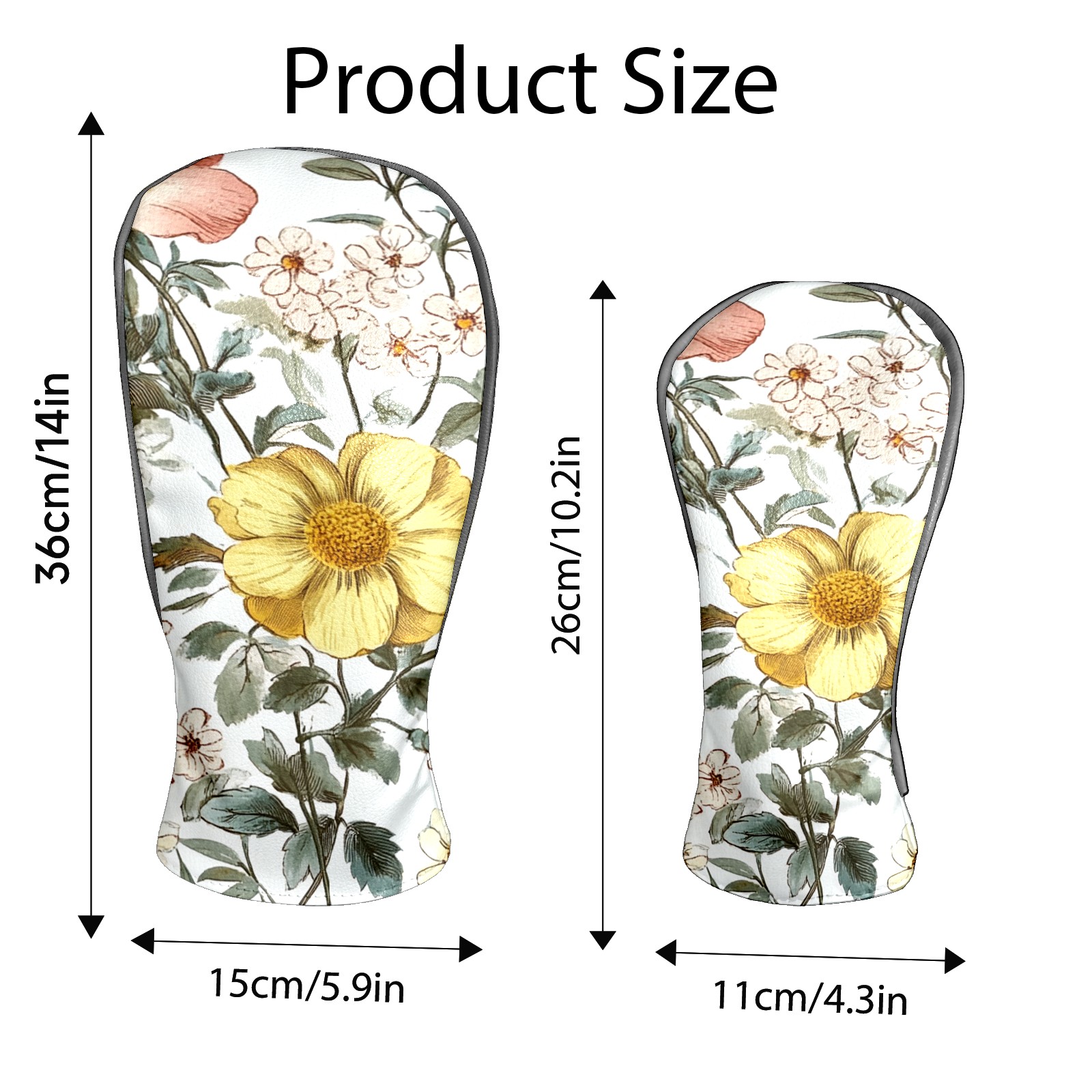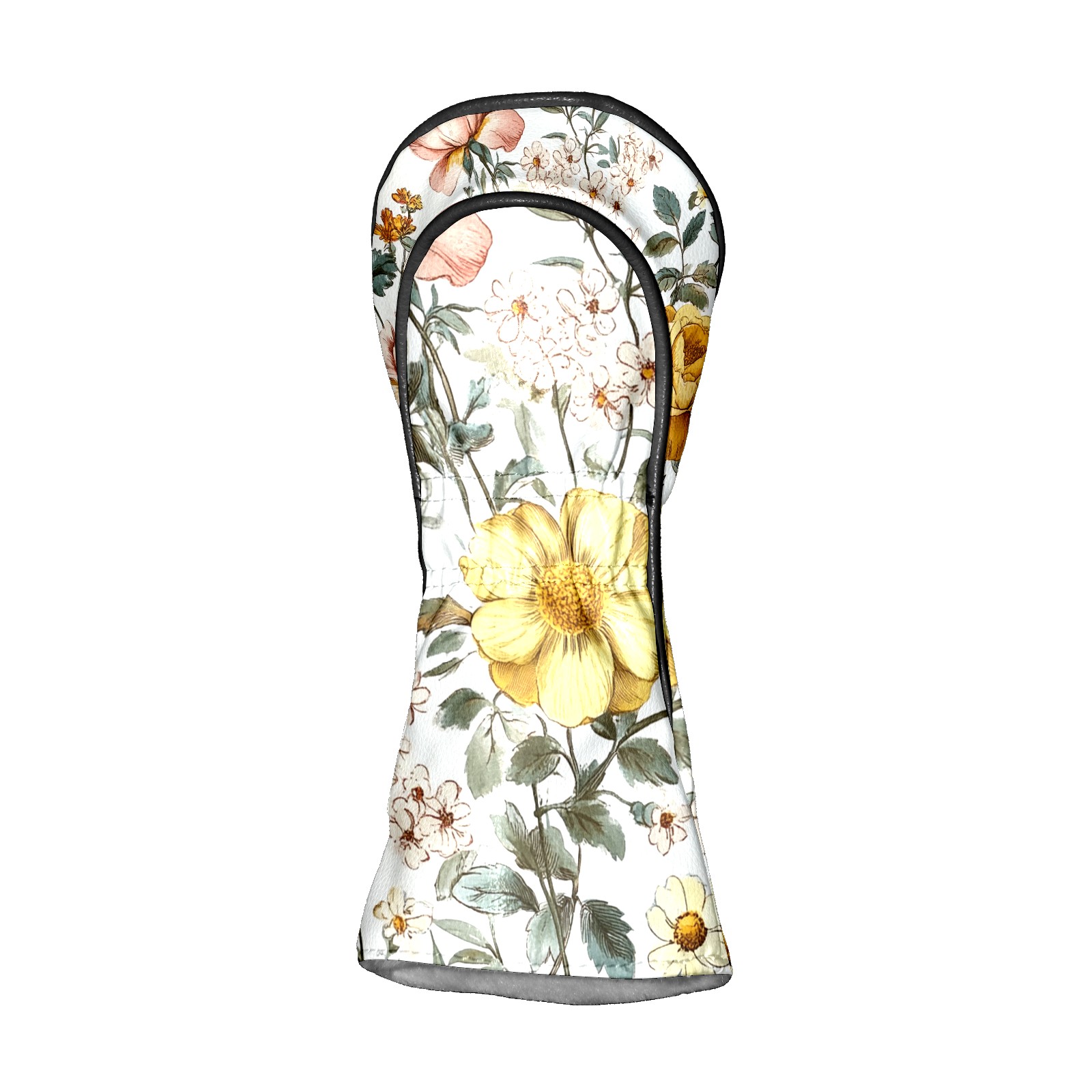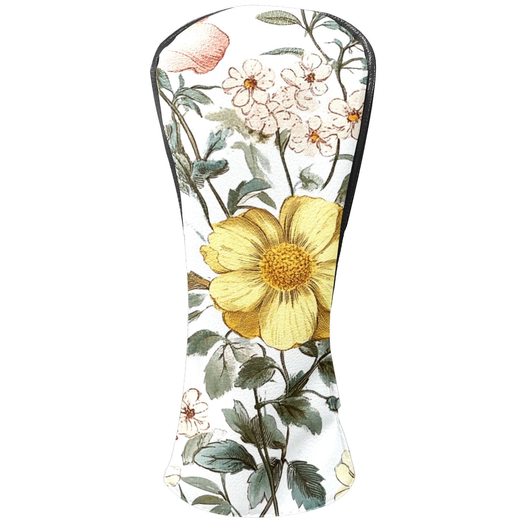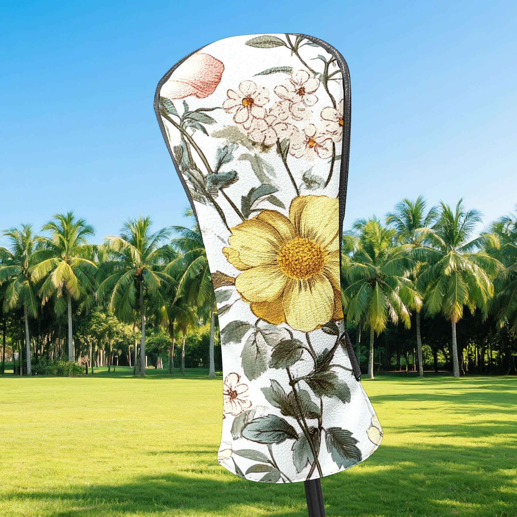 Black Golf Club Head Cover Golf Accessories Head Covers Set For Driver & Fairway Woods Yellow Pink Flowers