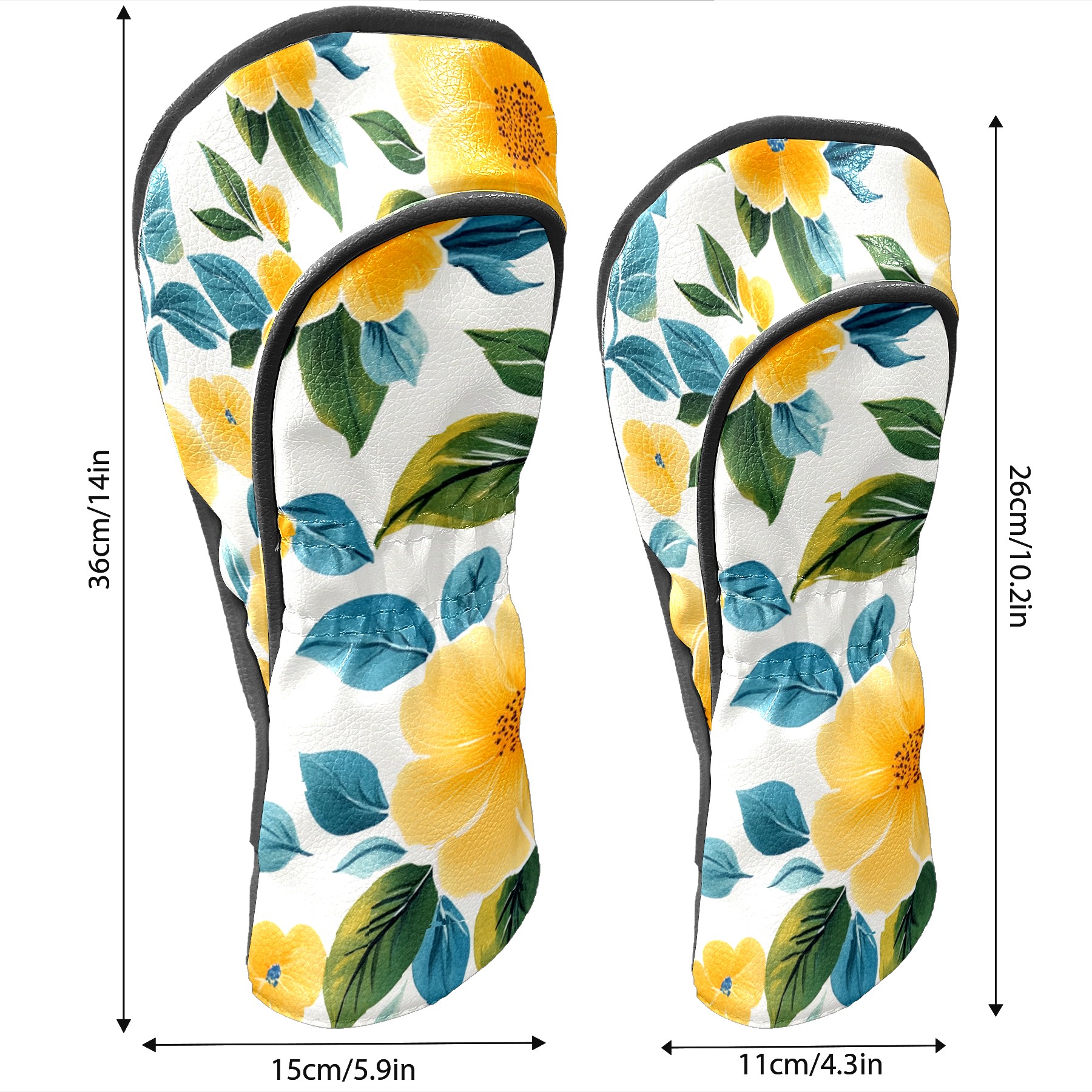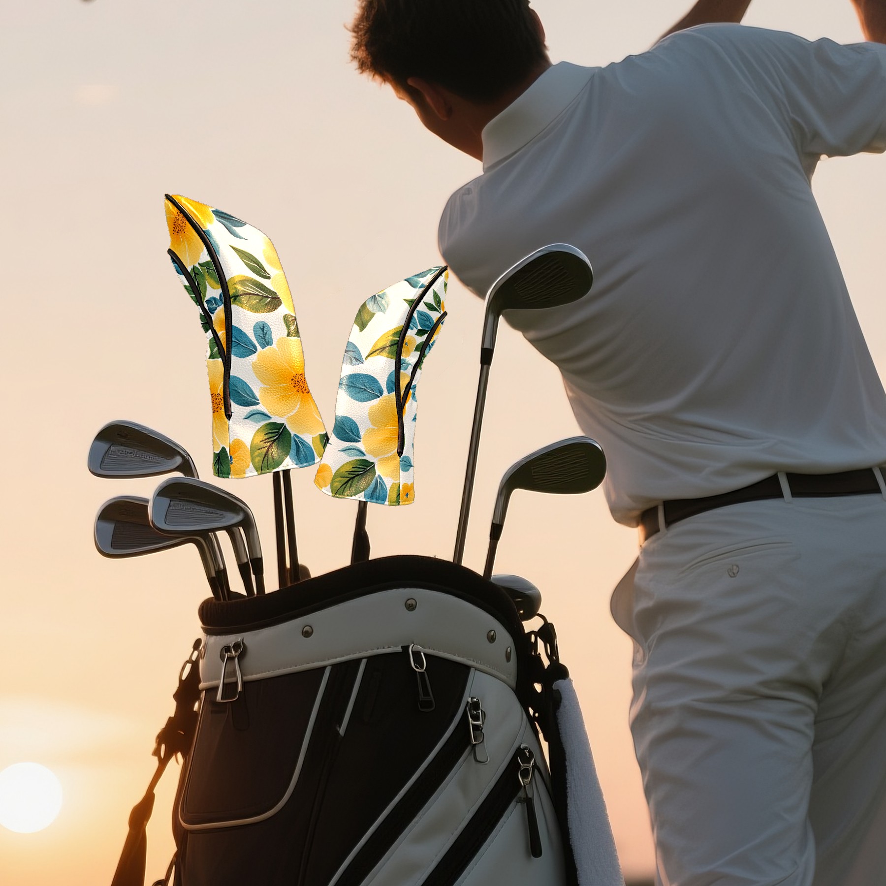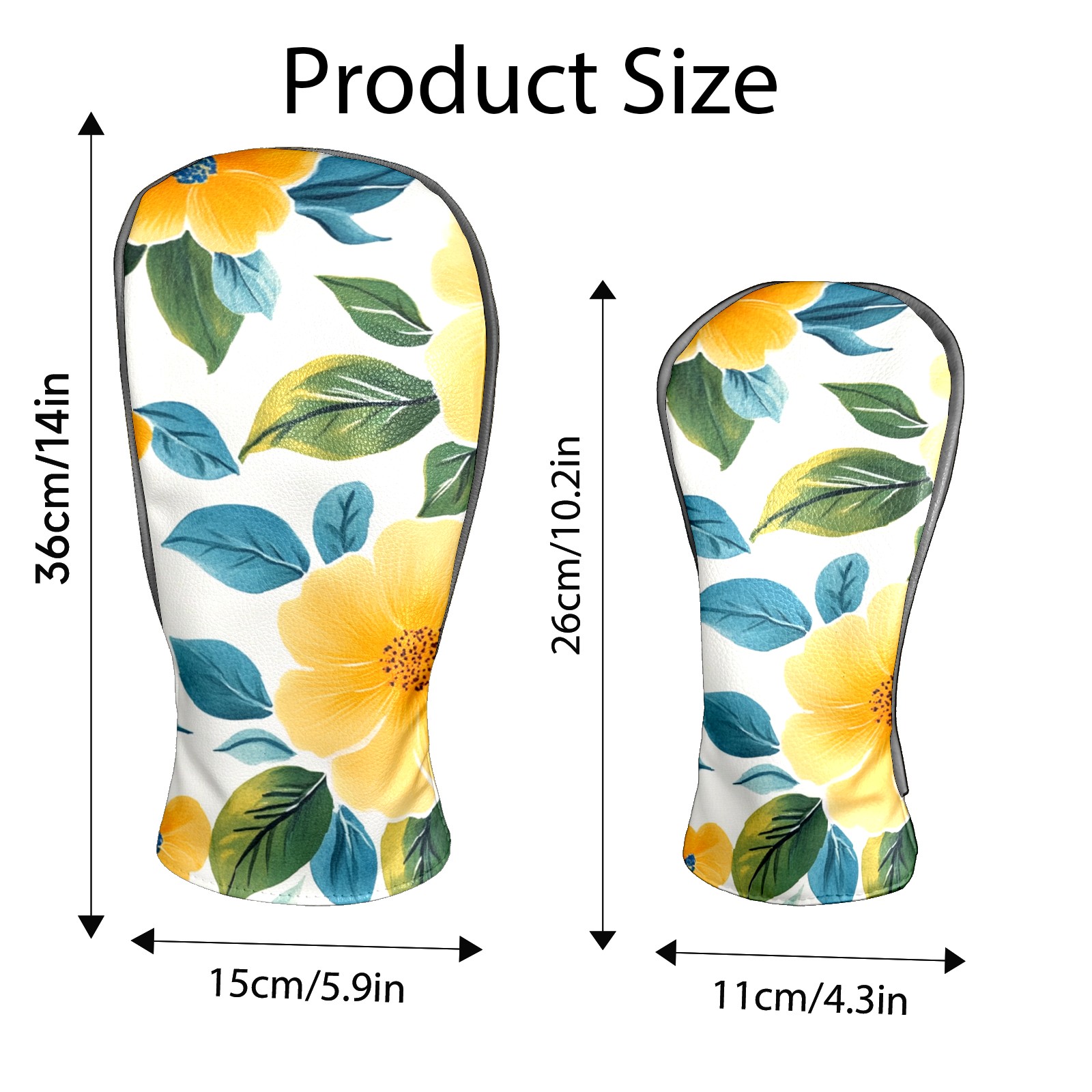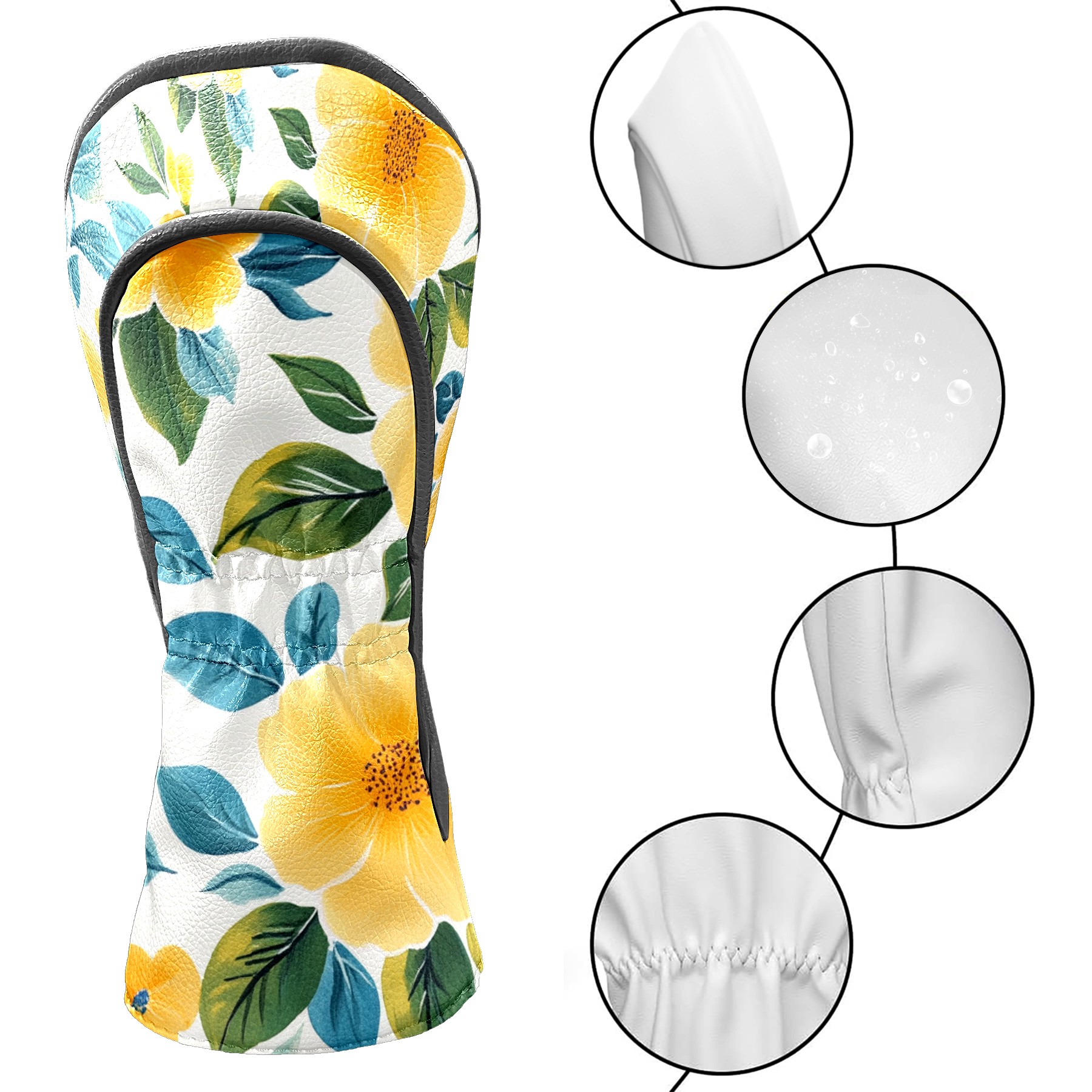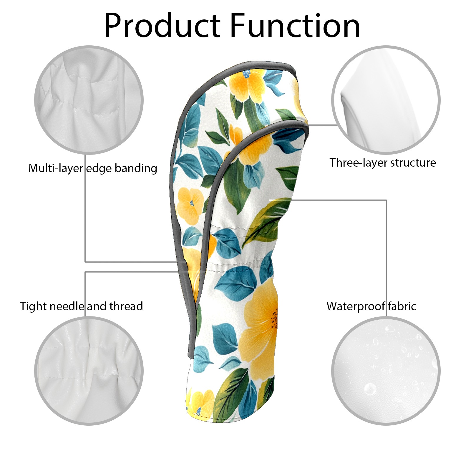 Black Golf Club Head Cover Golf Accessories Head Covers Set For Driver & Fairway Woods Yellow Green Floral