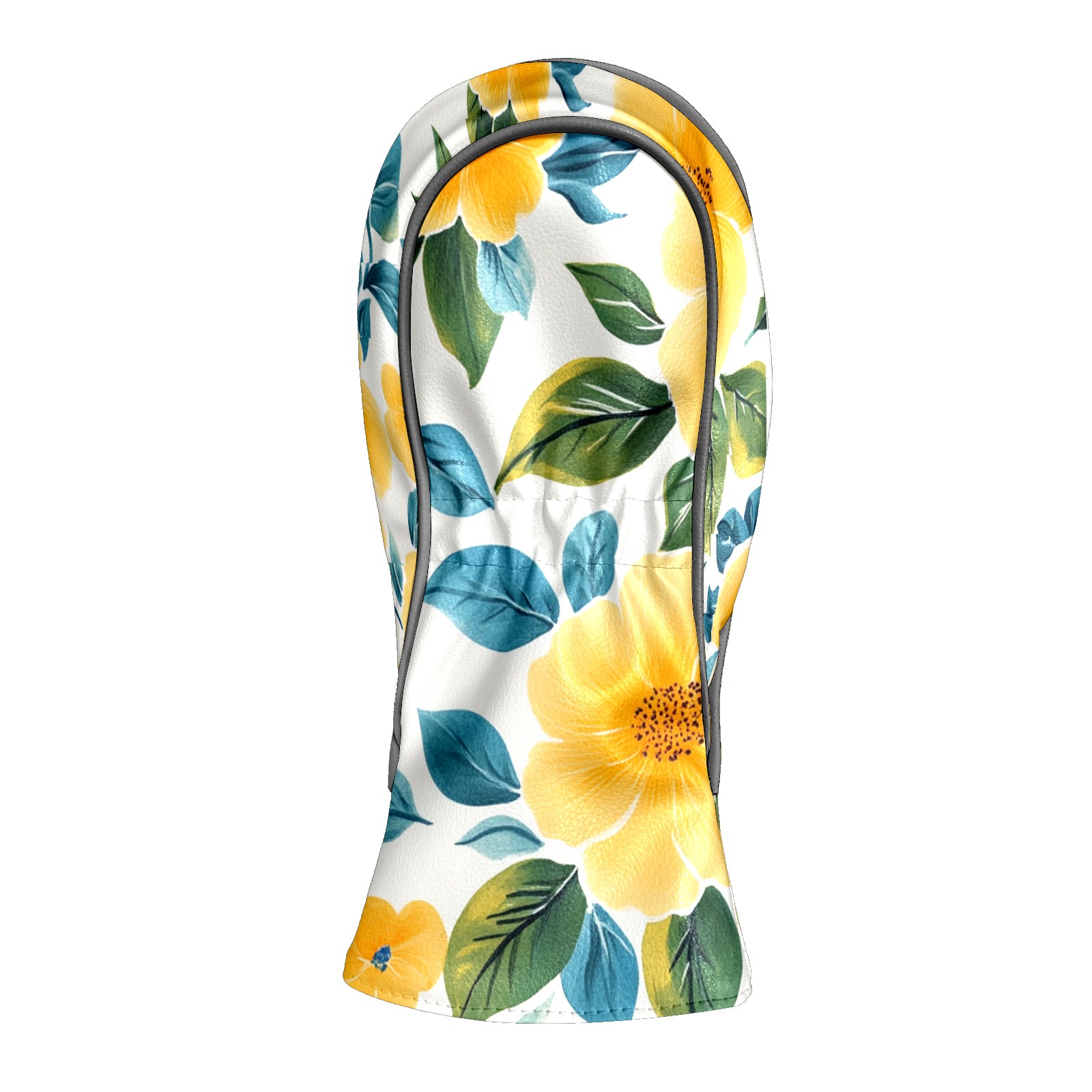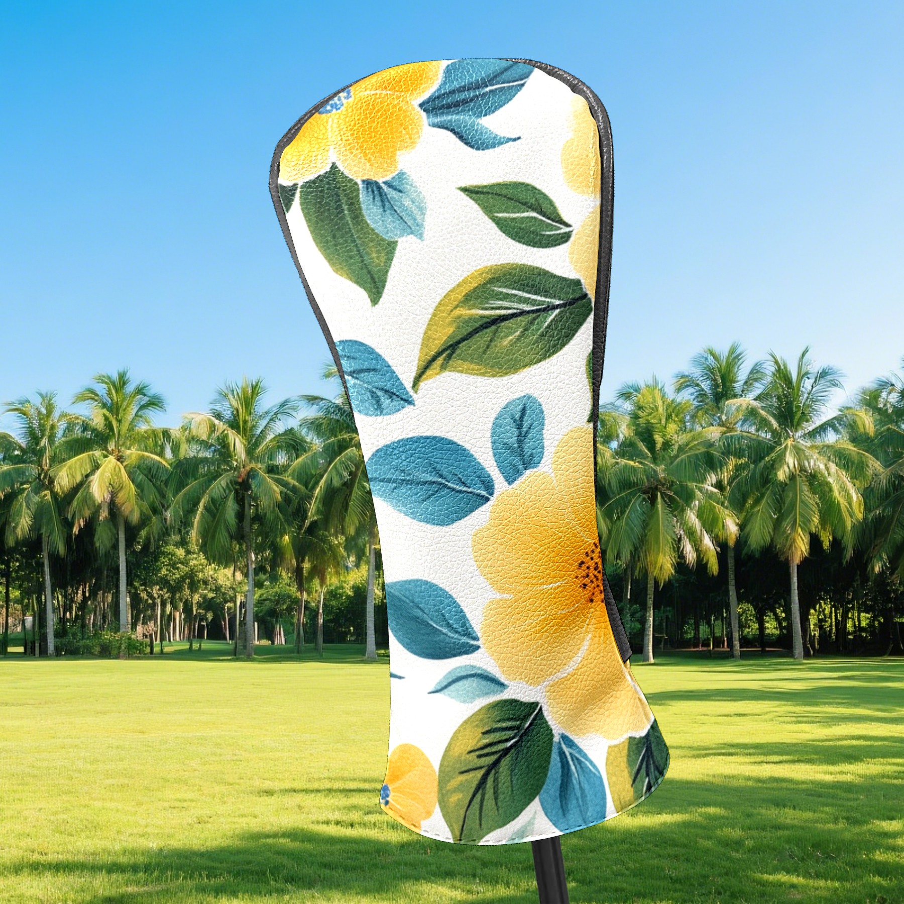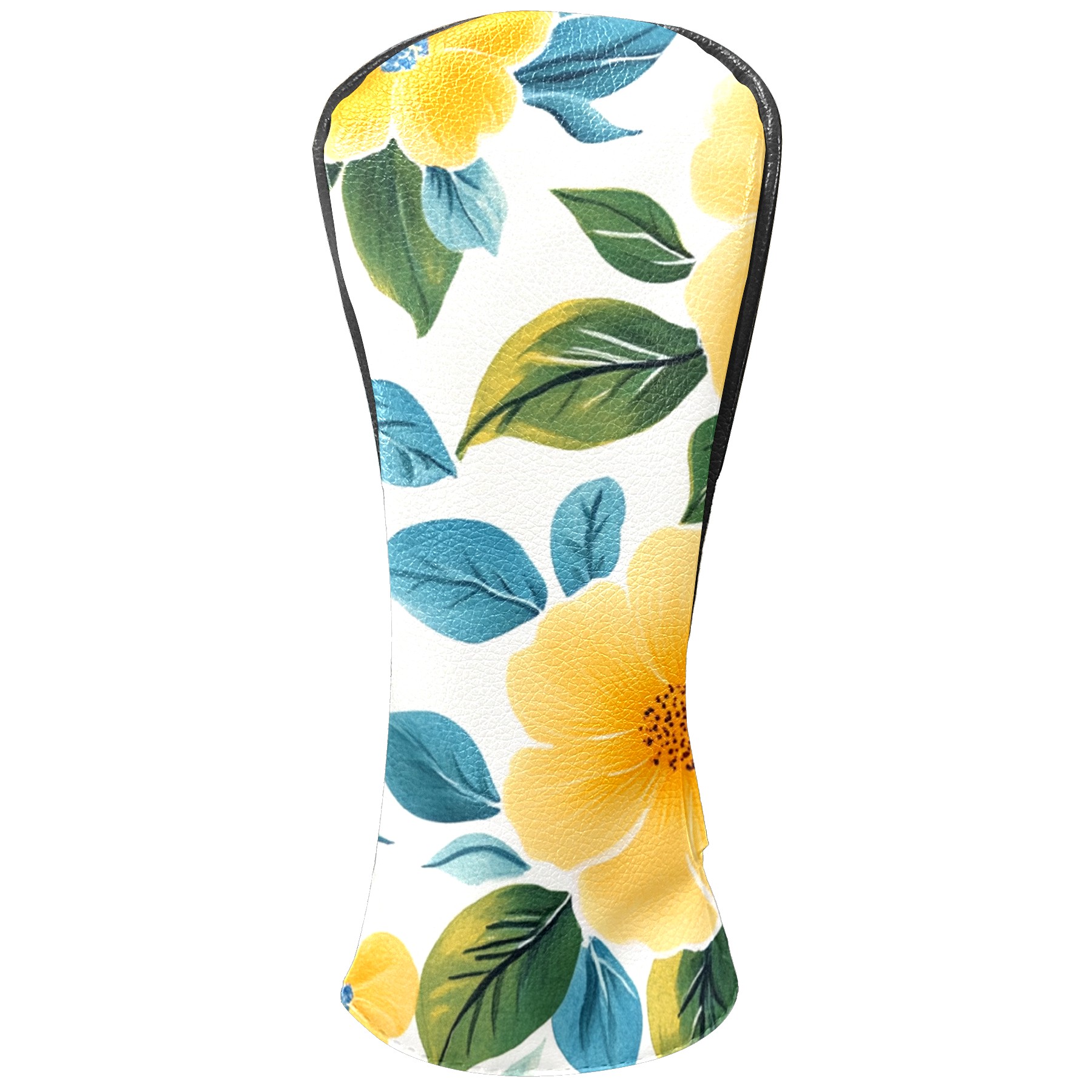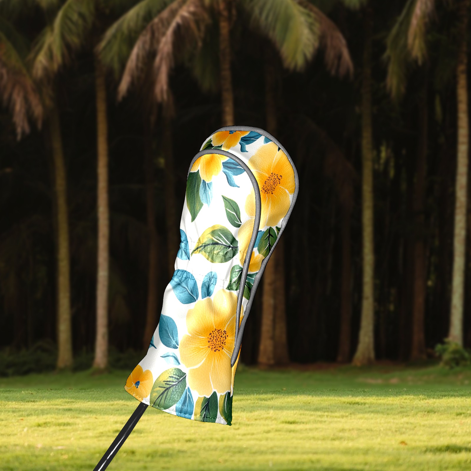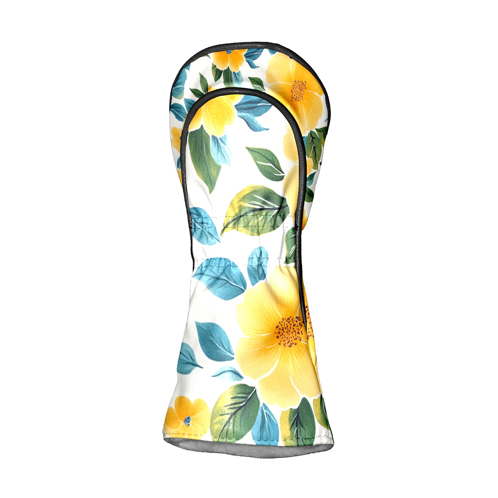 Black Golf Club Head Cover Golf Accessories Head Covers Set For Driver & Fairway Woods Yellow Green Floral
