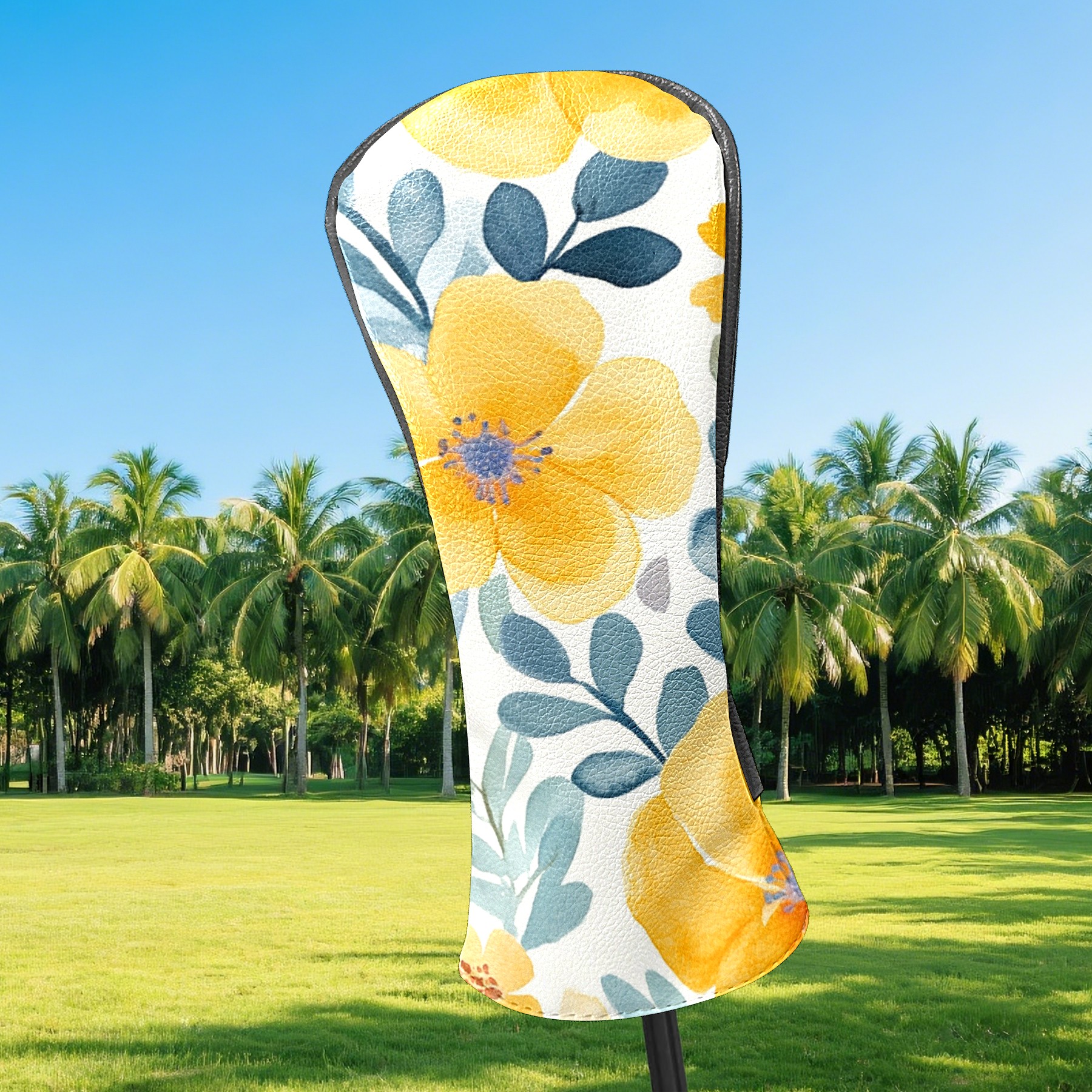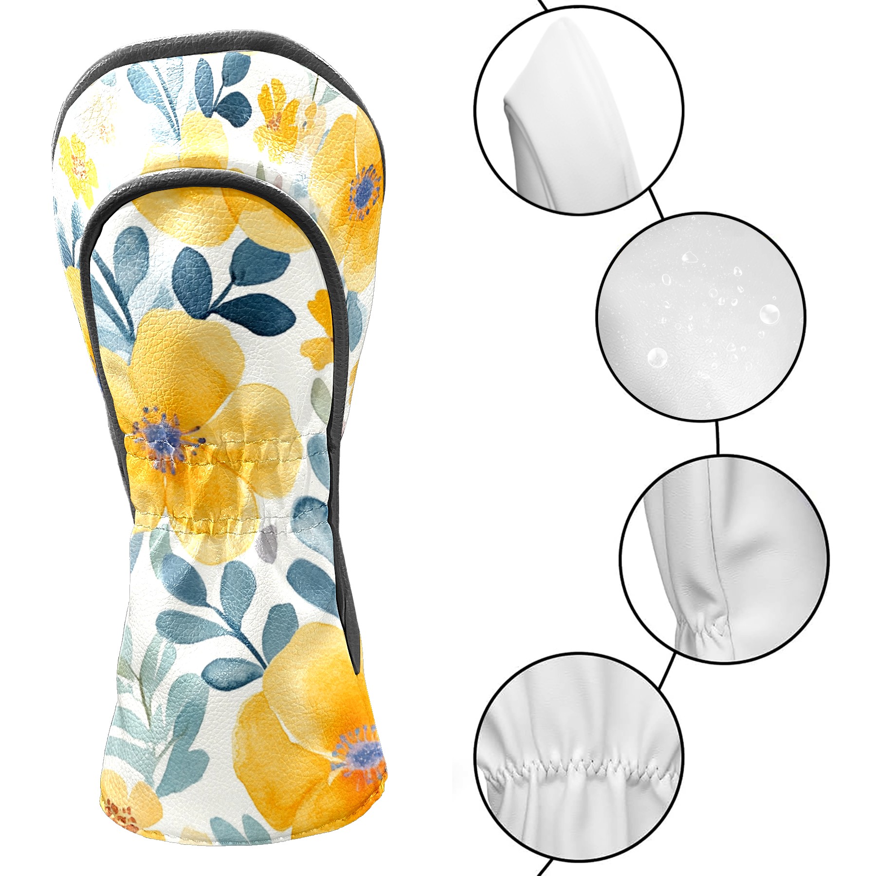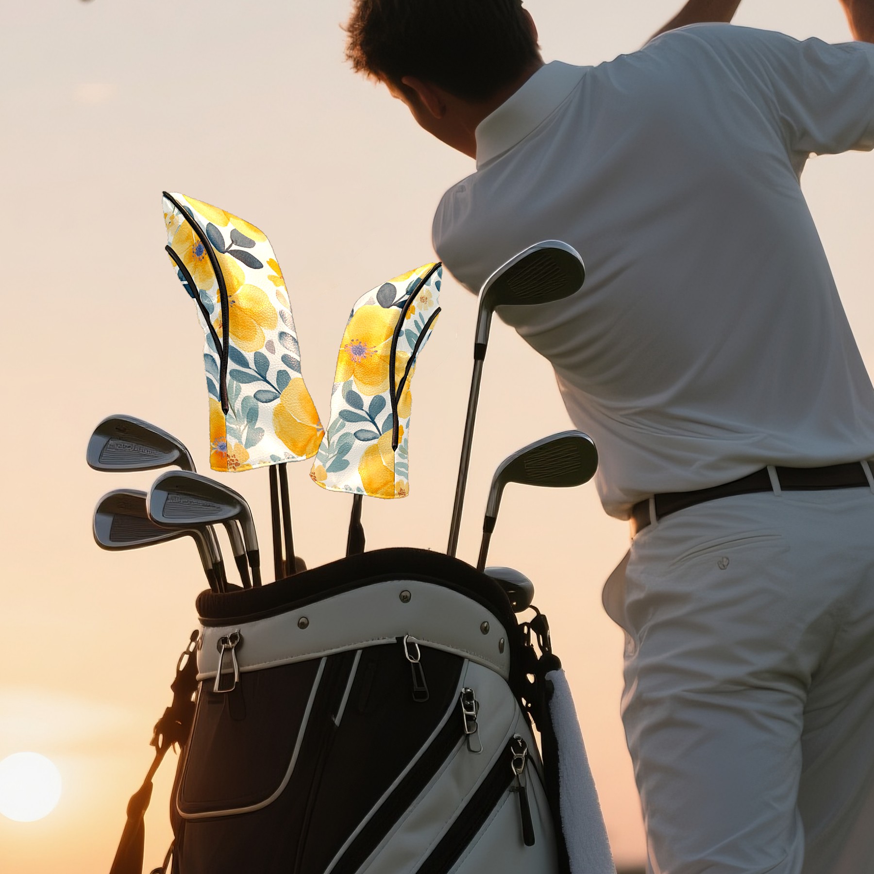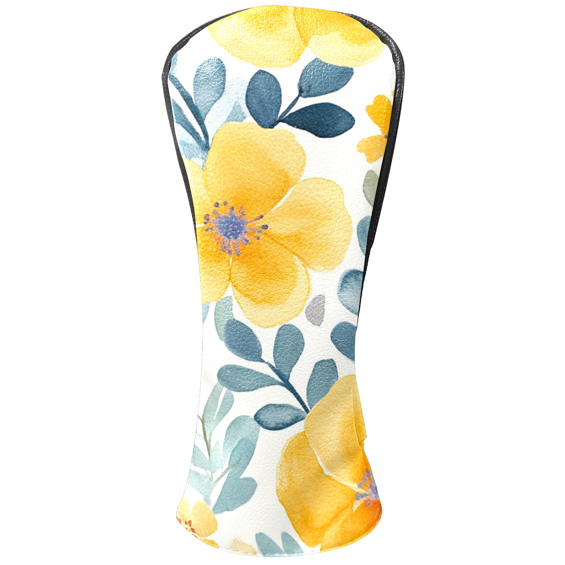 Black Golf Club Head Cover Golf Accessories Head Covers Set For Driver & Fairway Woods Watercolor Yellow Floral