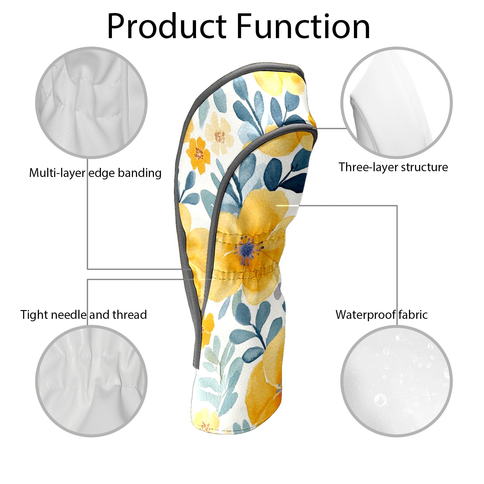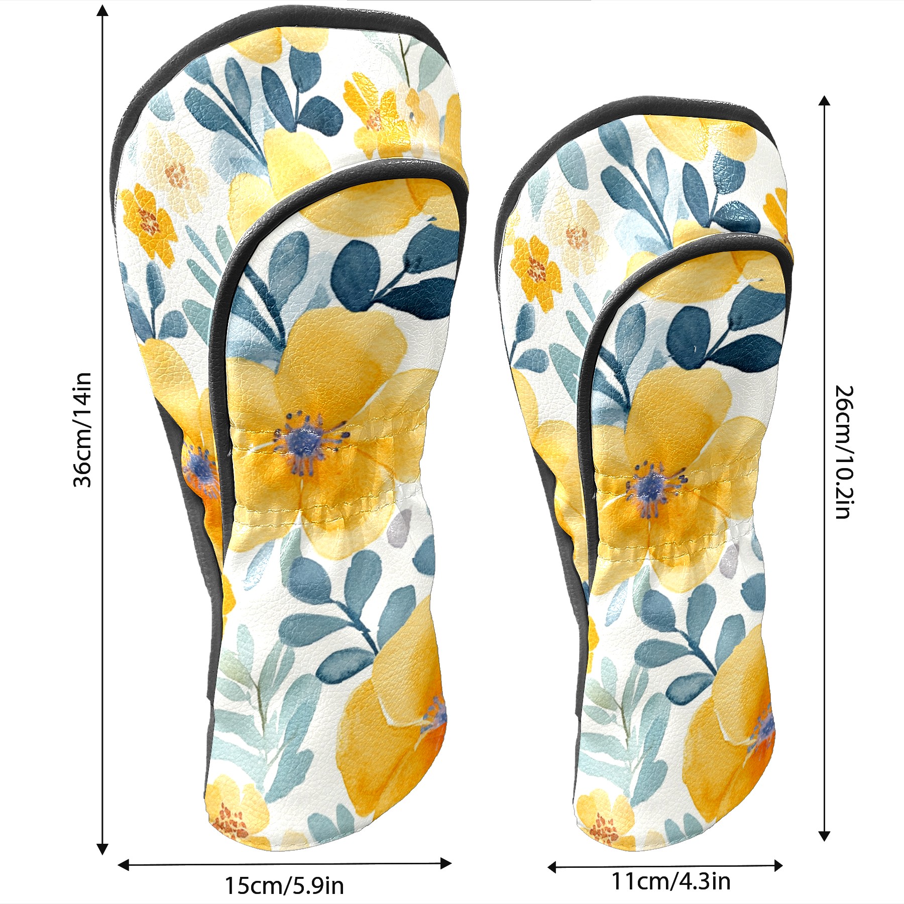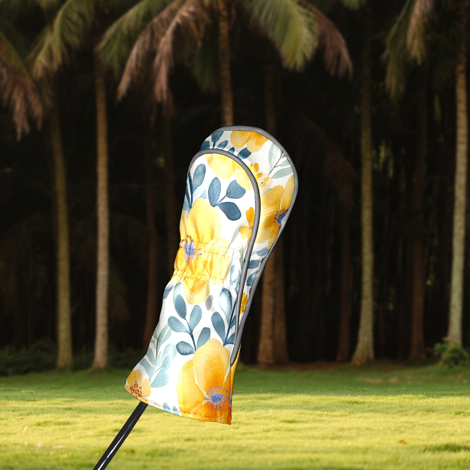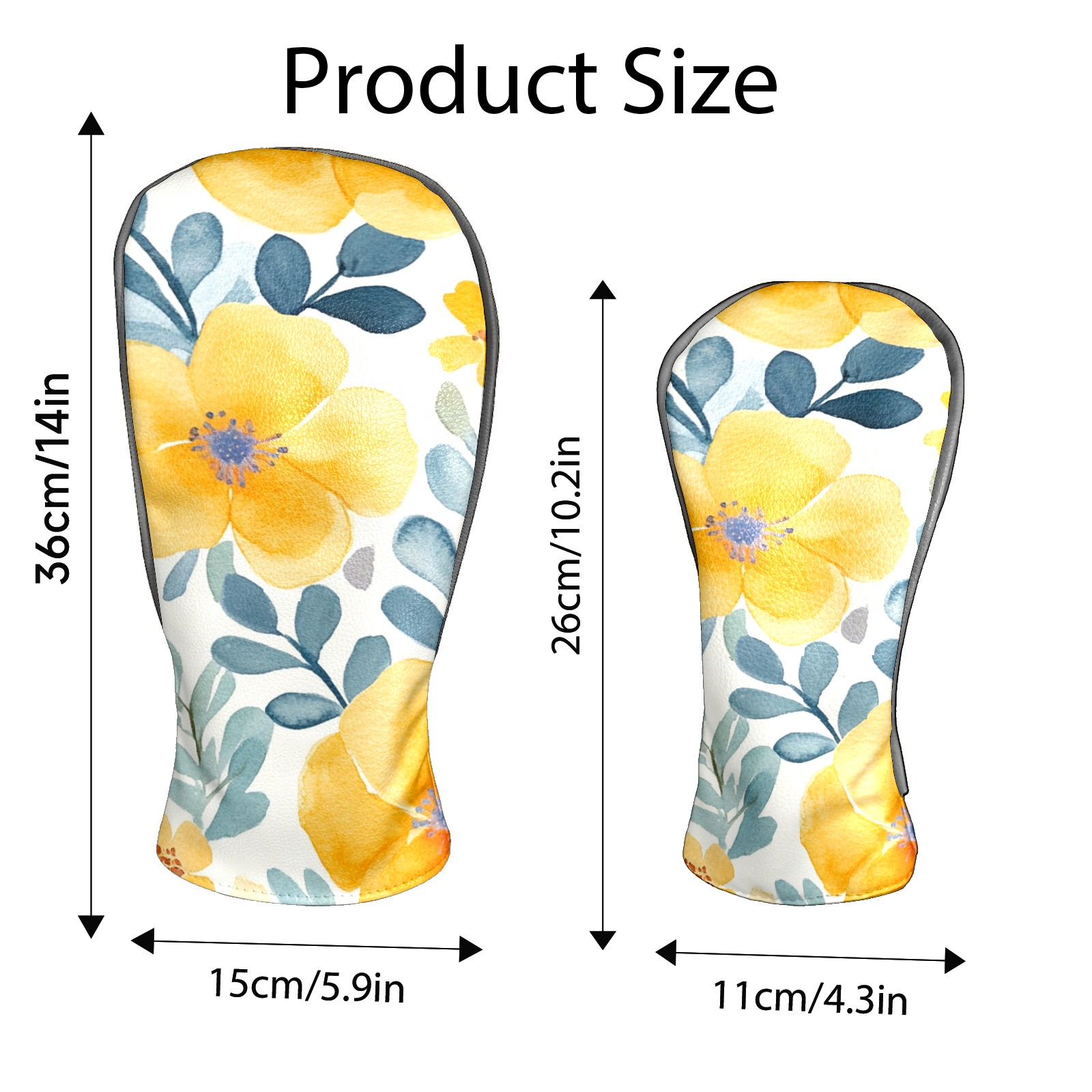Black Golf Club Head Cover Golf Accessories Head Covers Set For Driver & Fairway Woods Watercolor Yellow Floral