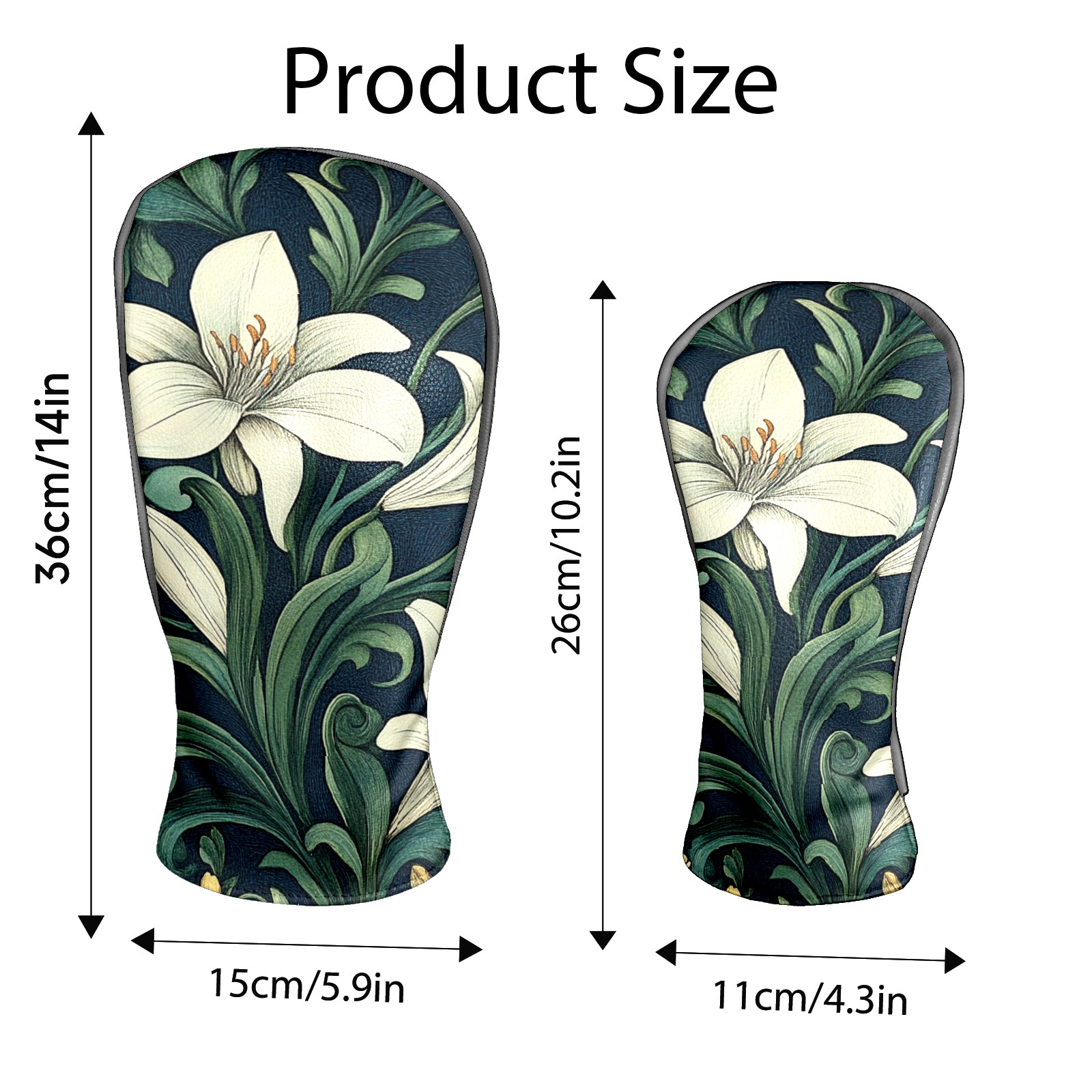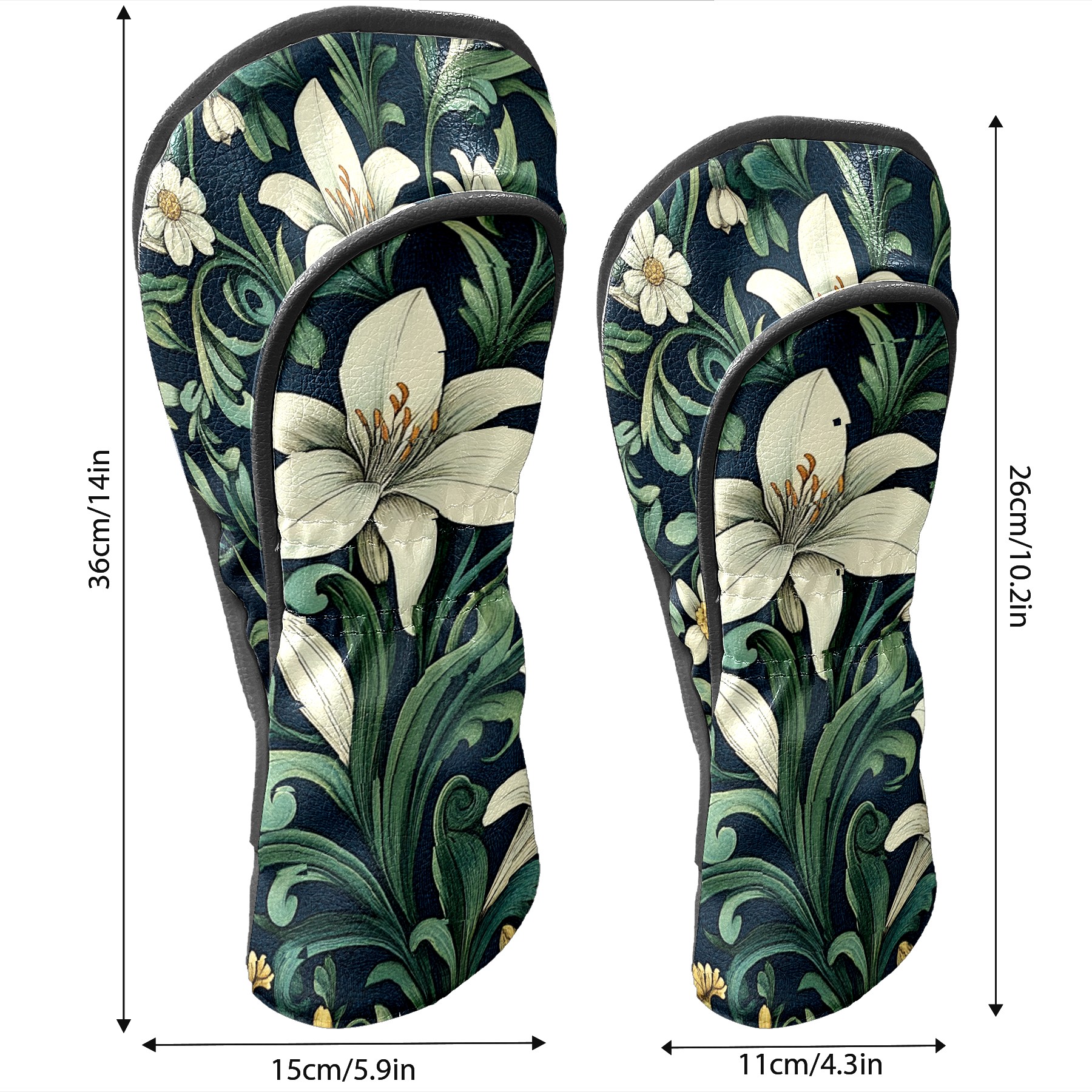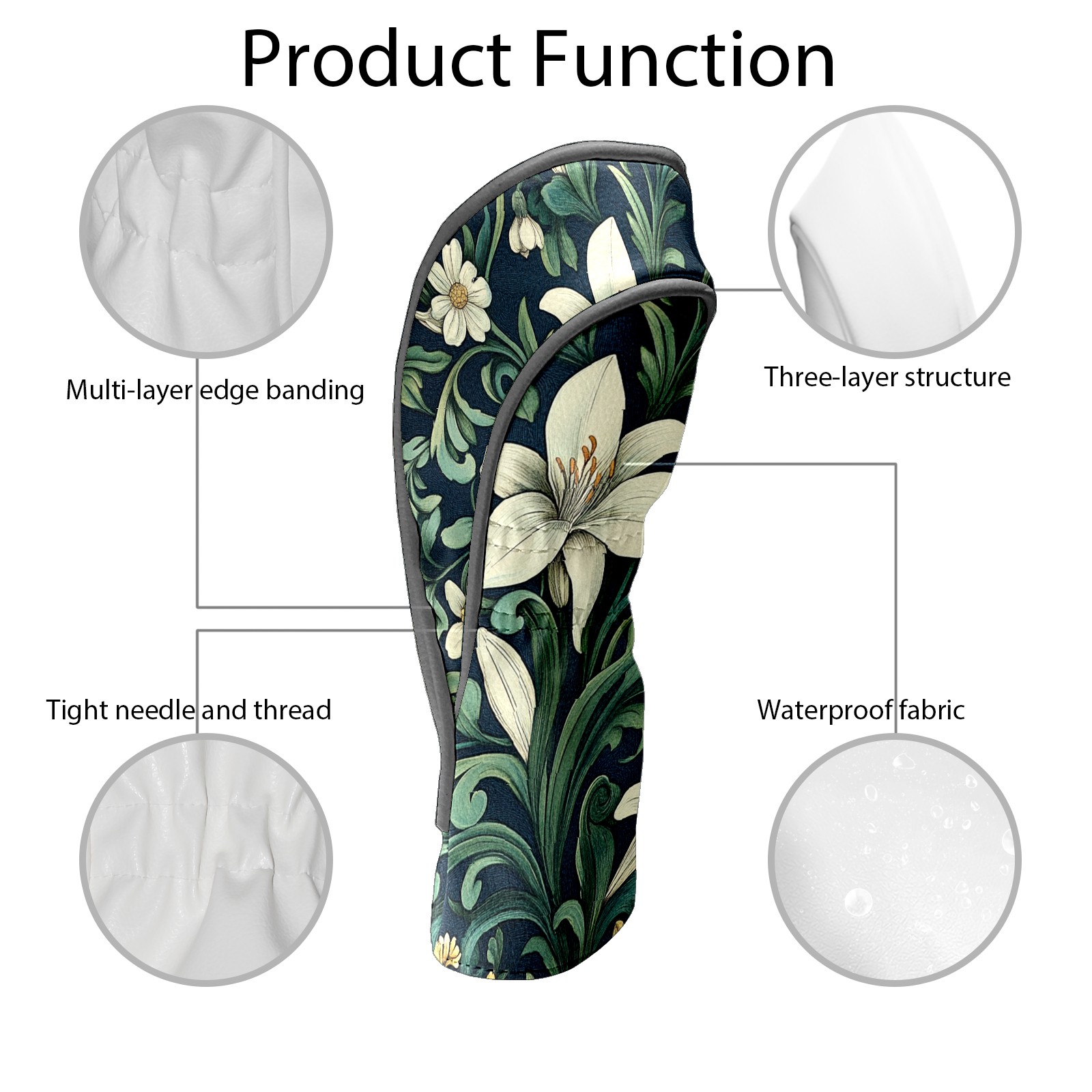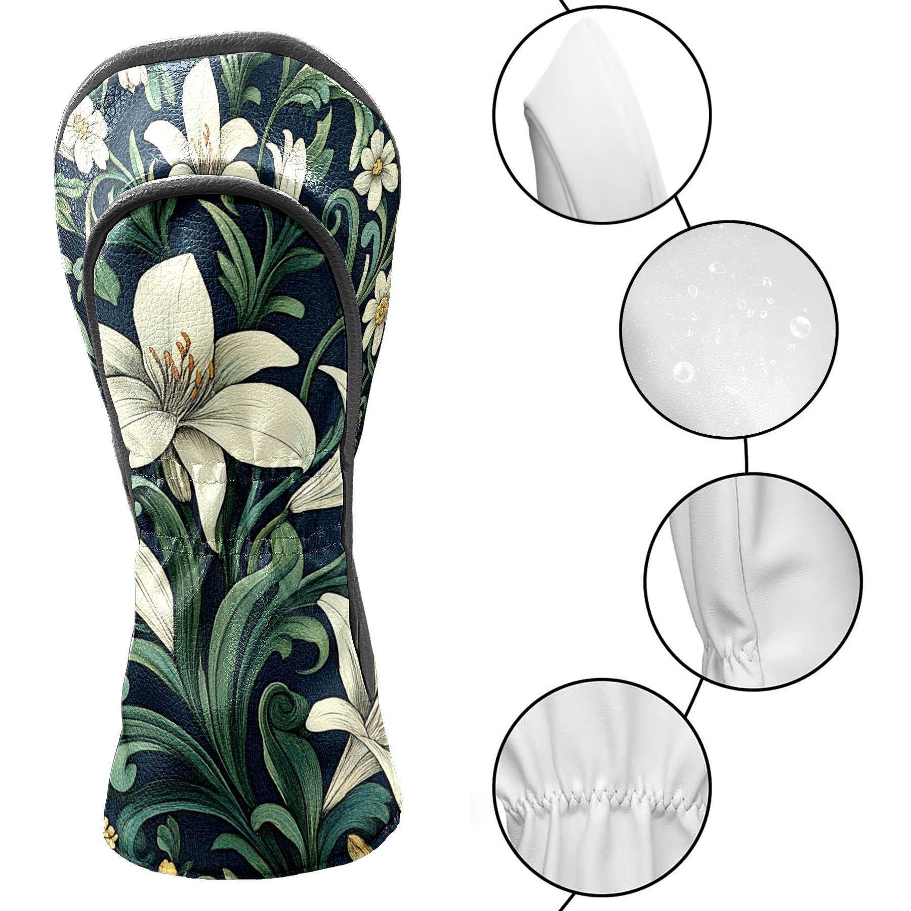 Black Golf Club Head Cover Golf Accessories Head Covers Set For Driver & Fairway Woods White Lilies