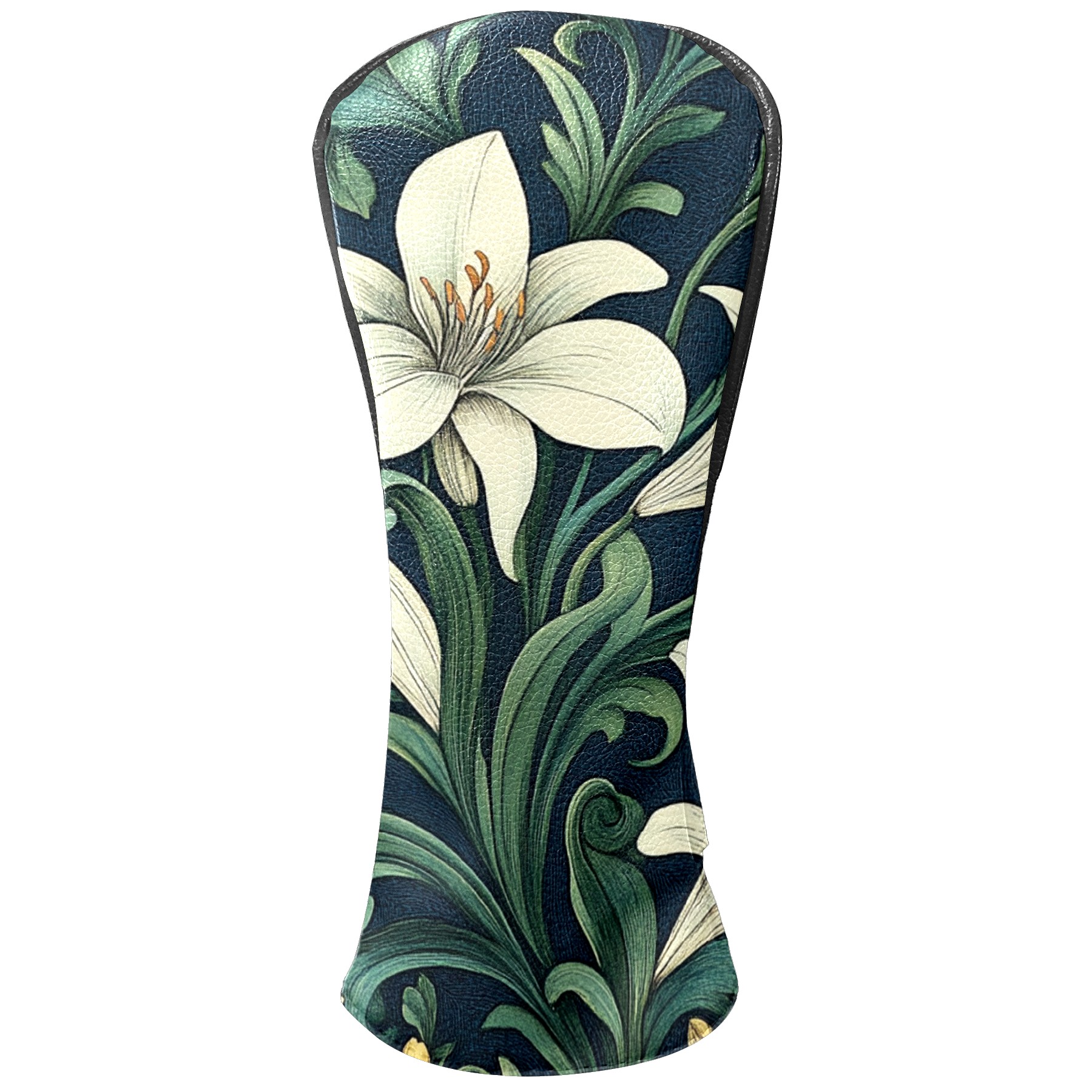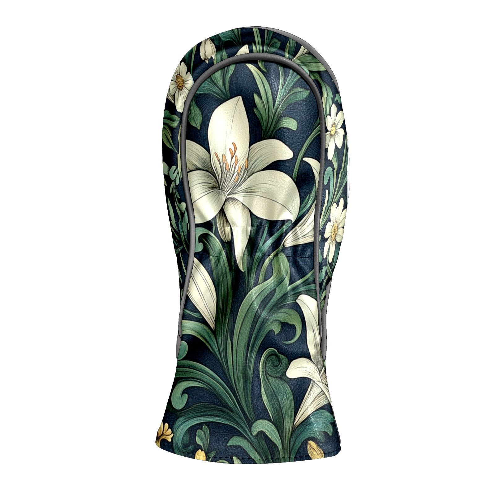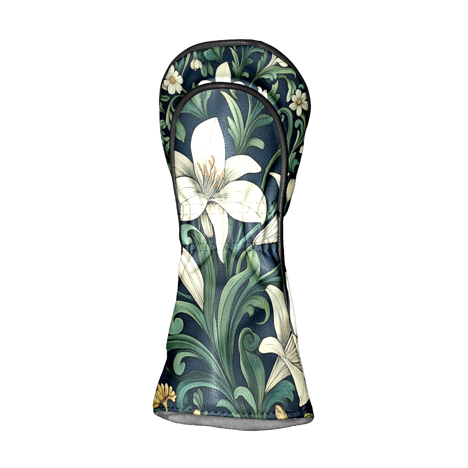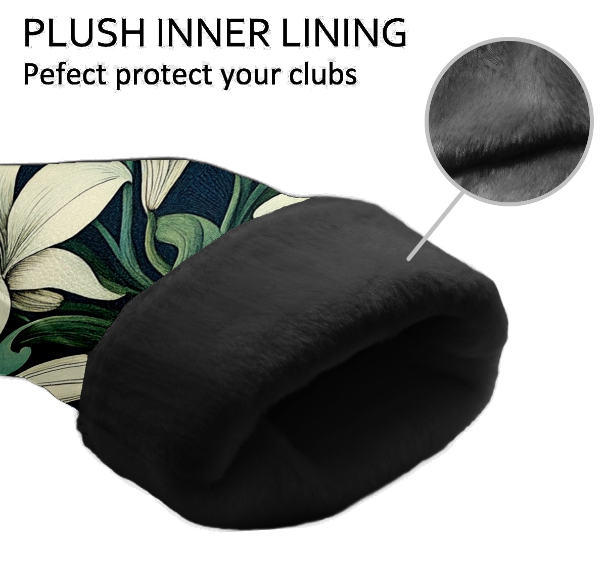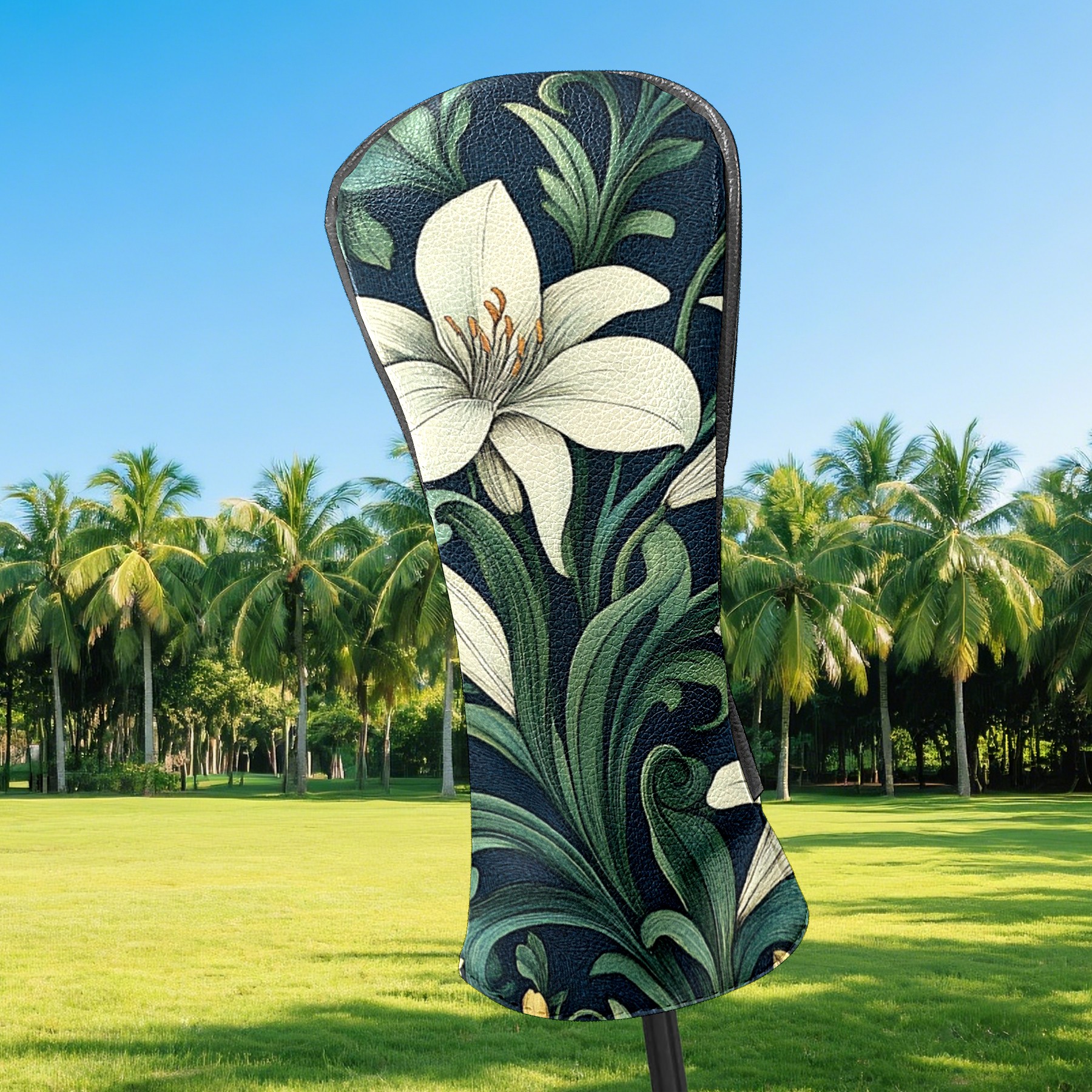 Black Golf Club Head Cover Golf Accessories Head Covers Set For Driver & Fairway Woods White Lilies