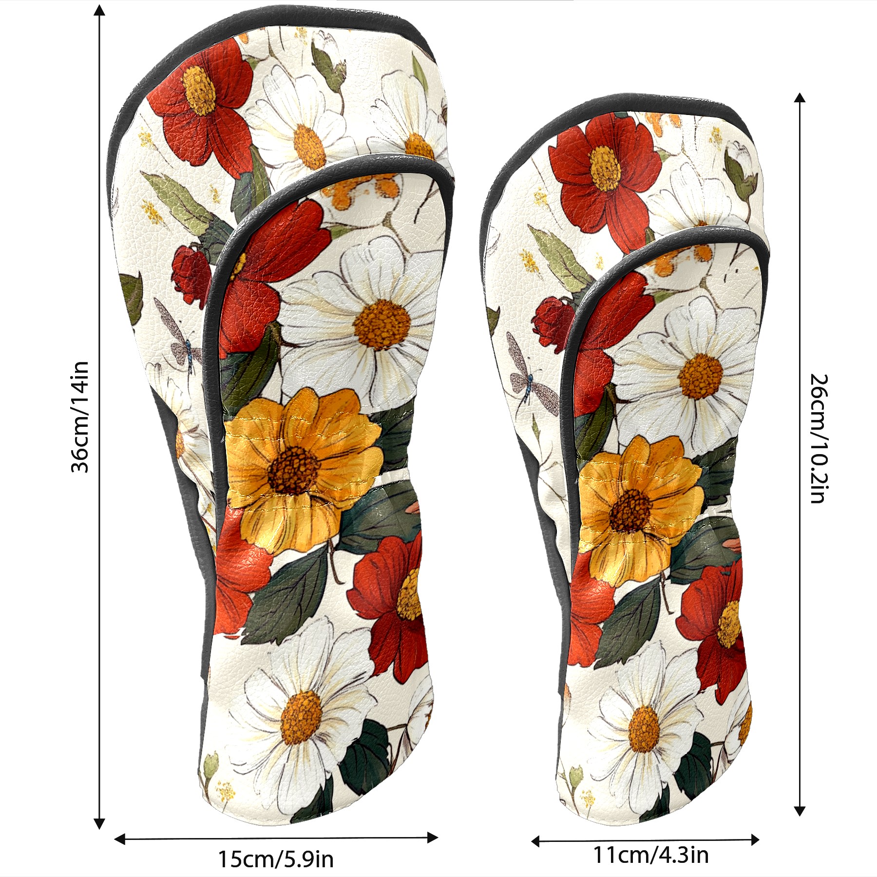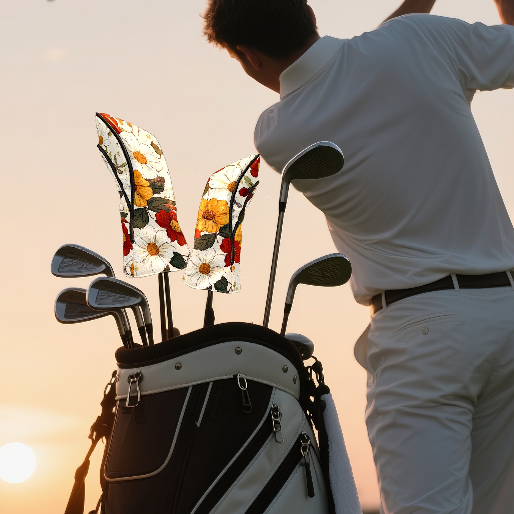 Black Golf Club Head Cover Golf Accessories Head Covers Set For Driver & Fairway Woods Vintage Floral
