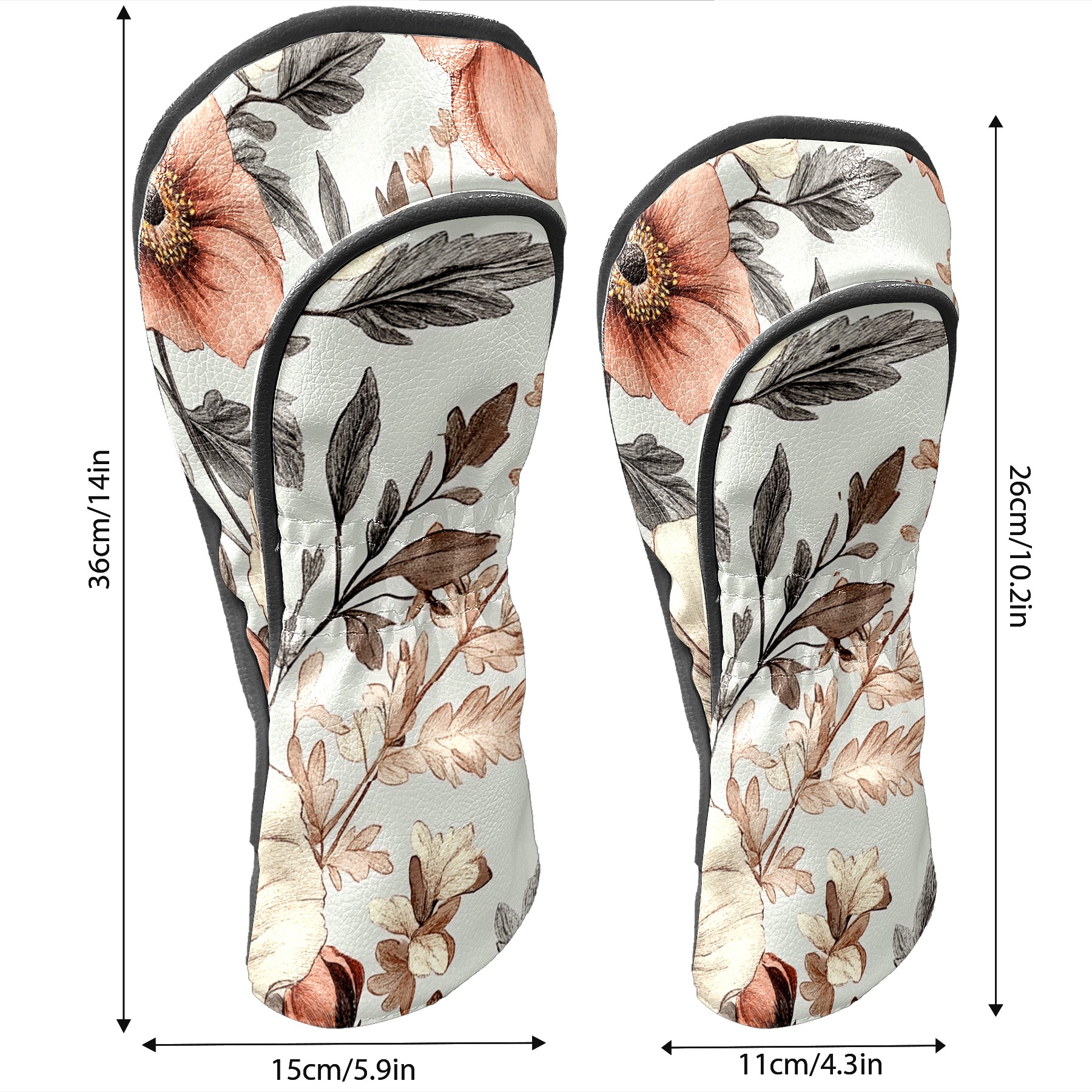 Black Golf Club Head Cover Golf Accessories Head Covers Set For Driver & Fairway Woods Vintage Floral Pattern